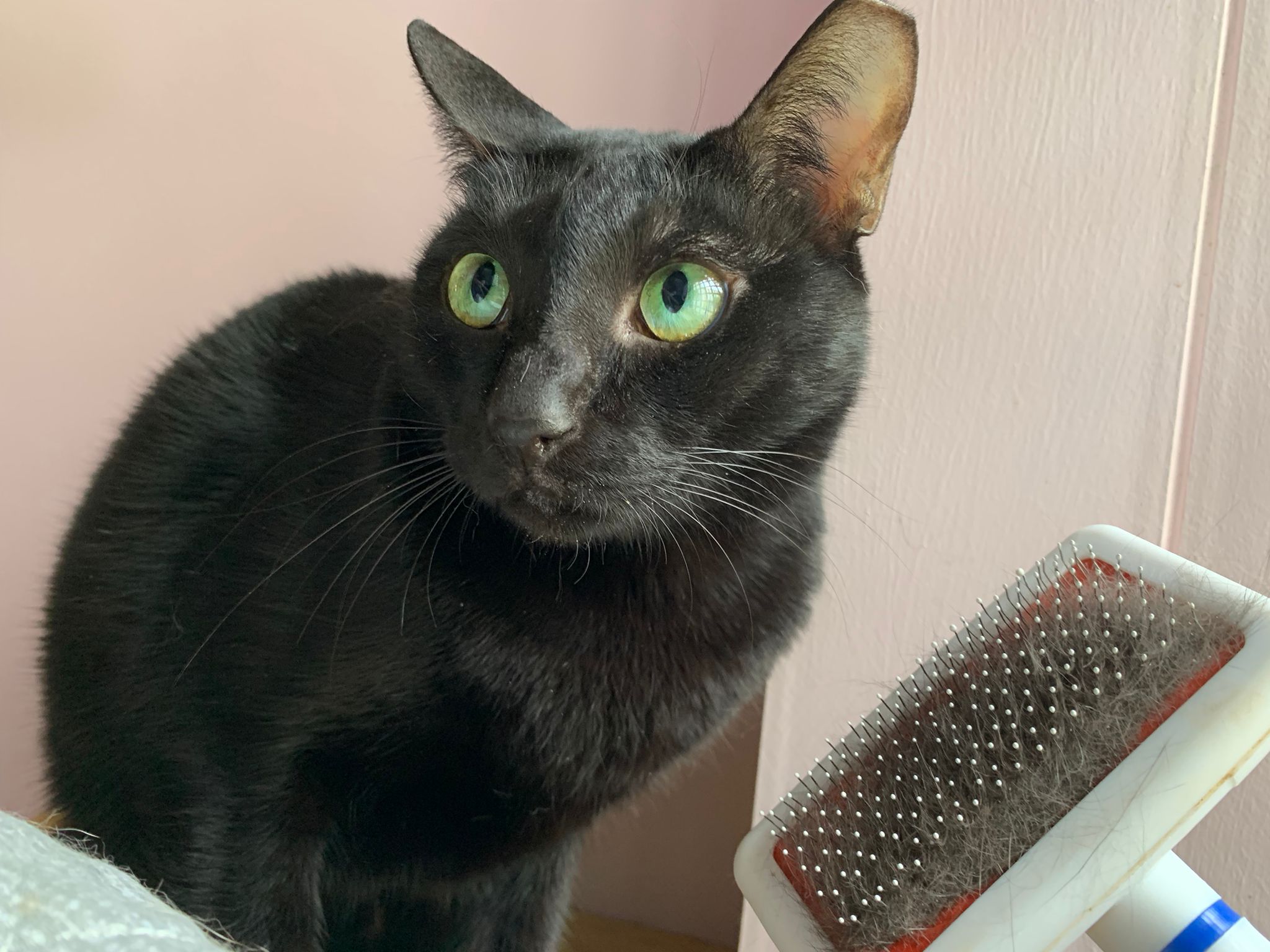 3pm: baby wipes her – she don’t like and brush her. Maybe black fur v clear, all over the floor.