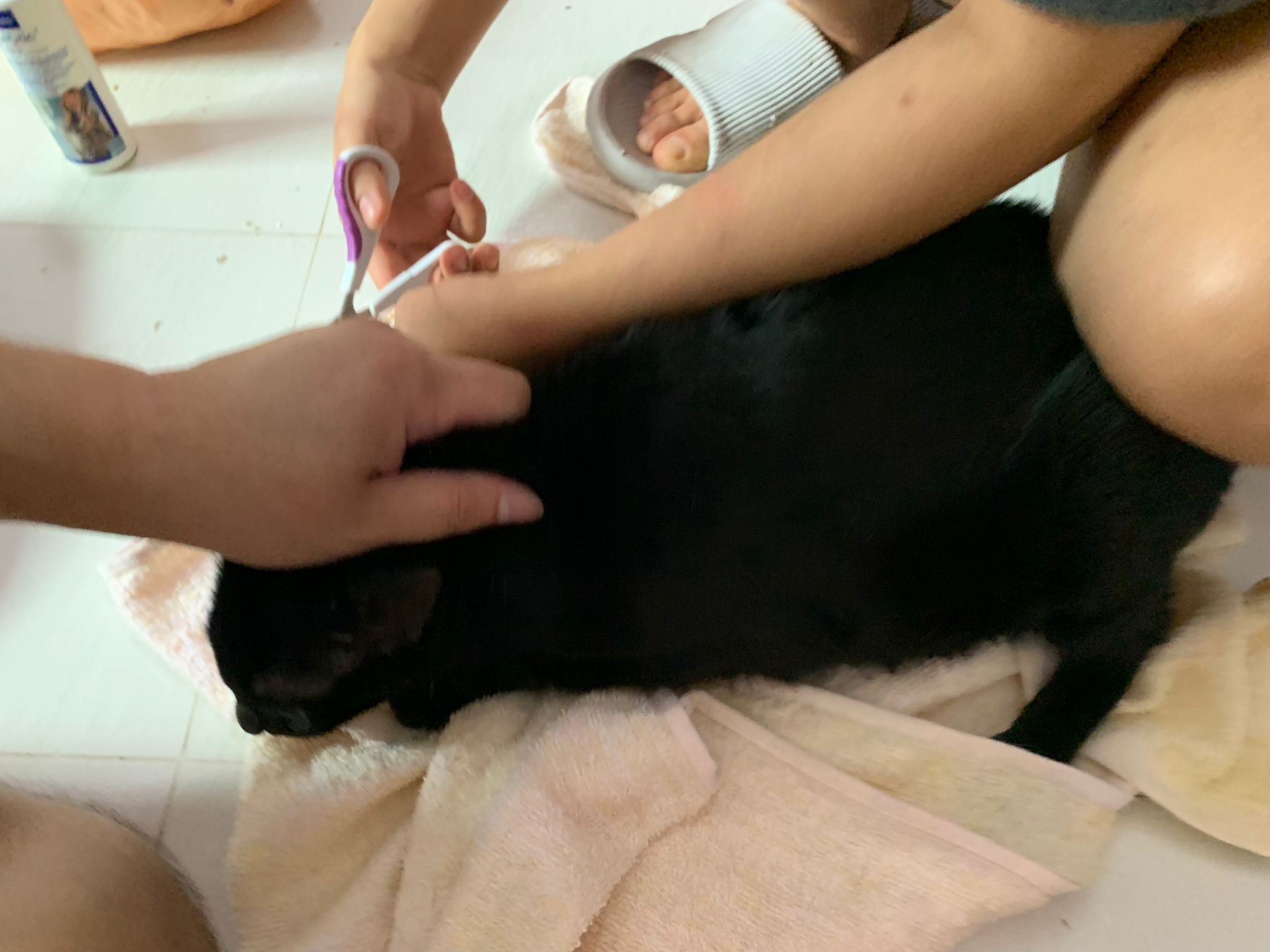 When she is in, capture a better photo of her fur – either fur mites? Or she scaratxh the Peepad in bag till the white dust all over her body. Most prob b4 bringing her back to 猫房 will bath and spa.