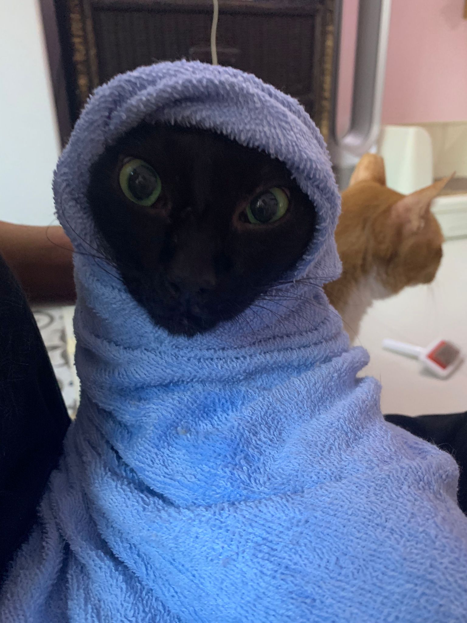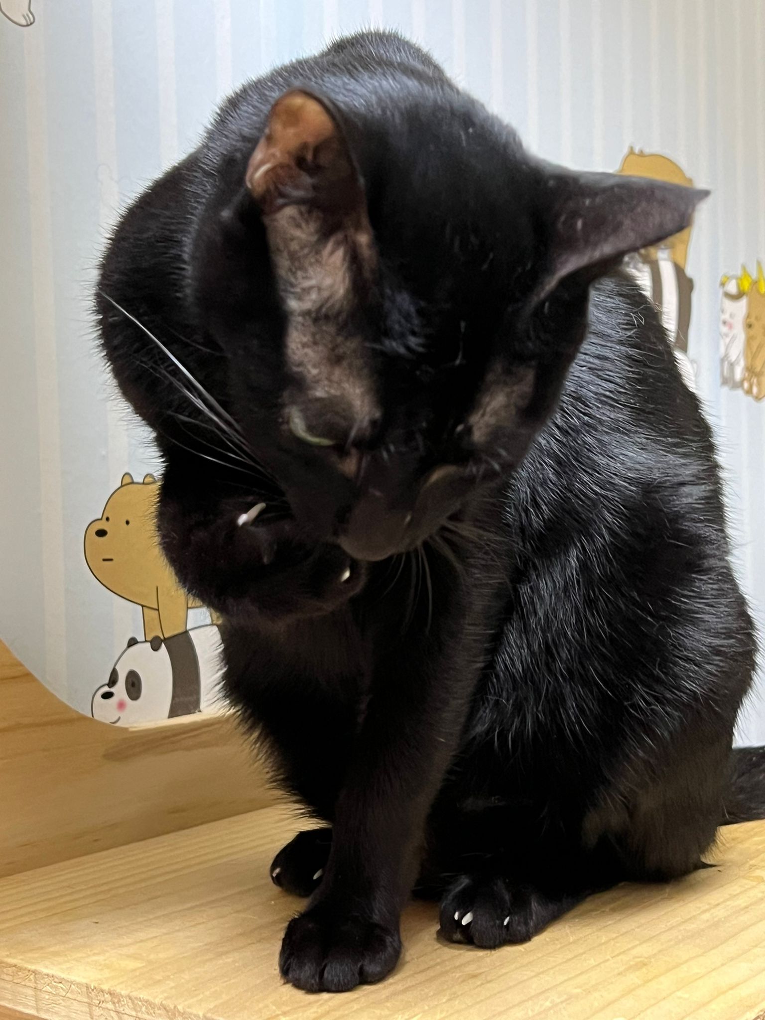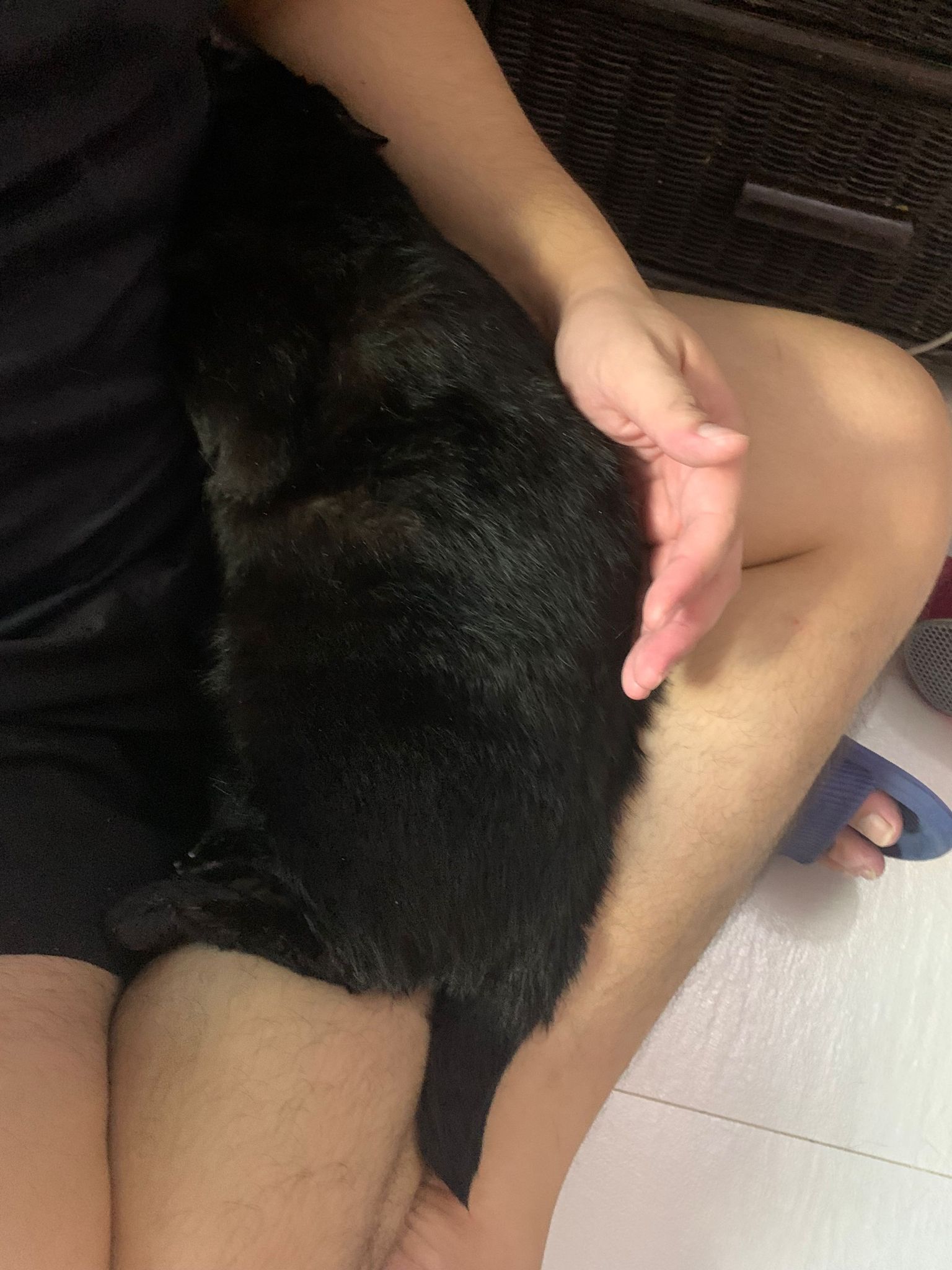 Morning info fr mummy: “Vet say she vomited this morning but her wbc and neutrophils look a lot better today. Sheba been having dry skin sometimes (which we guess is why she has those white flakes), so under Dr YM’s suggestion we’ve been giving her antinol (for the omega oils)” – i feel that she is not active and her belly is so big, but cos I long time didn’t see her can’t confirm is an issue or just cos she is fat?