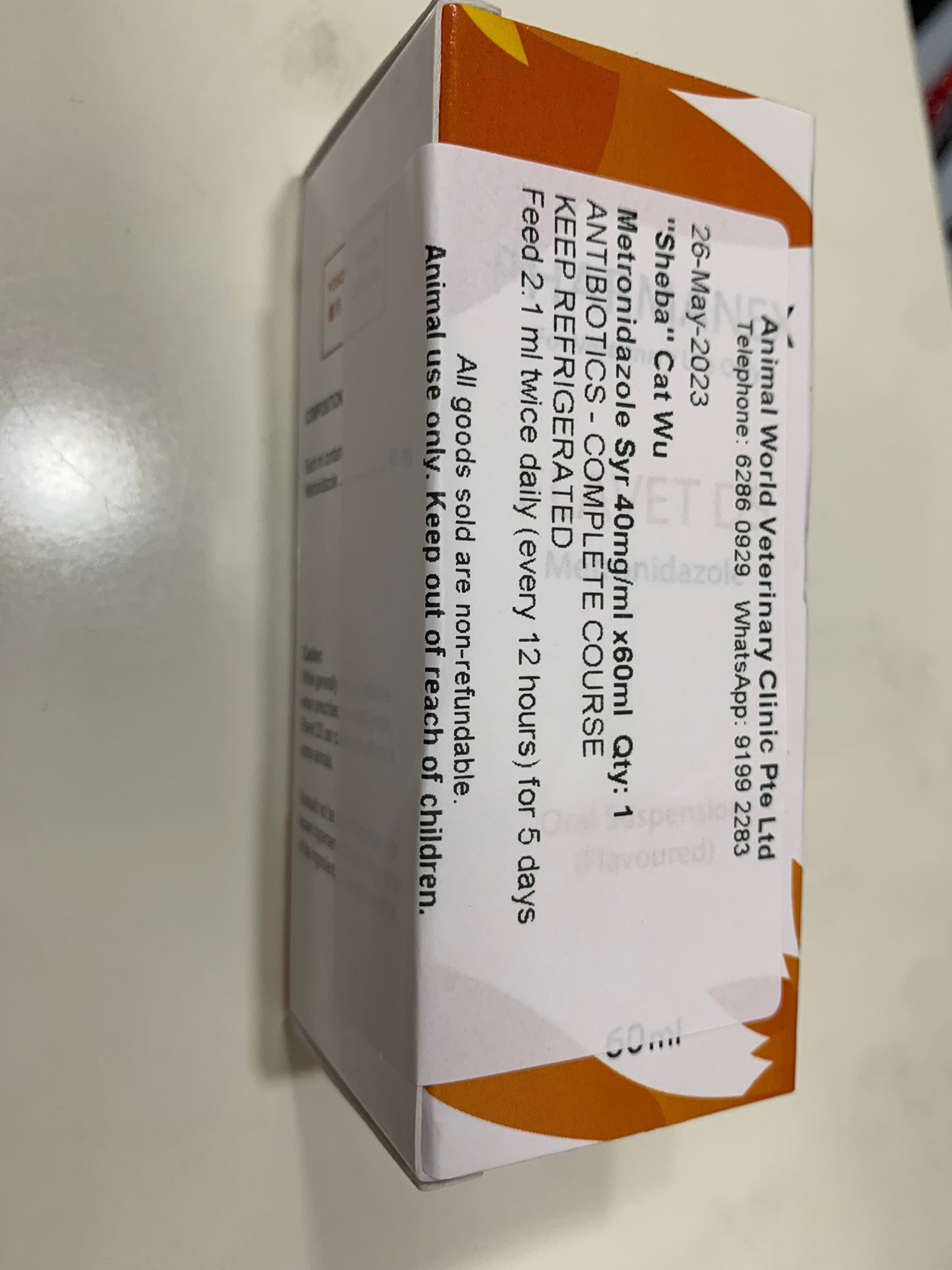Yesterday mummy ask me “Mao fang have stock of Ondansetron, buprenorphine, marbo, maropitant? If don’t have, we will get from Ps tmr at check out.” – so that’s sheba current treatment plan.