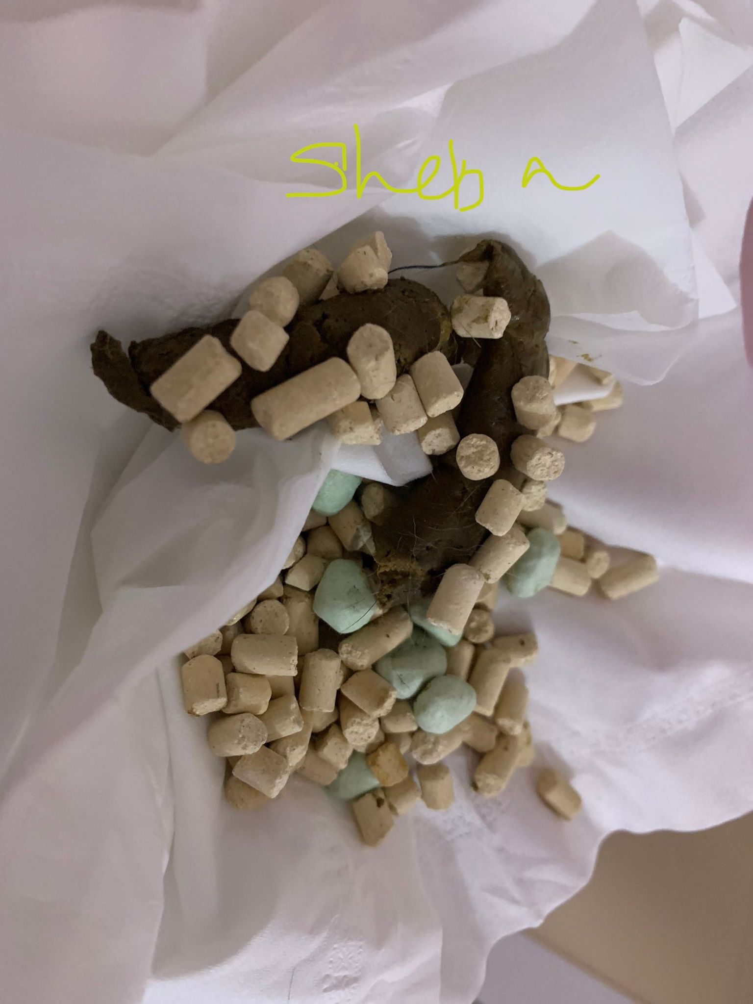 “Sheba is positive for Giardia – cause of her bloody stools. Wet mount negative for other parasites. She needs metronidazole and fenbendazole.Metronidazole 15mg/kg 2x daily for 7days.
