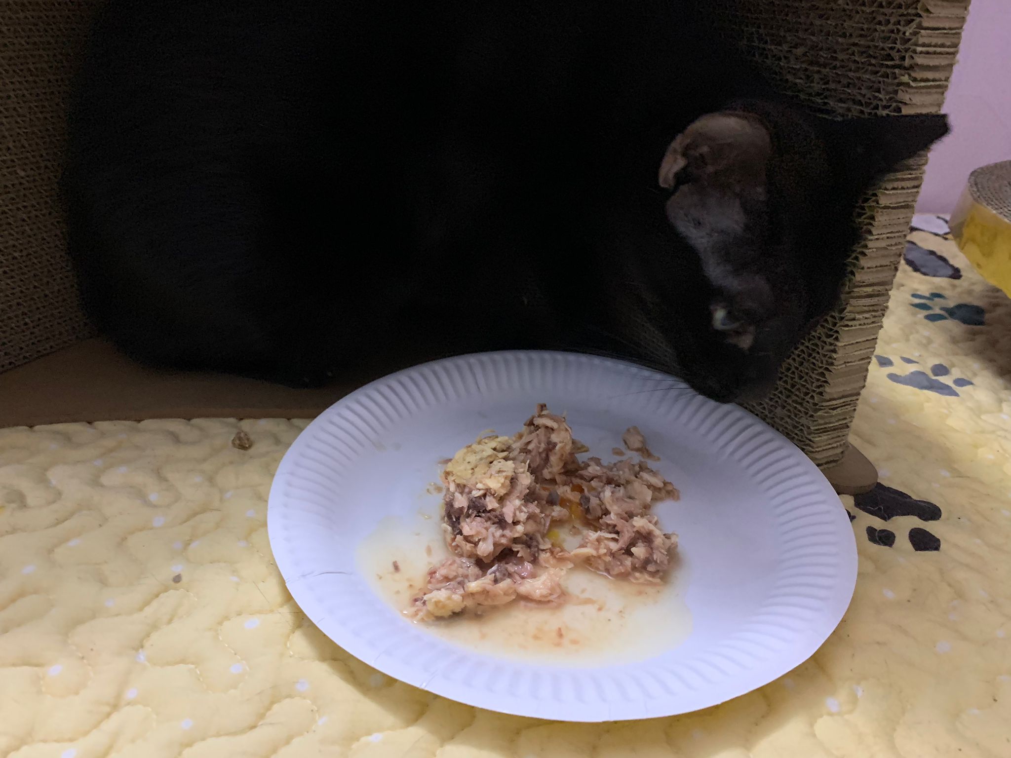 Got eat a bit of the food I serve. Yesterday food all not touched. Today like normal, I come in she meow welcome me.