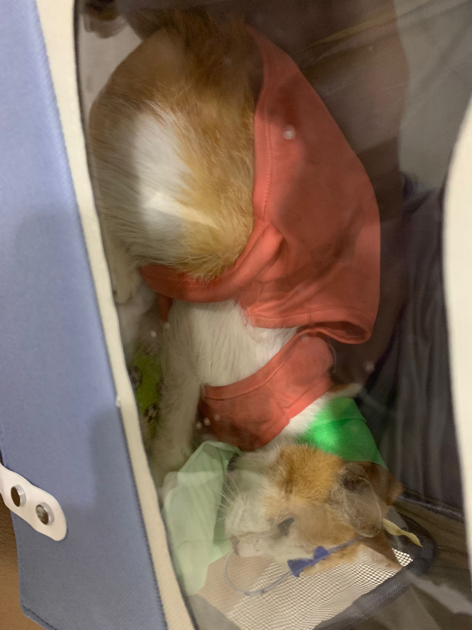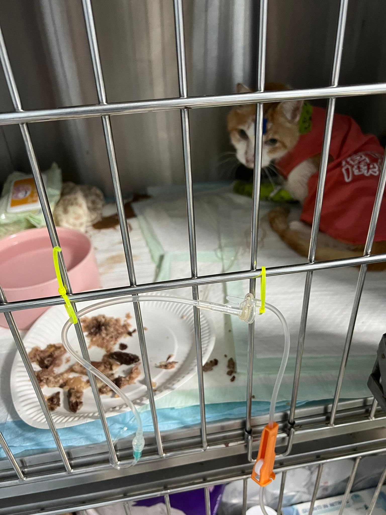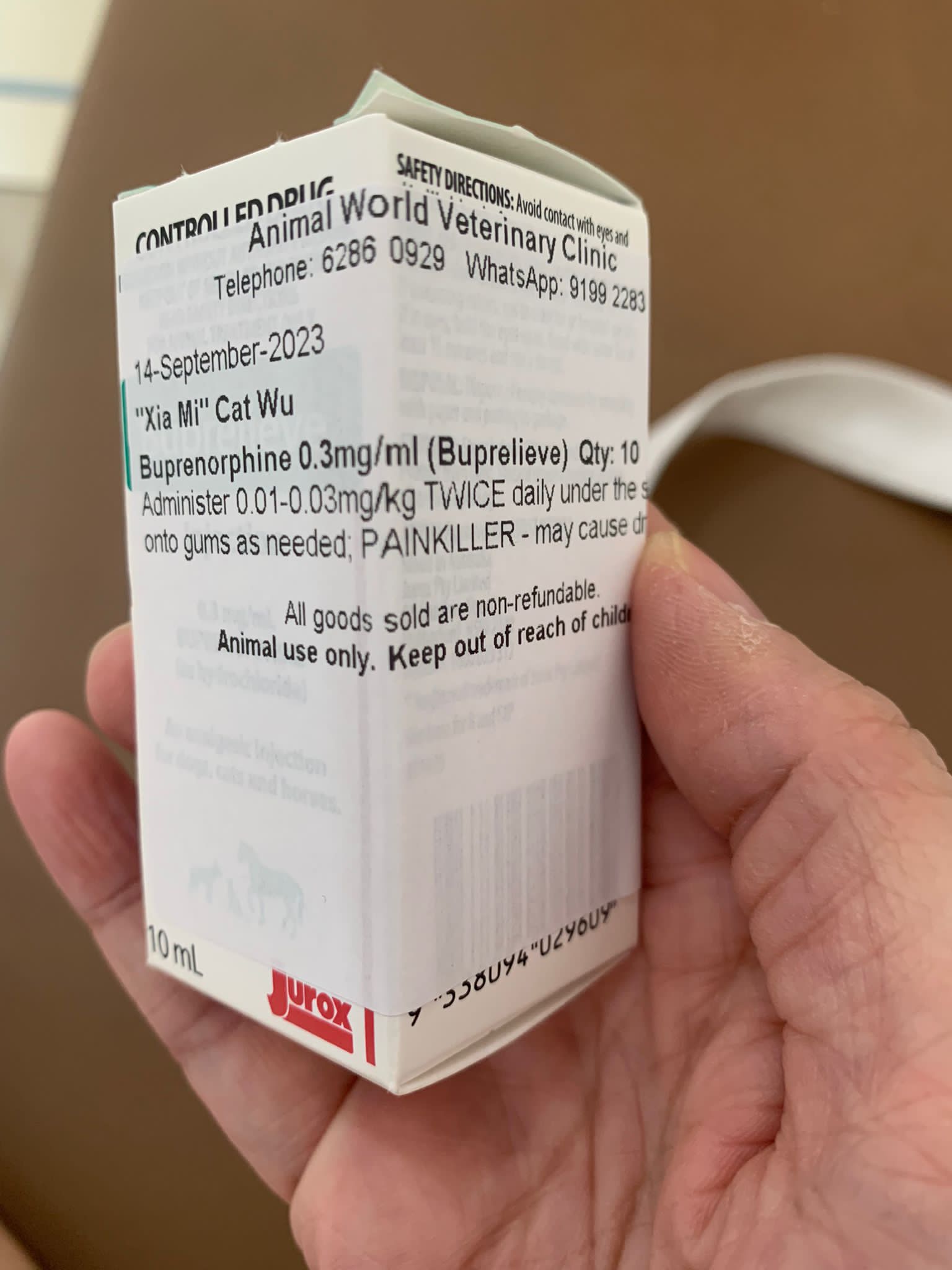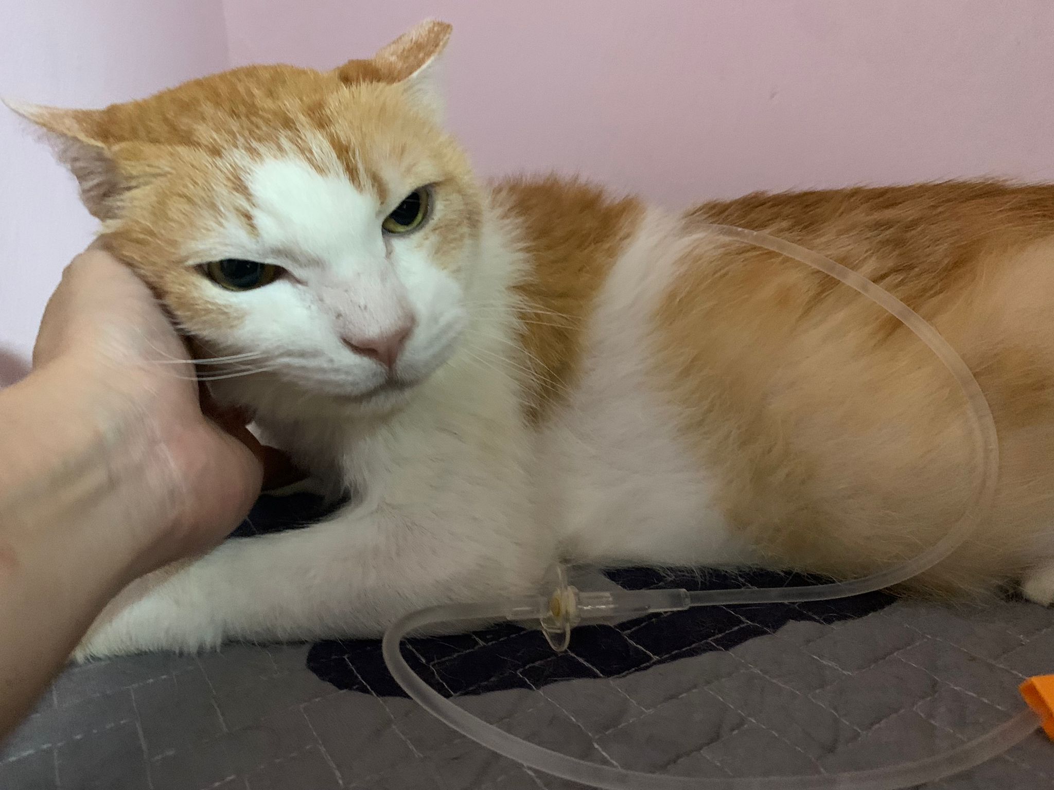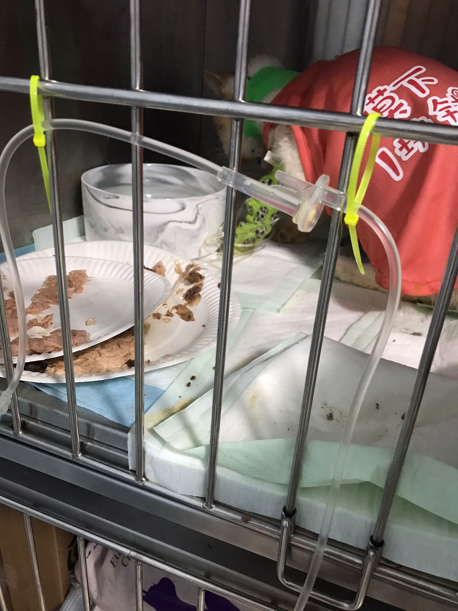 1pm: back to 猫房. He move back to room and I give him a big bed. Tube fed 40ml. Tube not v smooth alr. Subcut 100ml and given Clav n Cerenia. tmr then start Marbo and I have to check his darbepoetin jab day.