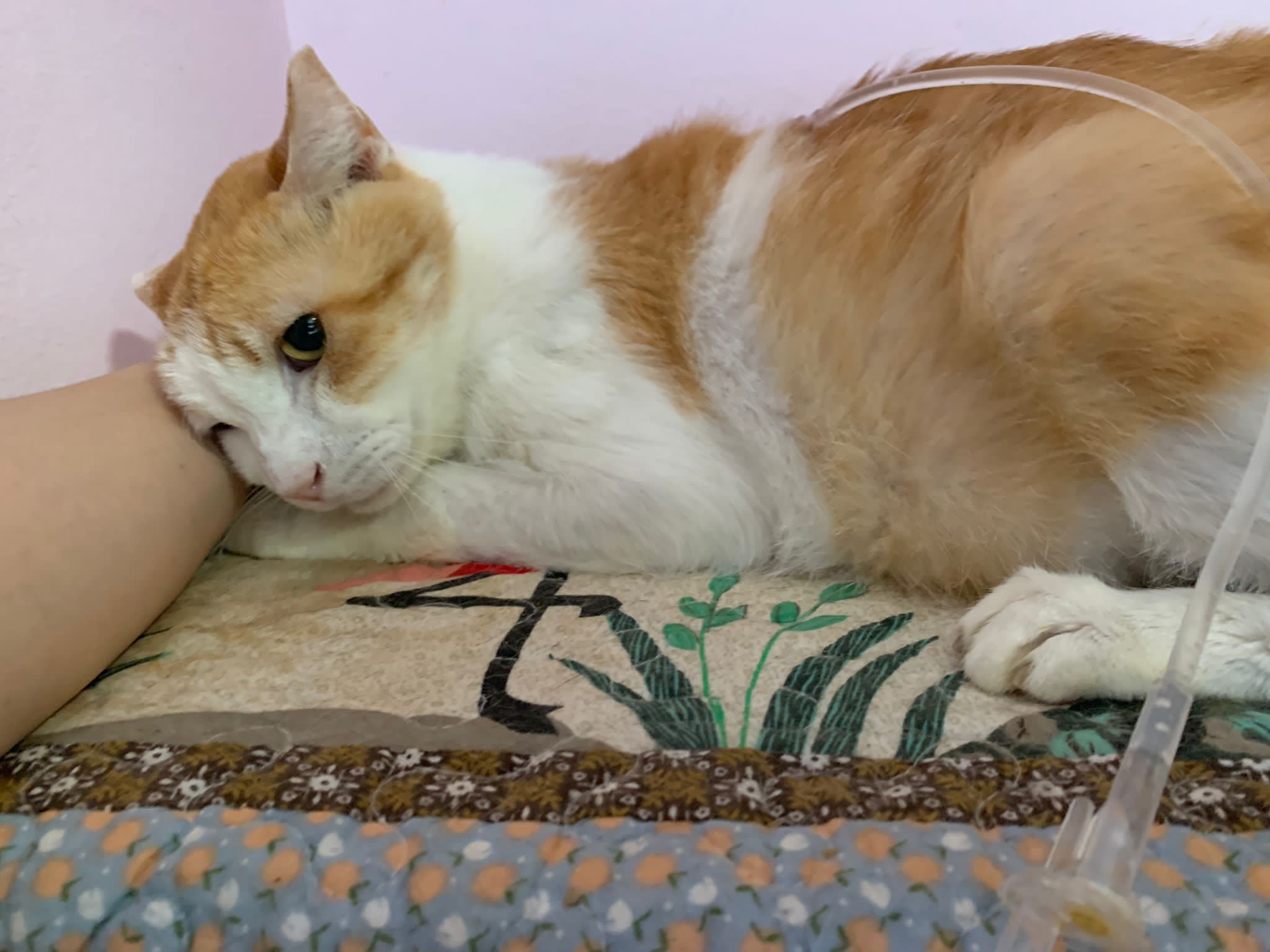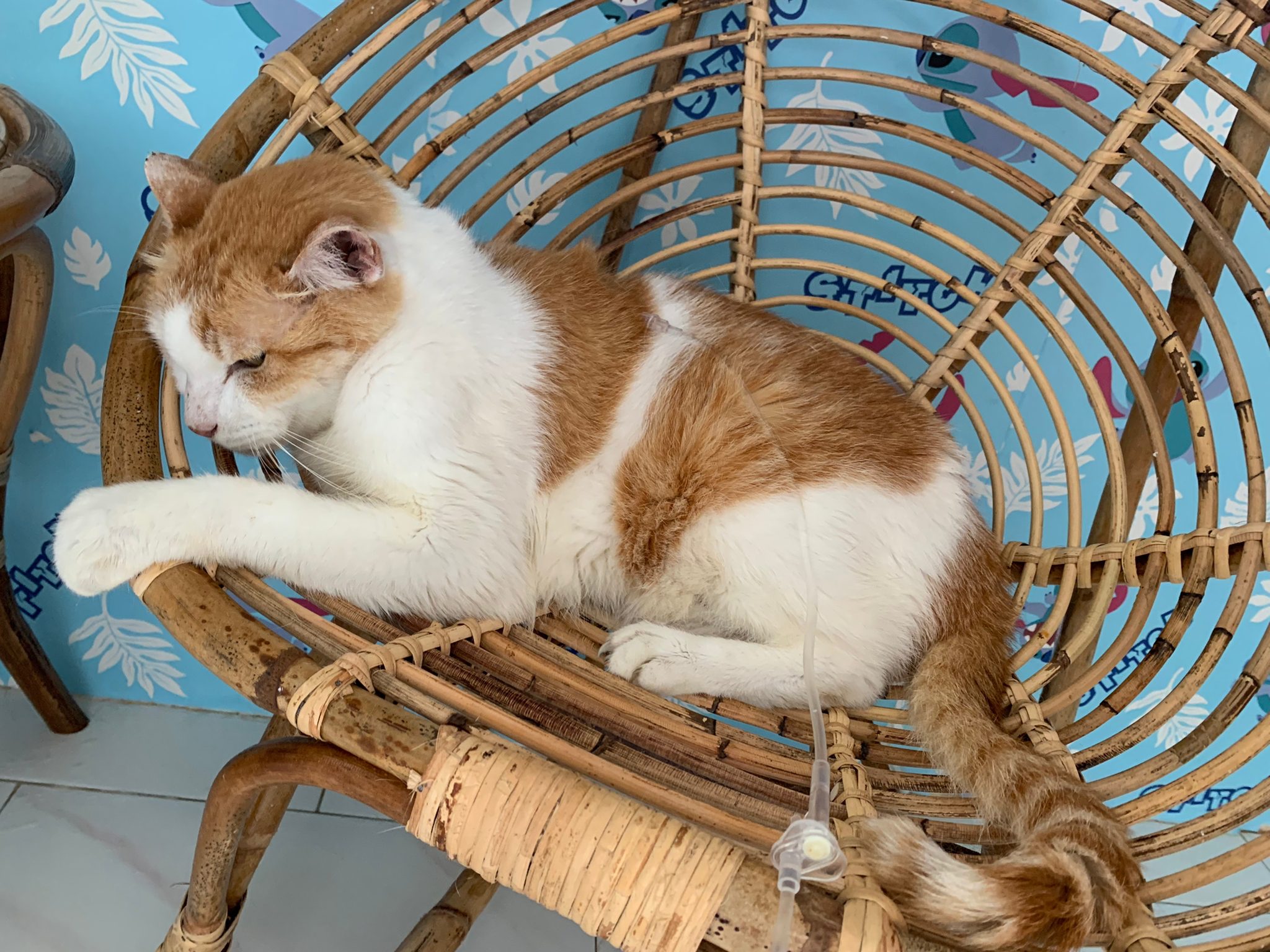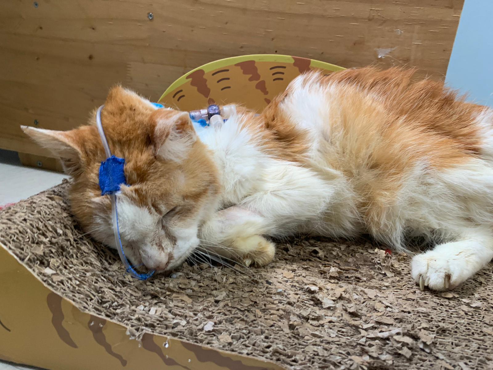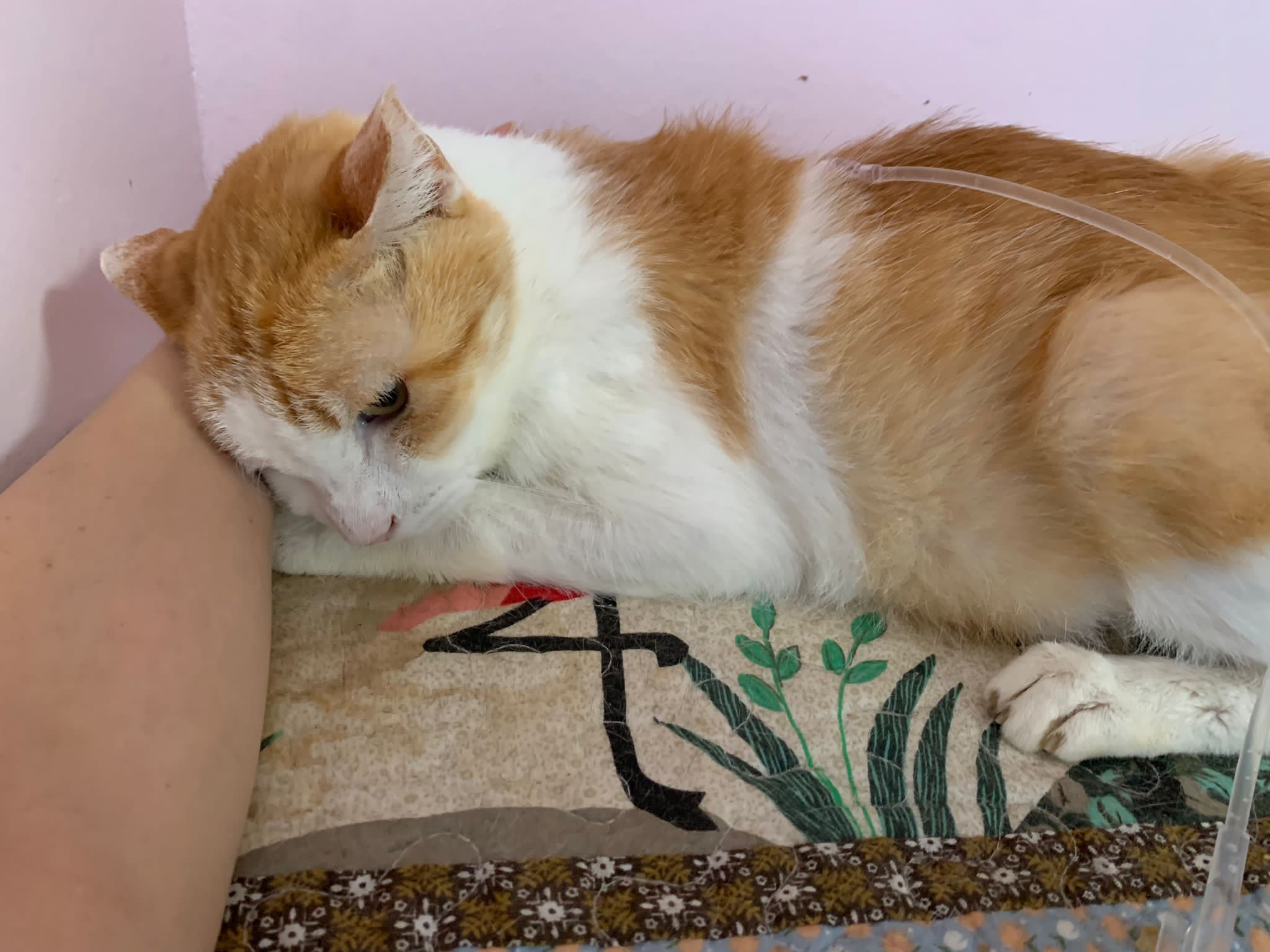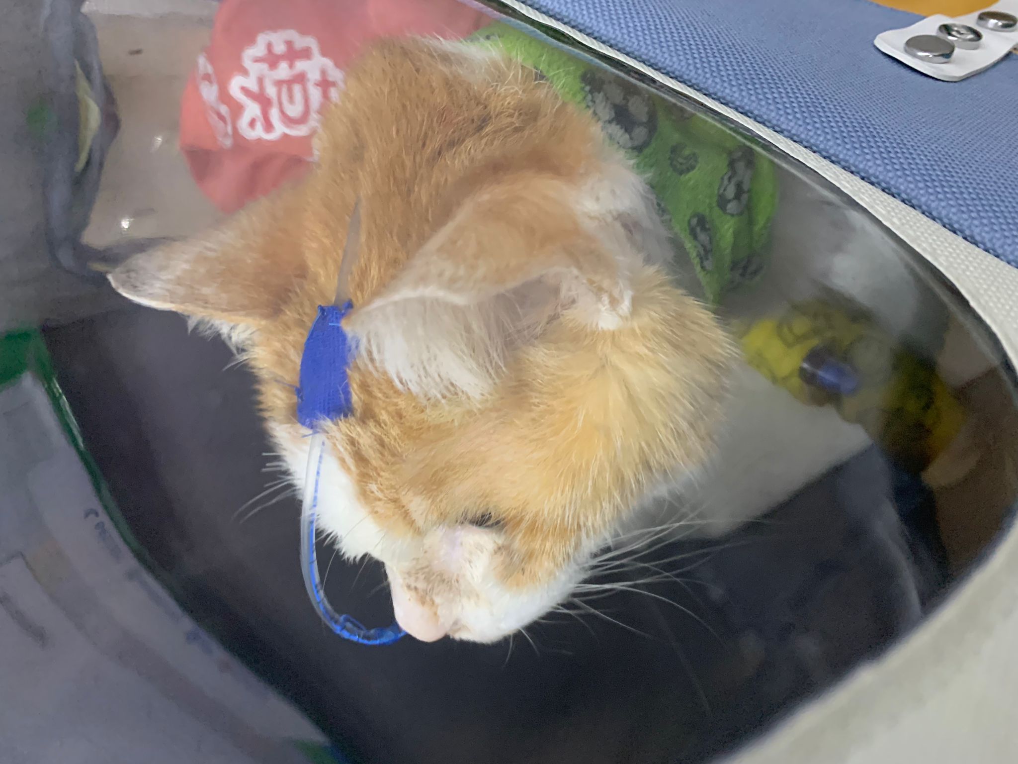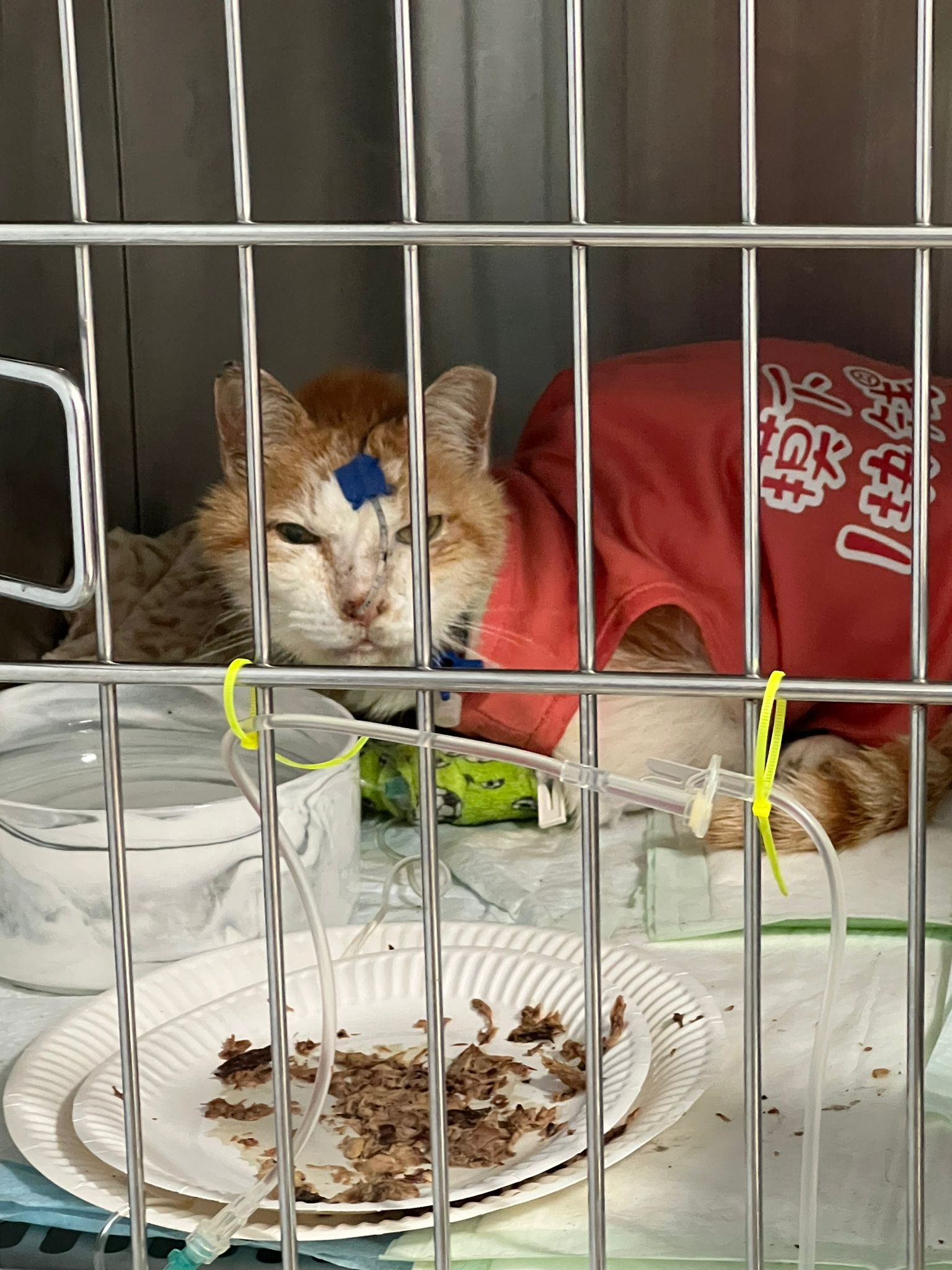 1pm: back to 猫房. He move back to room and I give him a big bed. Tube fed 40ml. Tube not v smooth alr. Subcut 100ml and given Clav n Cerenia. tmr then start Marbo and I have to check his darbepoetin jab day.