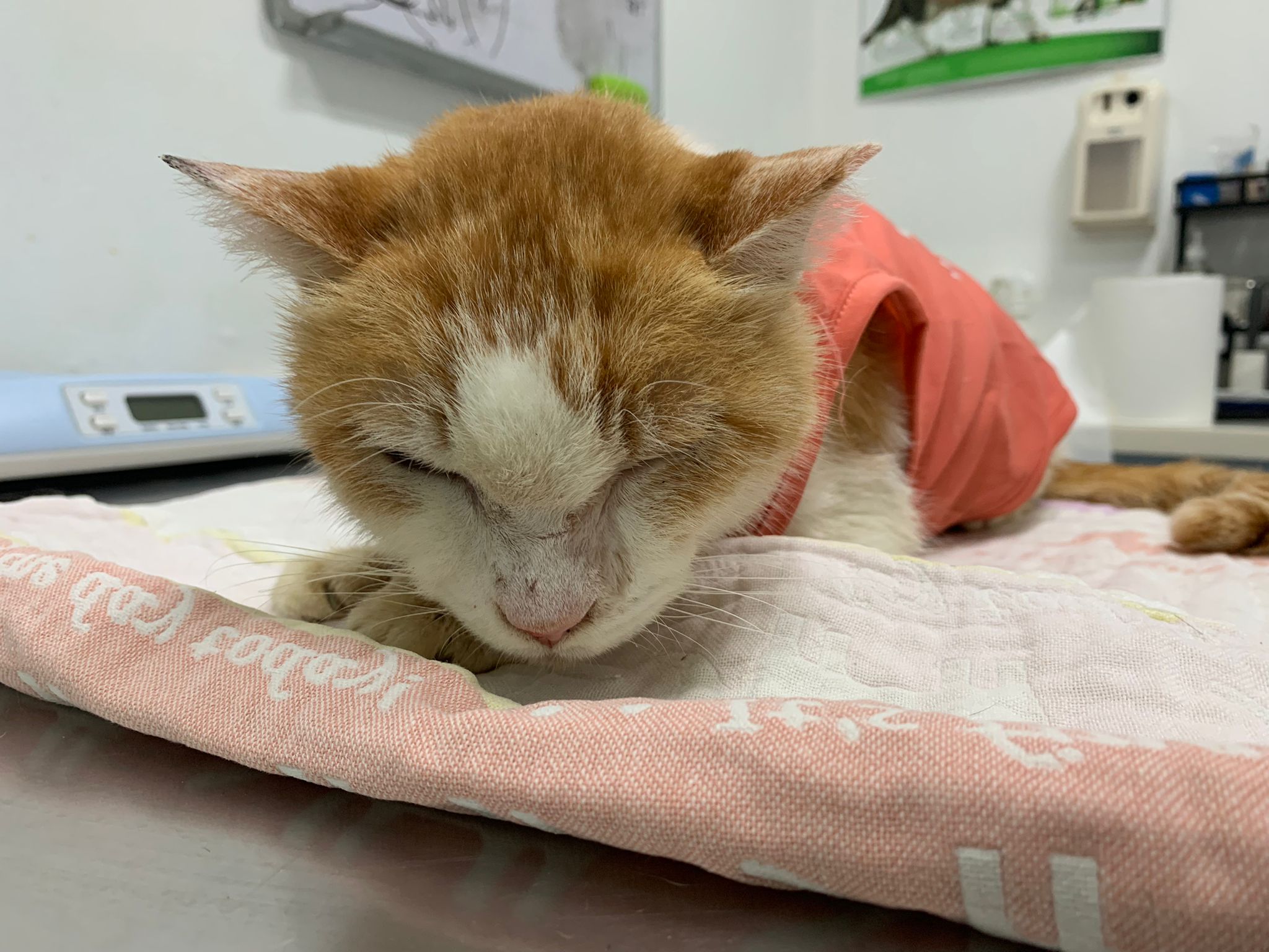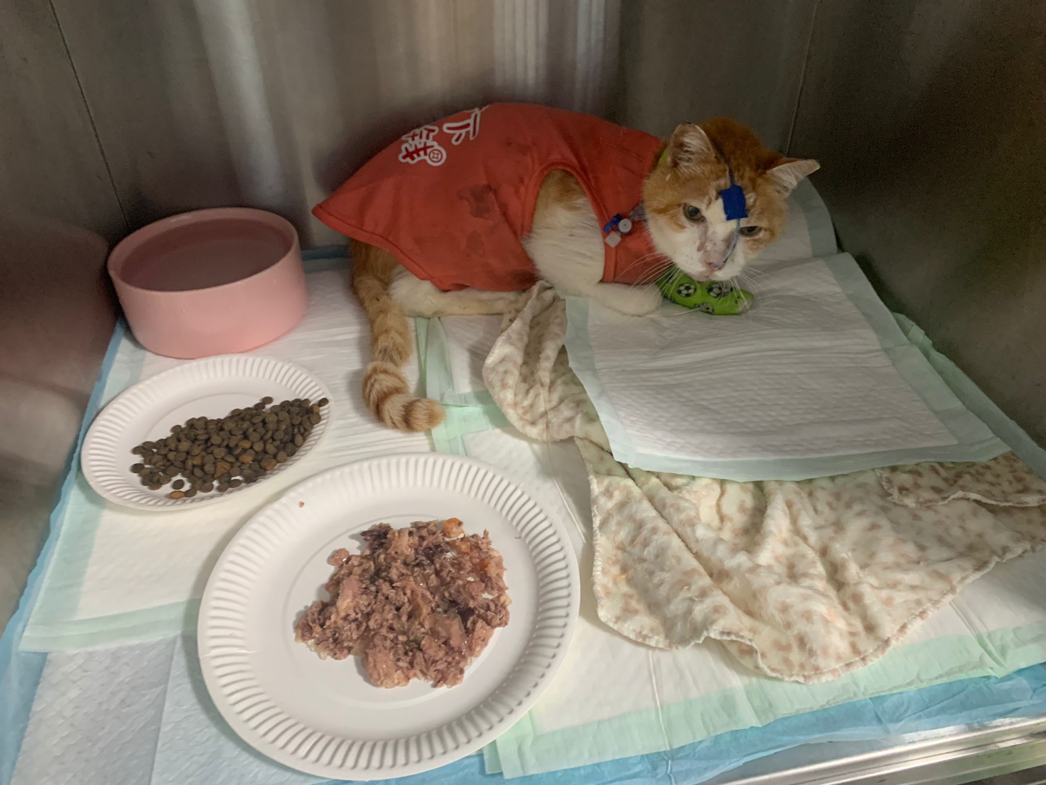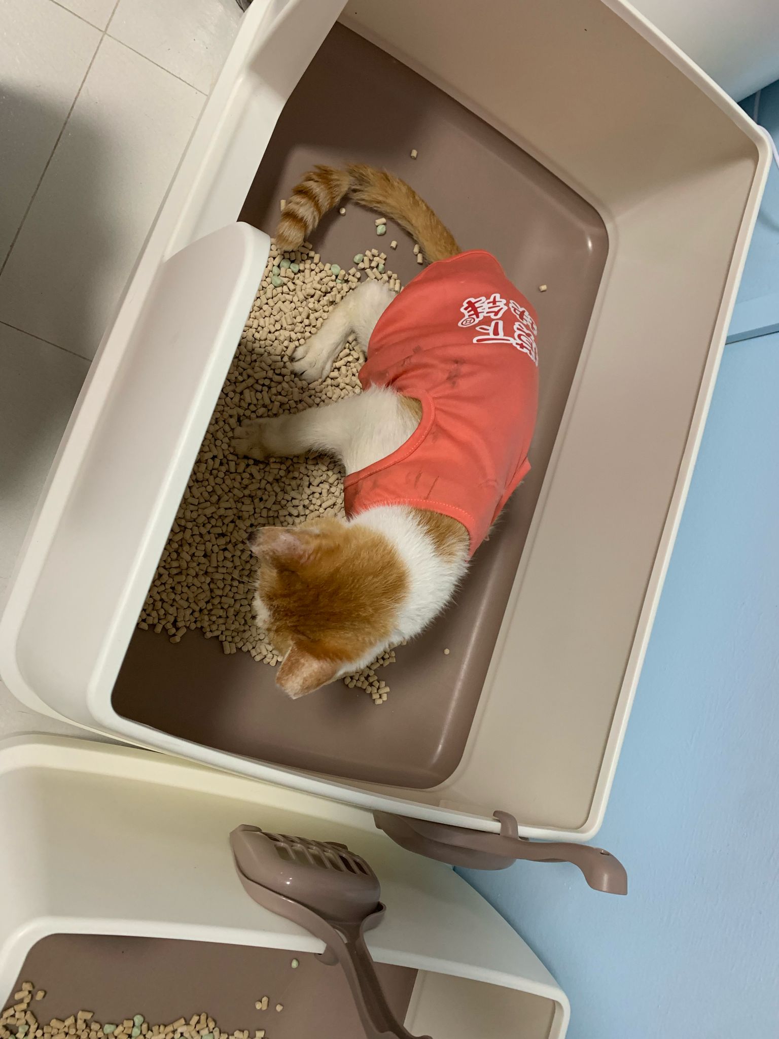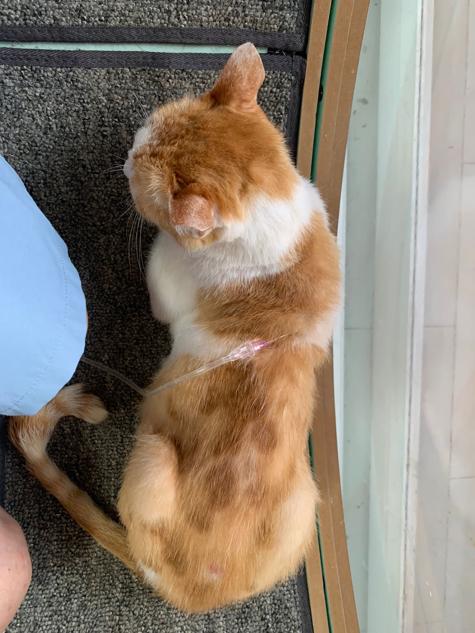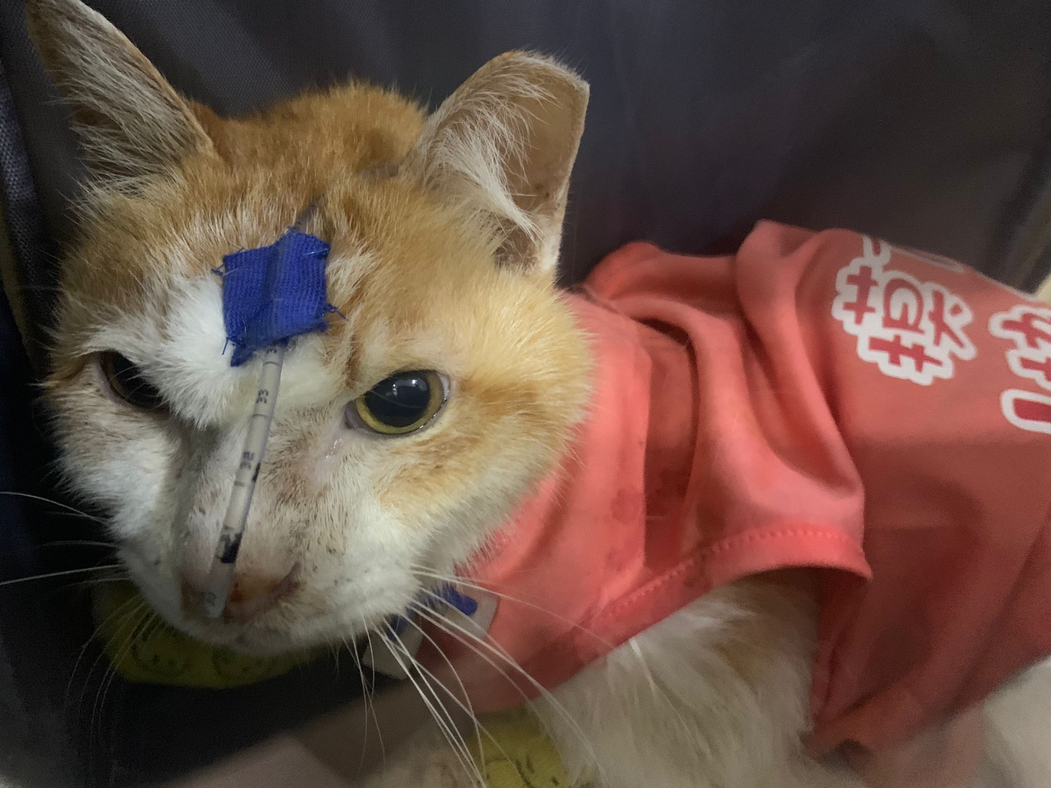 1pm: back to 猫房. He move back to room and I give him a big bed. Tube fed 40ml. Tube not v smooth alr. Subcut 100ml and given Clav n Cerenia. tmr then start Marbo and I have to check his darbepoetin jab day.