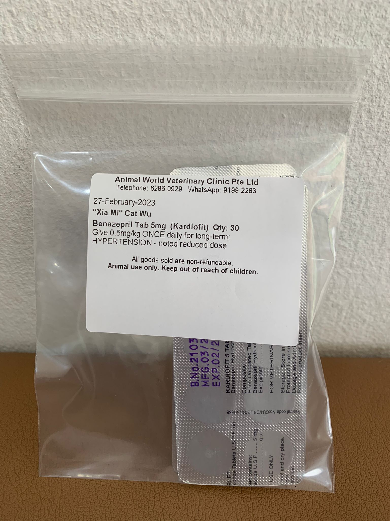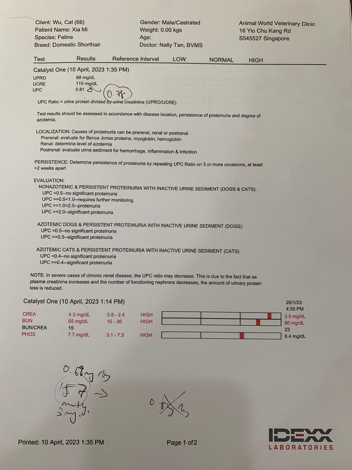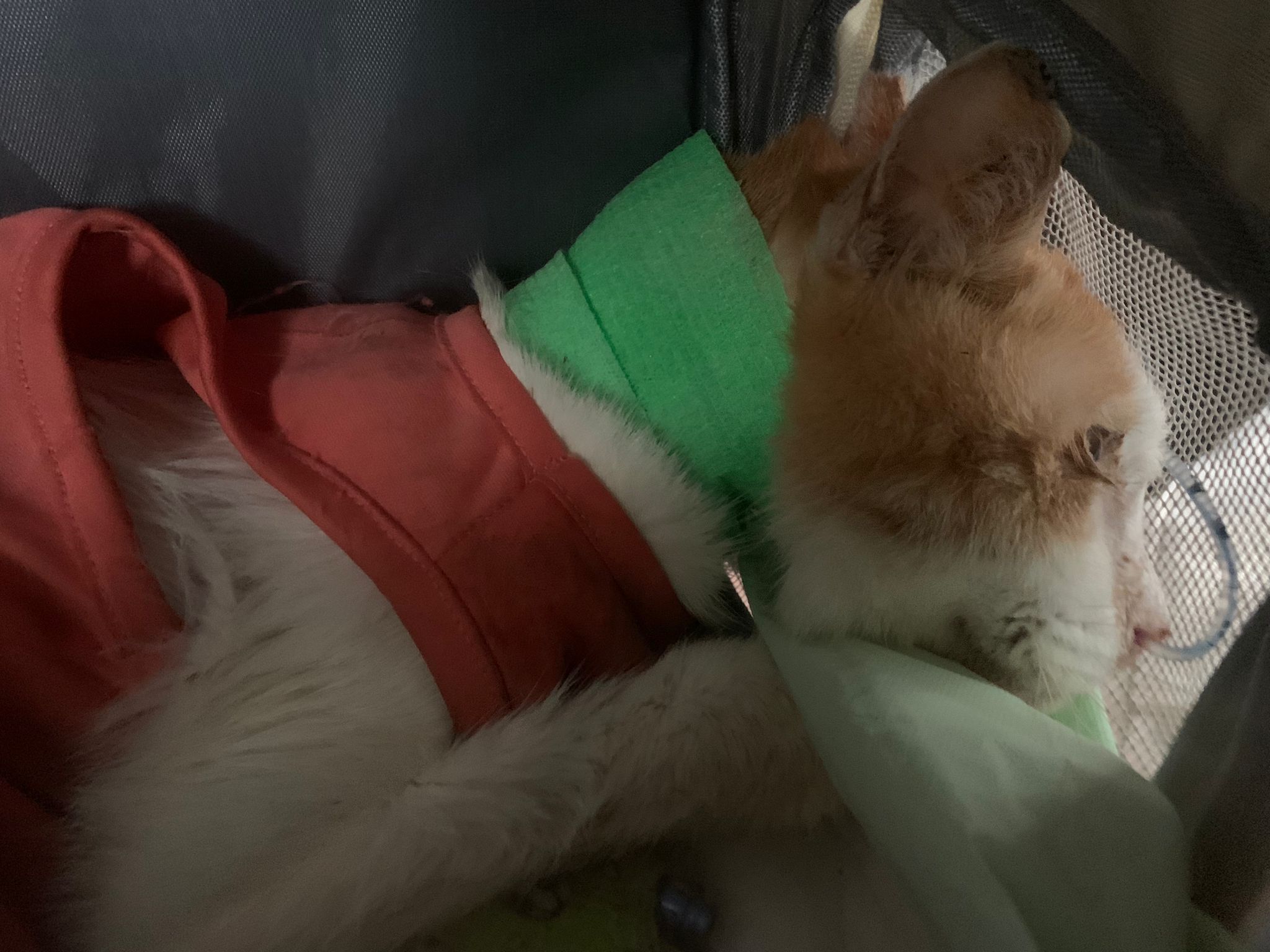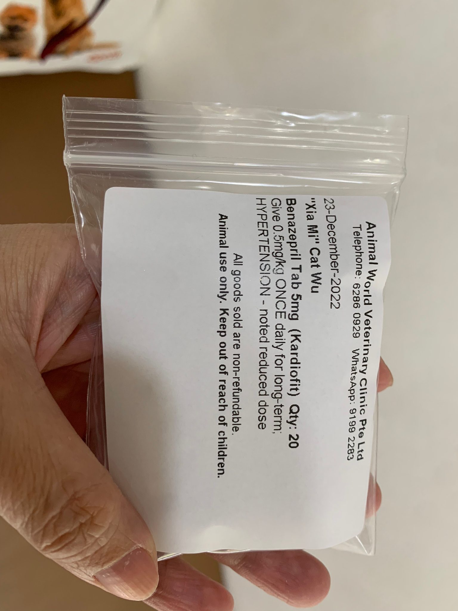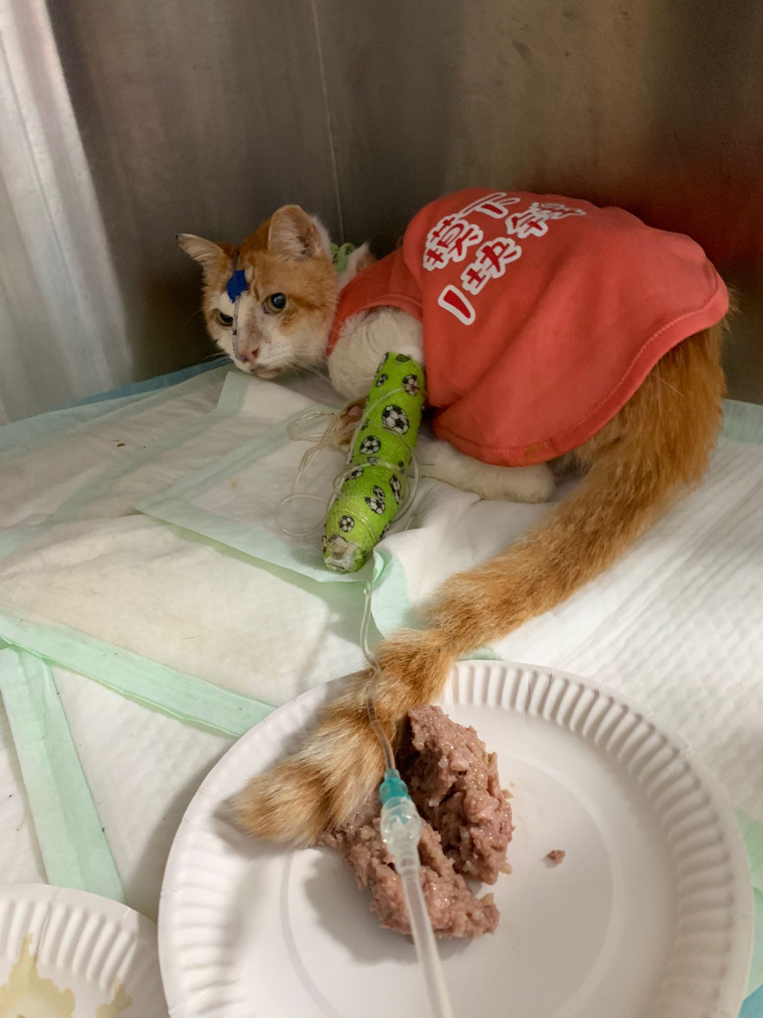 1pm: back to 猫房. He move back to room and I give him a big bed. Tube fed 40ml. Tube not v smooth alr. Subcut 100ml and given Clav n Cerenia. tmr then start Marbo and I have to check his darbepoetin jab day.