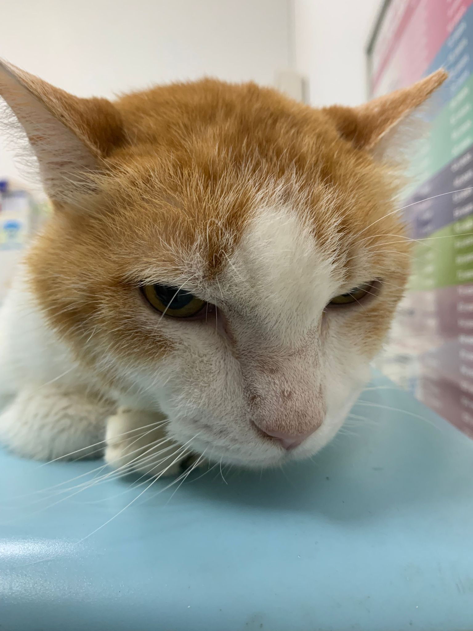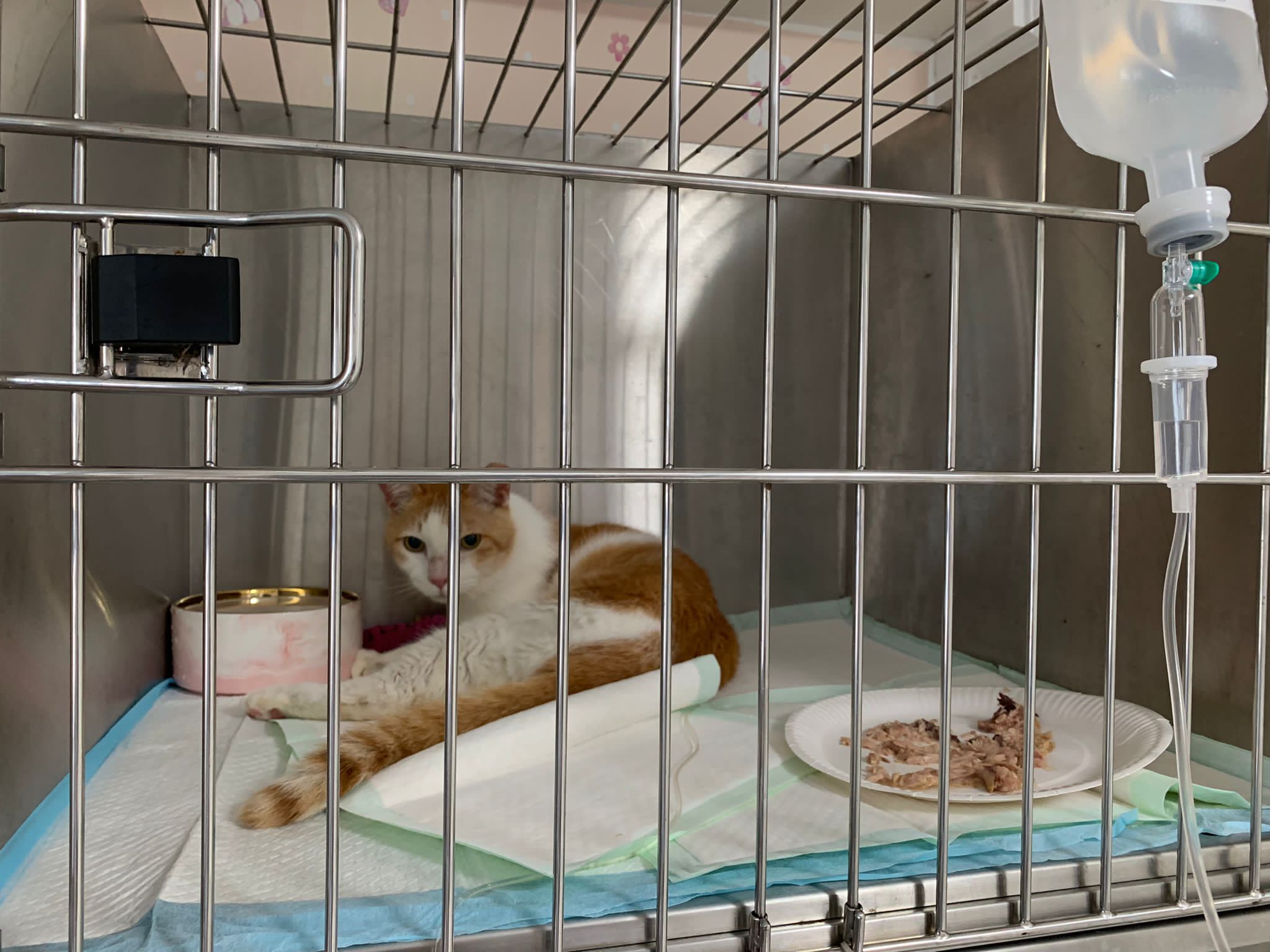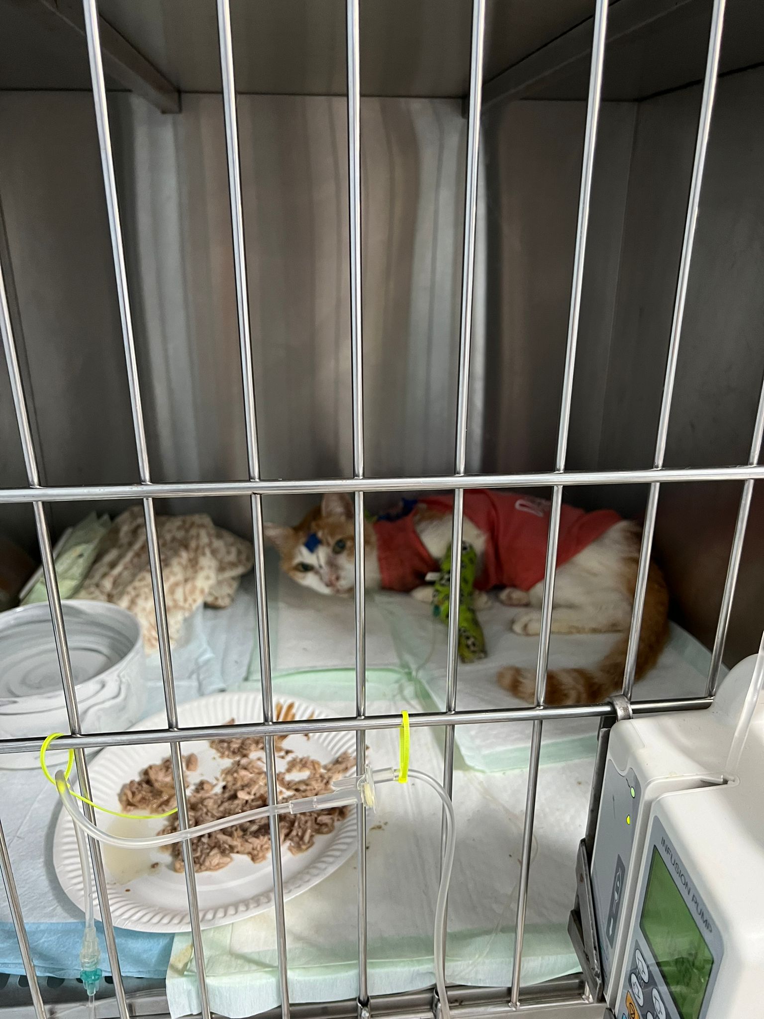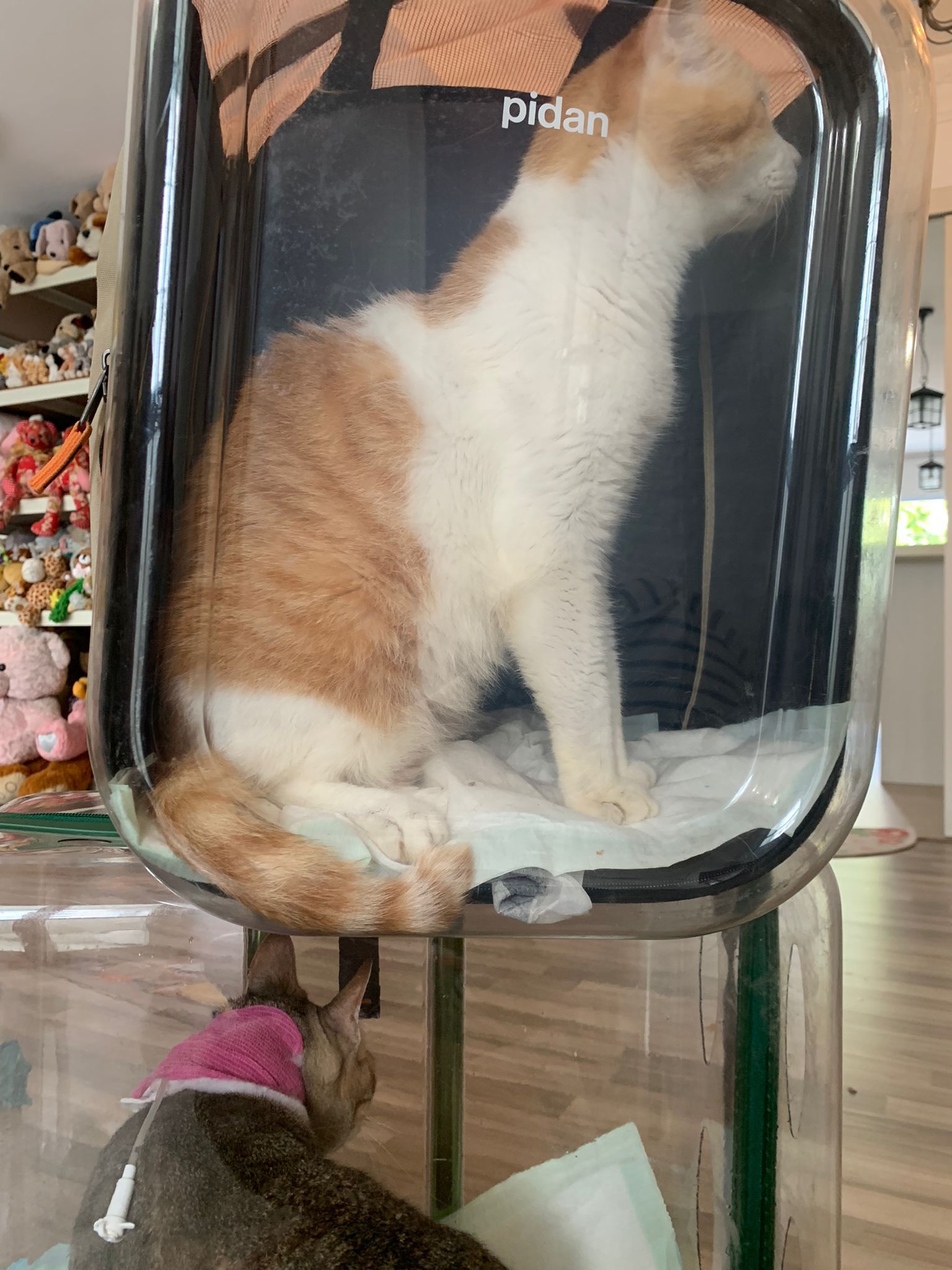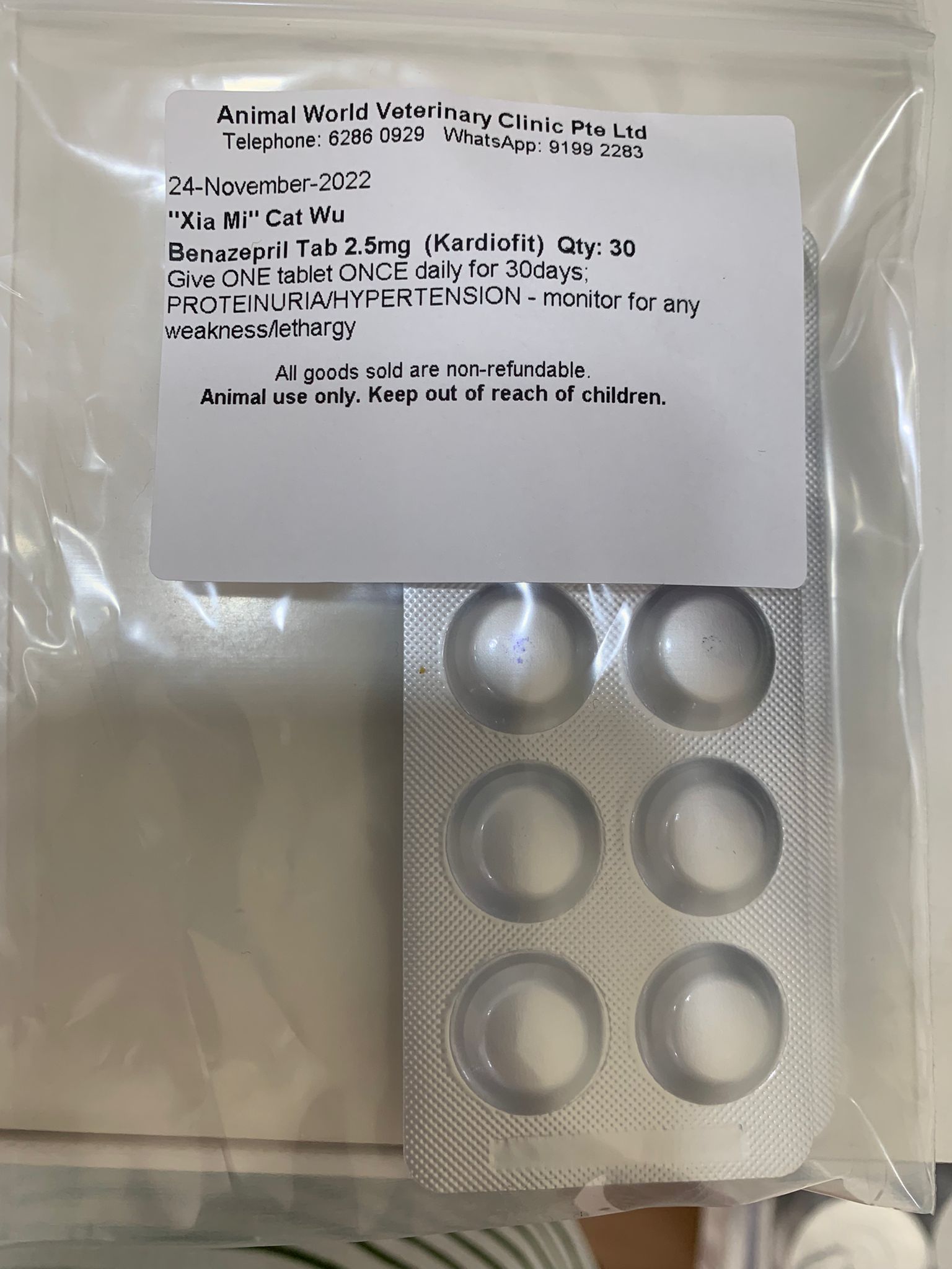1pm: back to 猫房. He move back to room and I give him a big bed. Tube fed 40ml. Tube not v smooth alr. Subcut 100ml and given Clav n Cerenia. tmr then start Marbo and I have to check his darbepoetin jab day.