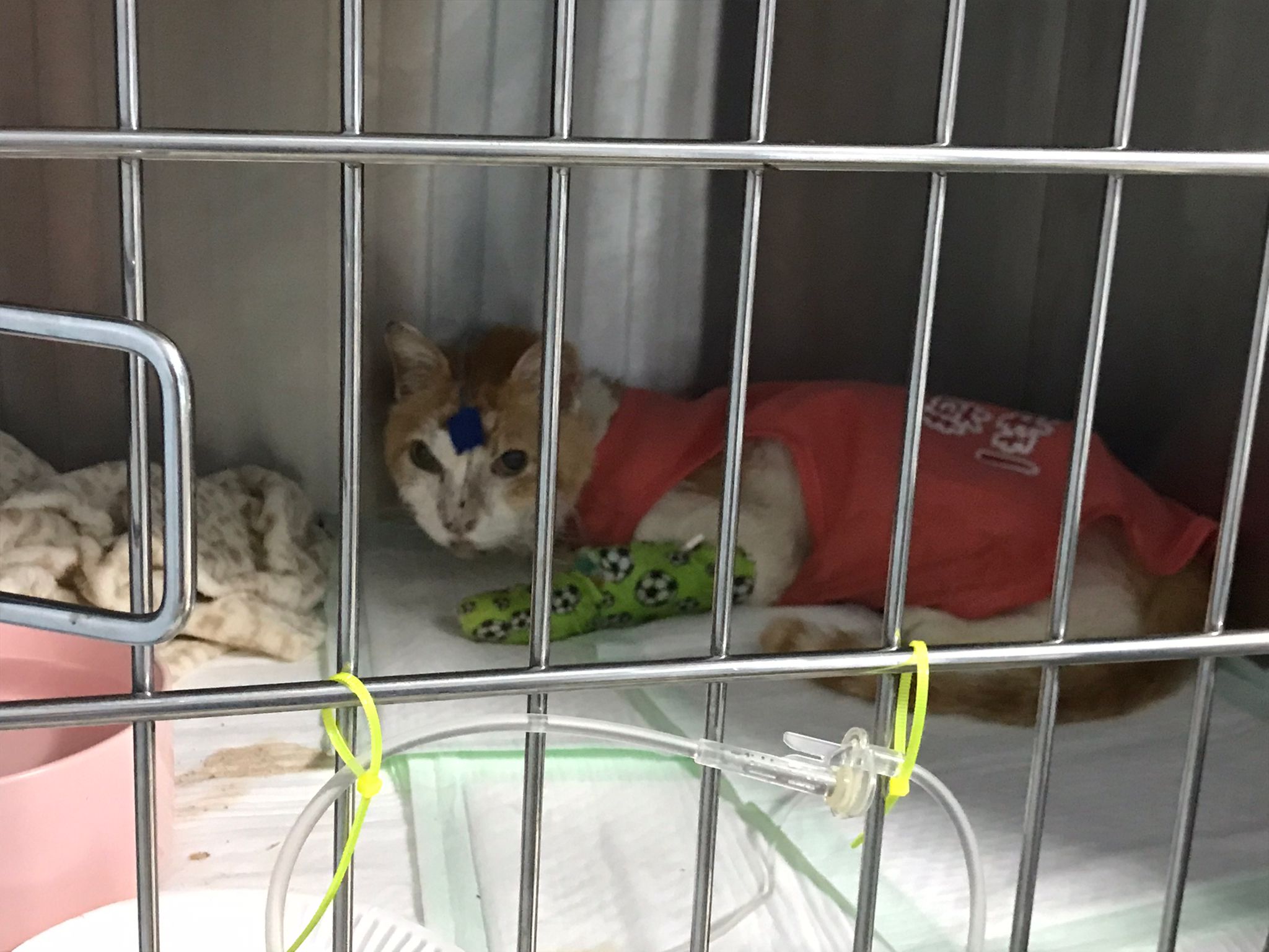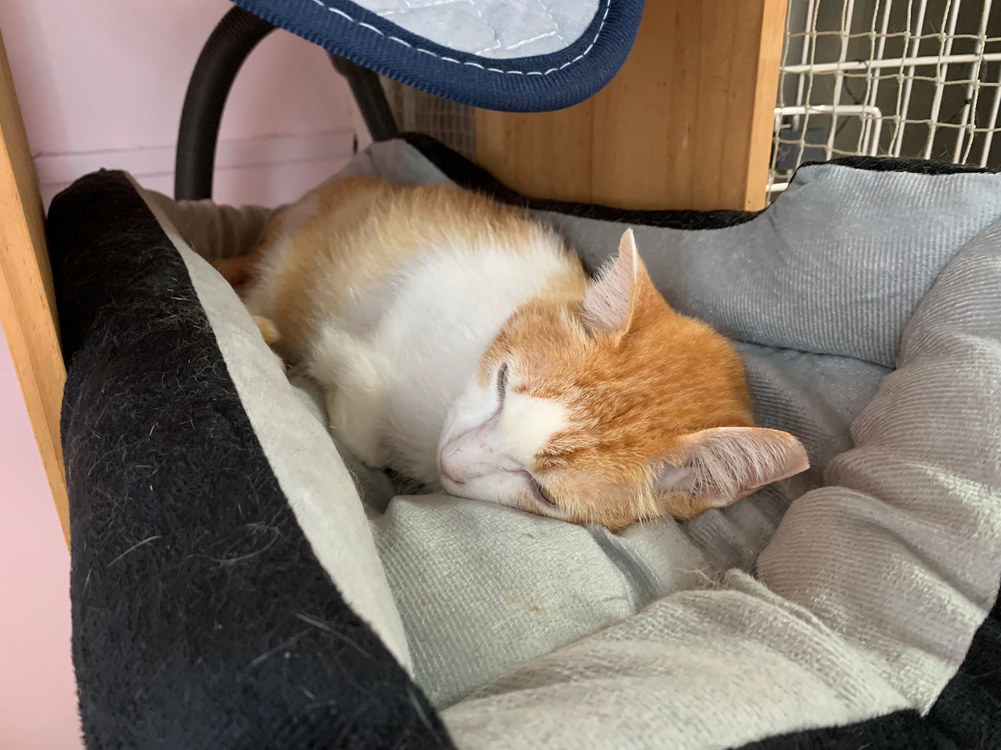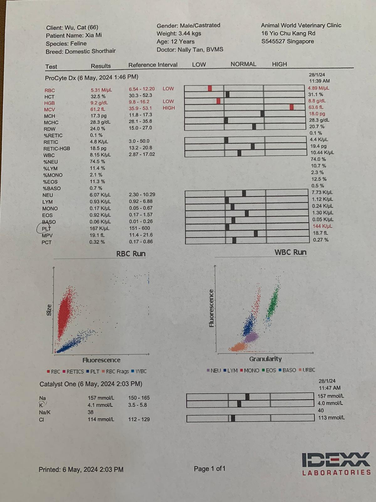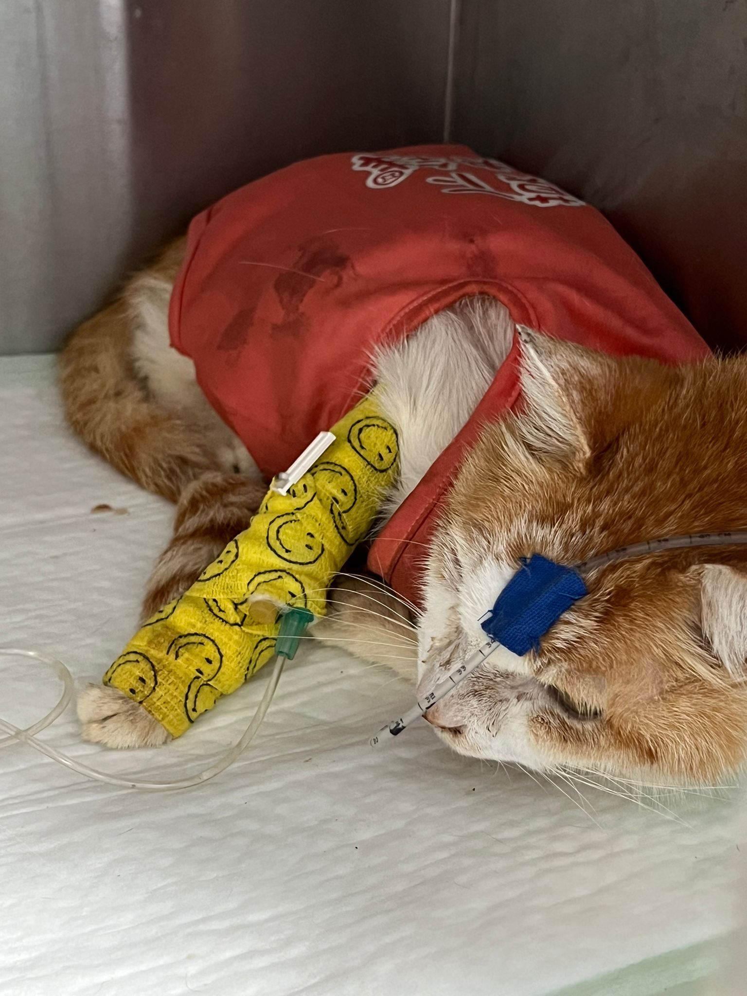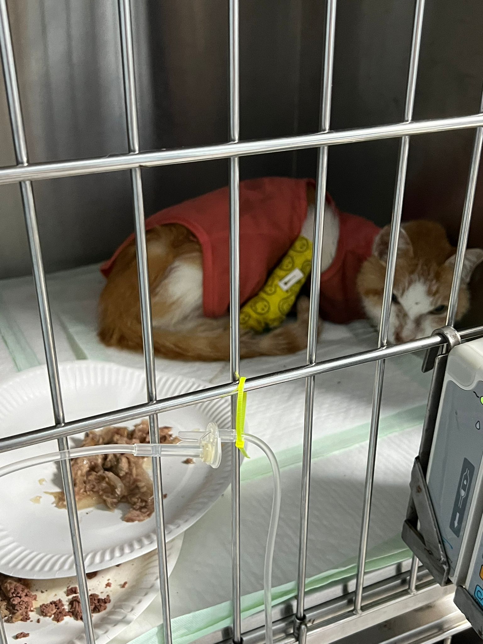 1pm: back to 猫房. He move back to room and I give him a big bed. Tube fed 40ml. Tube not v smooth alr. Subcut 100ml and given Clav n Cerenia. tmr then start Marbo and I have to check his darbepoetin jab day.