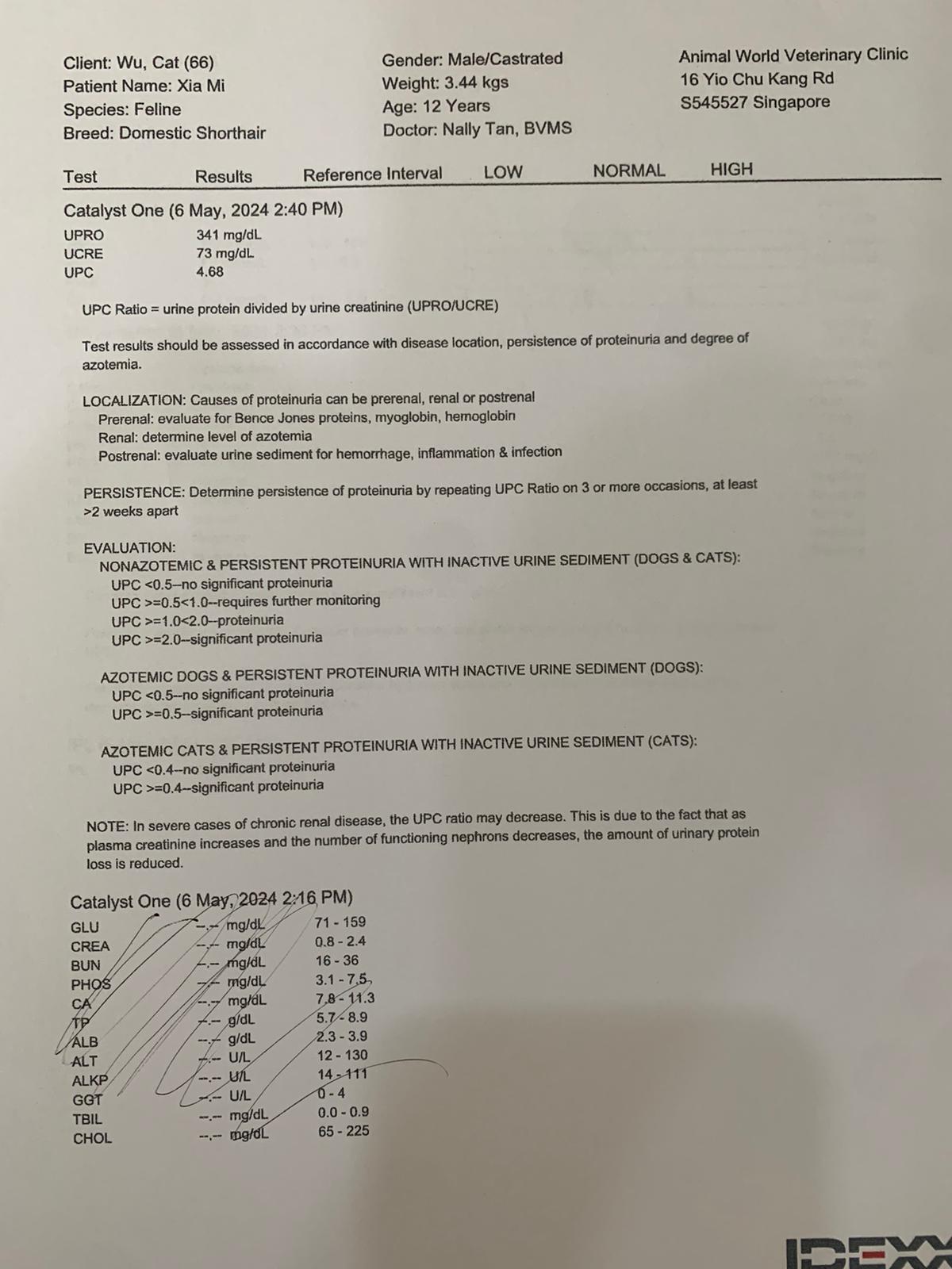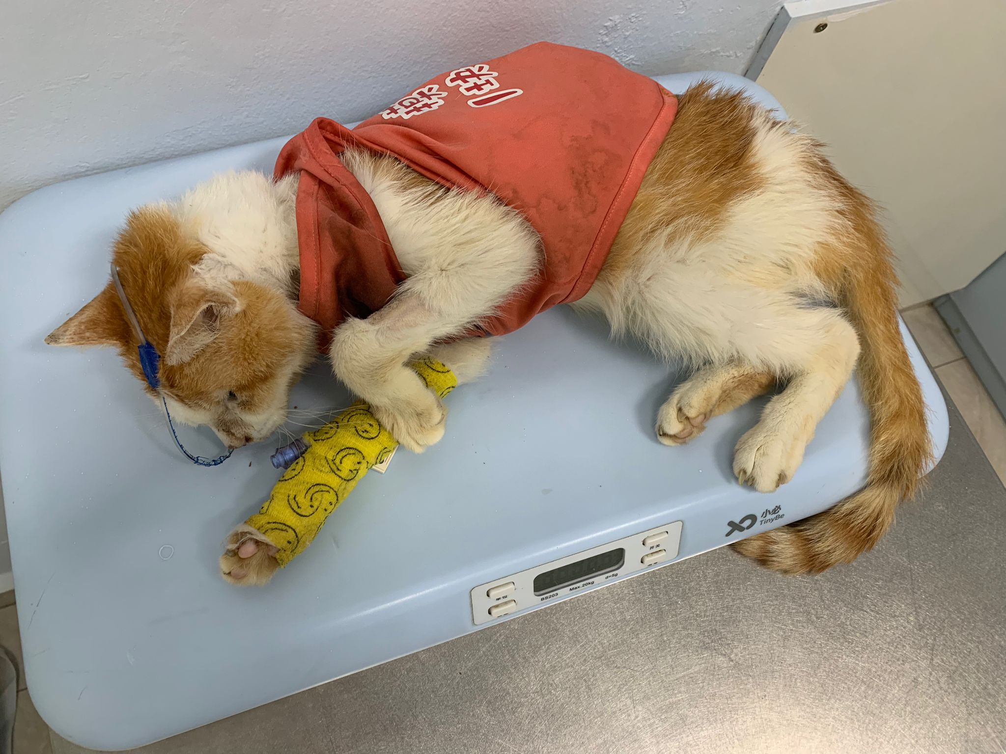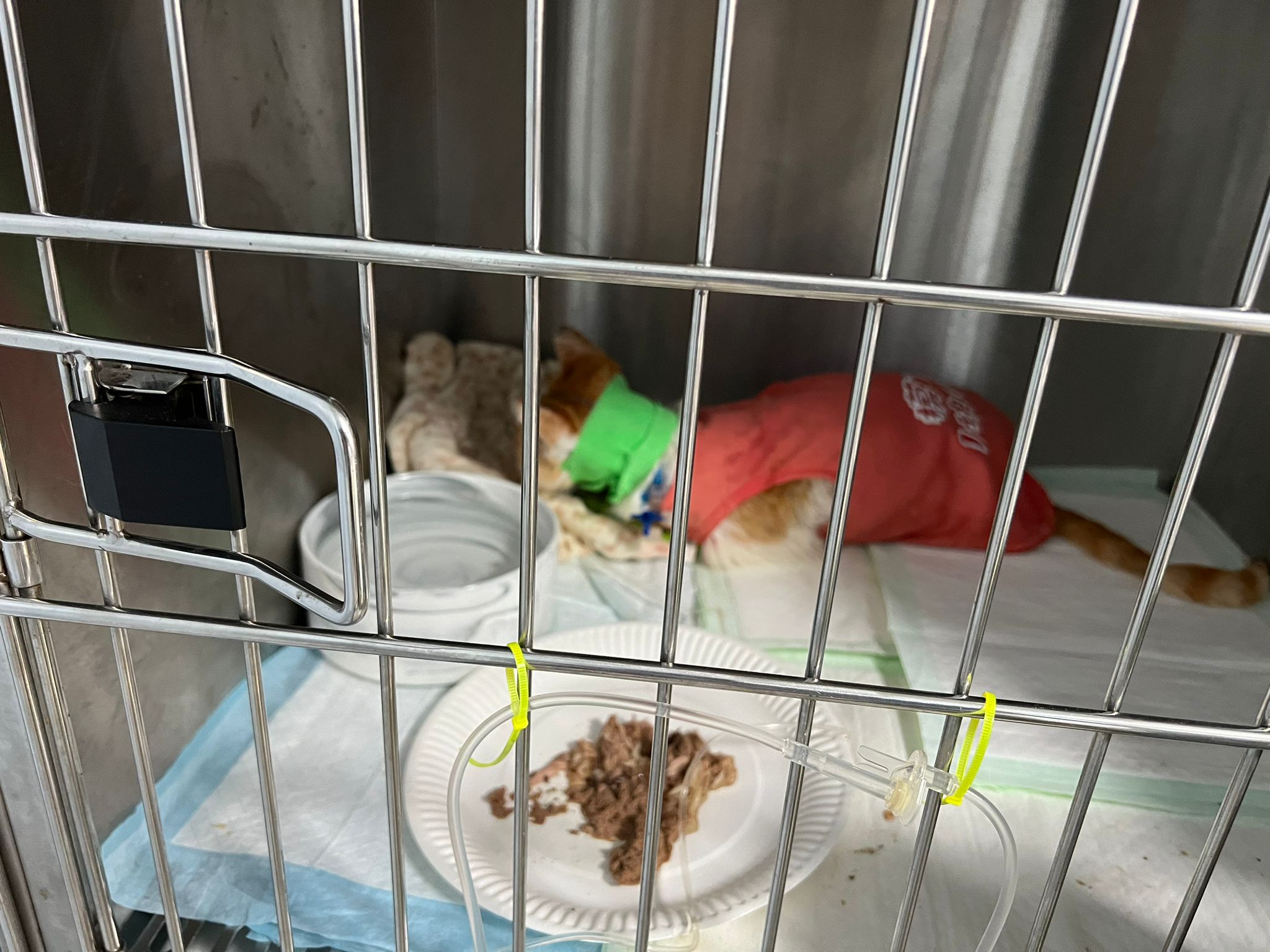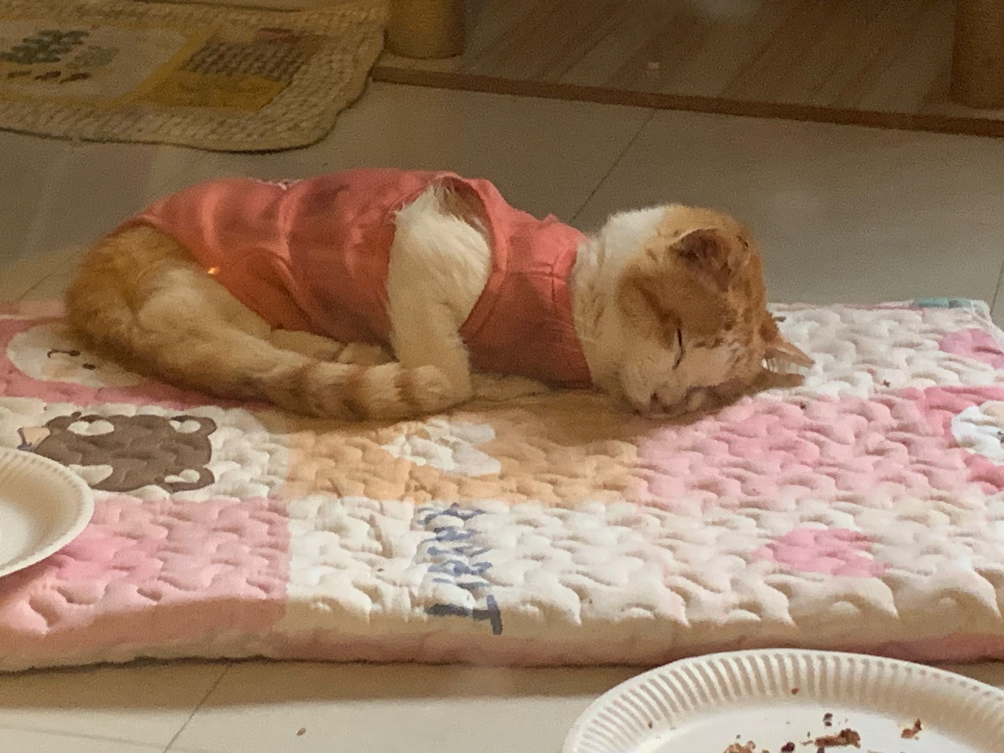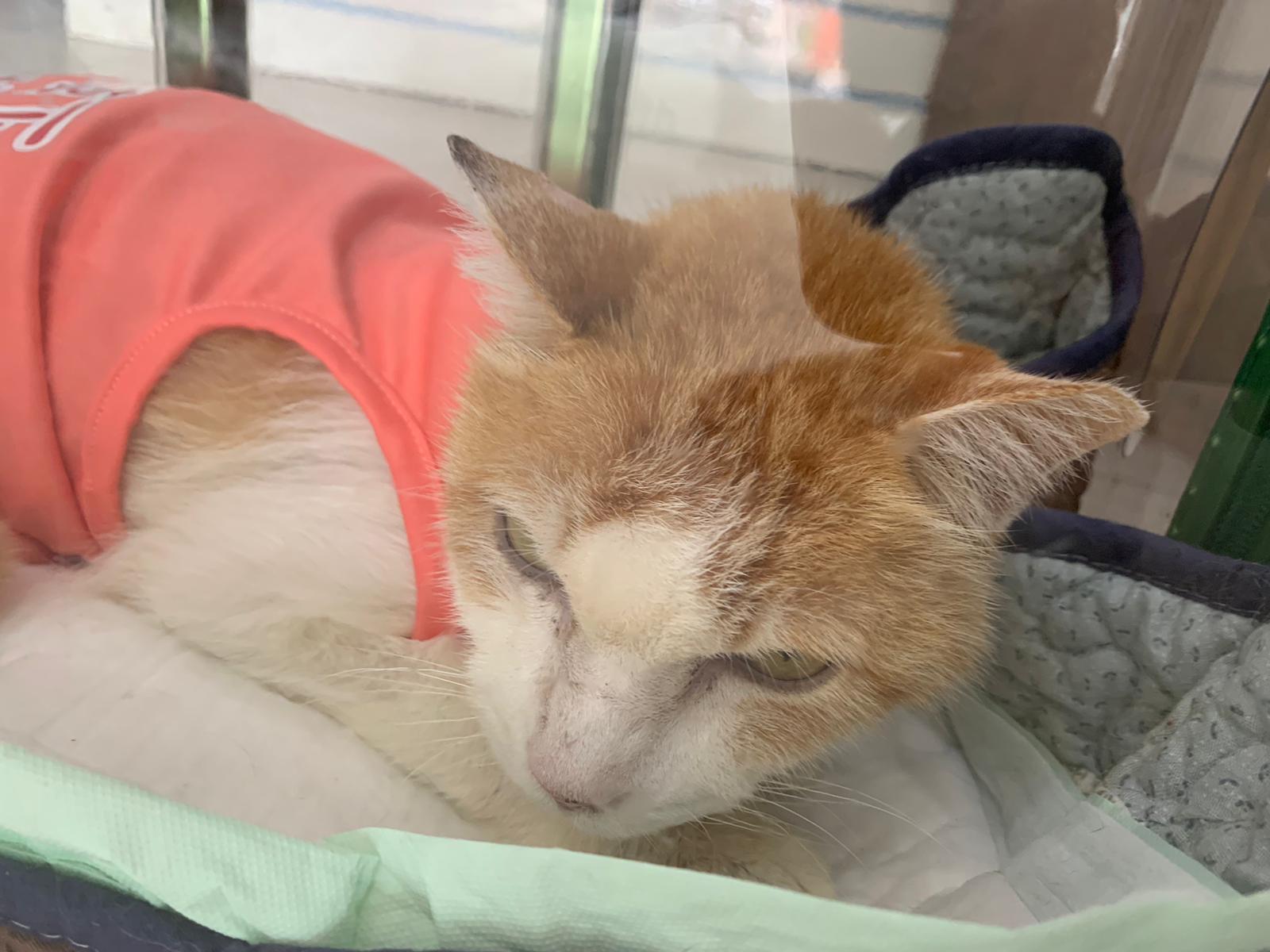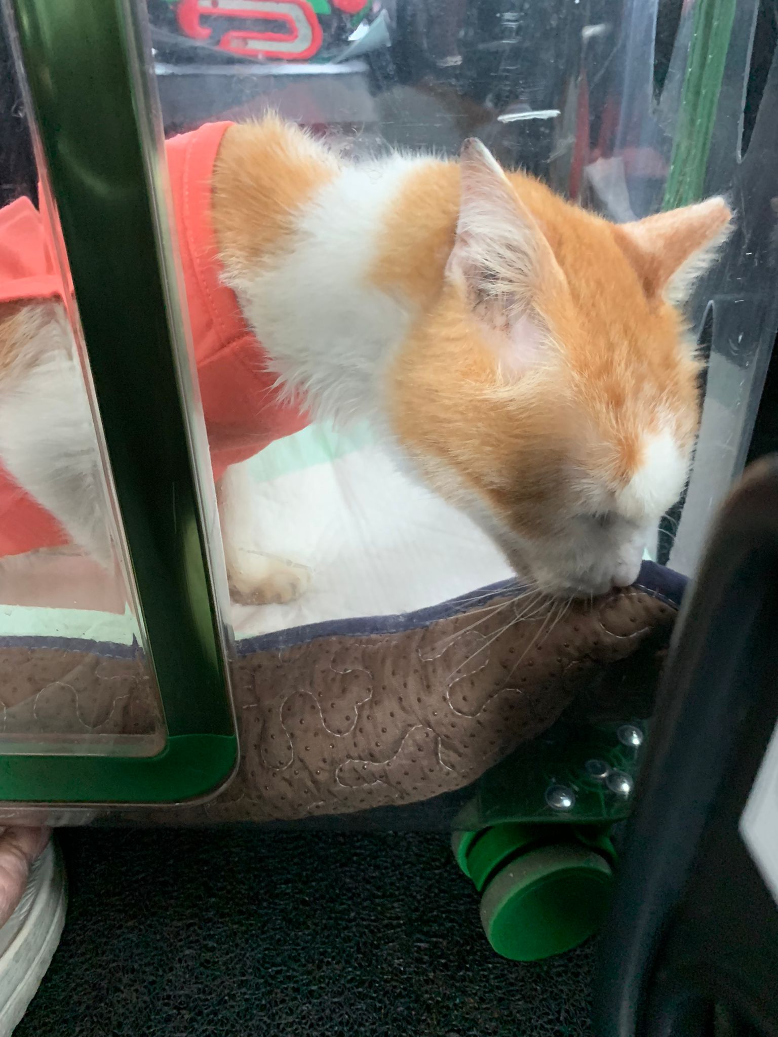 1pm: back to 猫房. He move back to room and I give him a big bed. Tube fed 40ml. Tube not v smooth alr. Subcut 100ml and given Clav n Cerenia. tmr then start Marbo and I have to check his darbepoetin jab day.