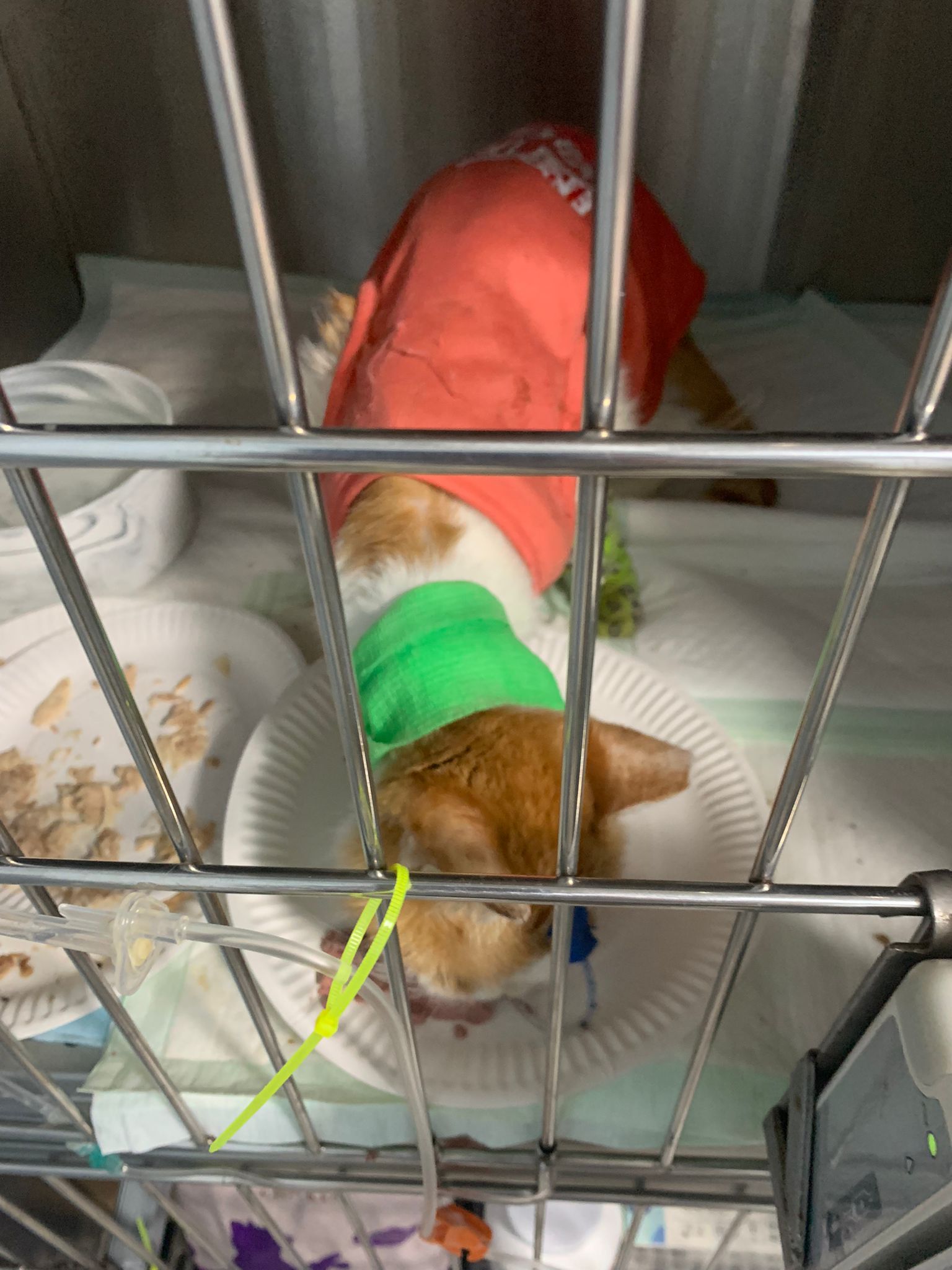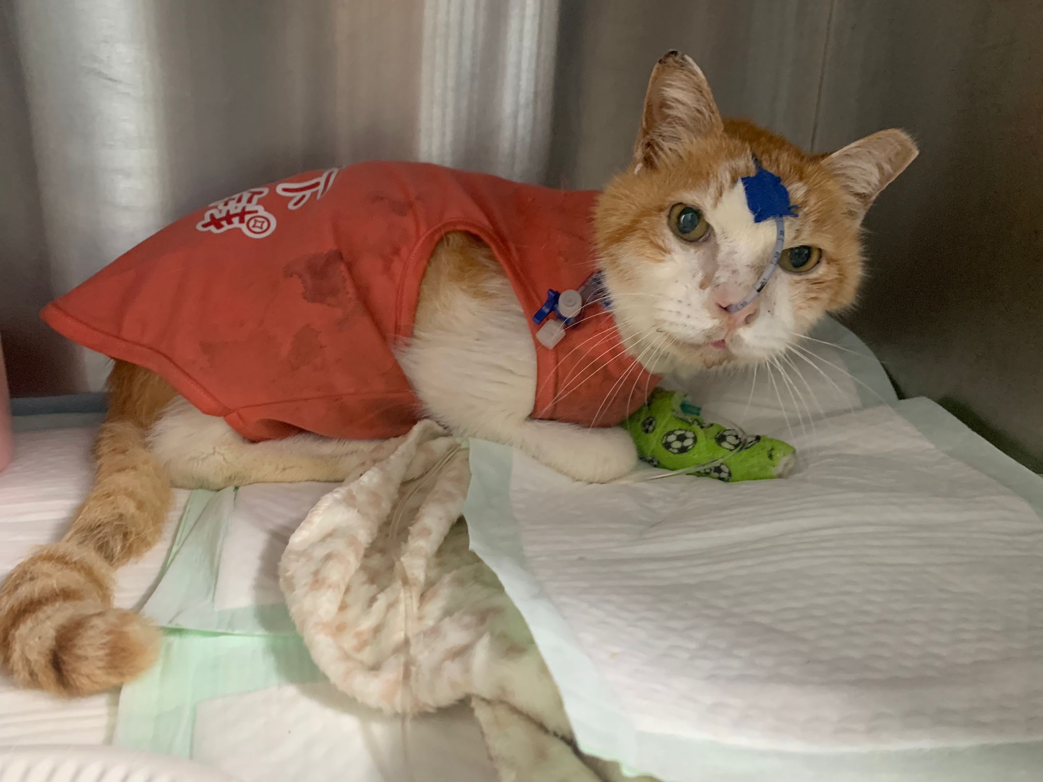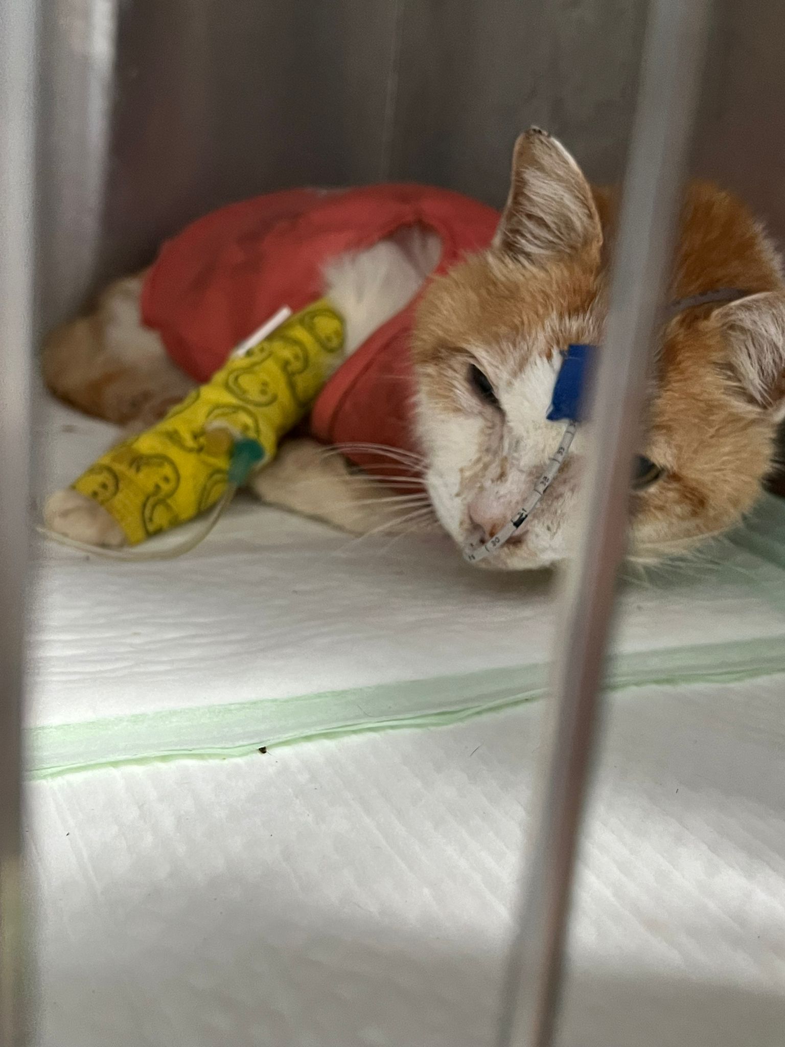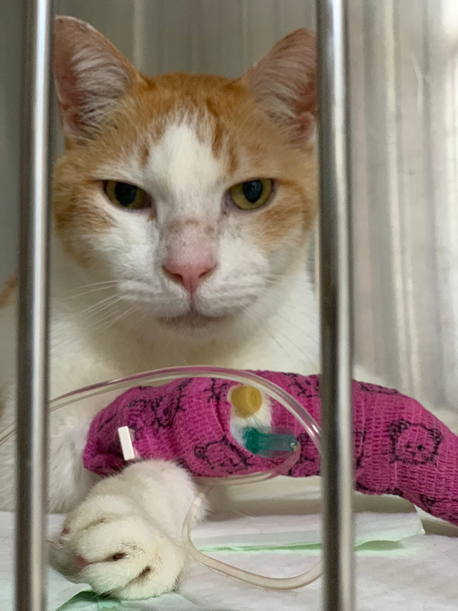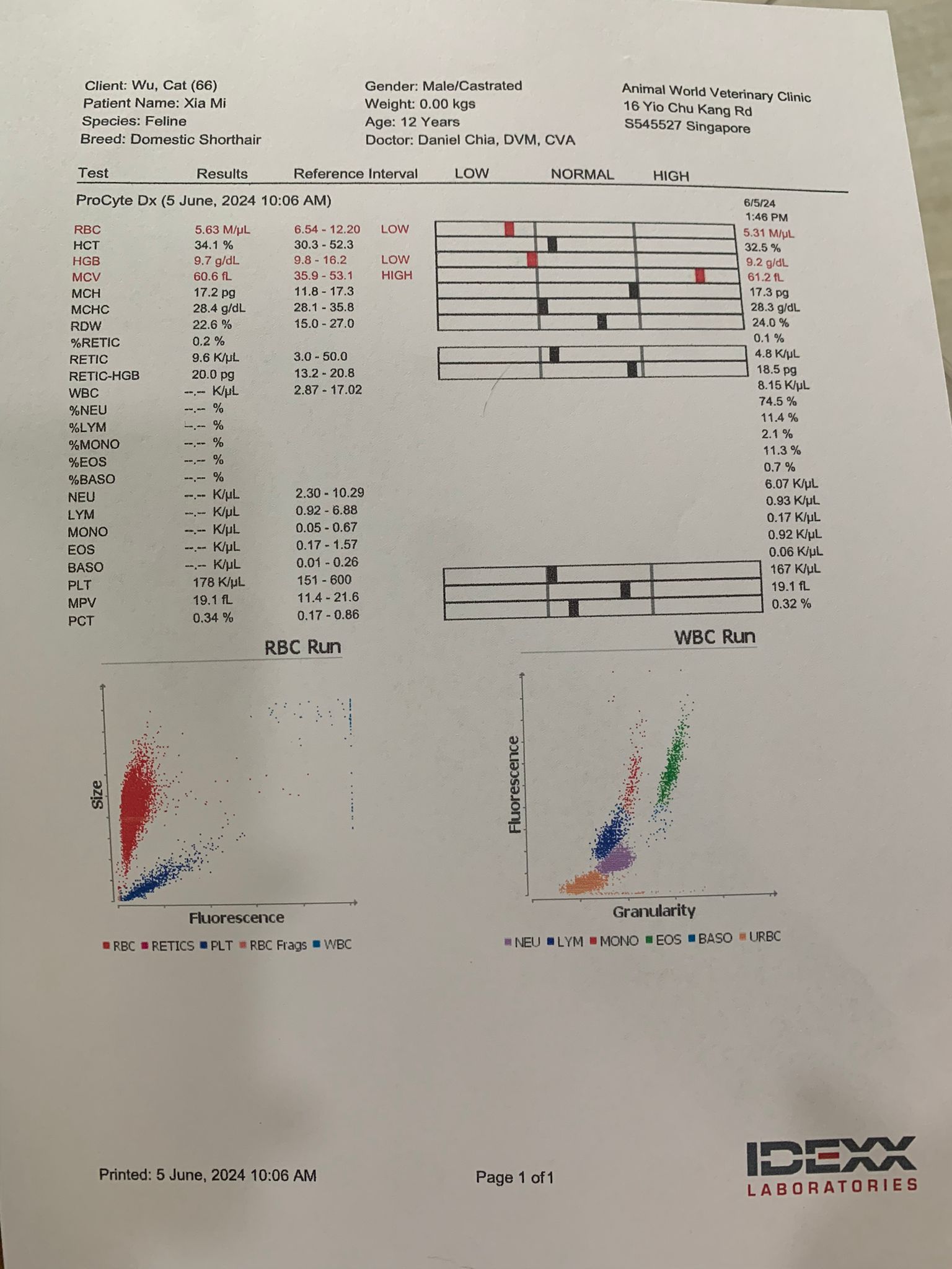 1pm: back to 猫房. He move back to room and I give him a big bed. Tube fed 40ml. Tube not v smooth alr. Subcut 100ml and given Clav n Cerenia. tmr then start Marbo and I have to check his darbepoetin jab day.