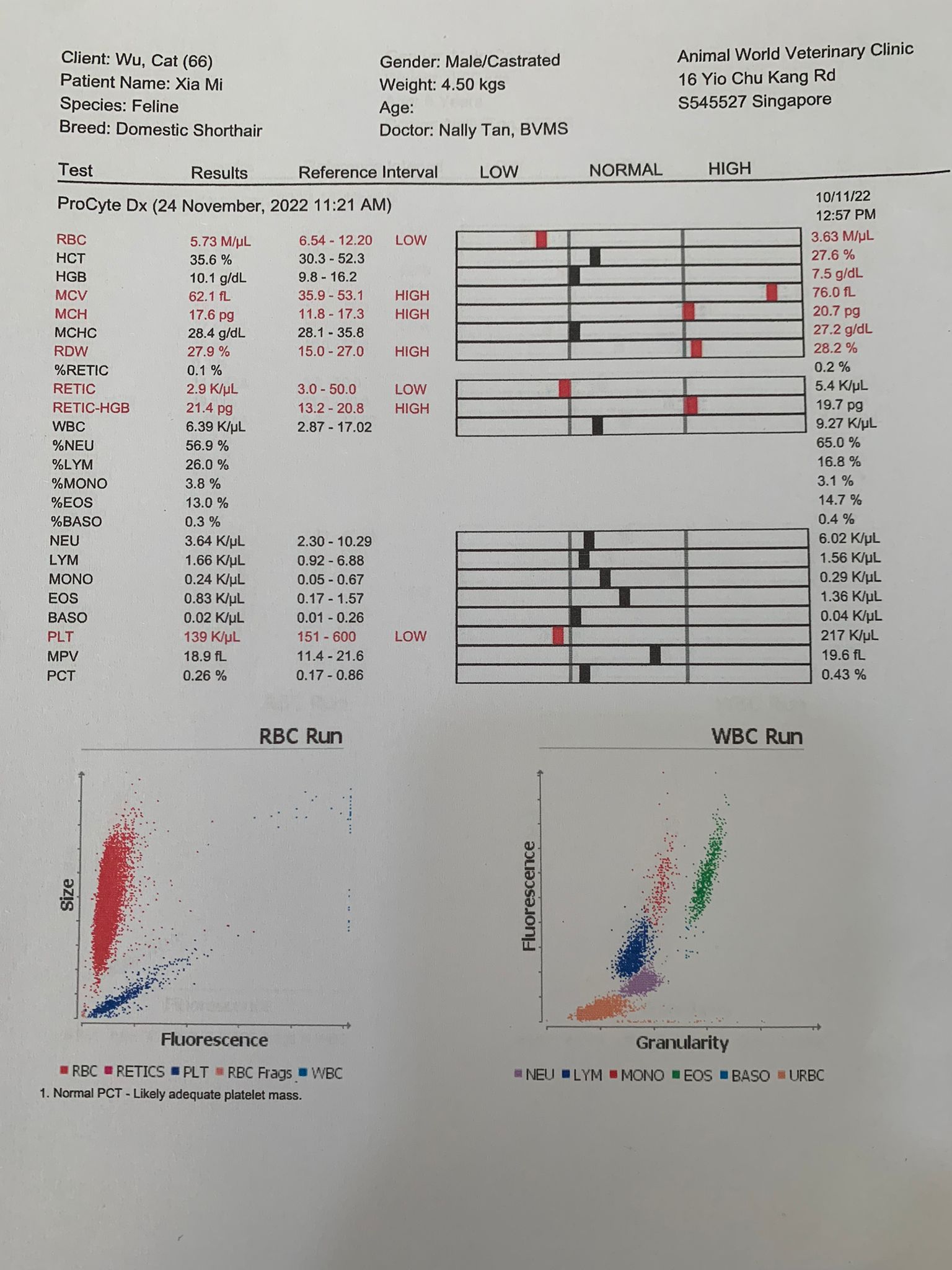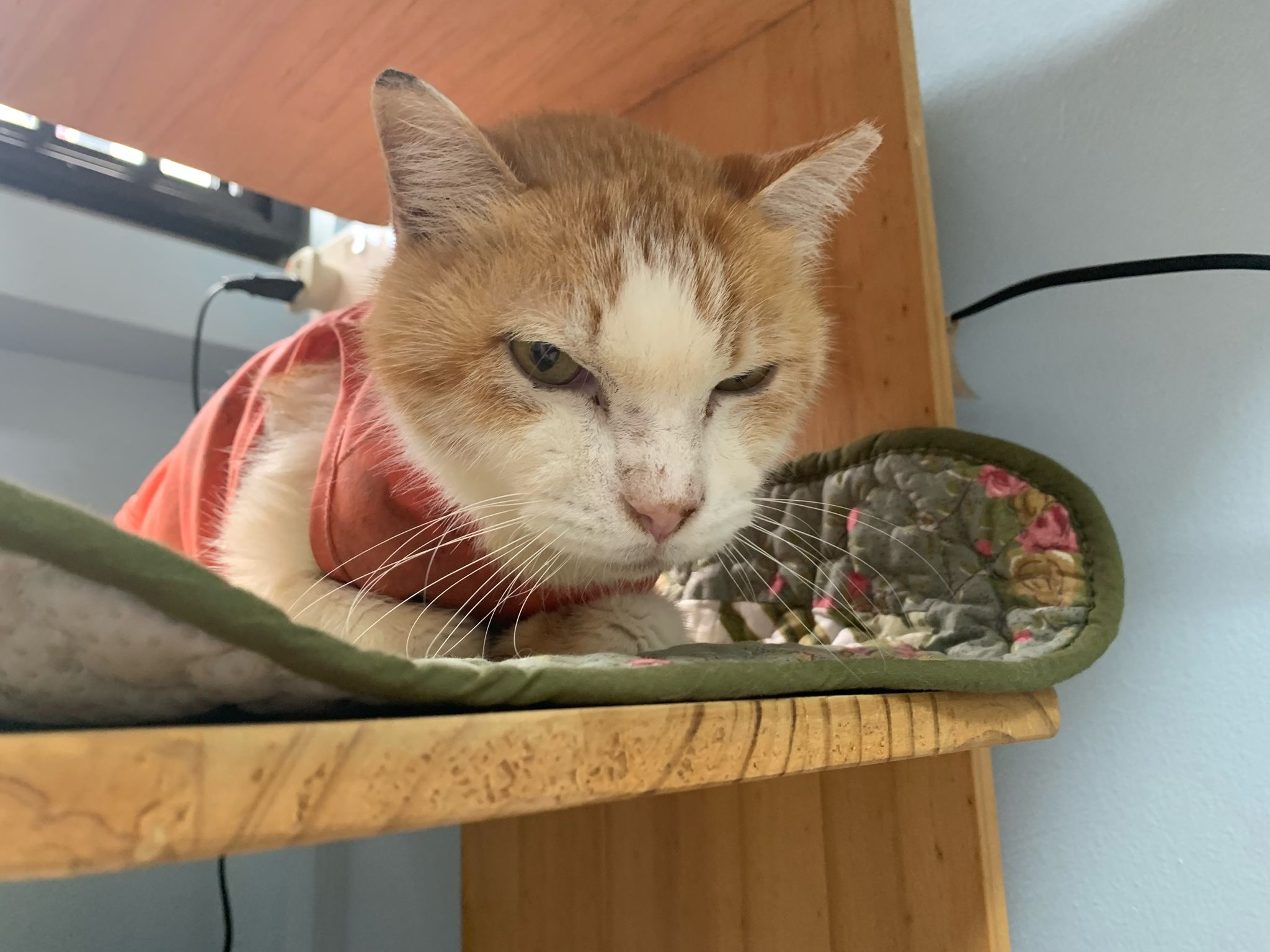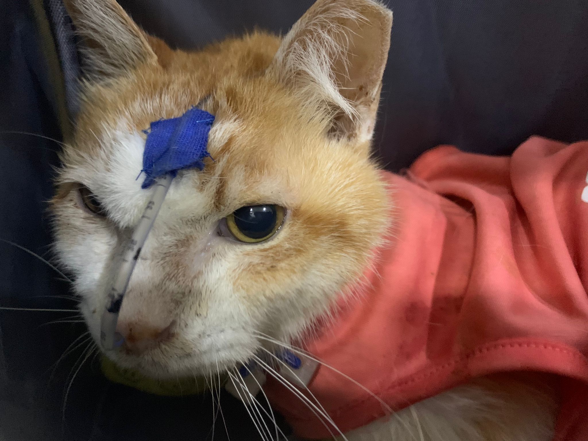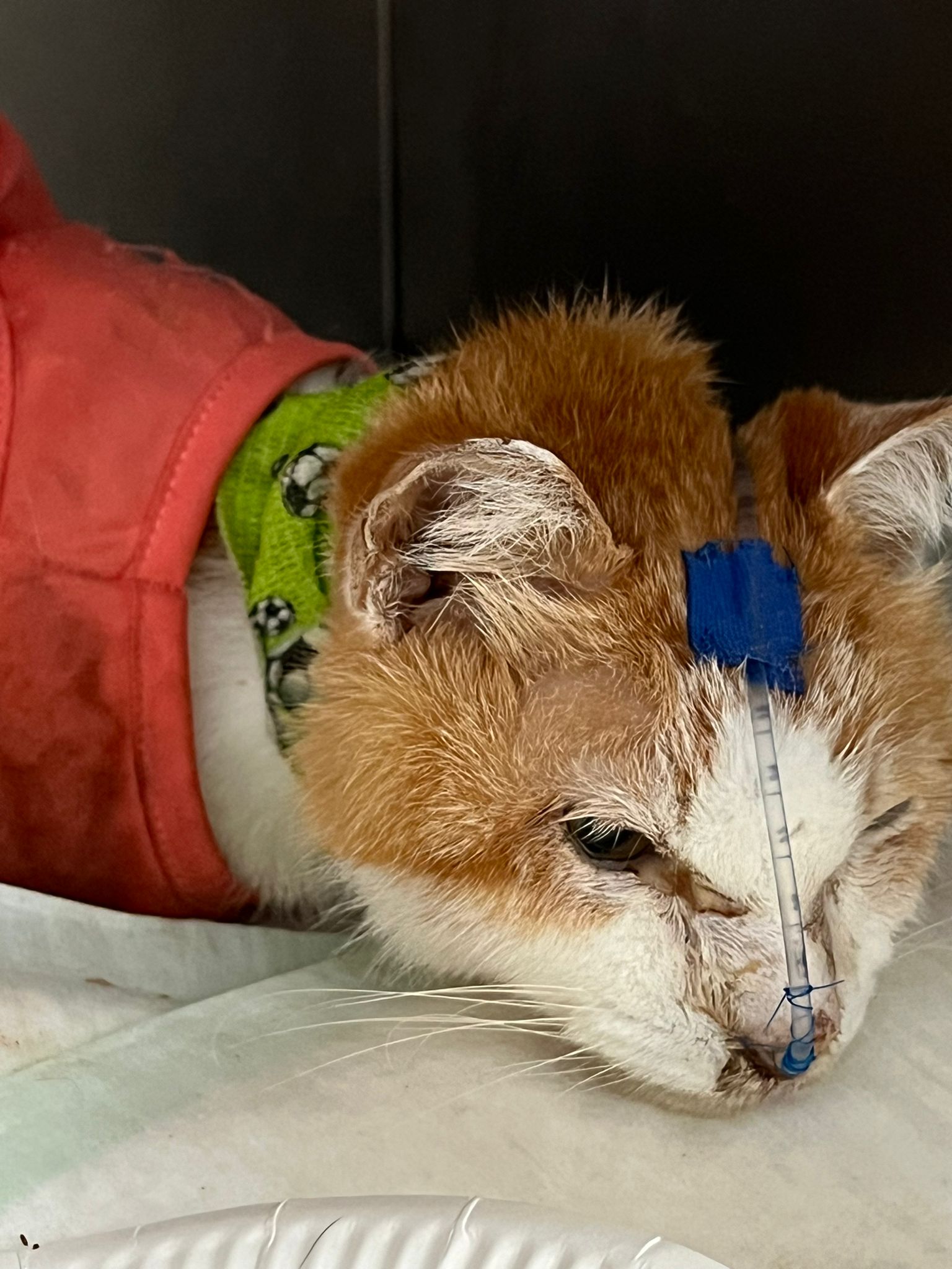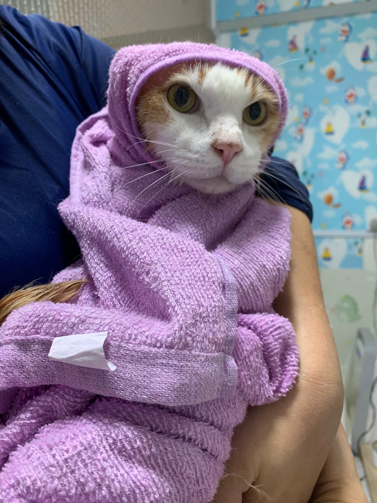 1pm: back to 猫房. He move back to room and I give him a big bed. Tube fed 40ml. Tube not v smooth alr. Subcut 100ml and given Clav n Cerenia. tmr then start Marbo and I have to check his darbepoetin jab day.