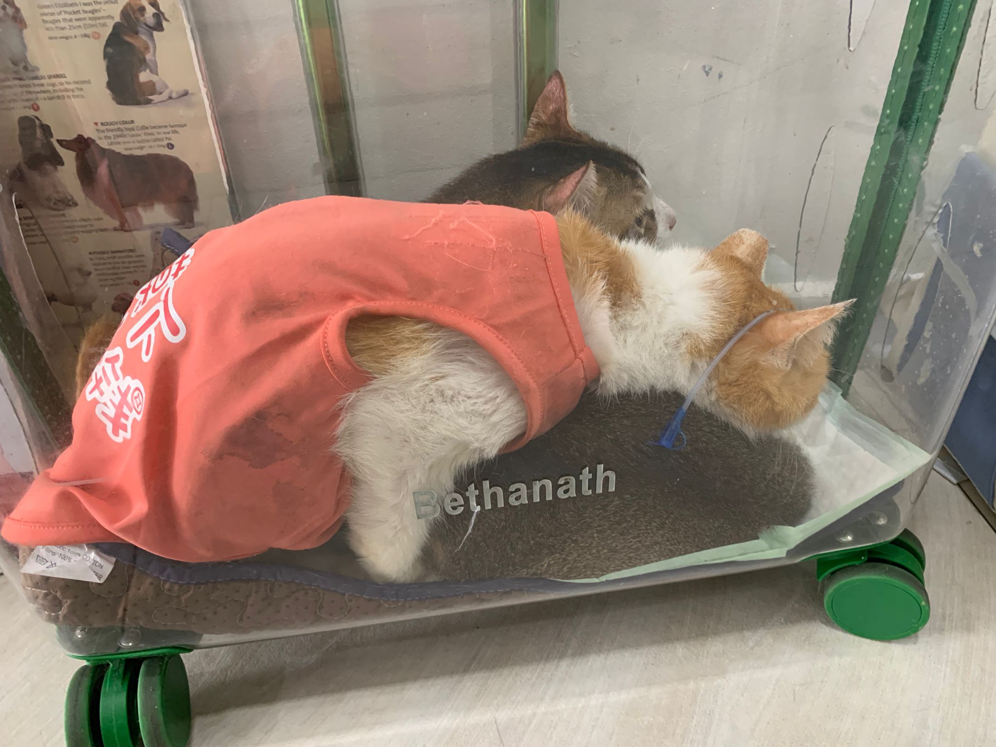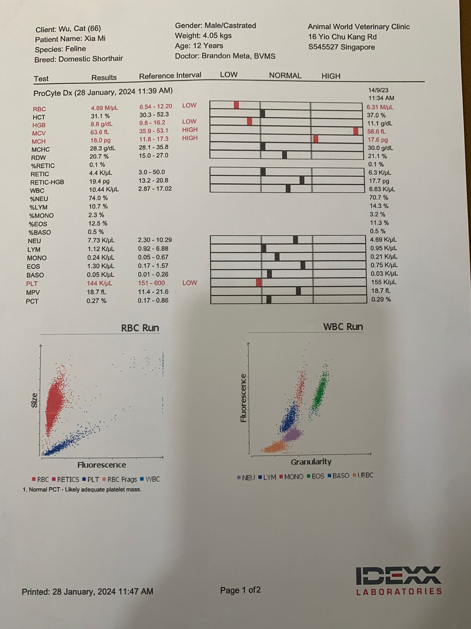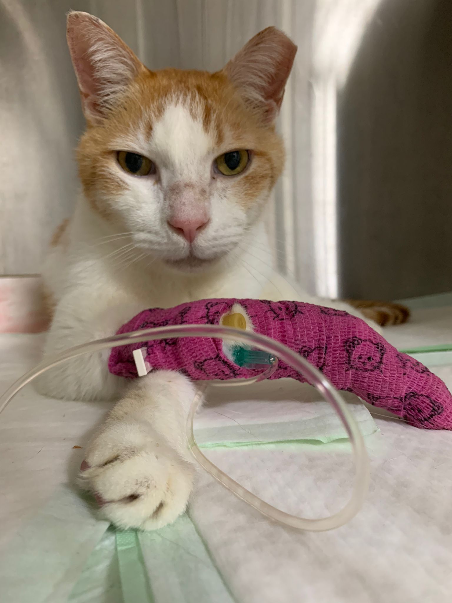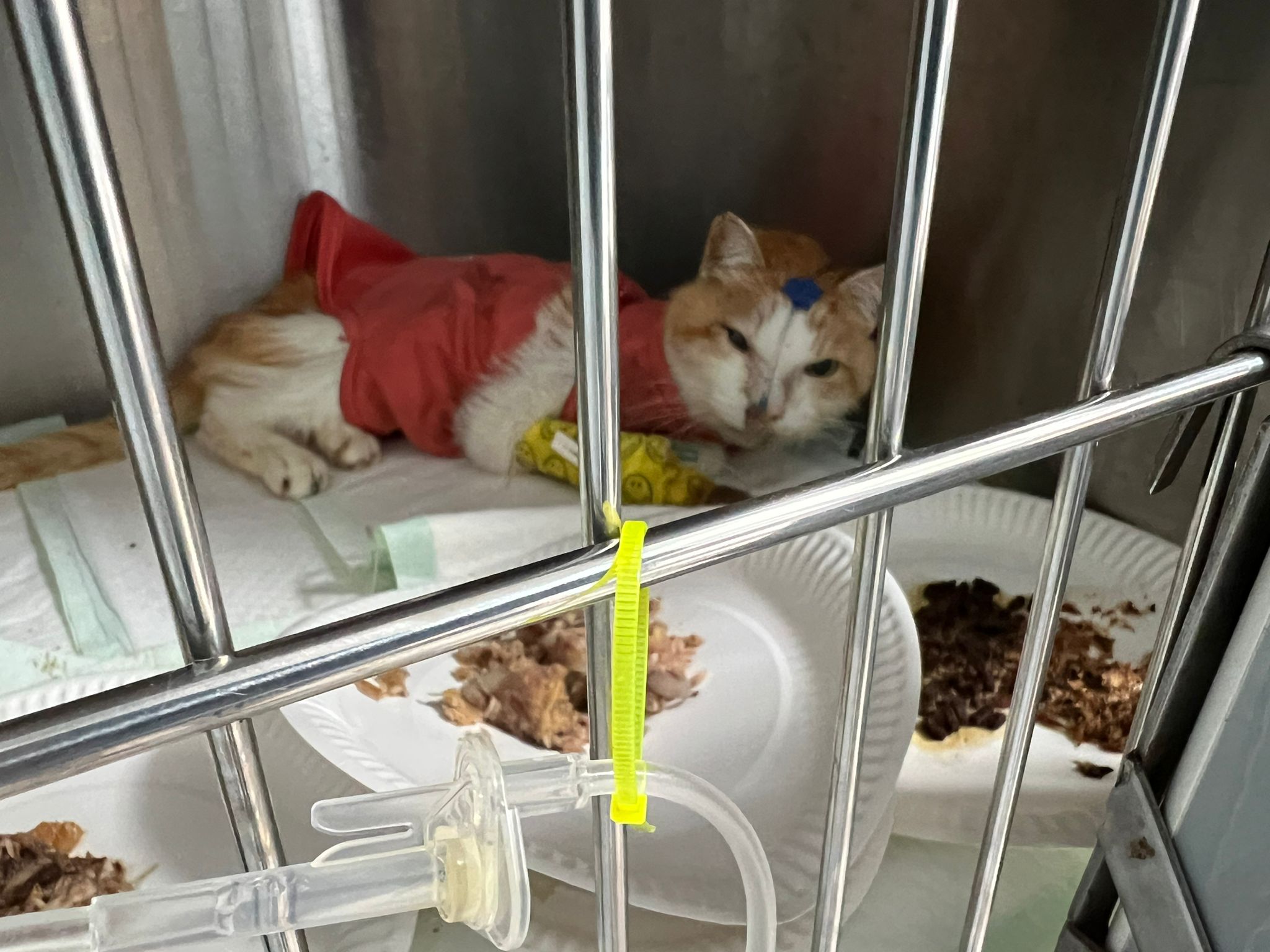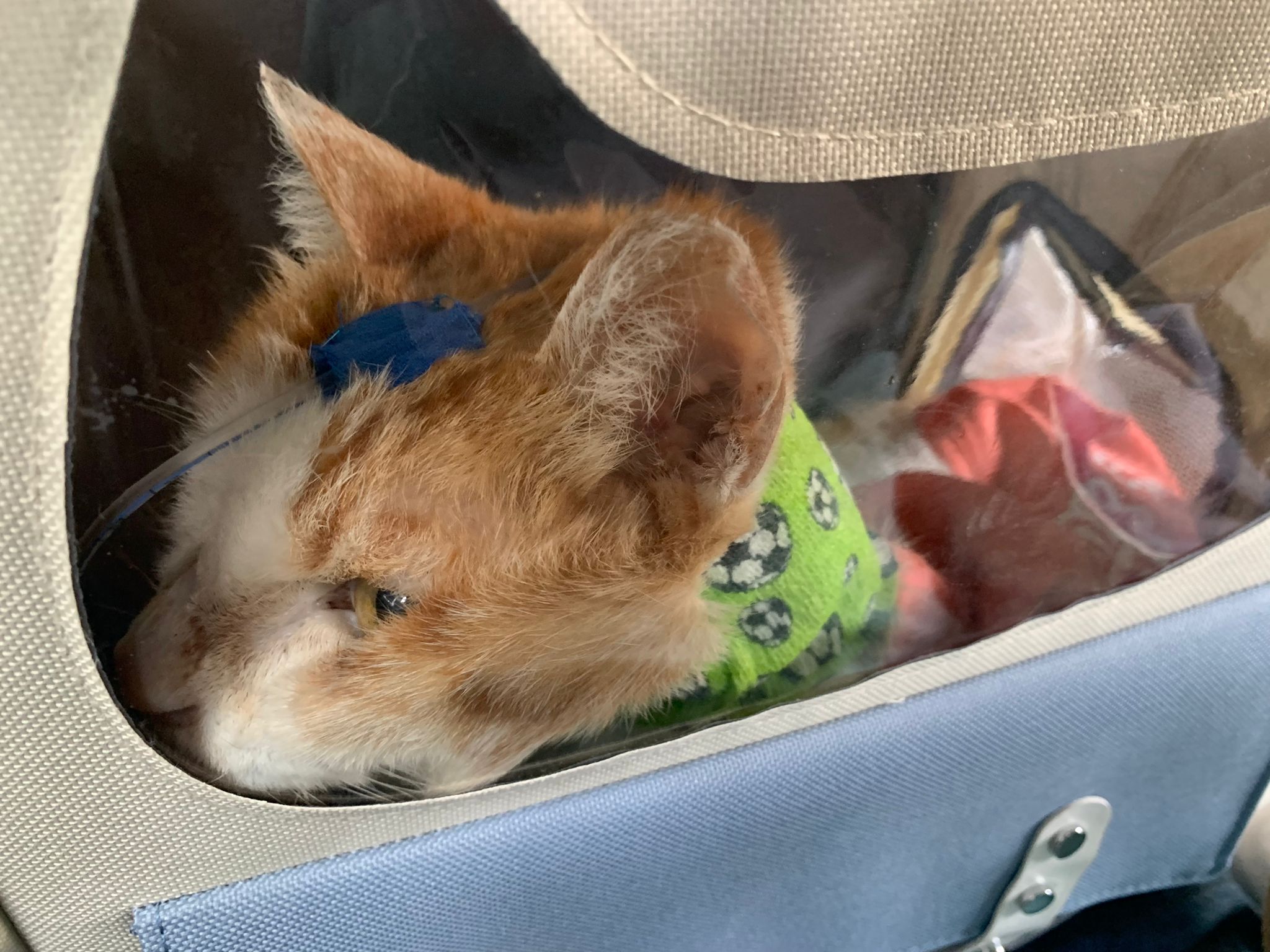 1pm: back to 猫房. He move back to room and I give him a big bed. Tube fed 40ml. Tube not v smooth alr. Subcut 100ml and given Clav n Cerenia. tmr then start Marbo and I have to check his darbepoetin jab day.