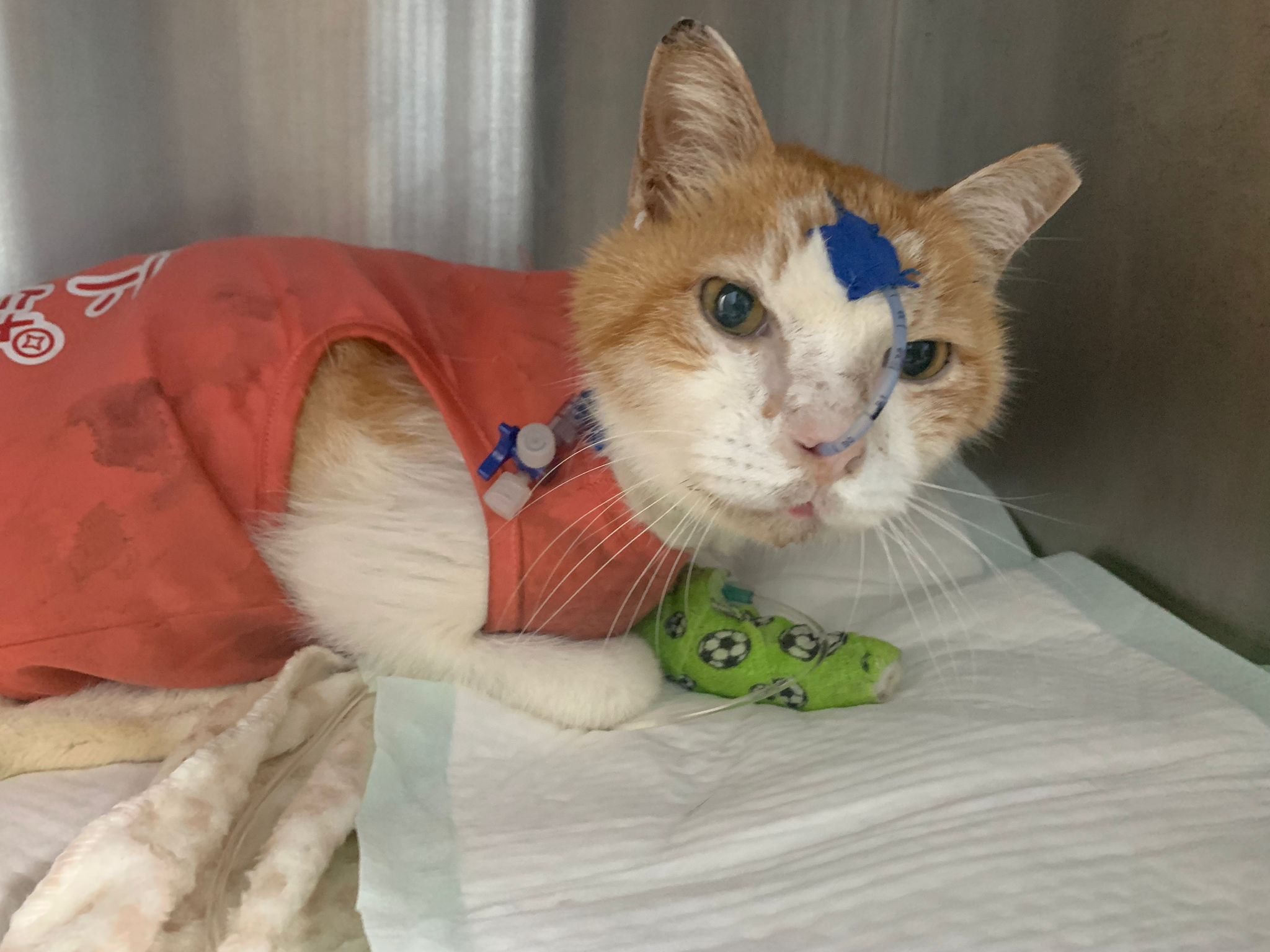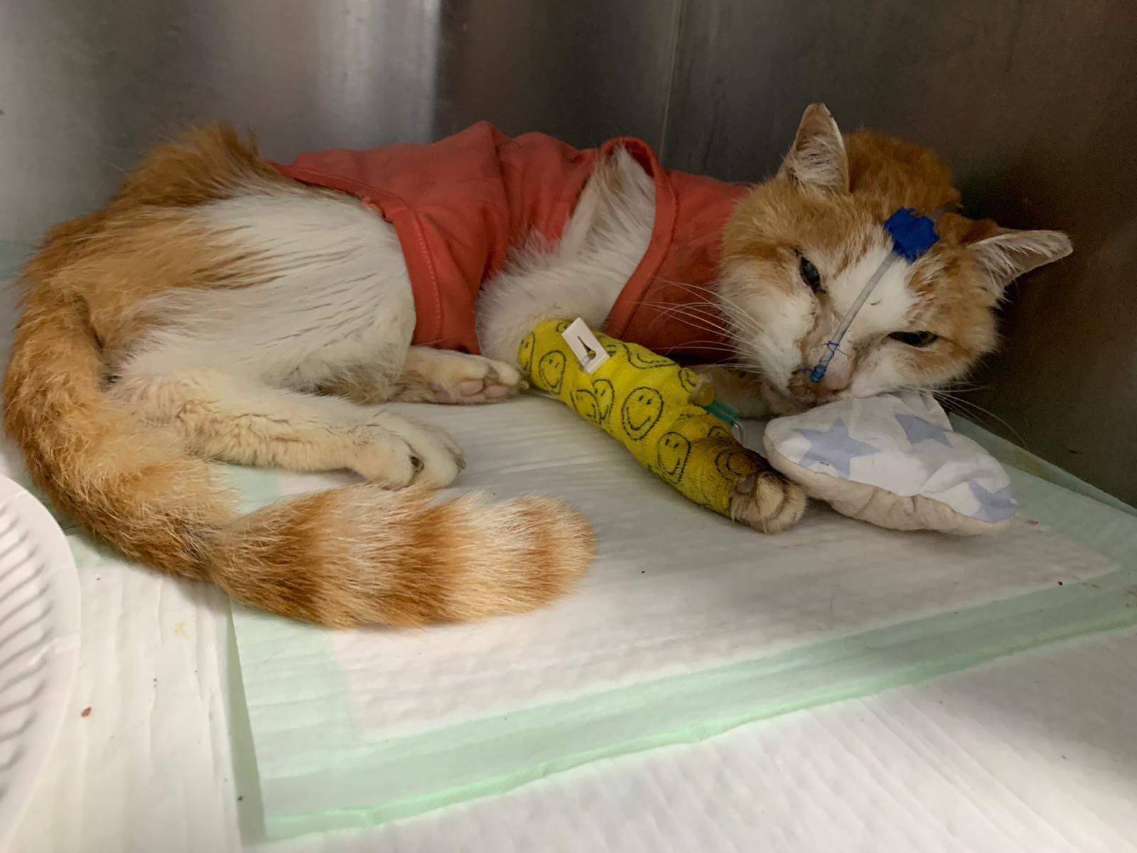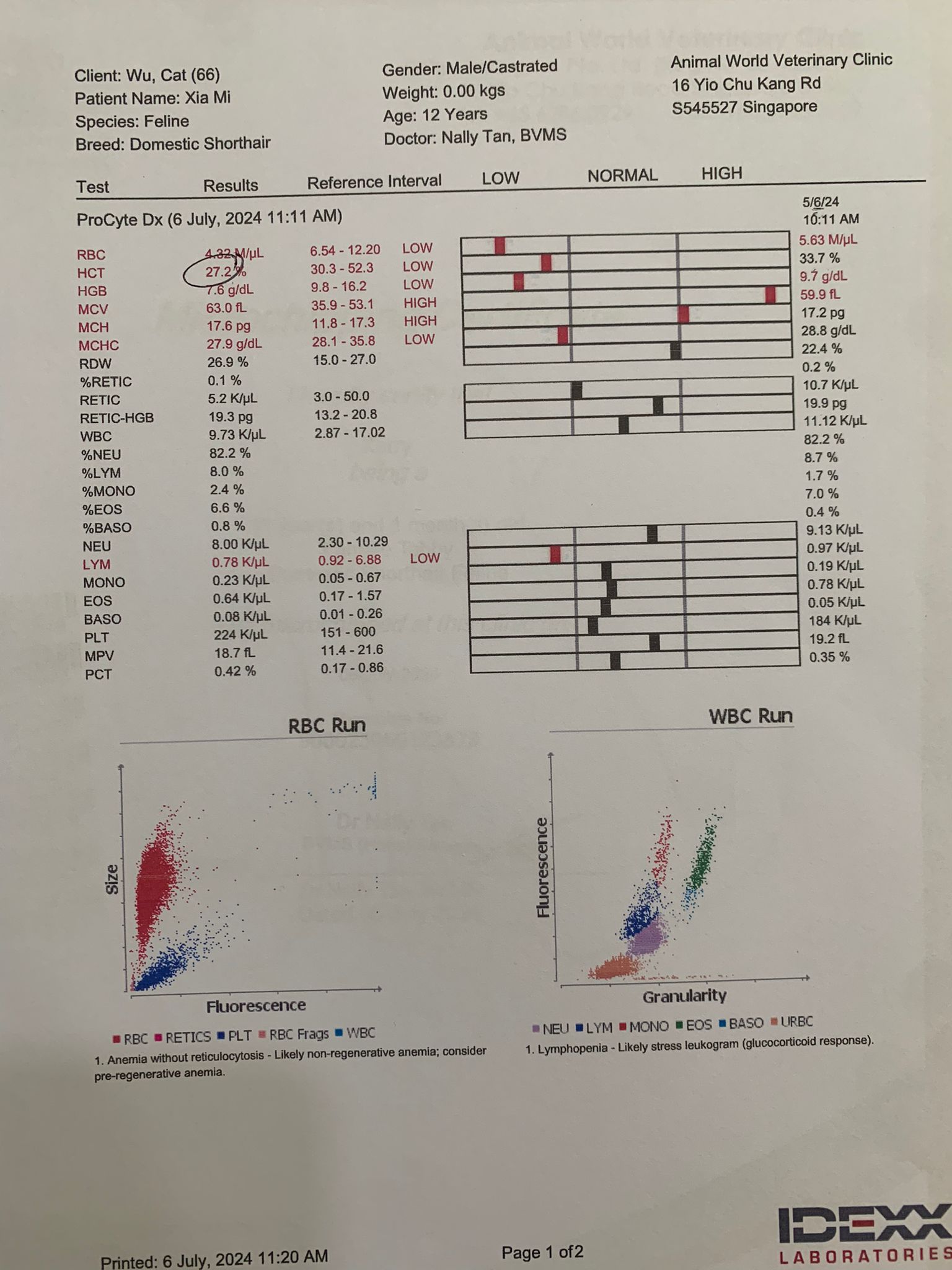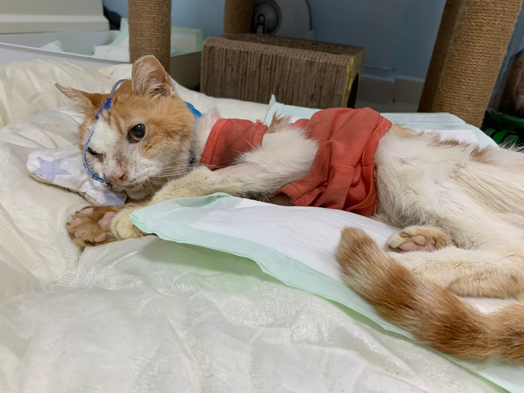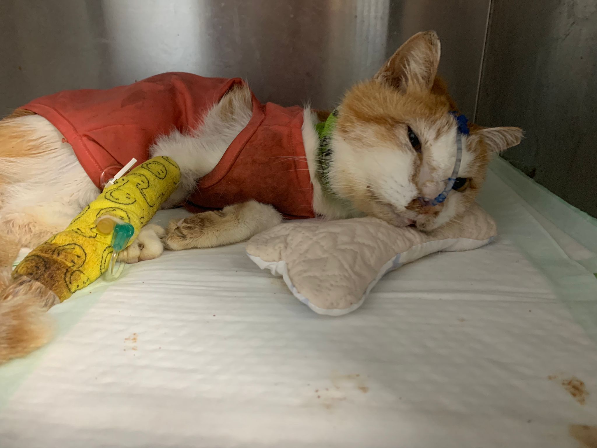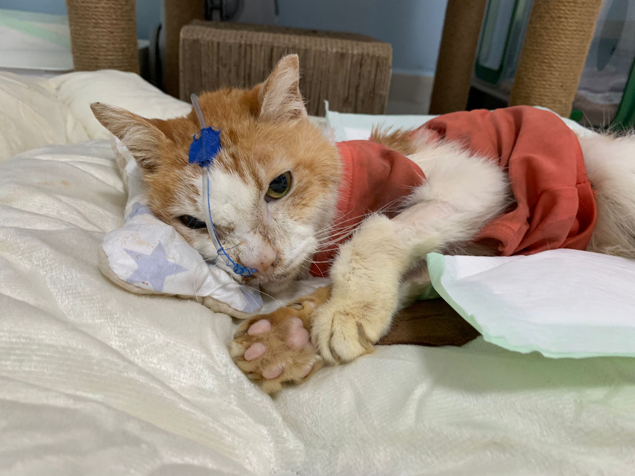 1pm: back to 猫房. He move back to room and I give him a big bed. Tube fed 40ml. Tube not v smooth alr. Subcut 100ml and given Clav n Cerenia. tmr then start Marbo and I have to check his darbepoetin jab day.