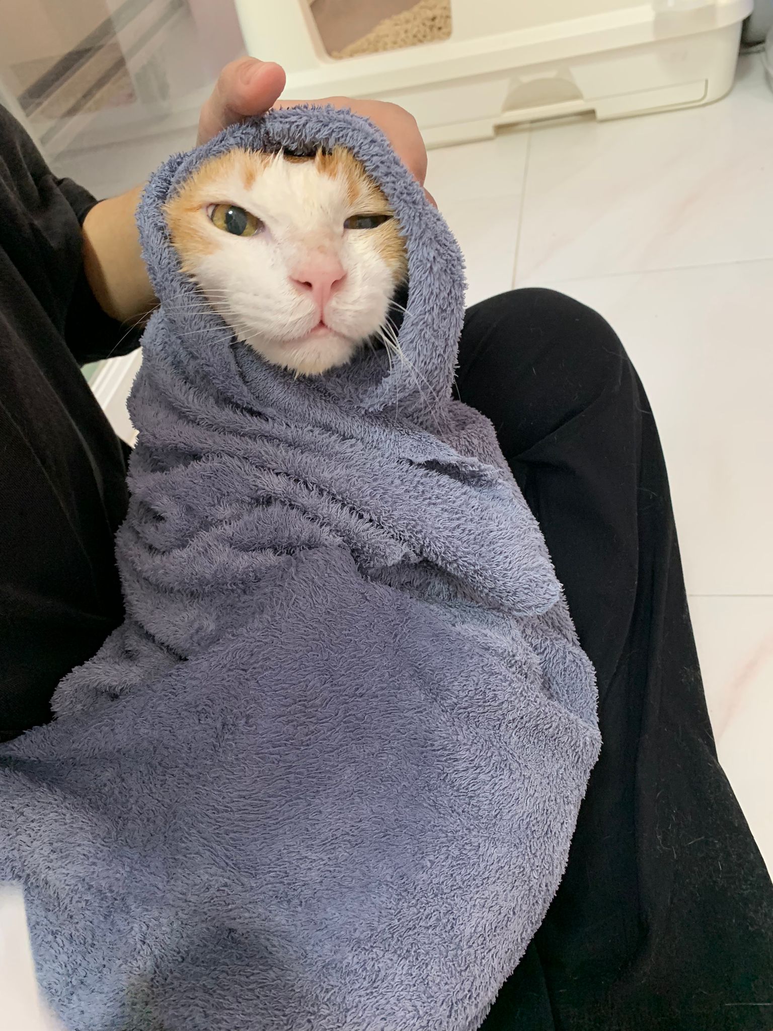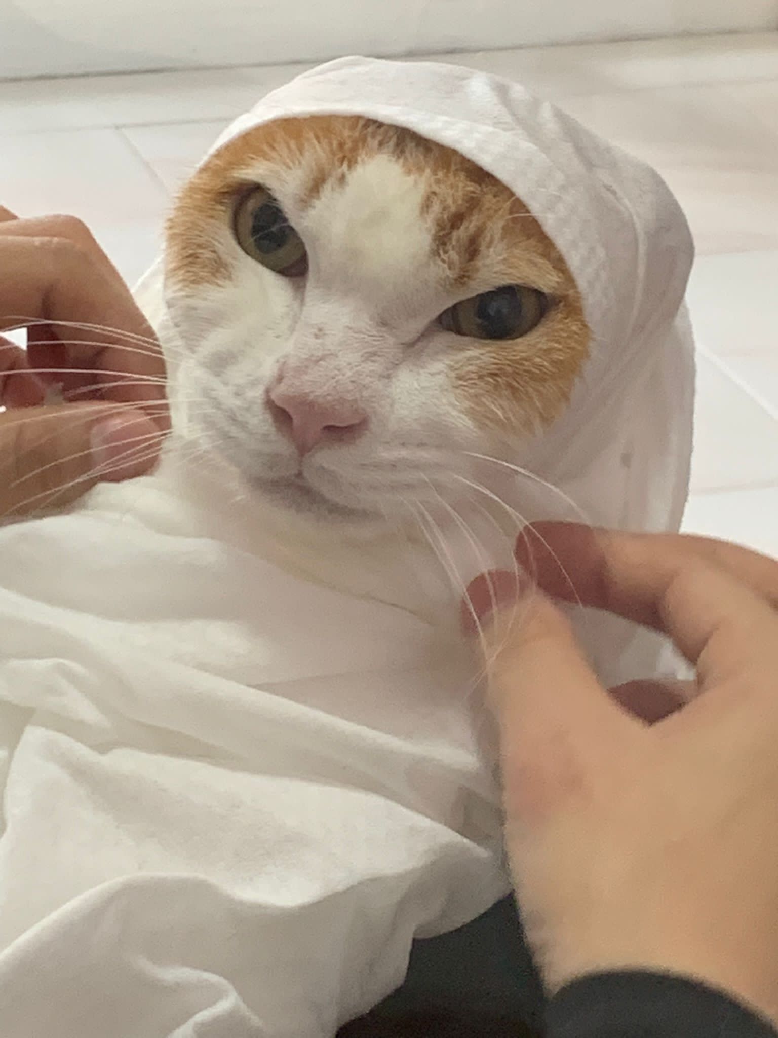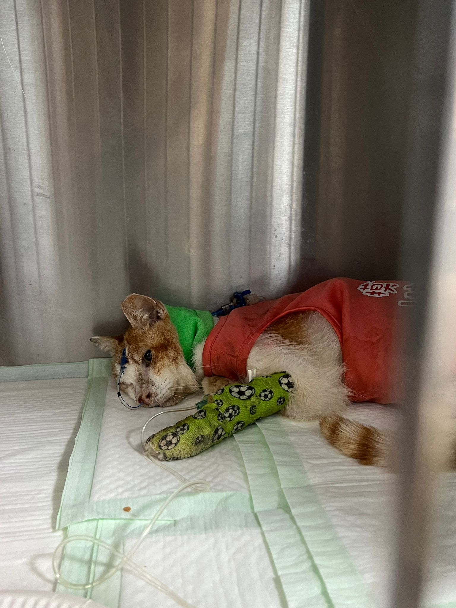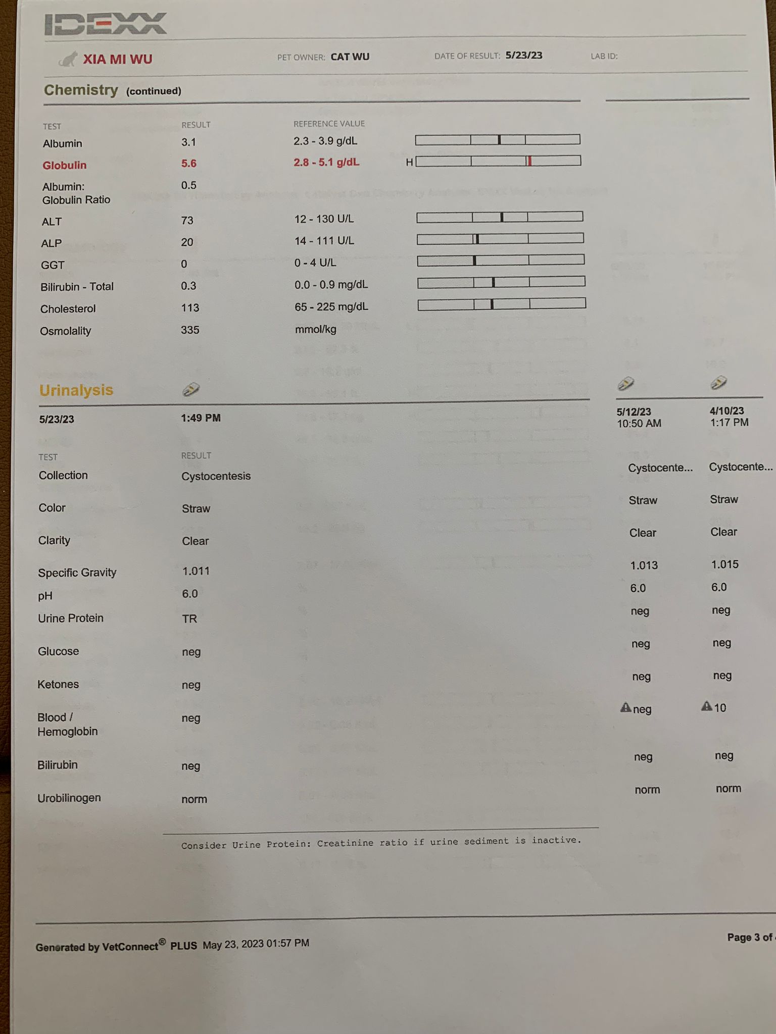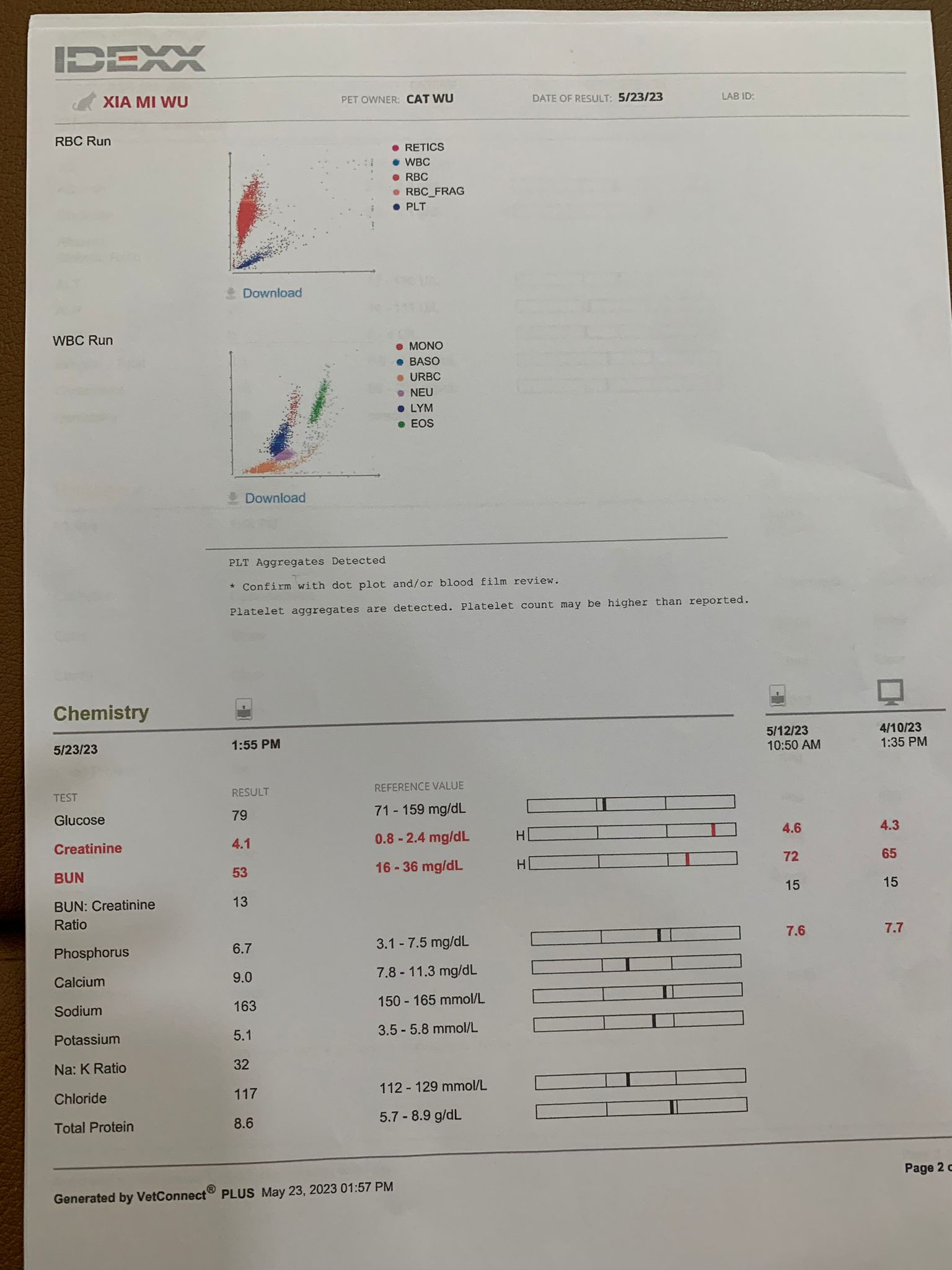 1pm: back to 猫房. He move back to room and I give him a big bed. Tube fed 40ml. Tube not v smooth alr. Subcut 100ml and given Clav n Cerenia. tmr then start Marbo and I have to check his darbepoetin jab day.