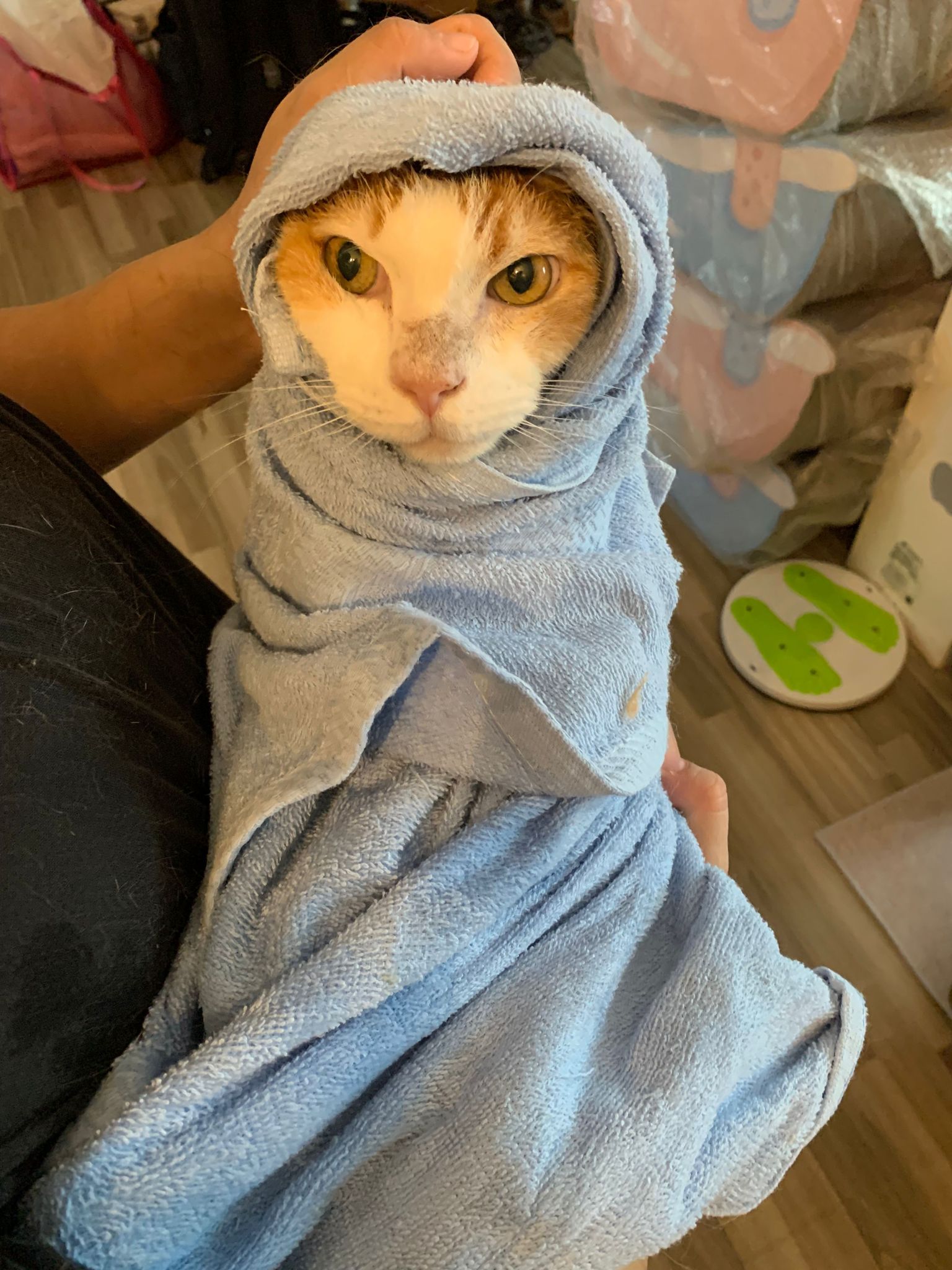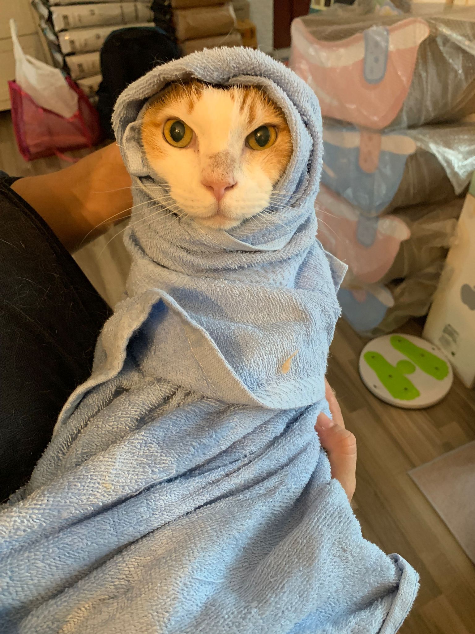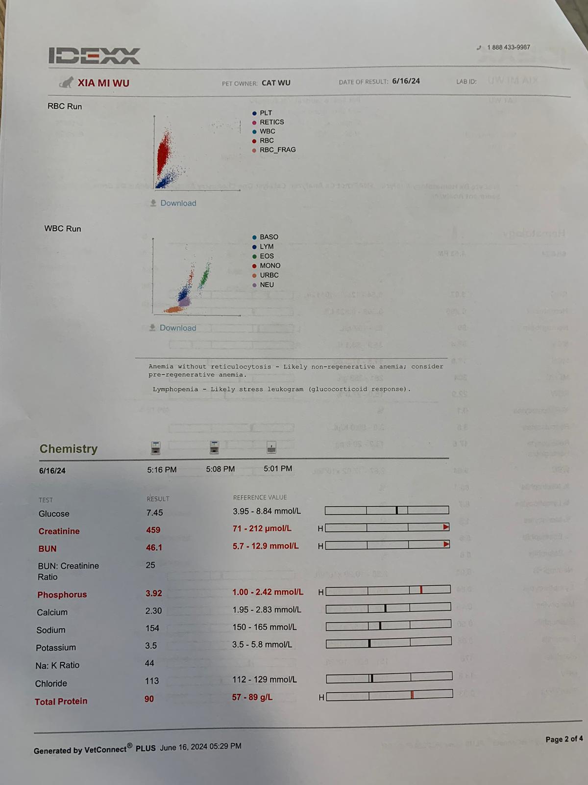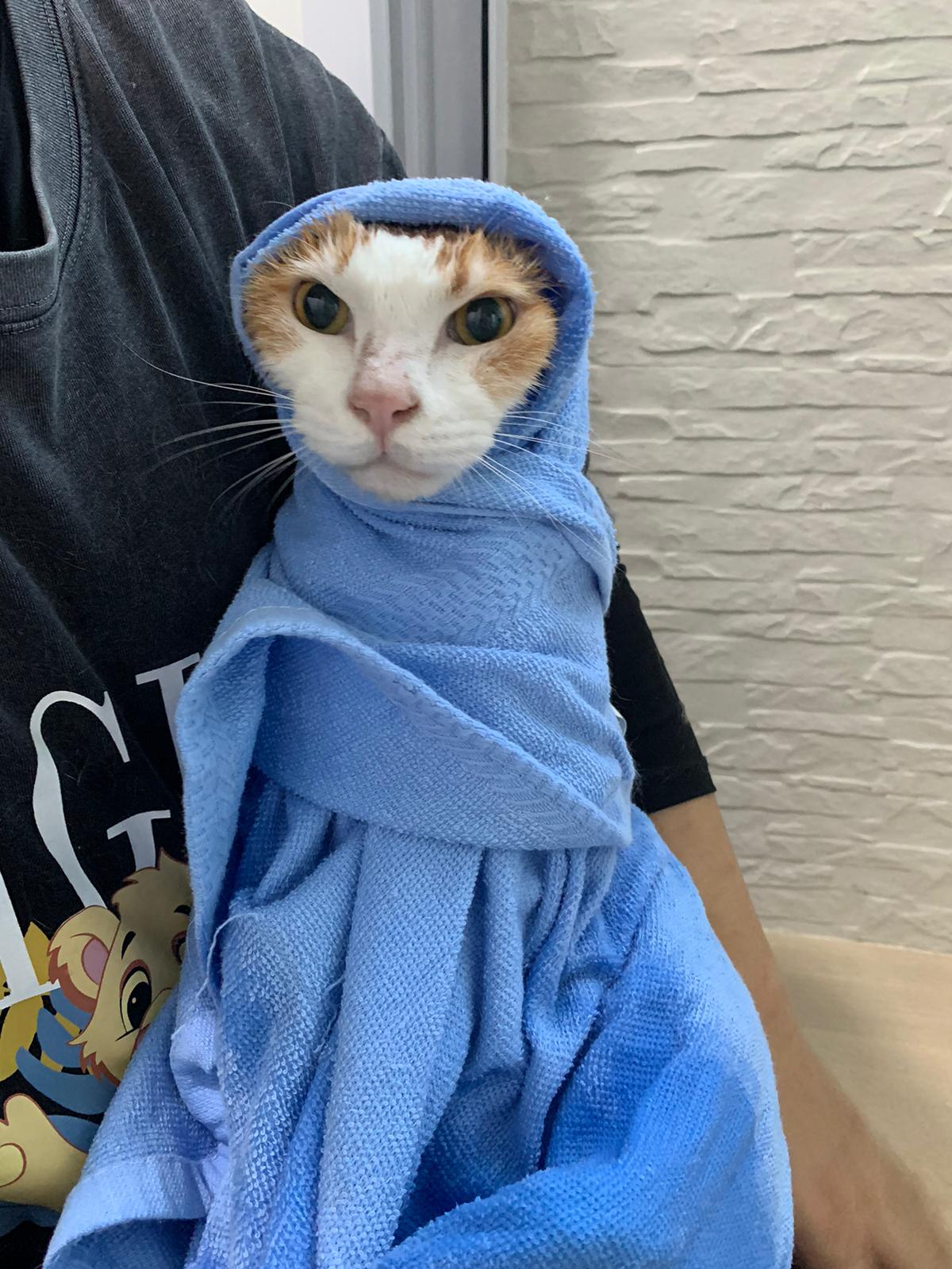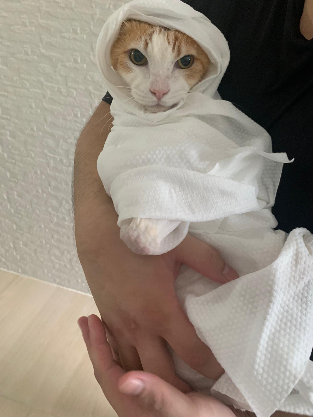 1pm: back to 猫房. He move back to room and I give him a big bed. Tube fed 40ml. Tube not v smooth alr. Subcut 100ml and given Clav n Cerenia. tmr then start Marbo and I have to check his darbepoetin jab day.