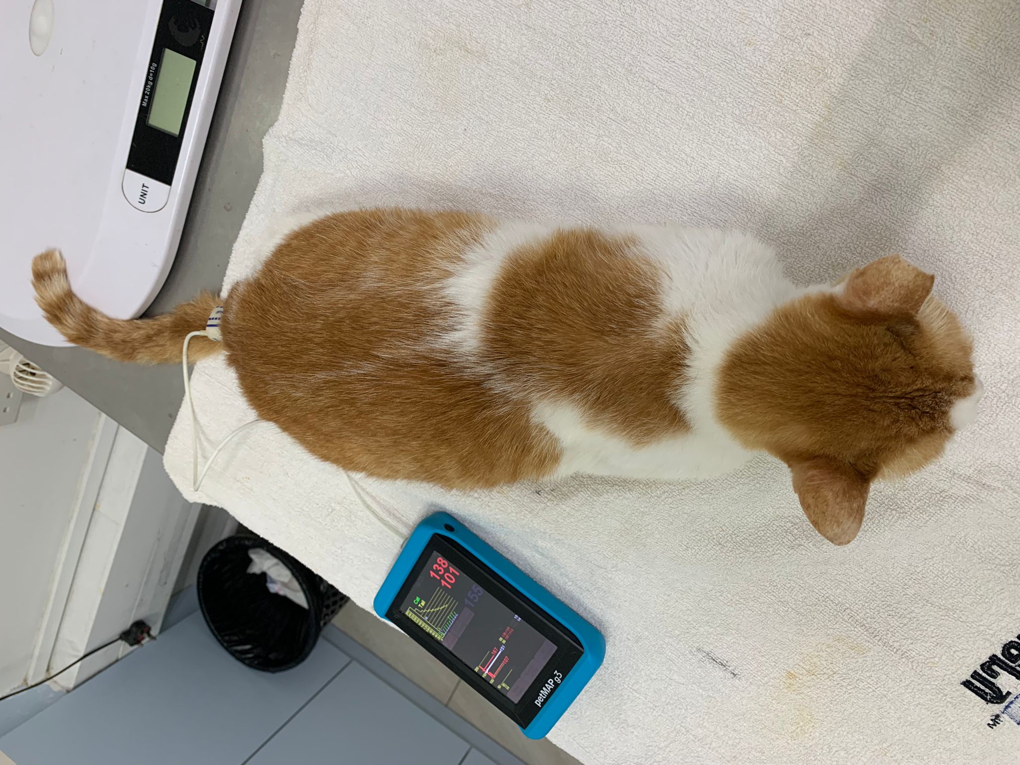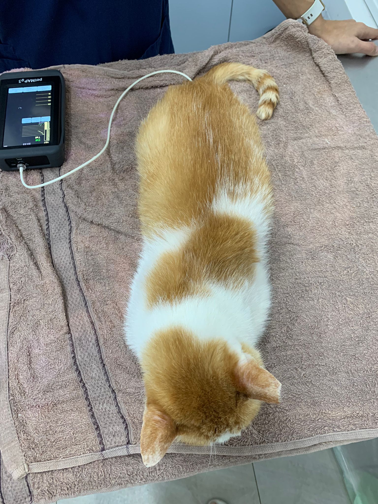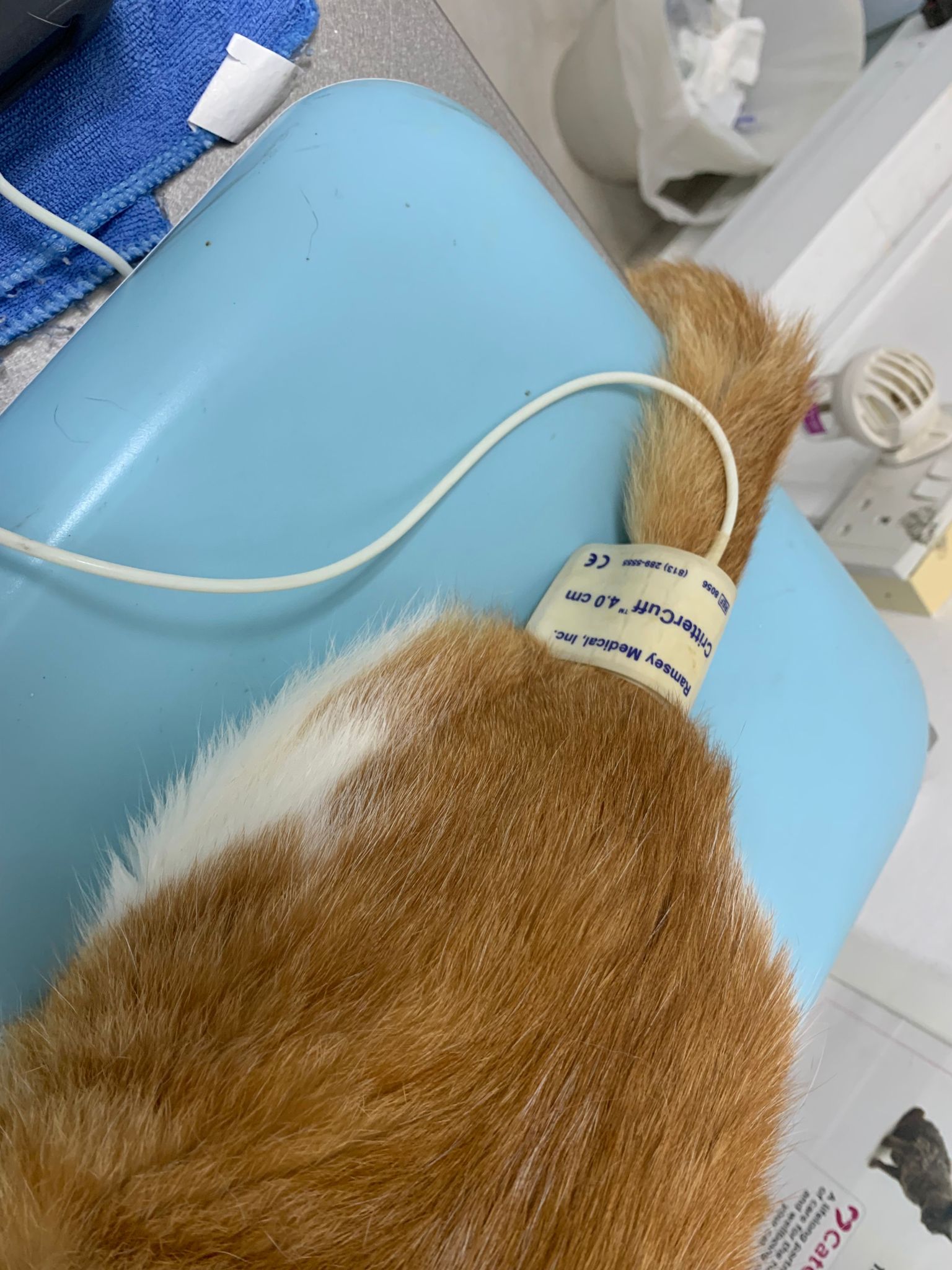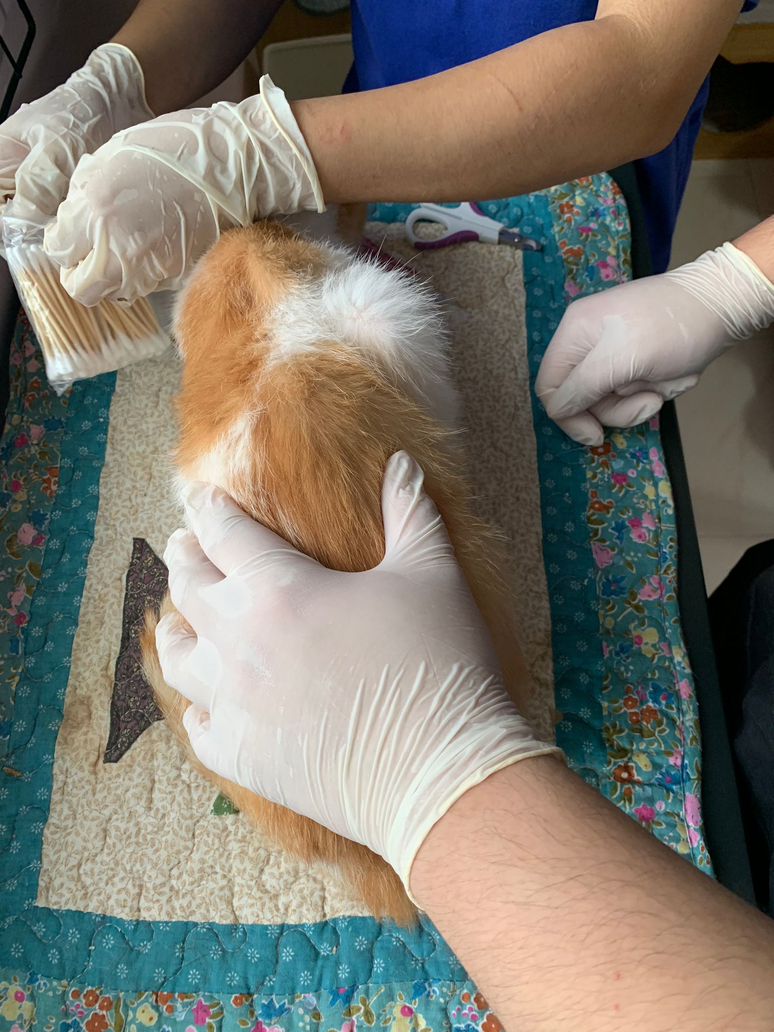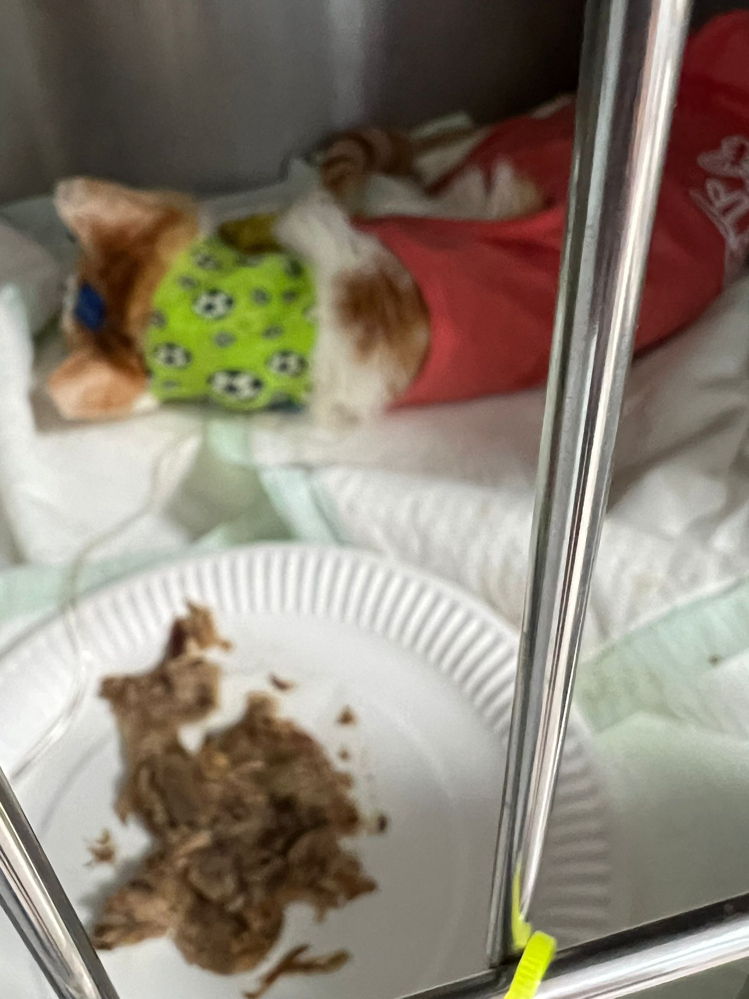 11am; given bupre. Got pee. no poo – but I found one piece 3cm 6.5/10 stuck in his butt, I help him take out. He is just too weak. No strength. later go back then i Subcut him n give Cerenia. Tube fed 40ml kd. Can feel that he feel nausea so I didn’t push. Later we back from seeing dr Brandon then I tube feed more.
