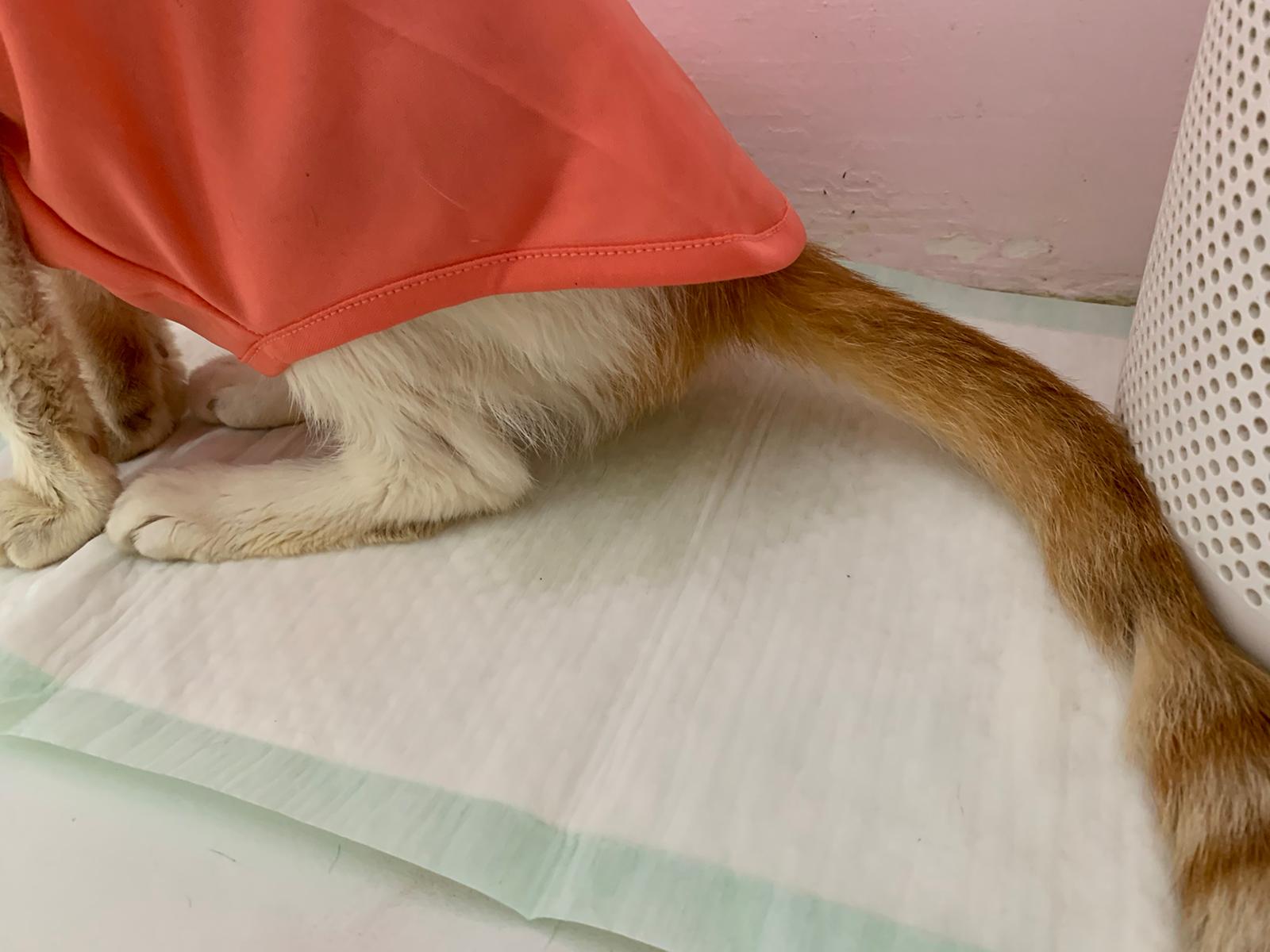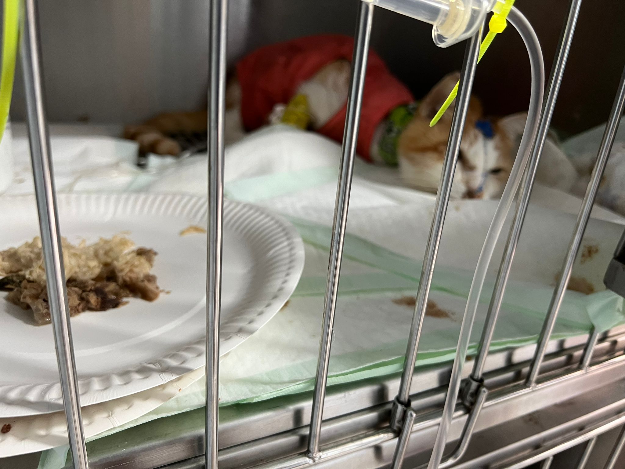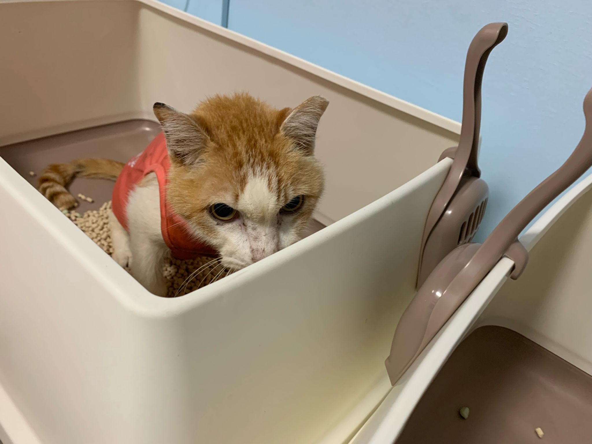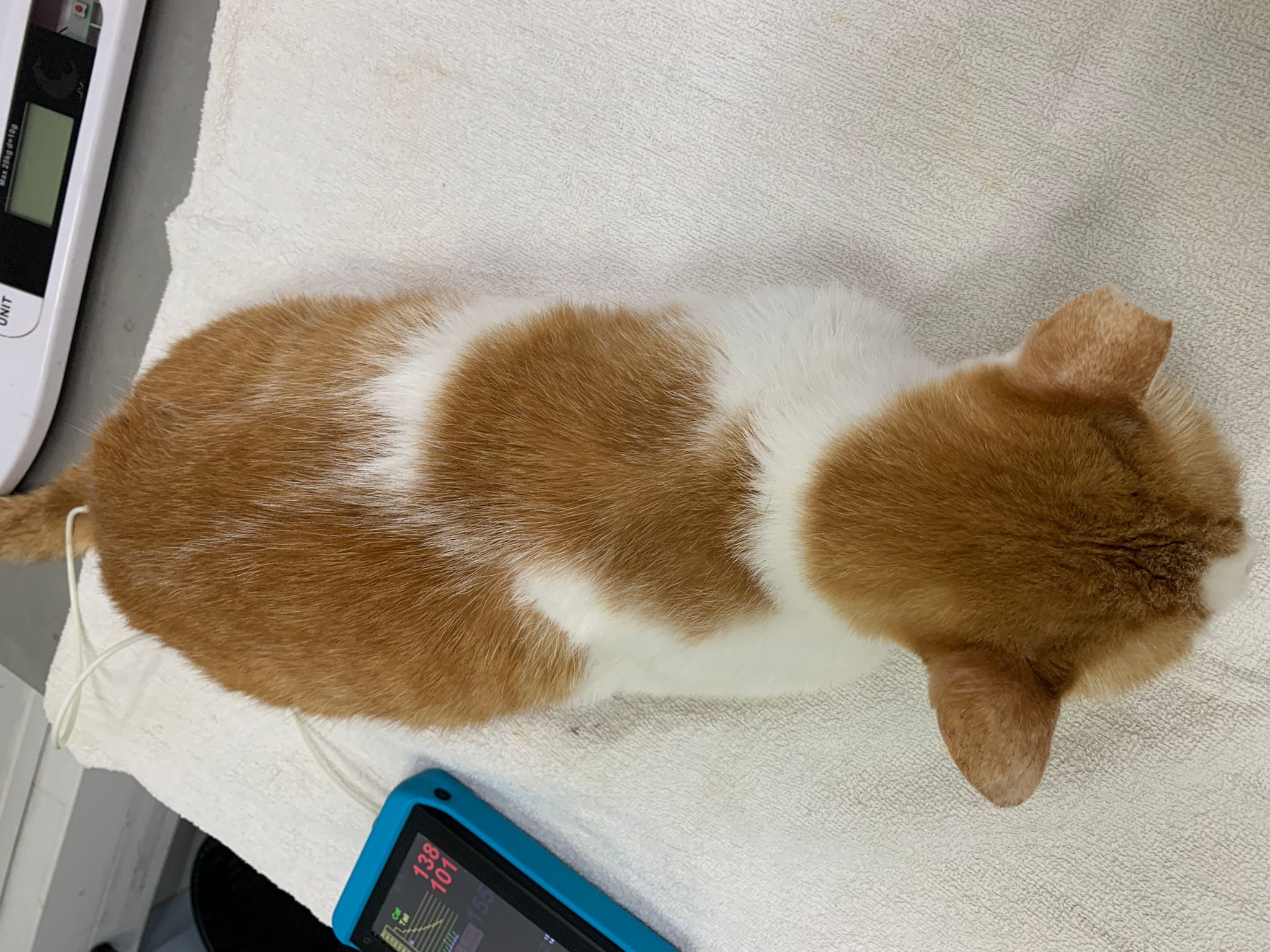 11am; given bupre. Got pee. no poo – but I found one piece 3cm 6.5/10 stuck in his butt, I help him take out. He is just too weak. No strength. later go back then i Subcut him n give Cerenia. Tube fed 40ml kd. Can feel that he feel nausea so I didn’t push. Later we back from seeing dr Brandon then I tube feed more.