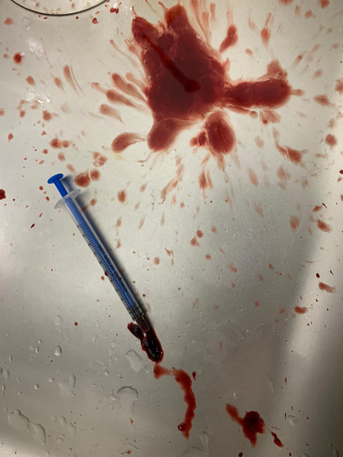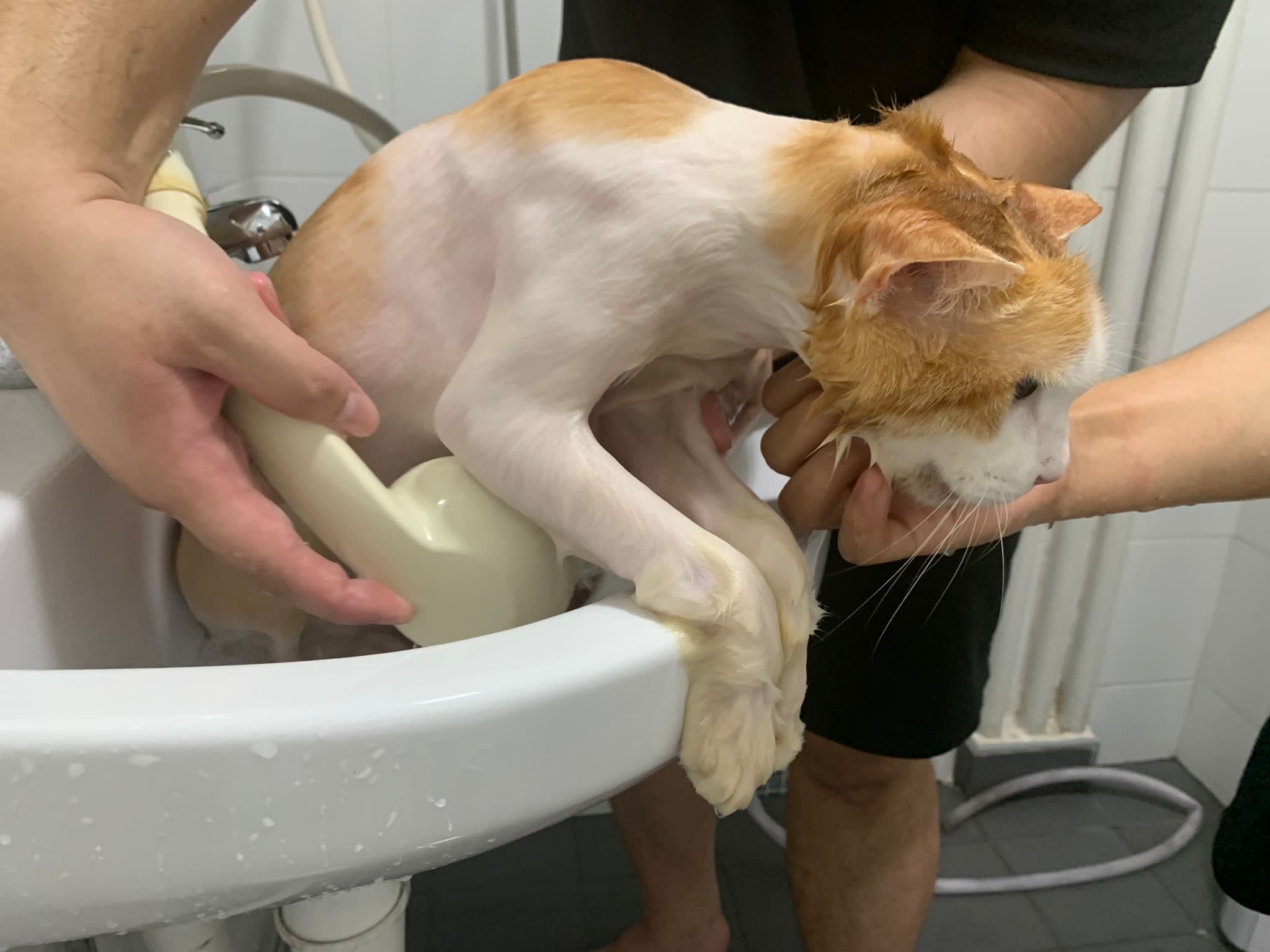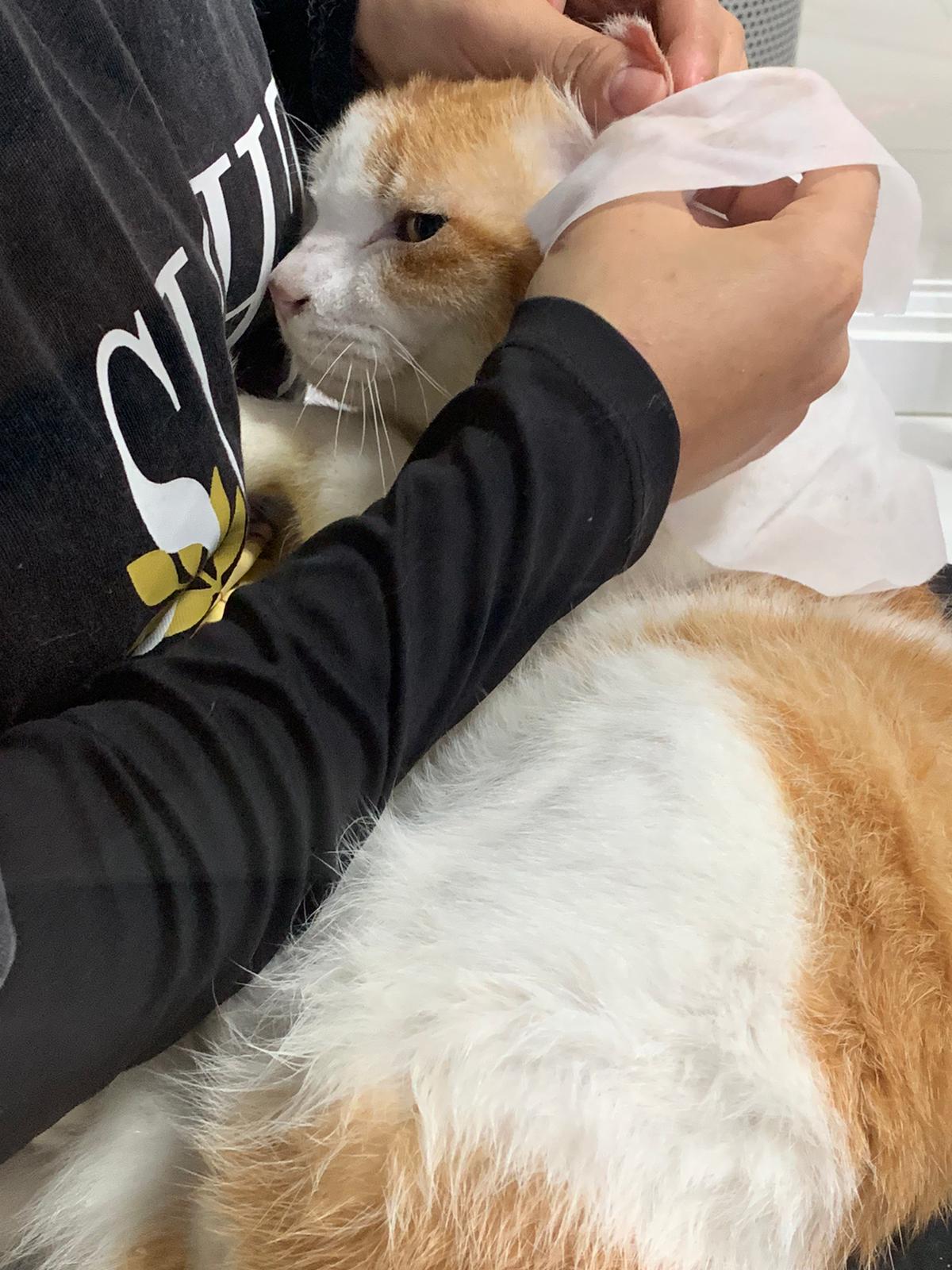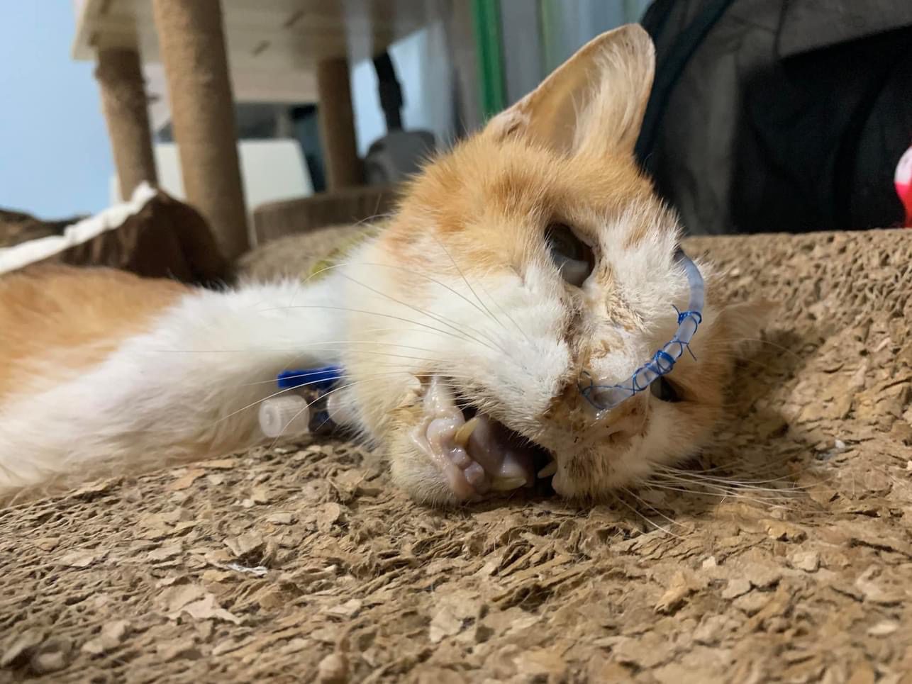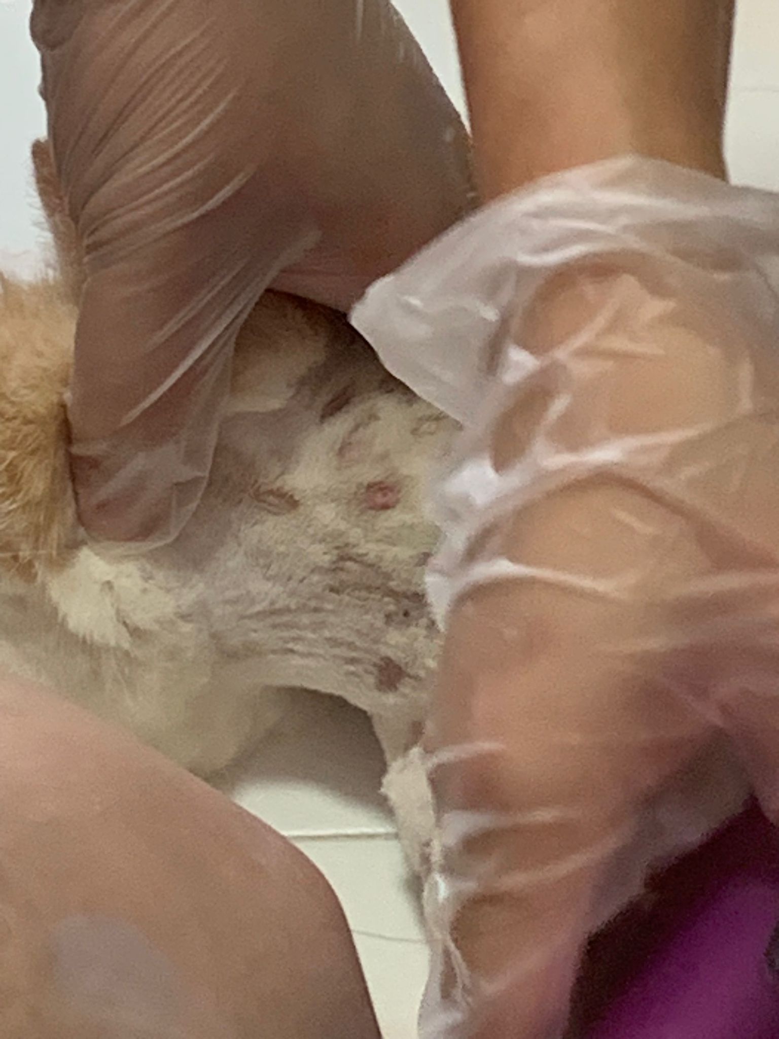 11am; given bupre. Got pee. no poo – but I found one piece 3cm 6.5/10 stuck in his butt, I help him take out. He is just too weak. No strength. later go back then i Subcut him n give Cerenia. Tube fed 40ml kd. Can feel that he feel nausea so I didn’t push. Later we back from seeing dr Brandon then I tube feed more.