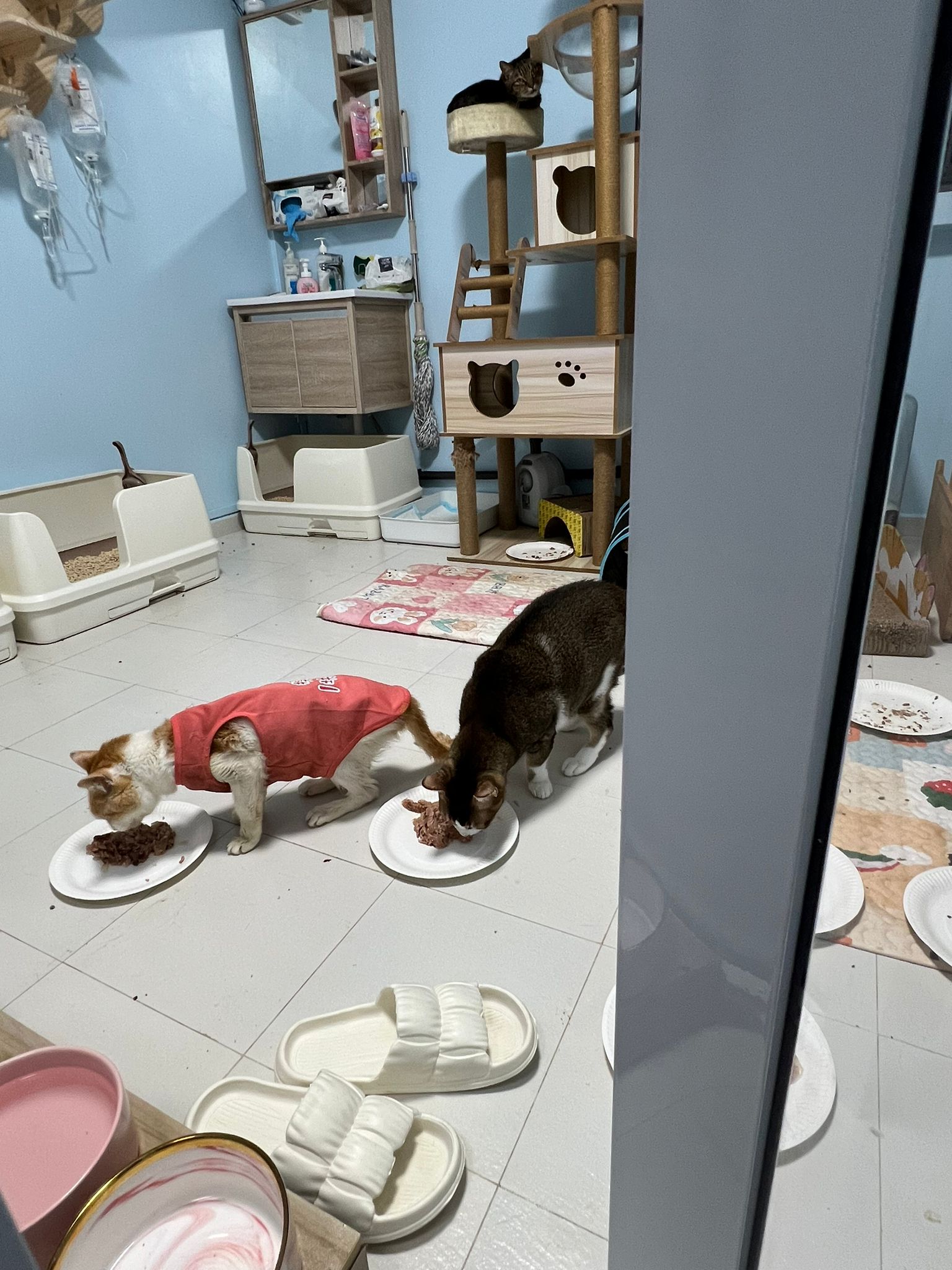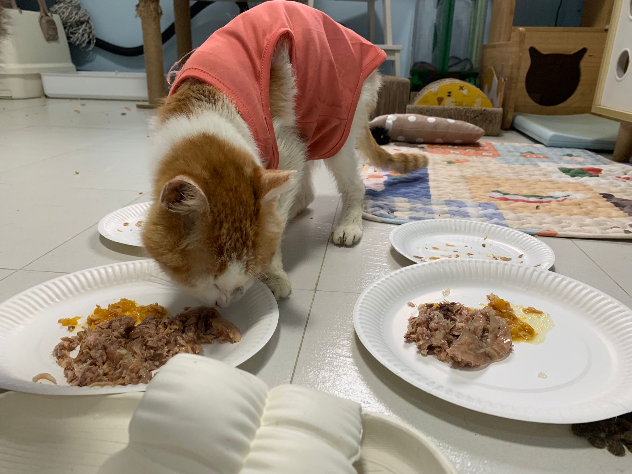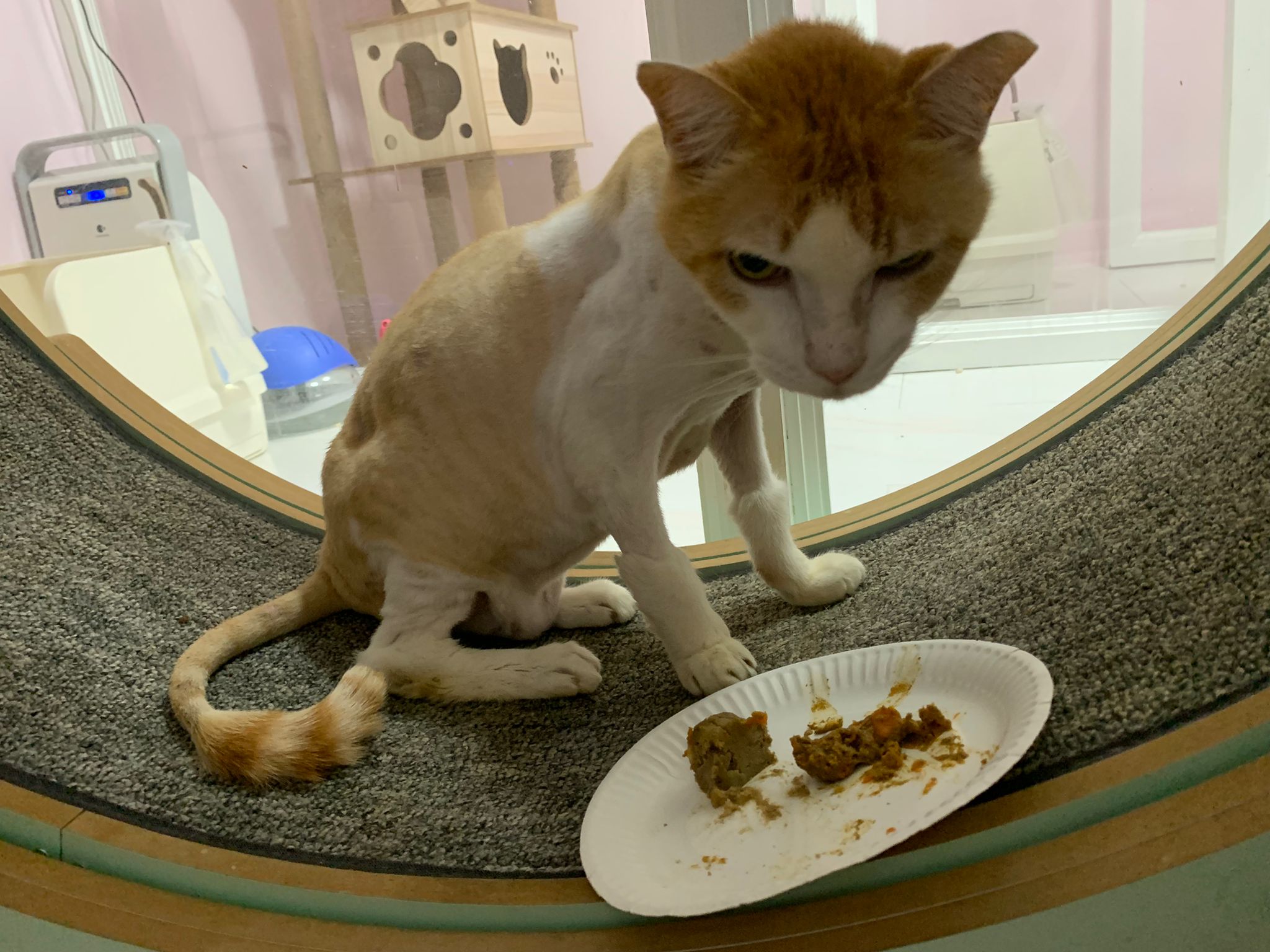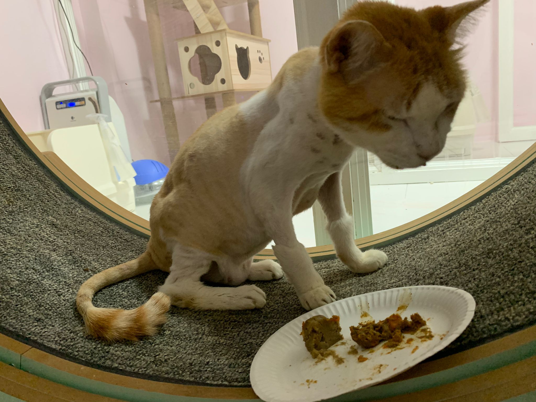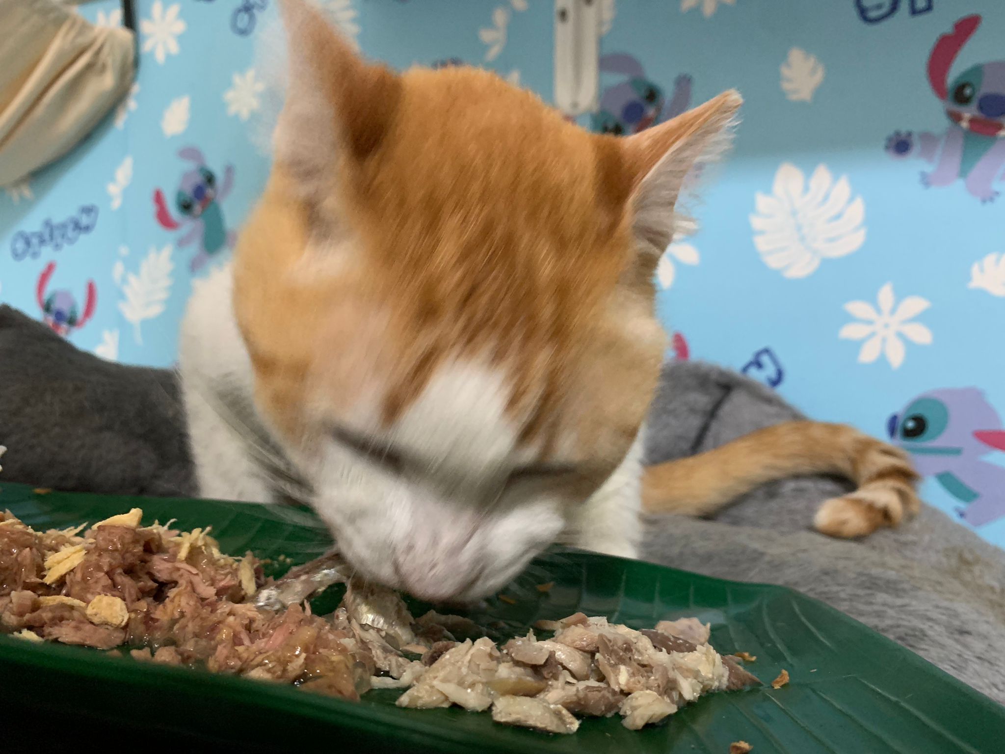 * 1250pm; actively eating on his own, 猫房 24/7 serving style suit him