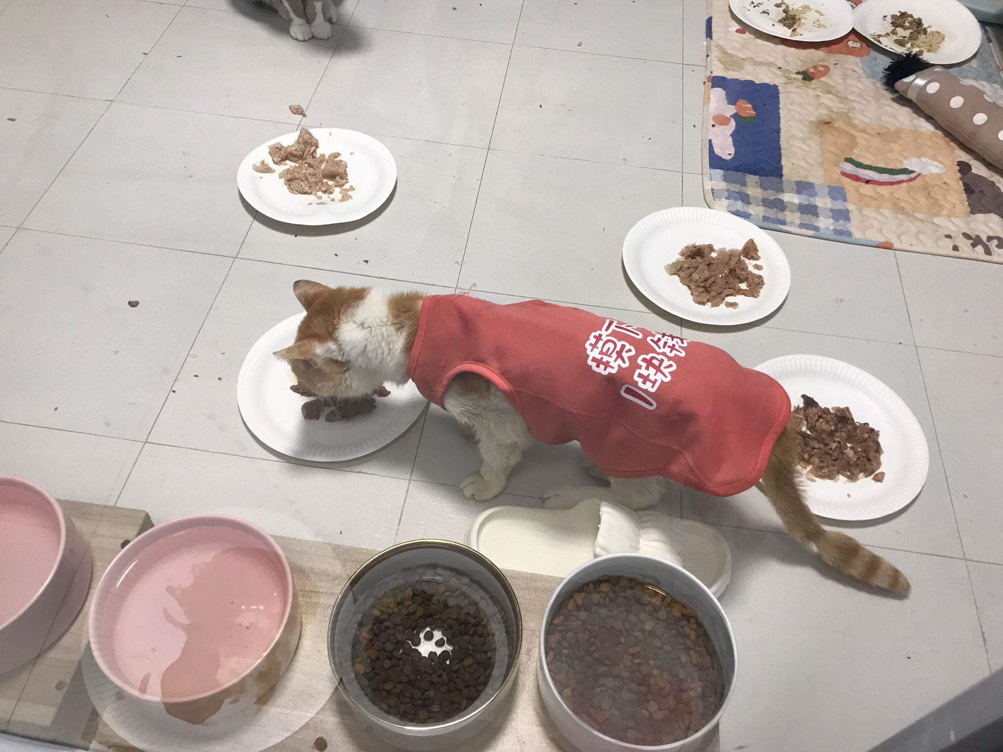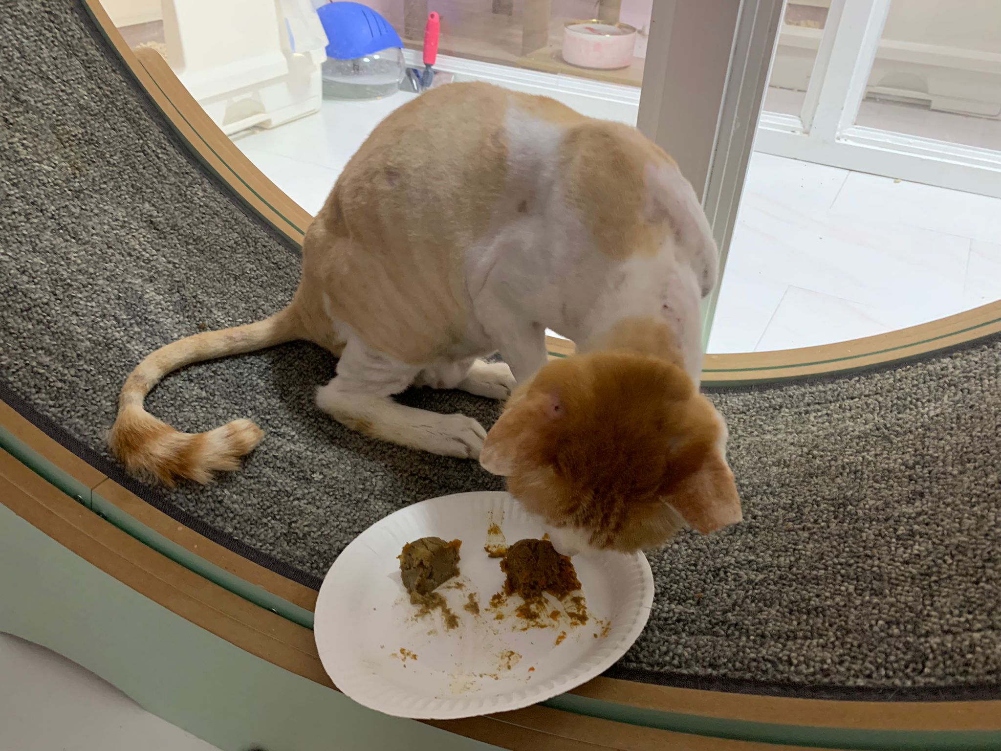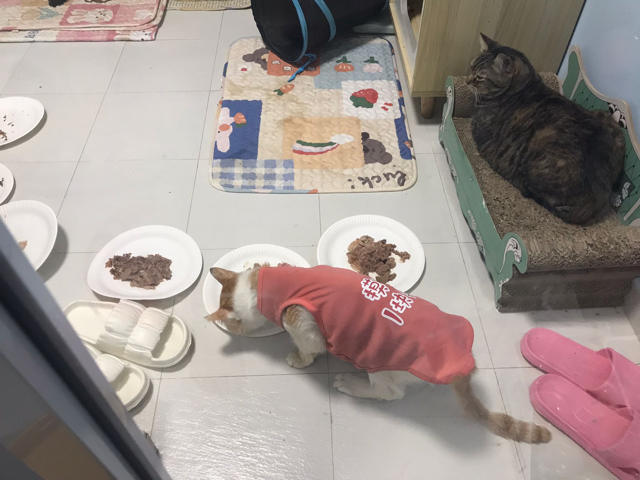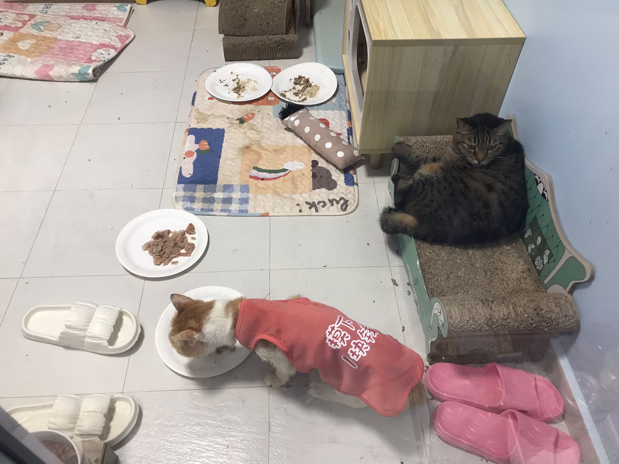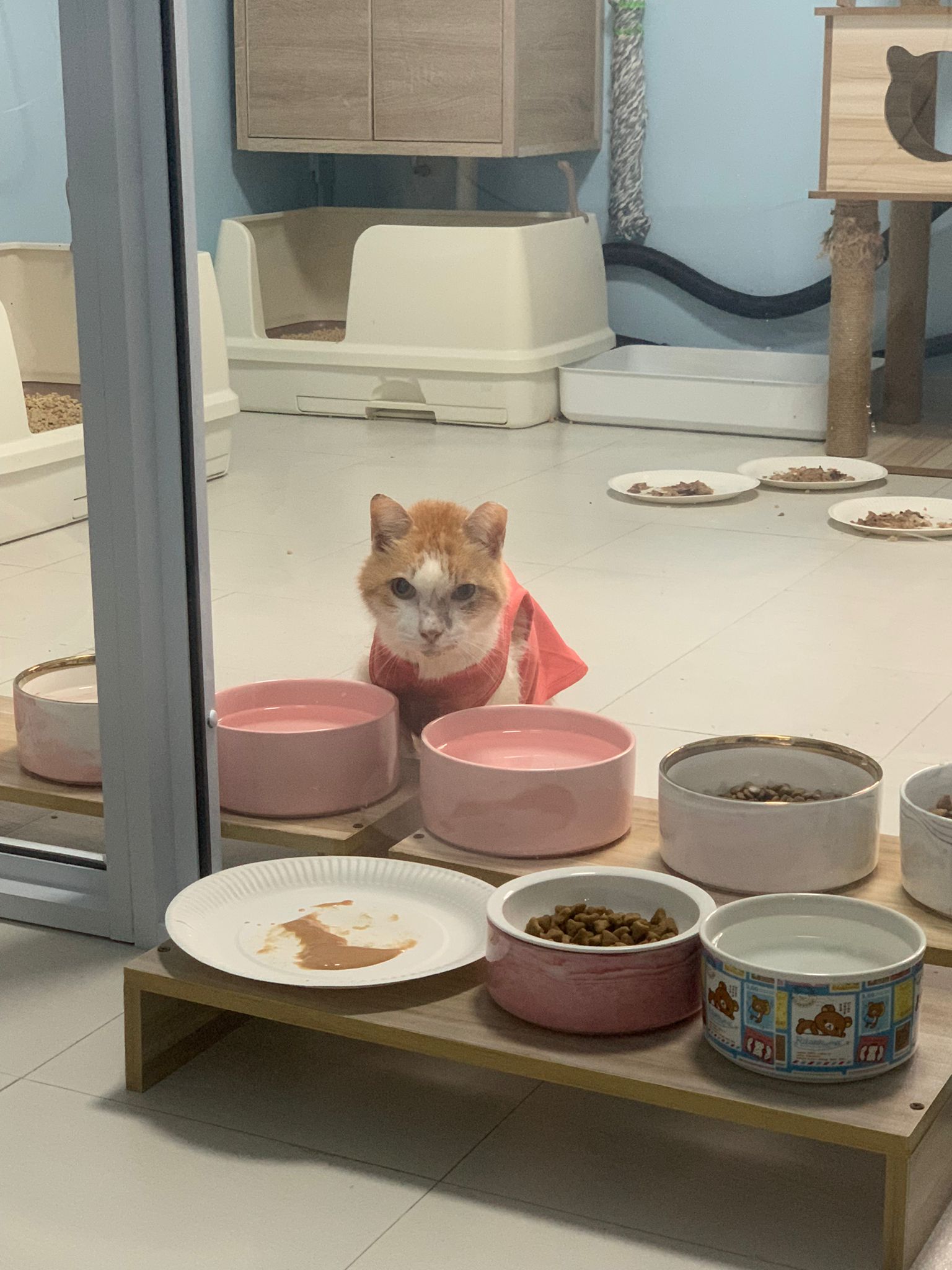 * 1250pm; actively eating on his own, 猫房 24/7 serving style suit him