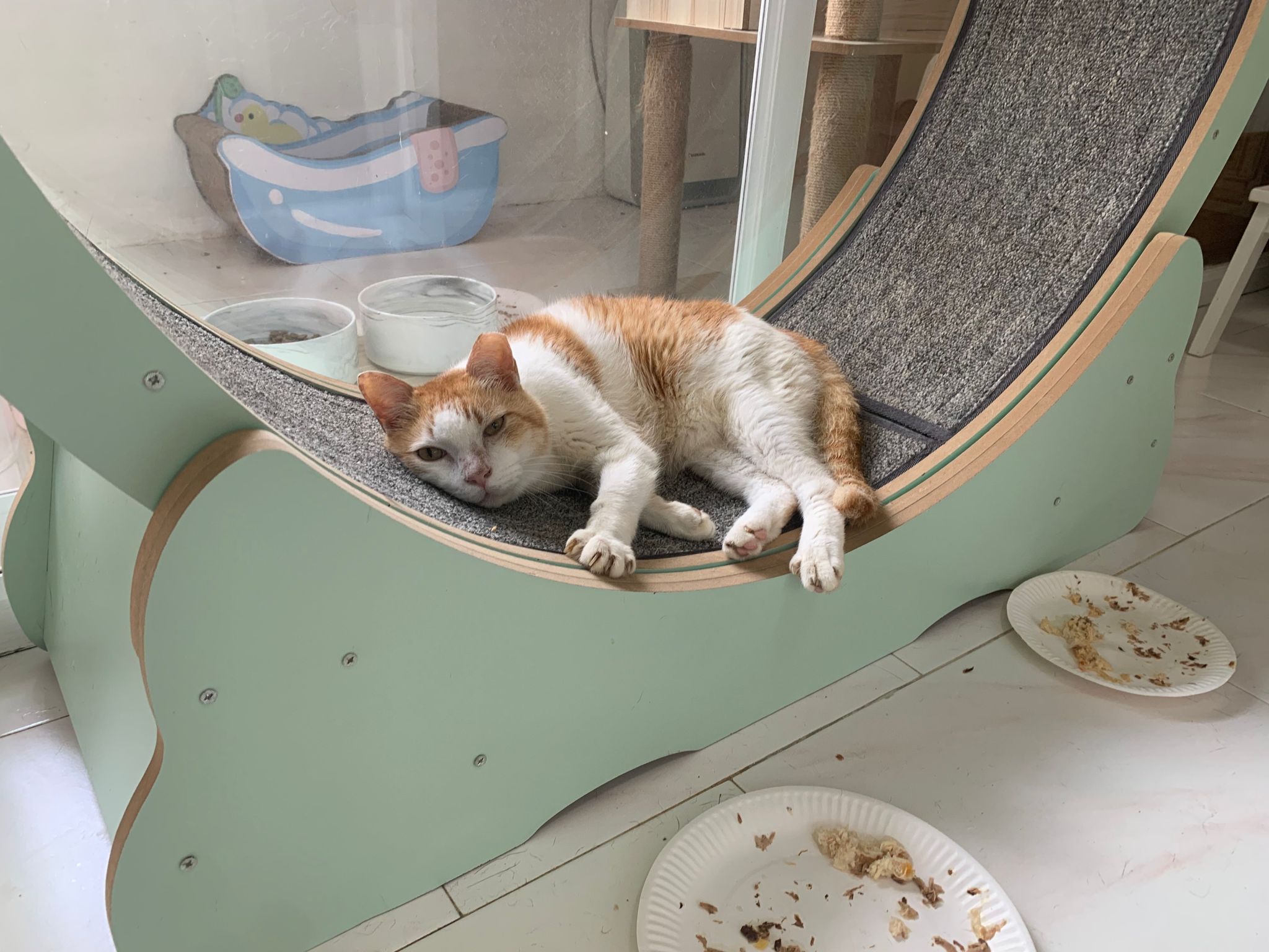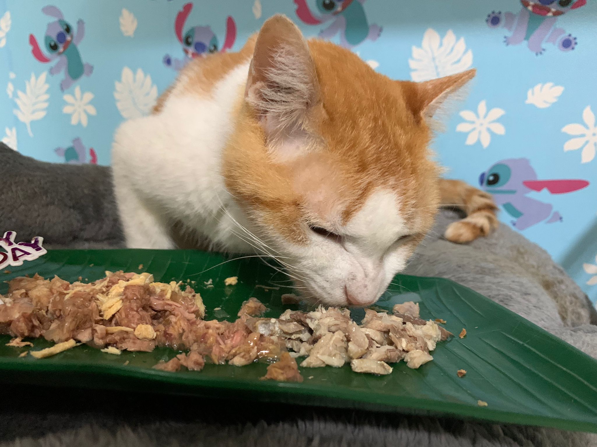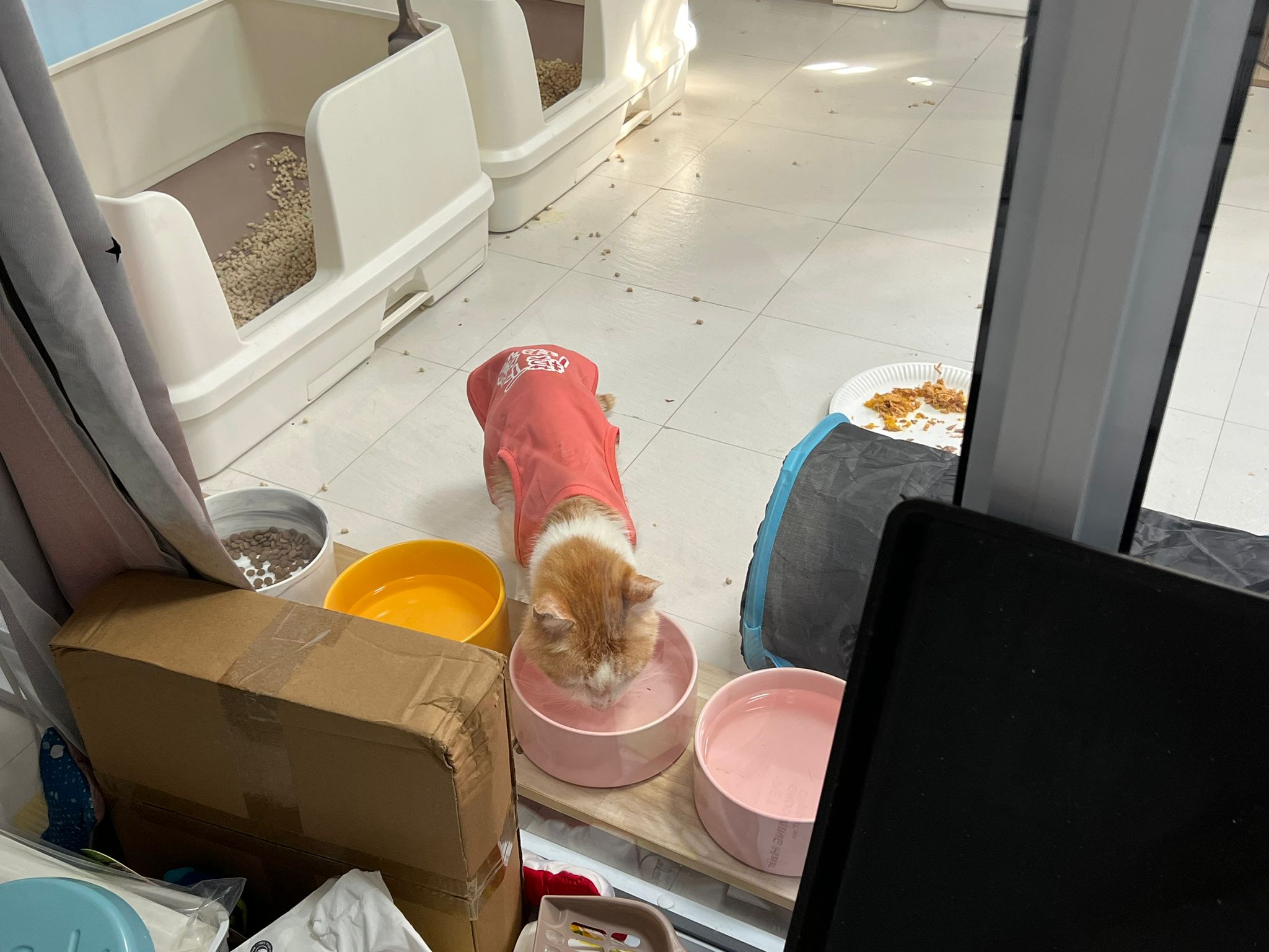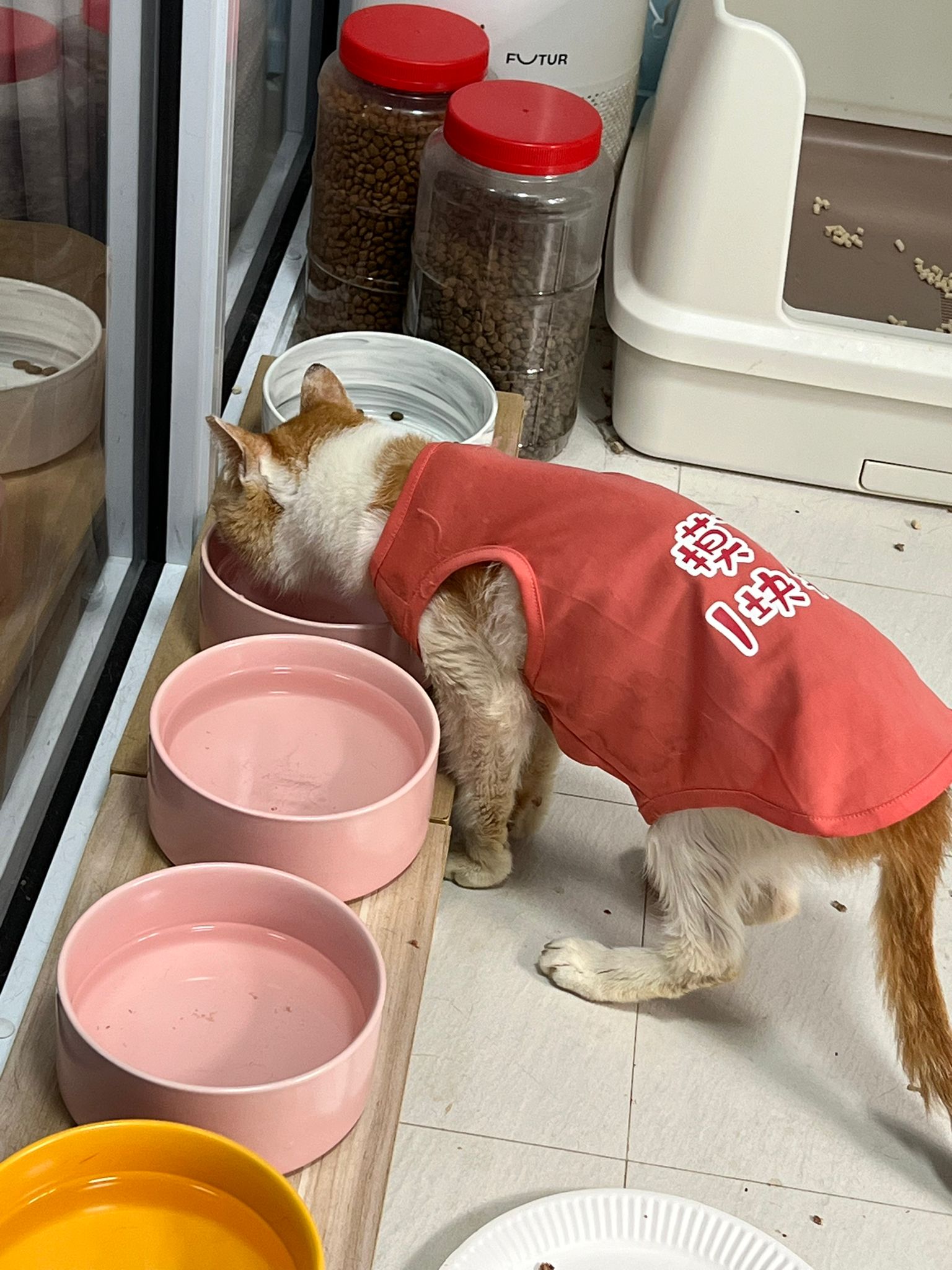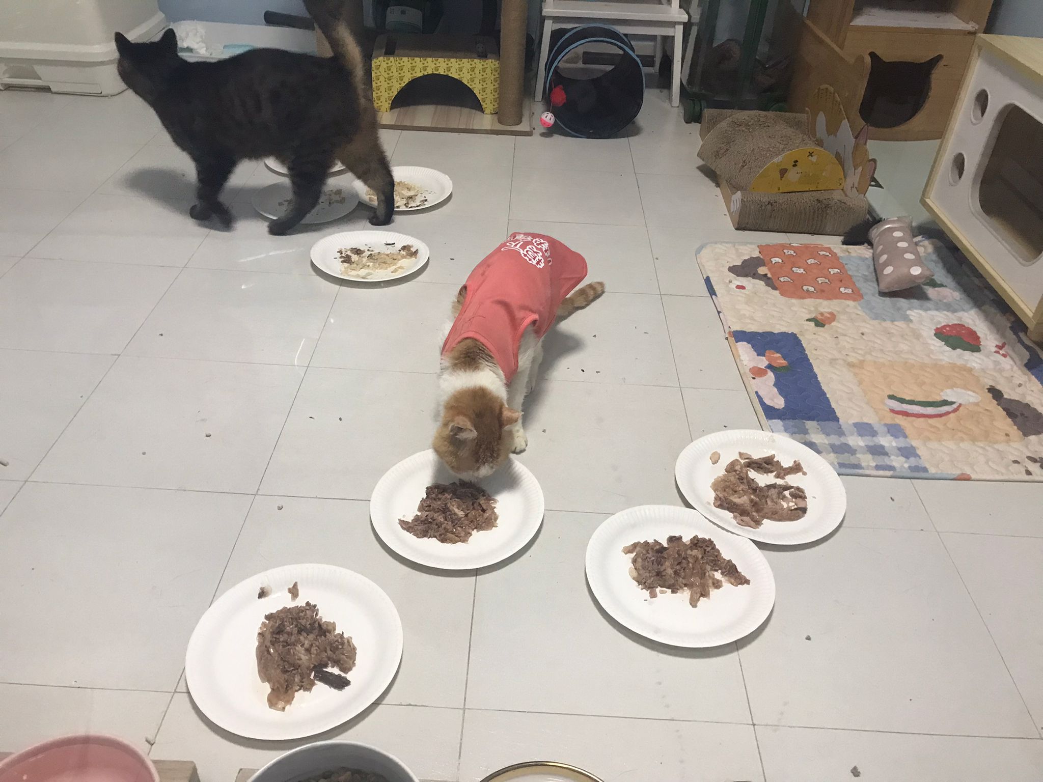* 1250pm; actively eating on his own, 猫房 24/7 serving style suit him
