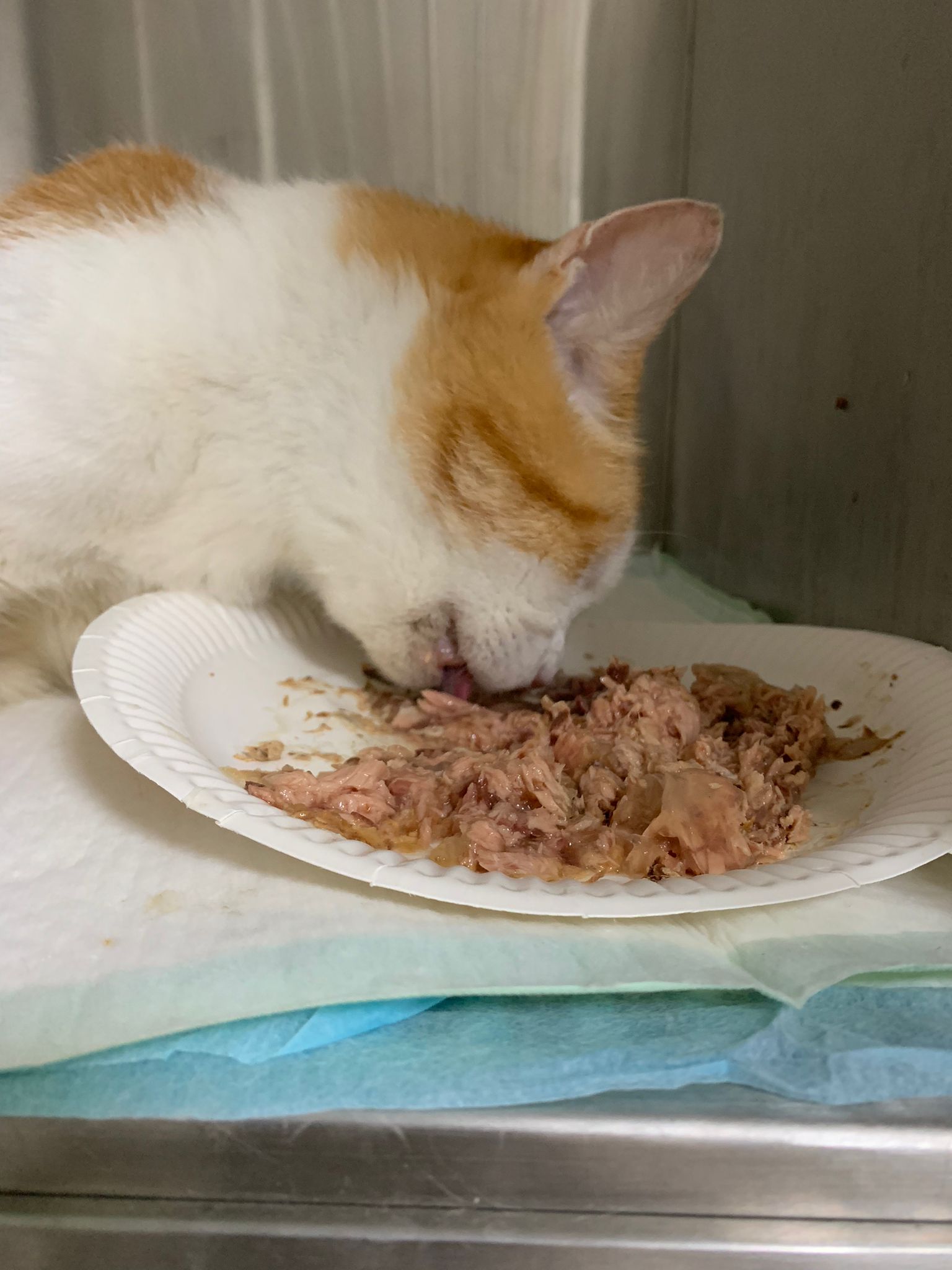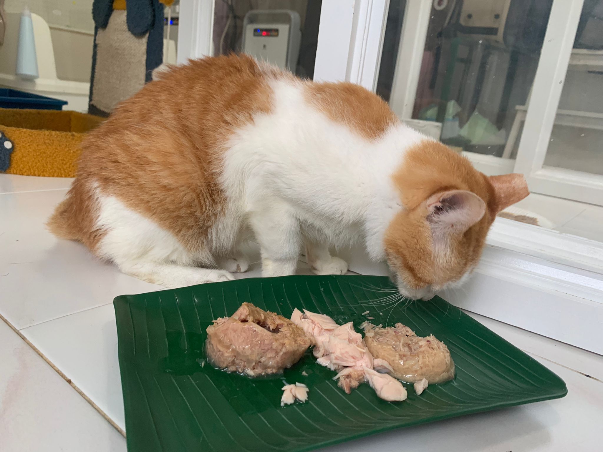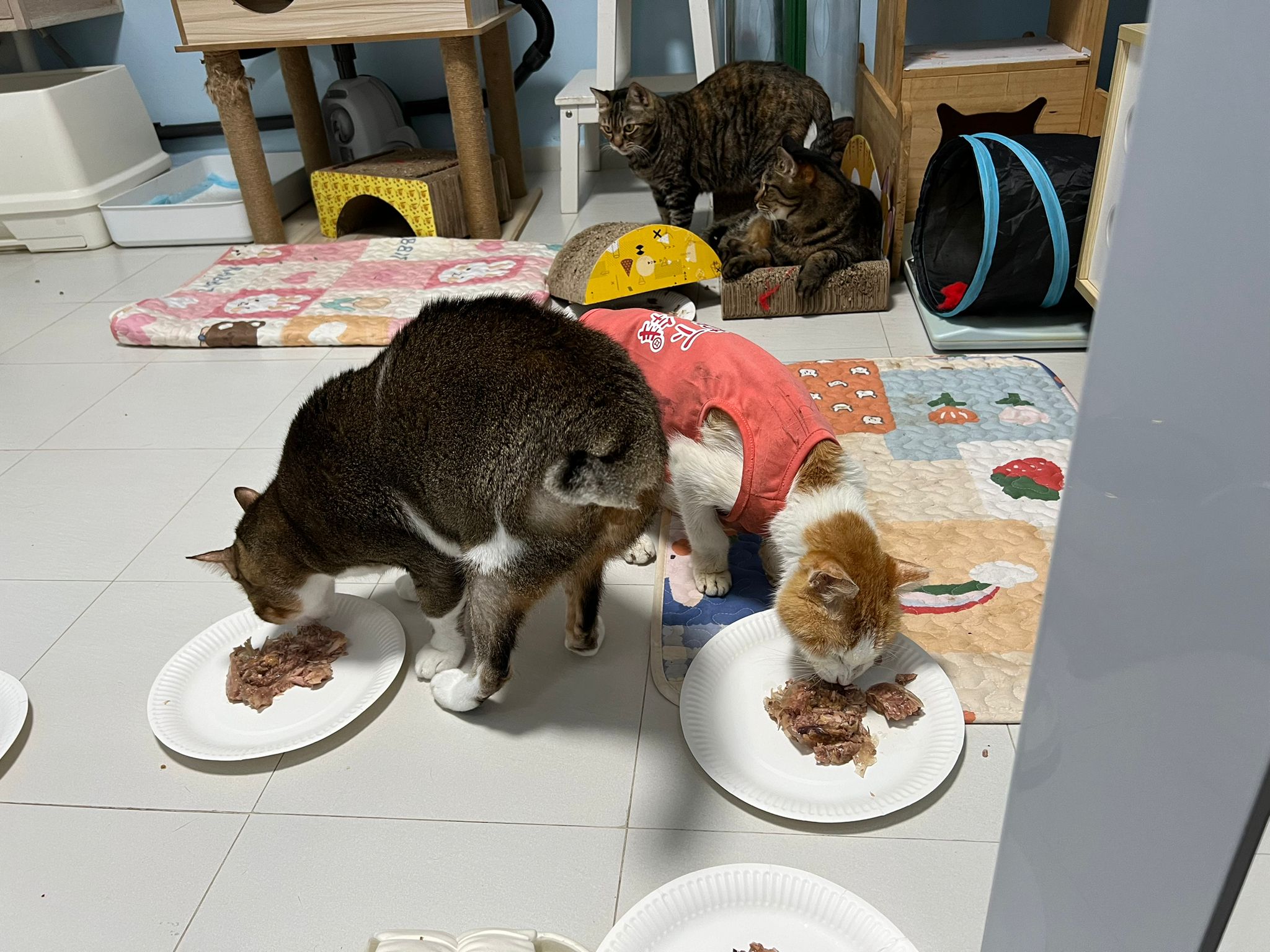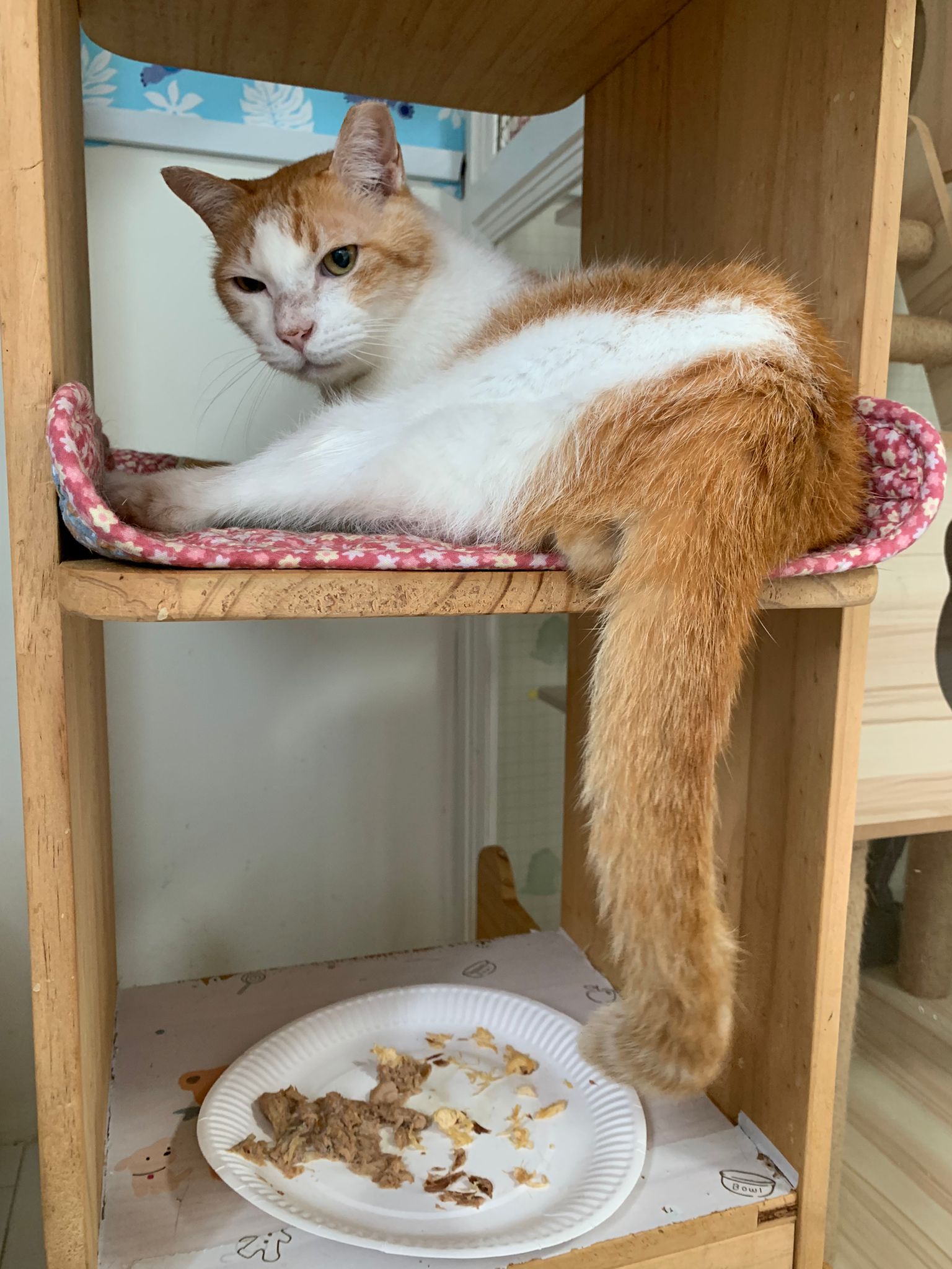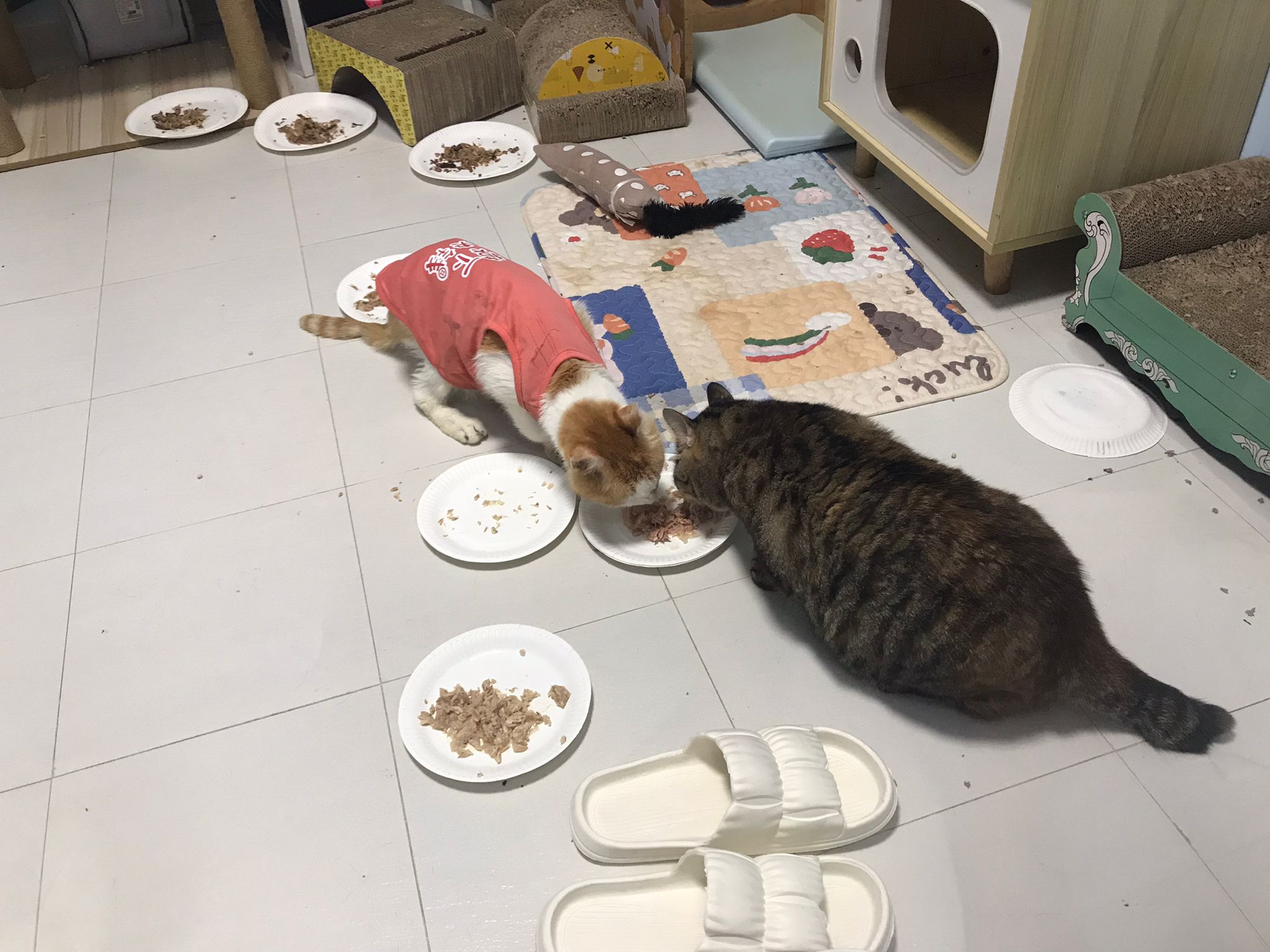 * 1250pm; actively eating on his own, 猫房 24/7 serving style suit him