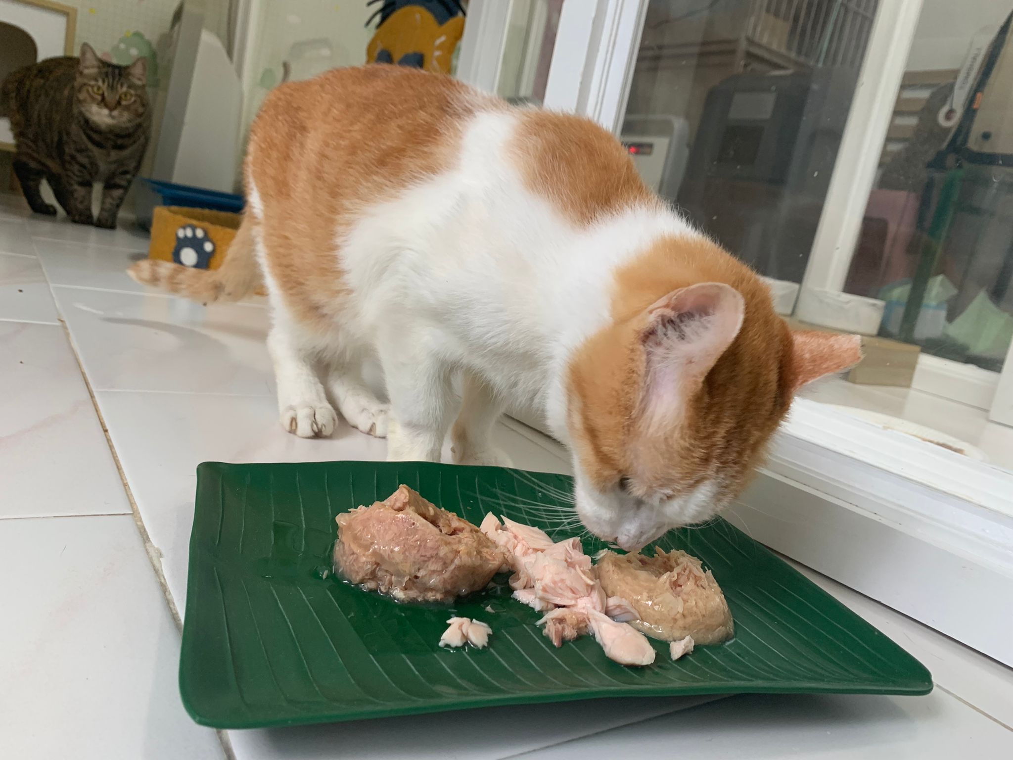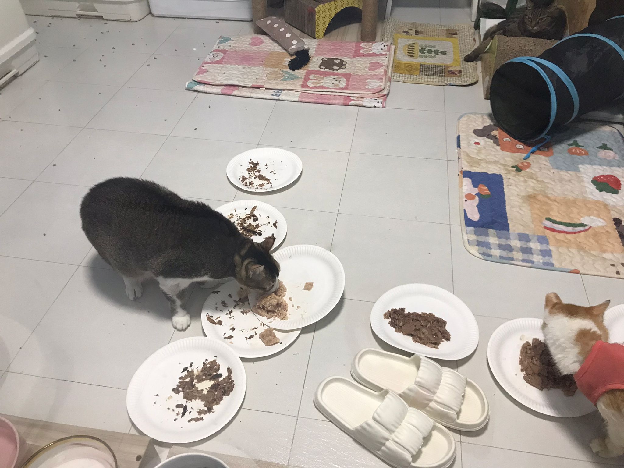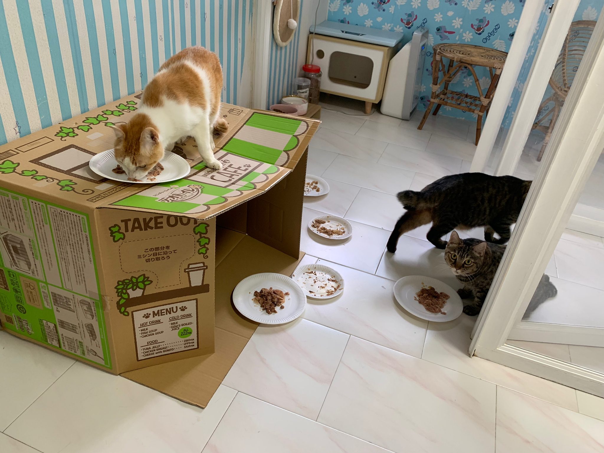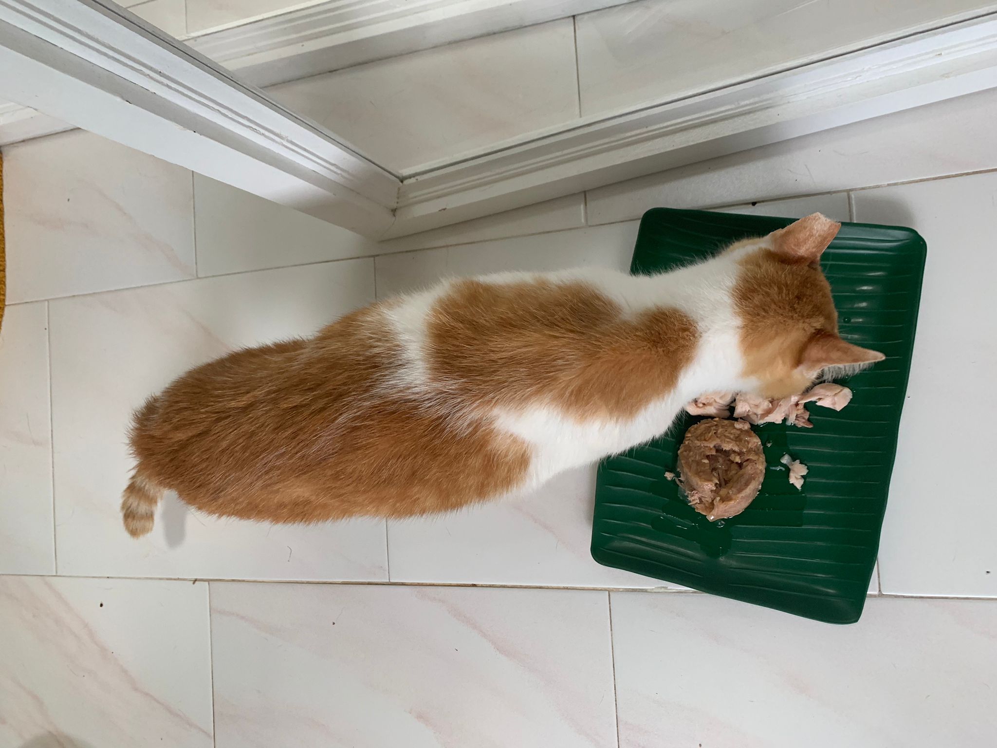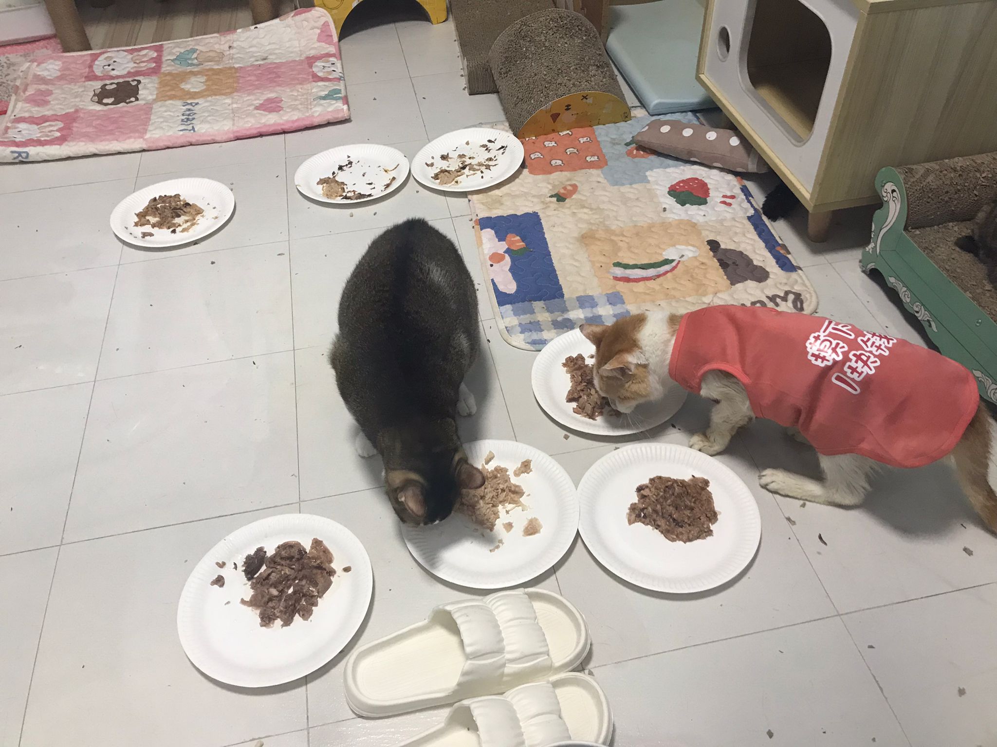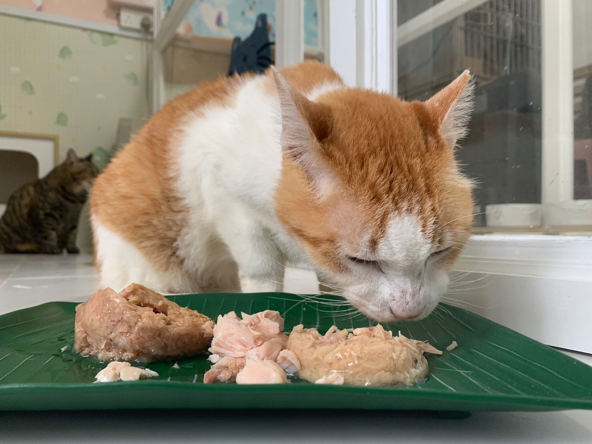 * 1250pm; actively eating on his own, 猫房 24/7 serving style suit him