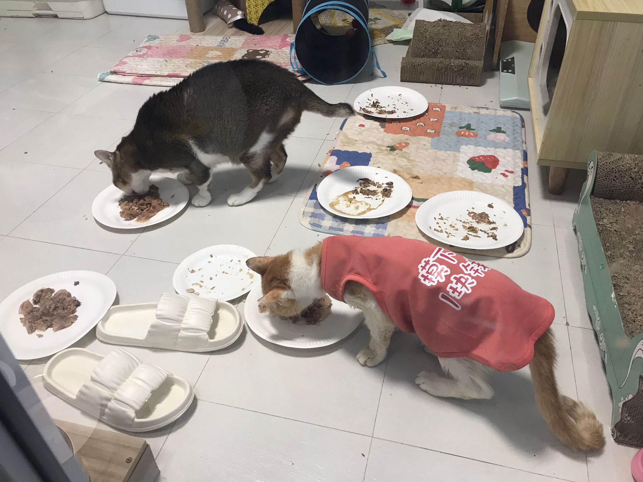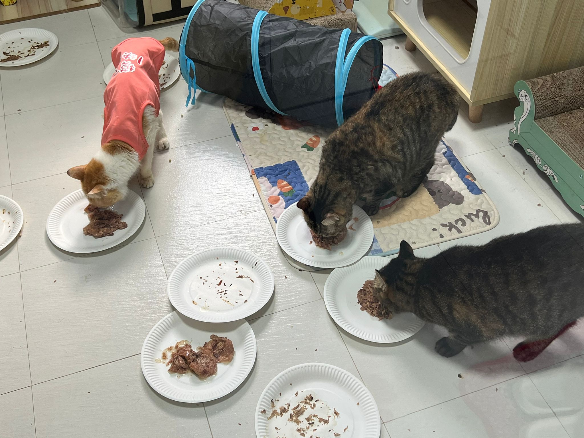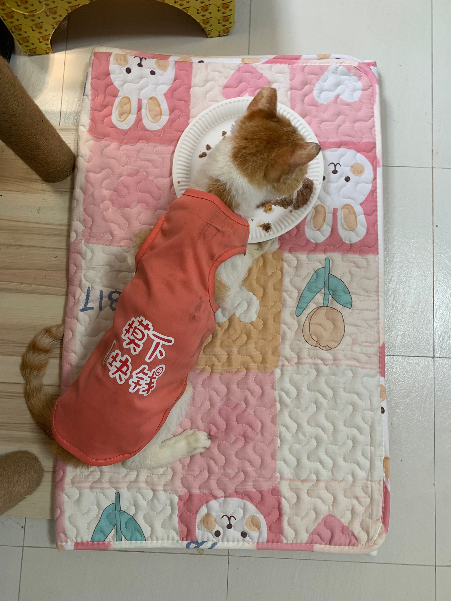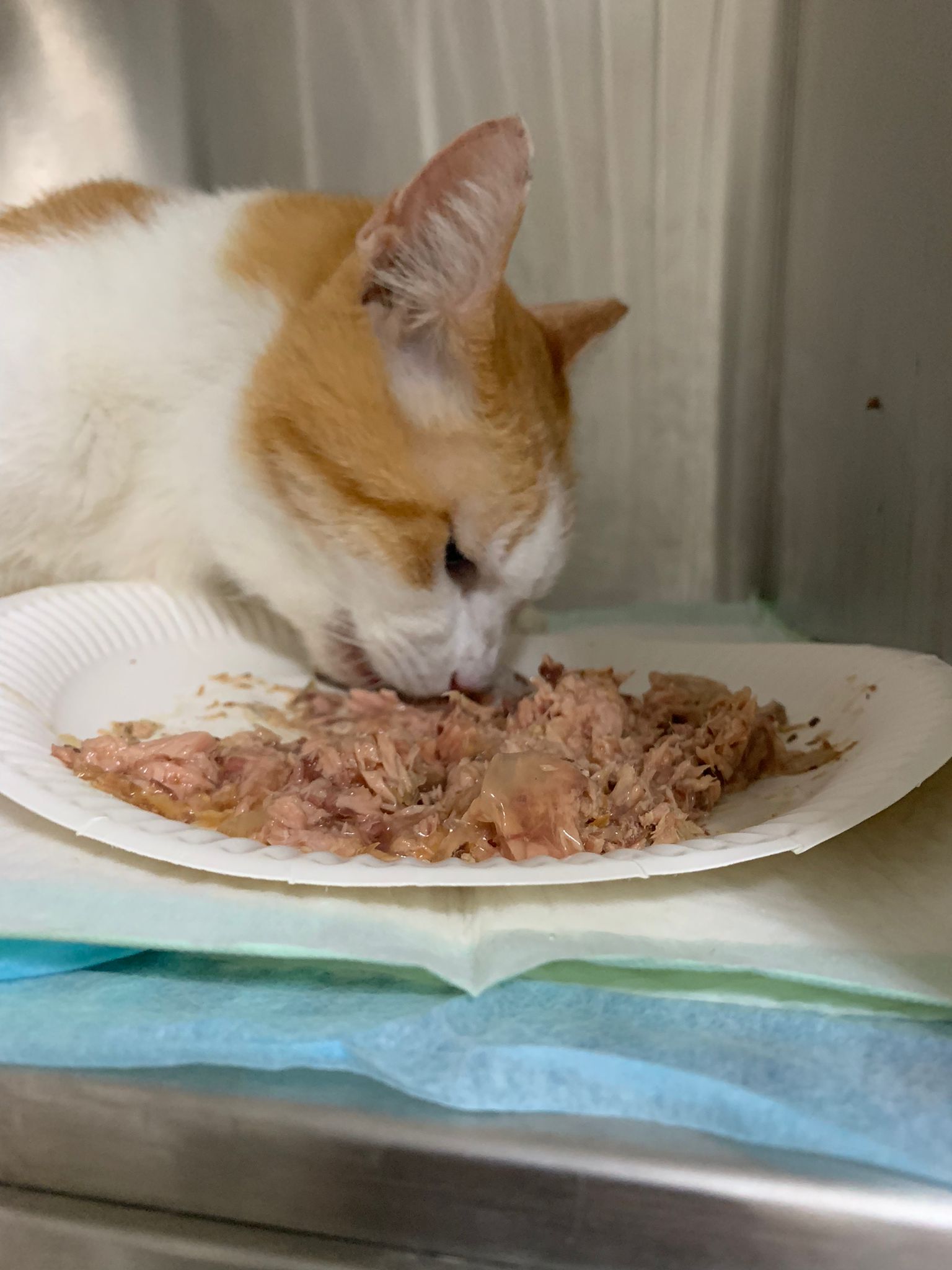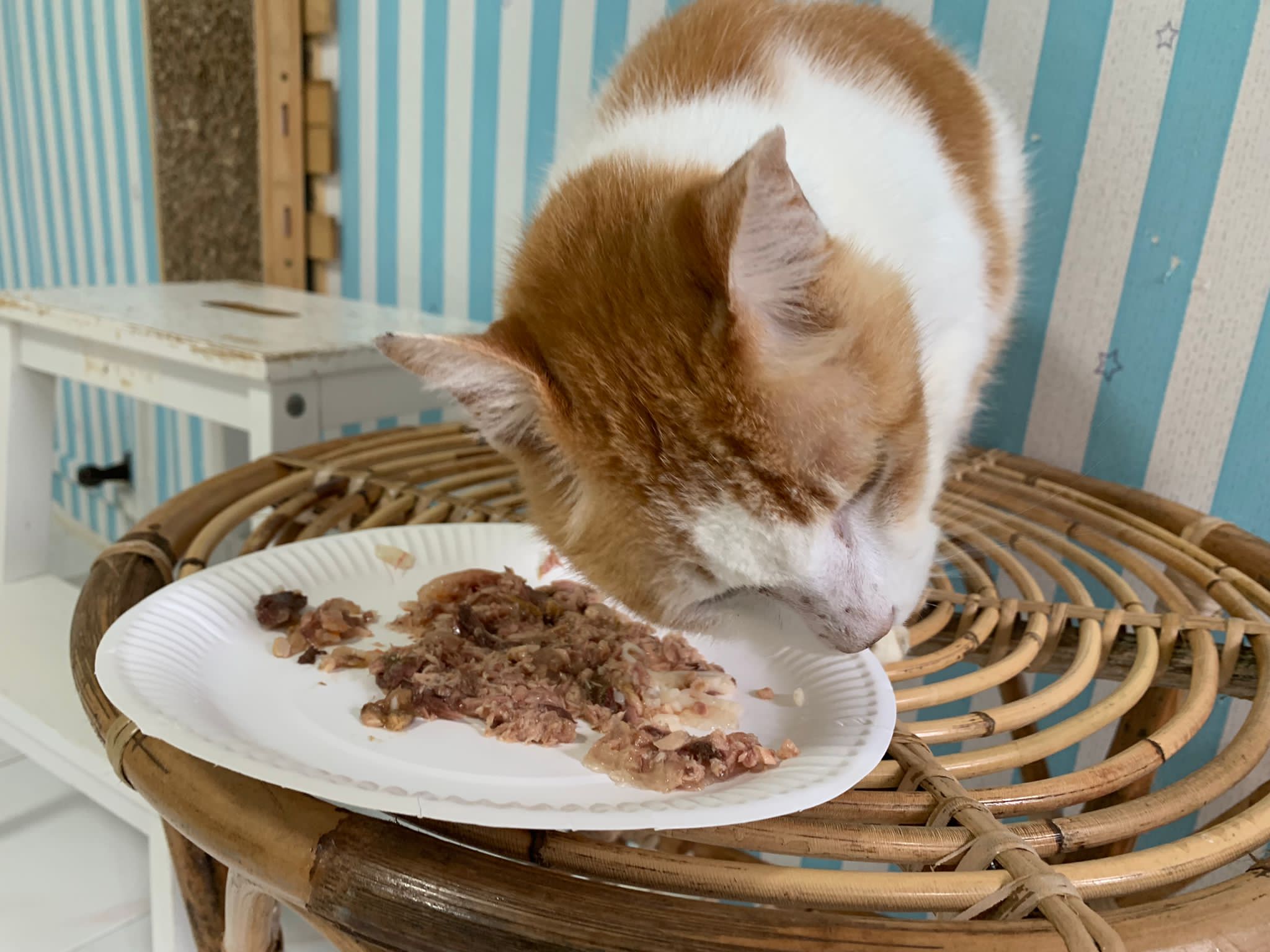 * 1250pm; actively eating on his own, 猫房 24/7 serving style suit him