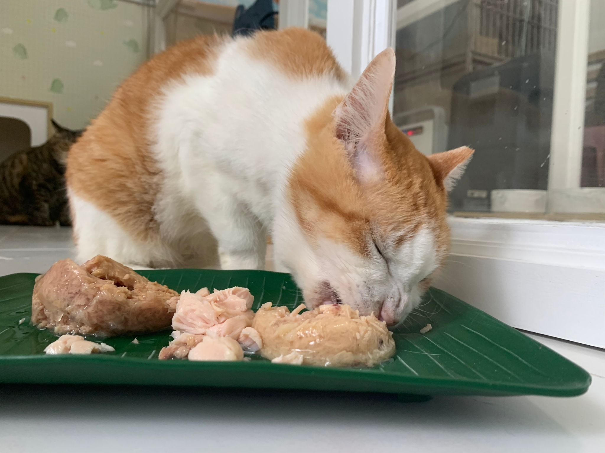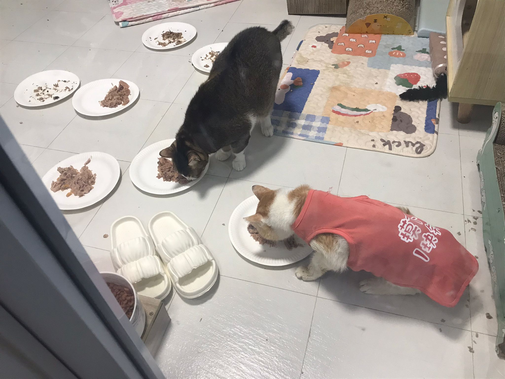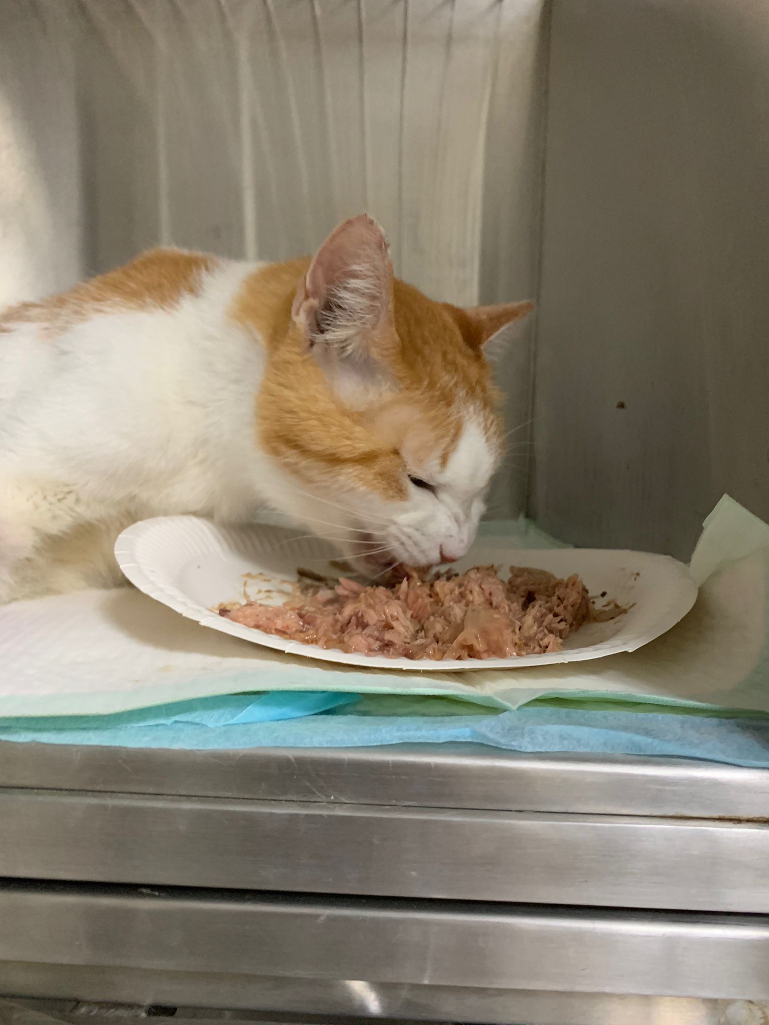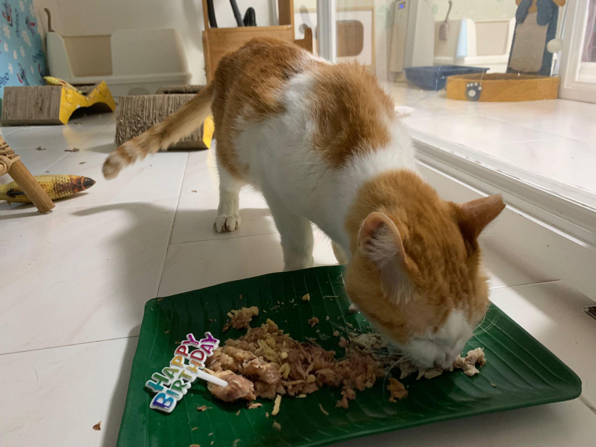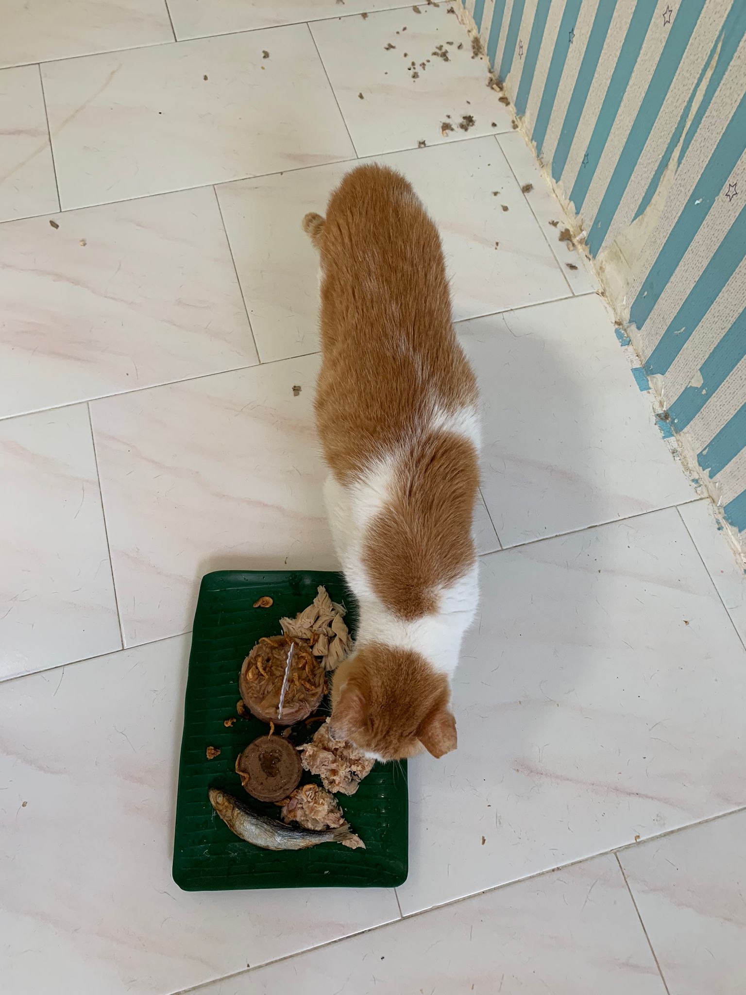 * 1250pm; actively eating on his own, 猫房 24/7 serving style suit him