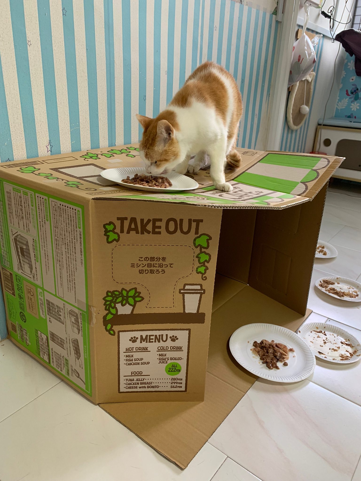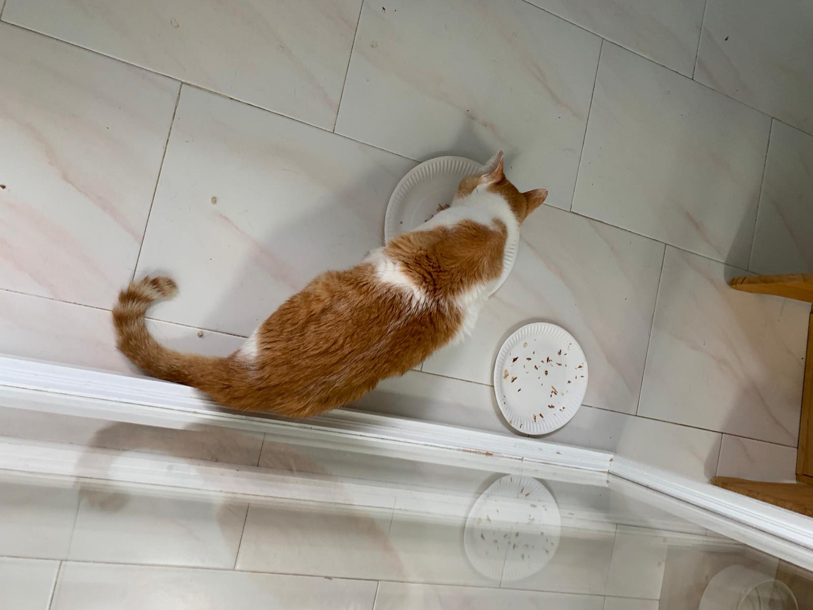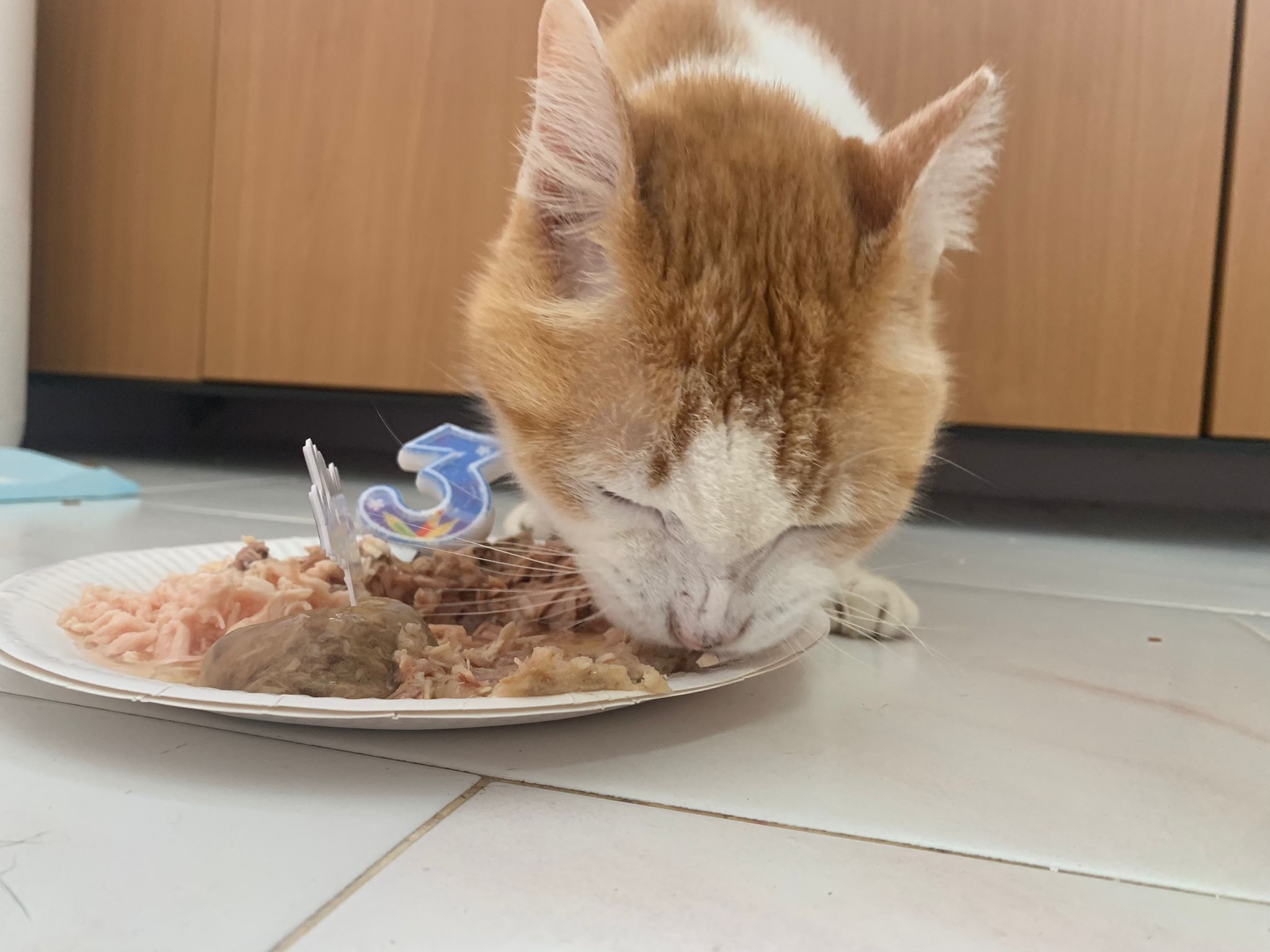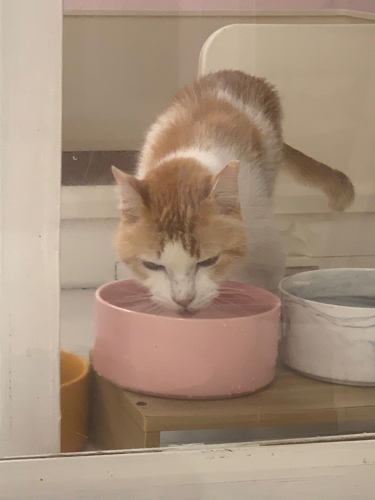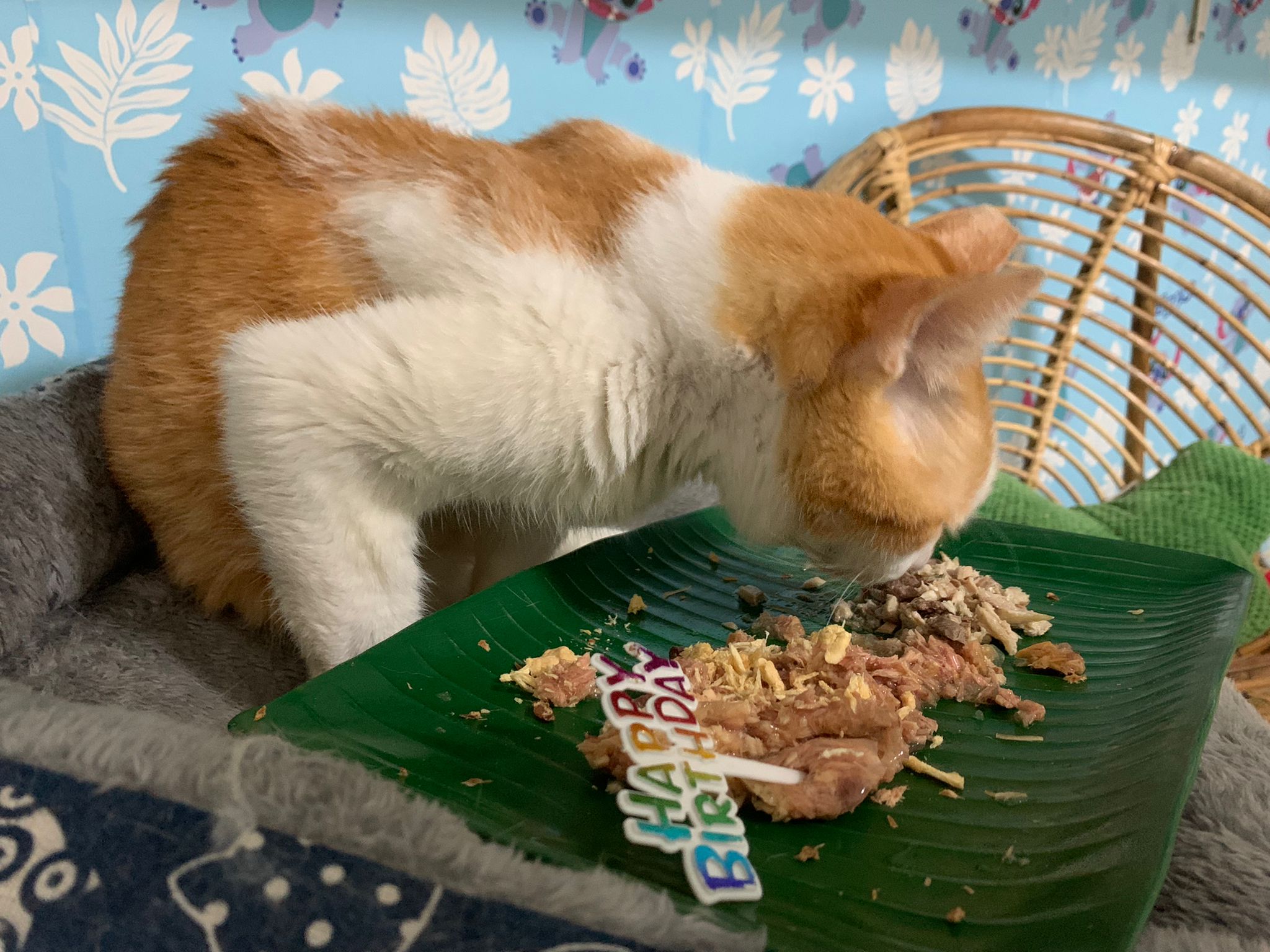 * 1250pm; actively eating on his own, 猫房 24/7 serving style suit him