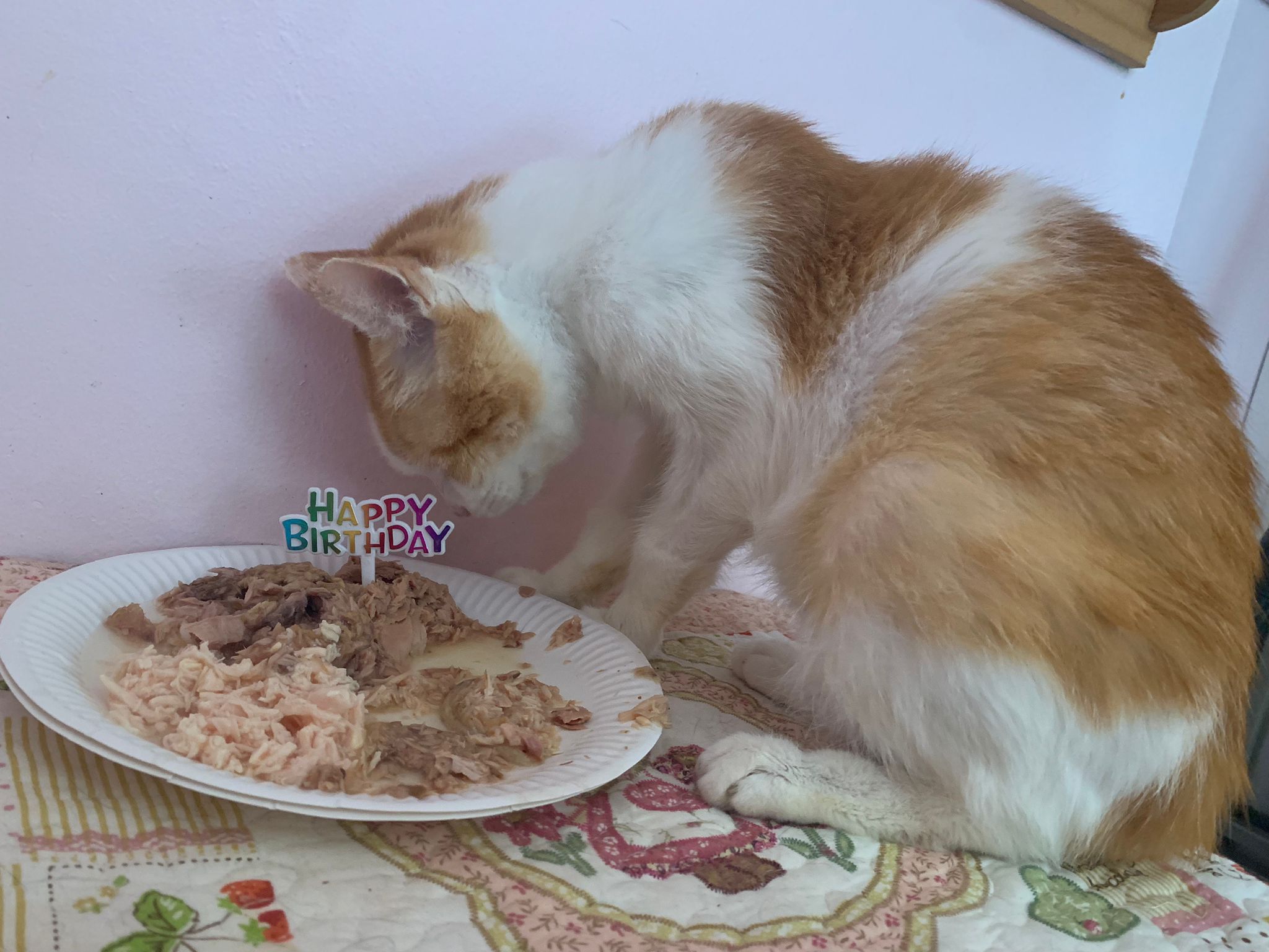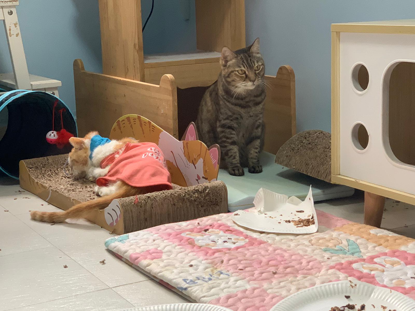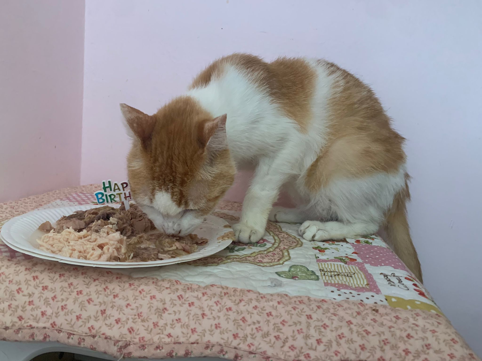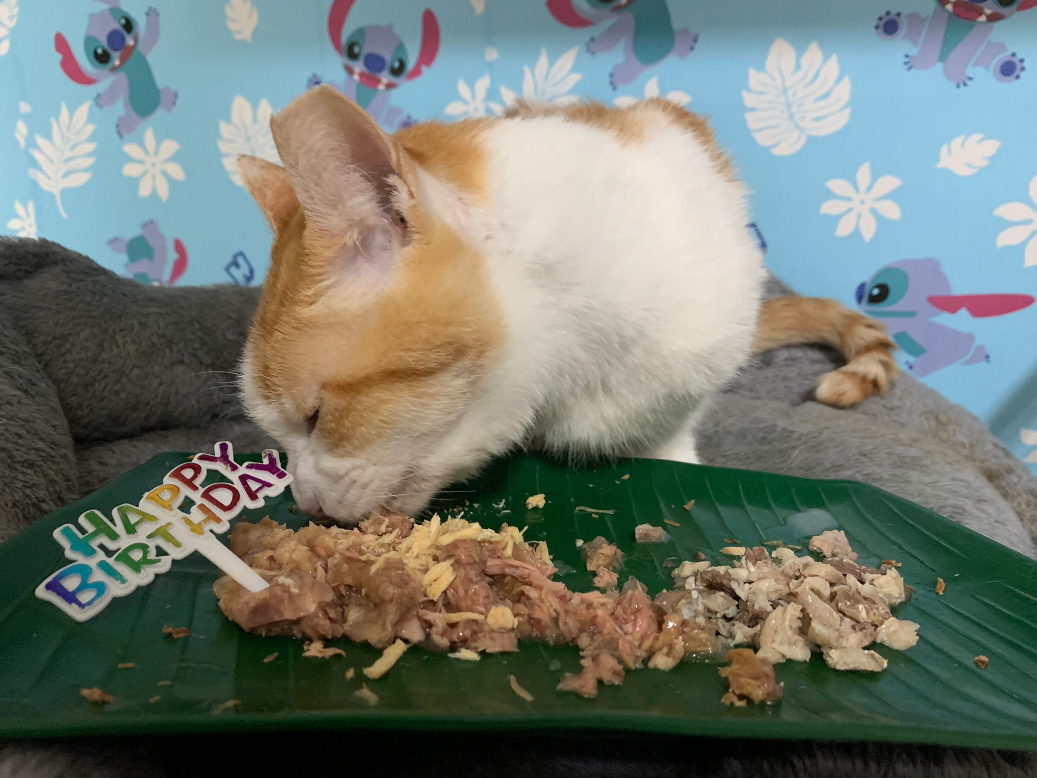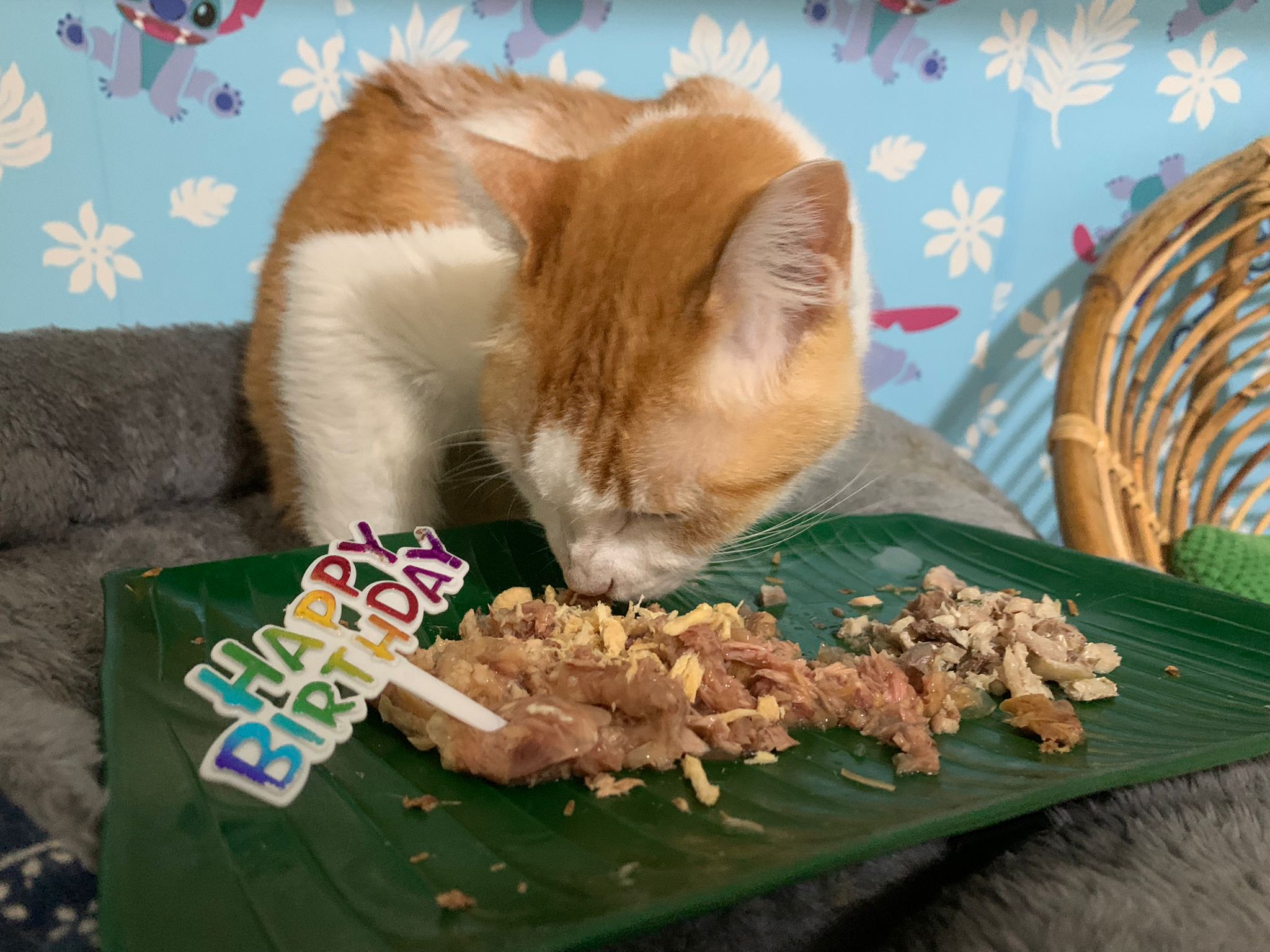 * 1250pm; actively eating on his own, 猫房 24/7 serving style suit him