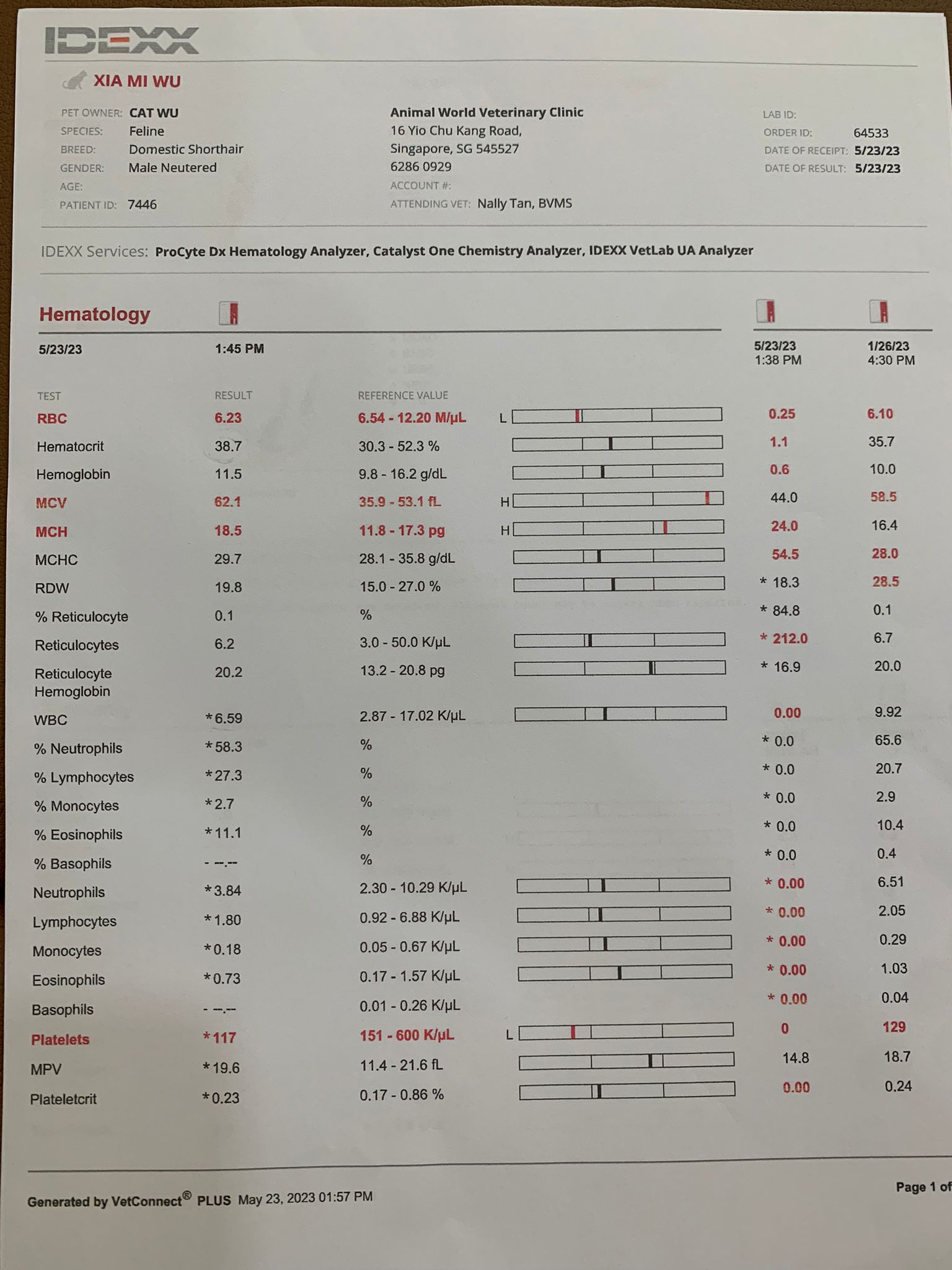 5.09am: he did try to lift his head up but Duno got fall back or not. V weak. Today going to take bloods, but if anemic- so? What else to add on? Alr on darbepoetin.