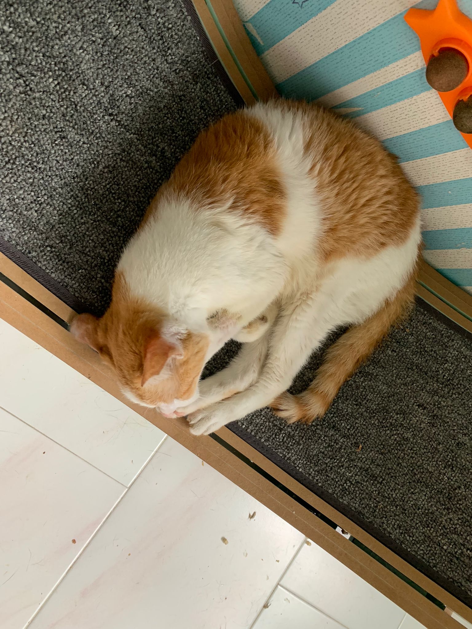 11.09pm: fr ip: sleeping position. Don’t think he ate. Tmr I can only fed him once. but I’ll try to do more – like half can.