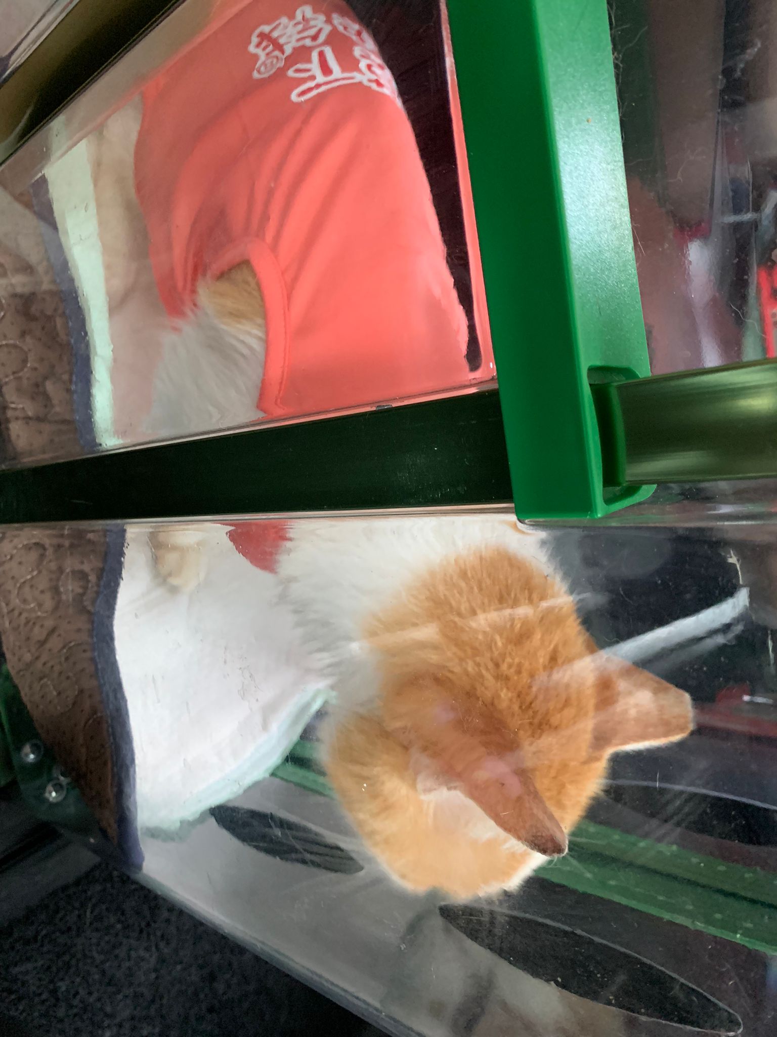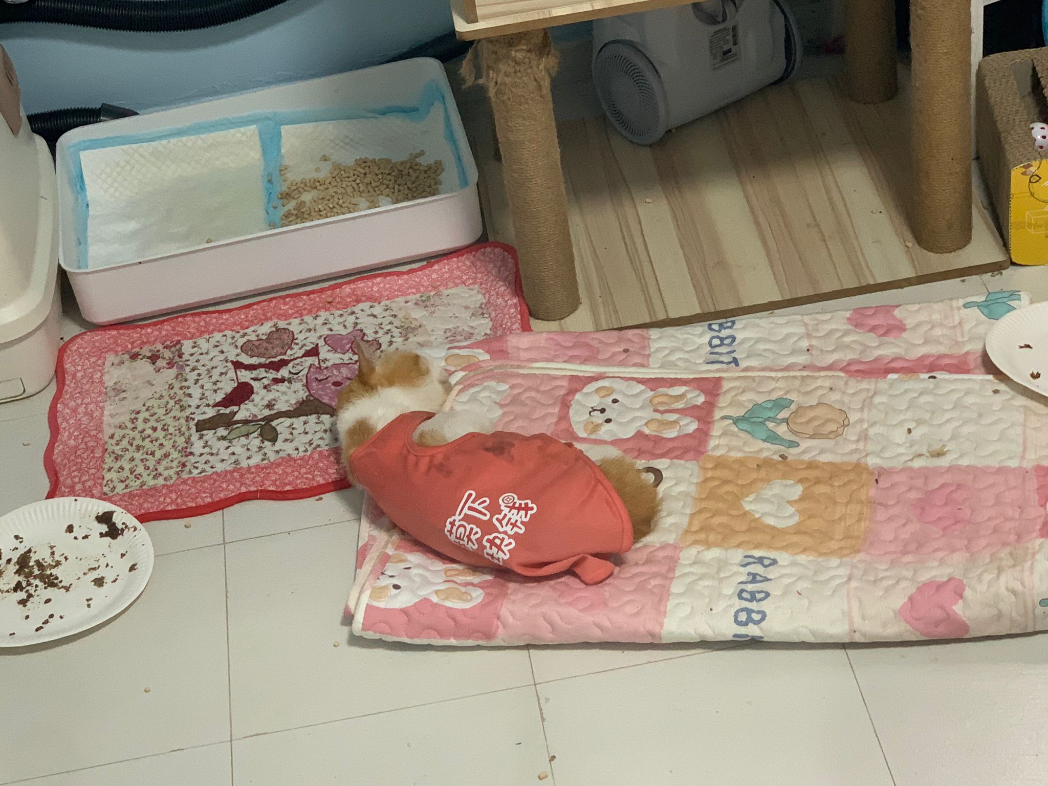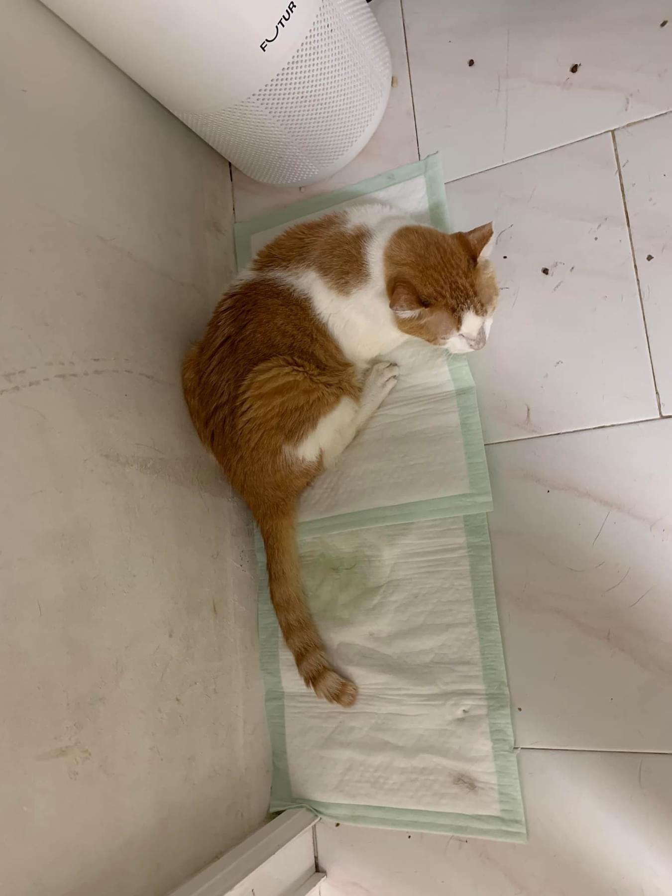 1.33pm: he crawl back to the white bin le. Sigh Tmr I got to wash and replace mat and pads for him.
