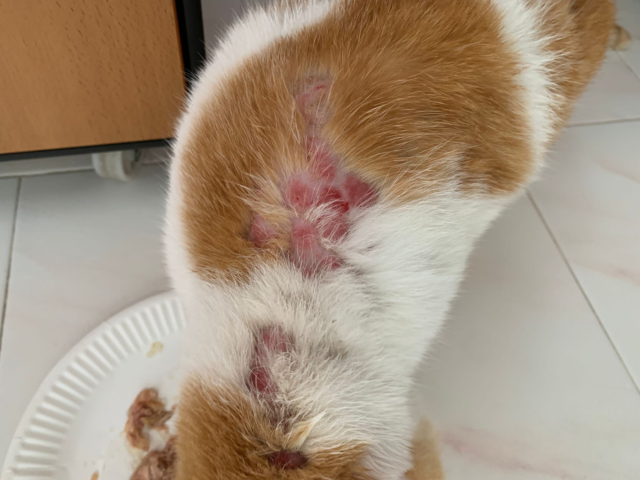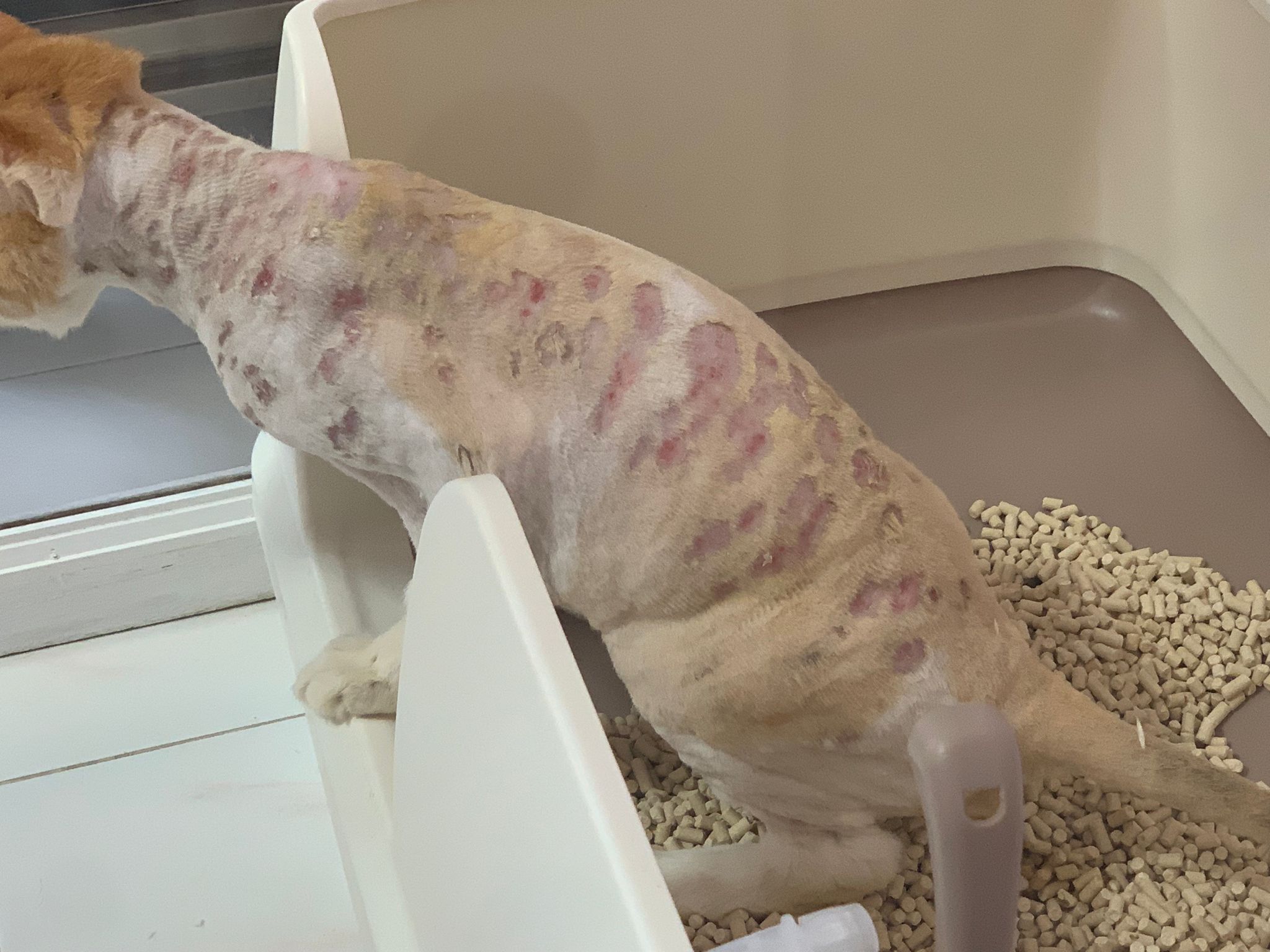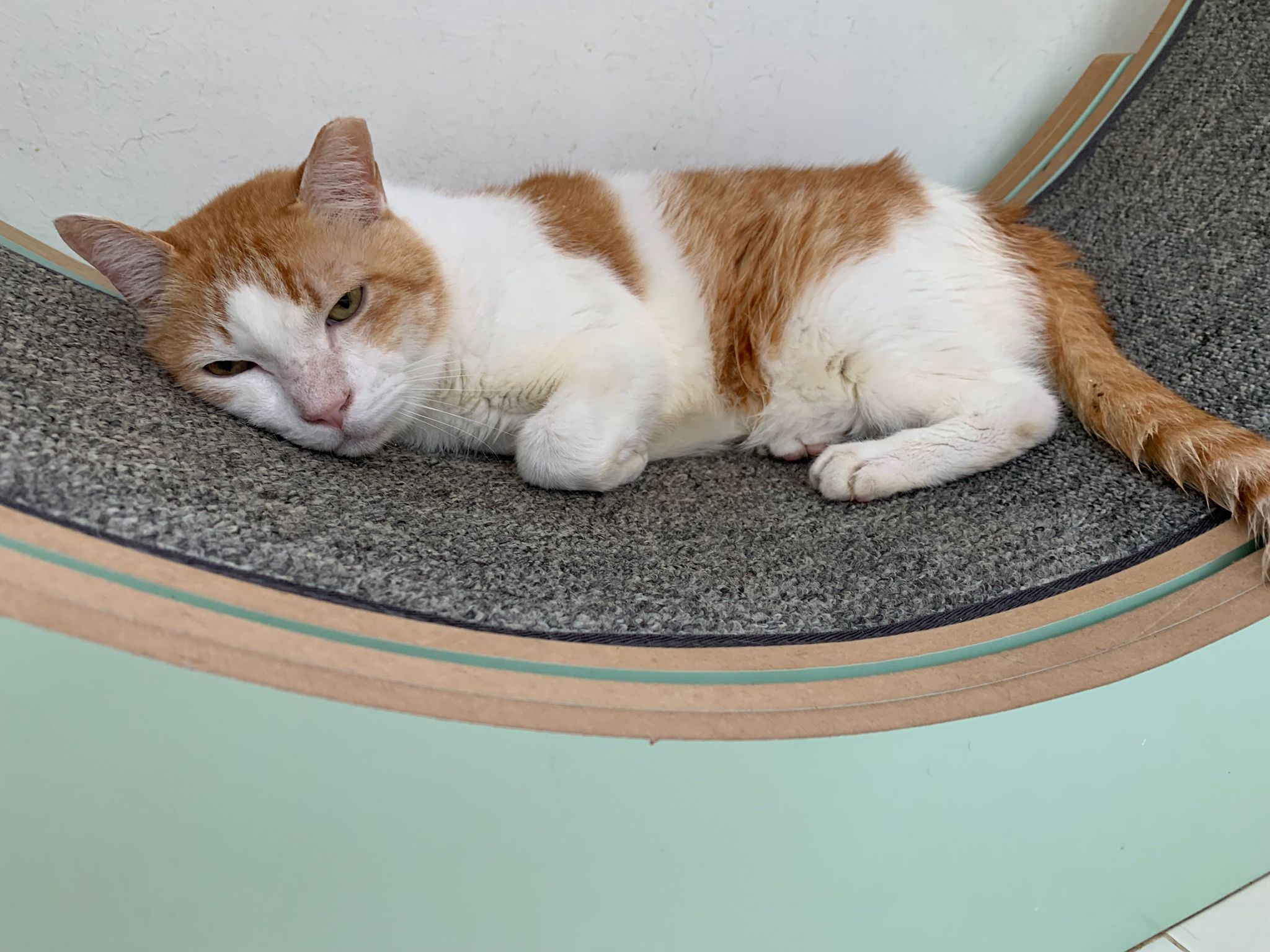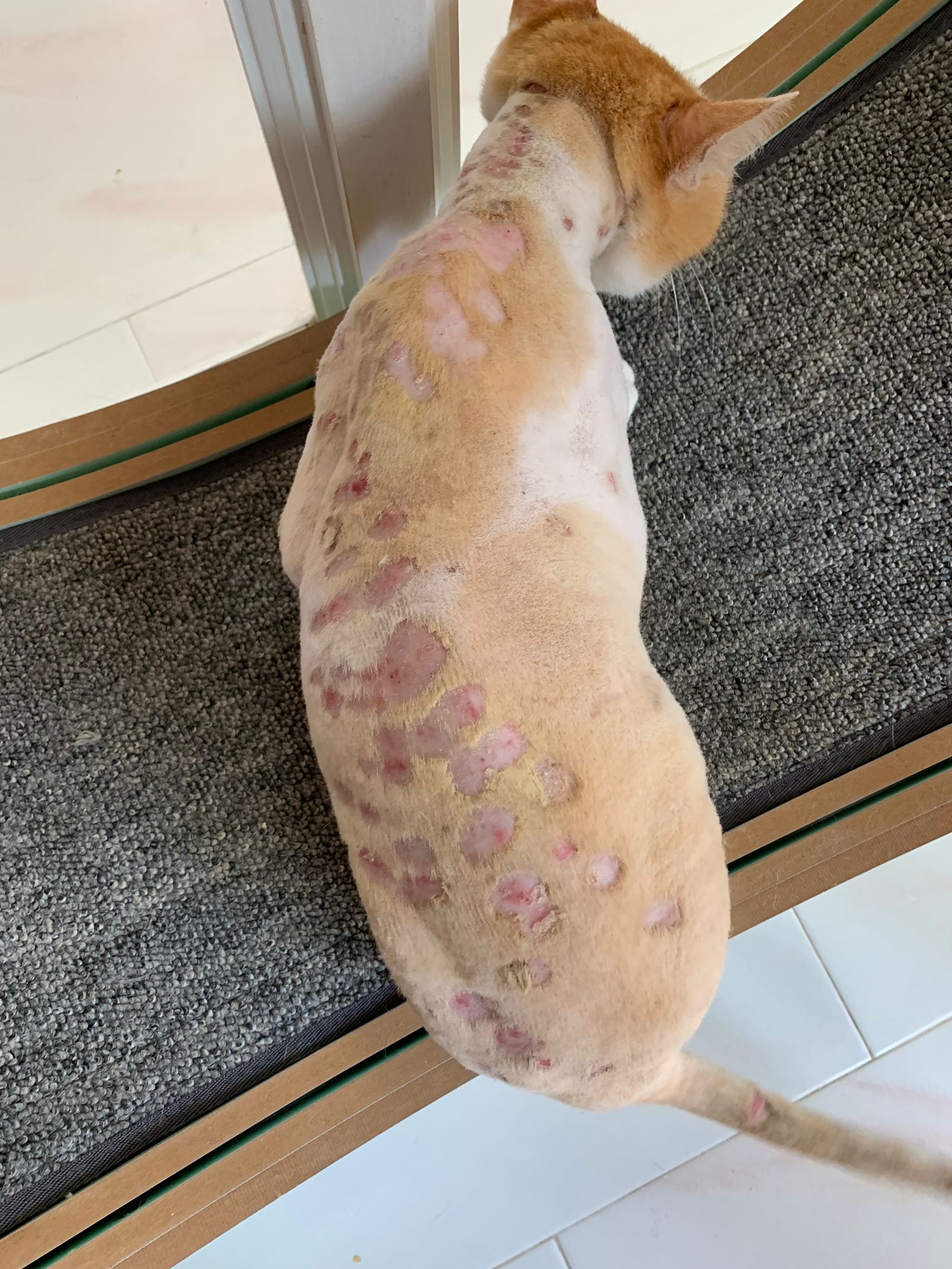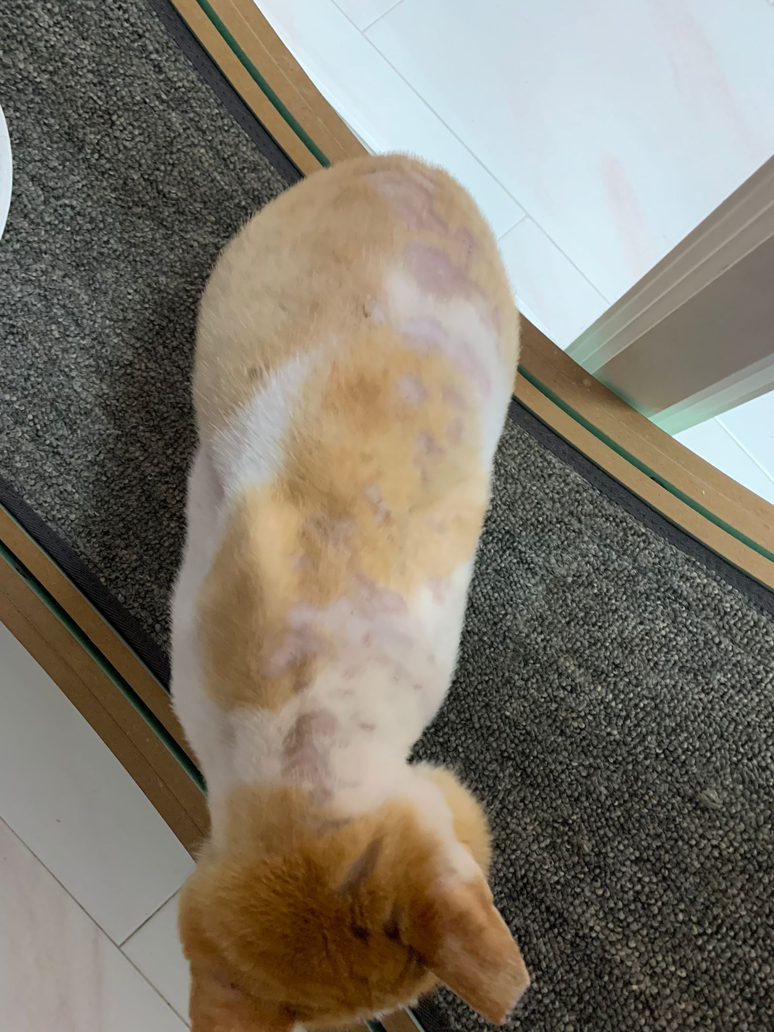 Almost 1pm then get into felv room, tube fed him 80ml Kd. Today given darbepoetin 0.1ml 20ug, ie 4ug for his 2.53kg weight. That’s 1.5 times the usual dose. Started Marbo too. 2mg/kg. Clav still continue. He can still move but choose to stay on the sofa. I took off his t shirt. Let him rest.