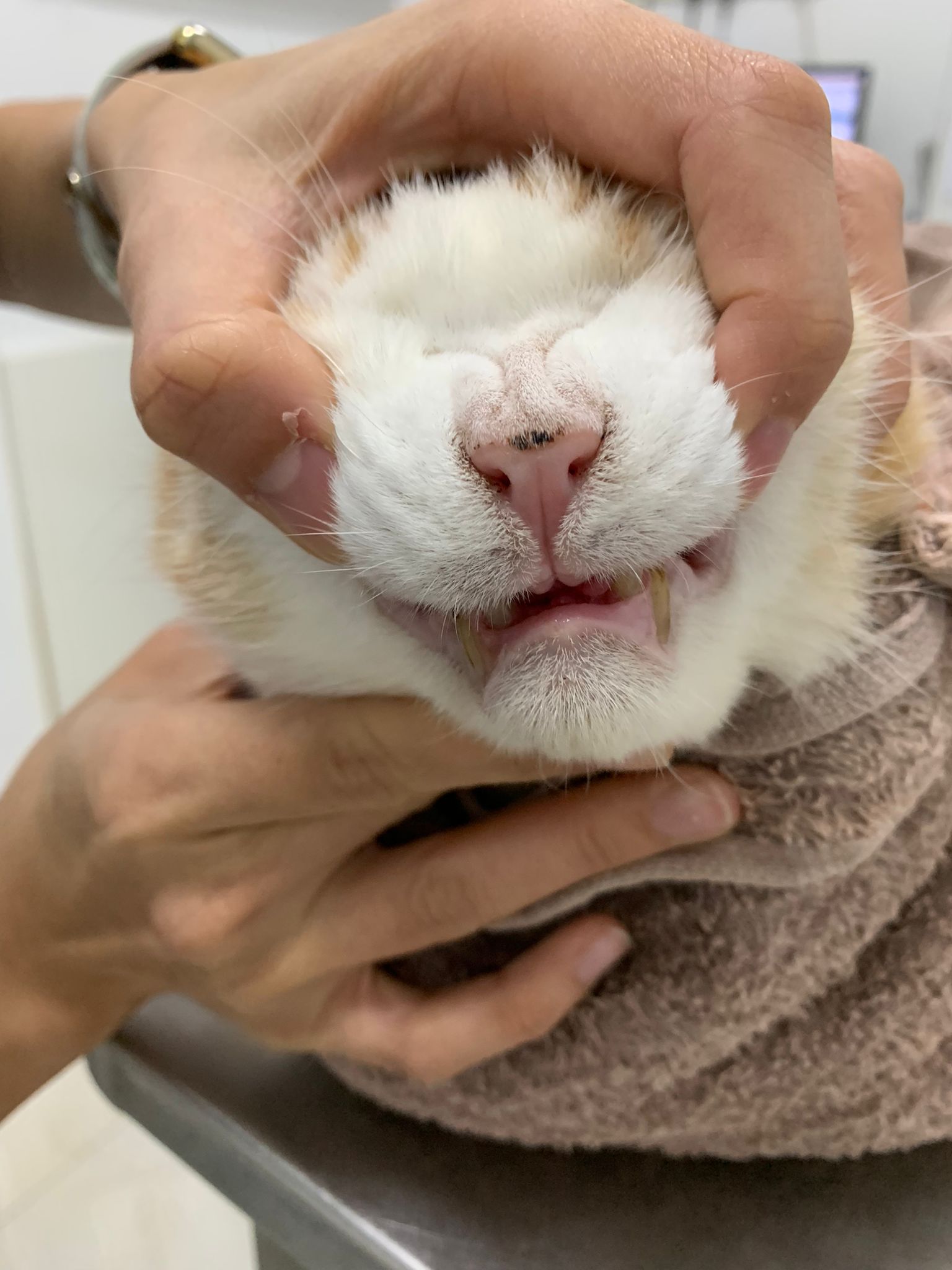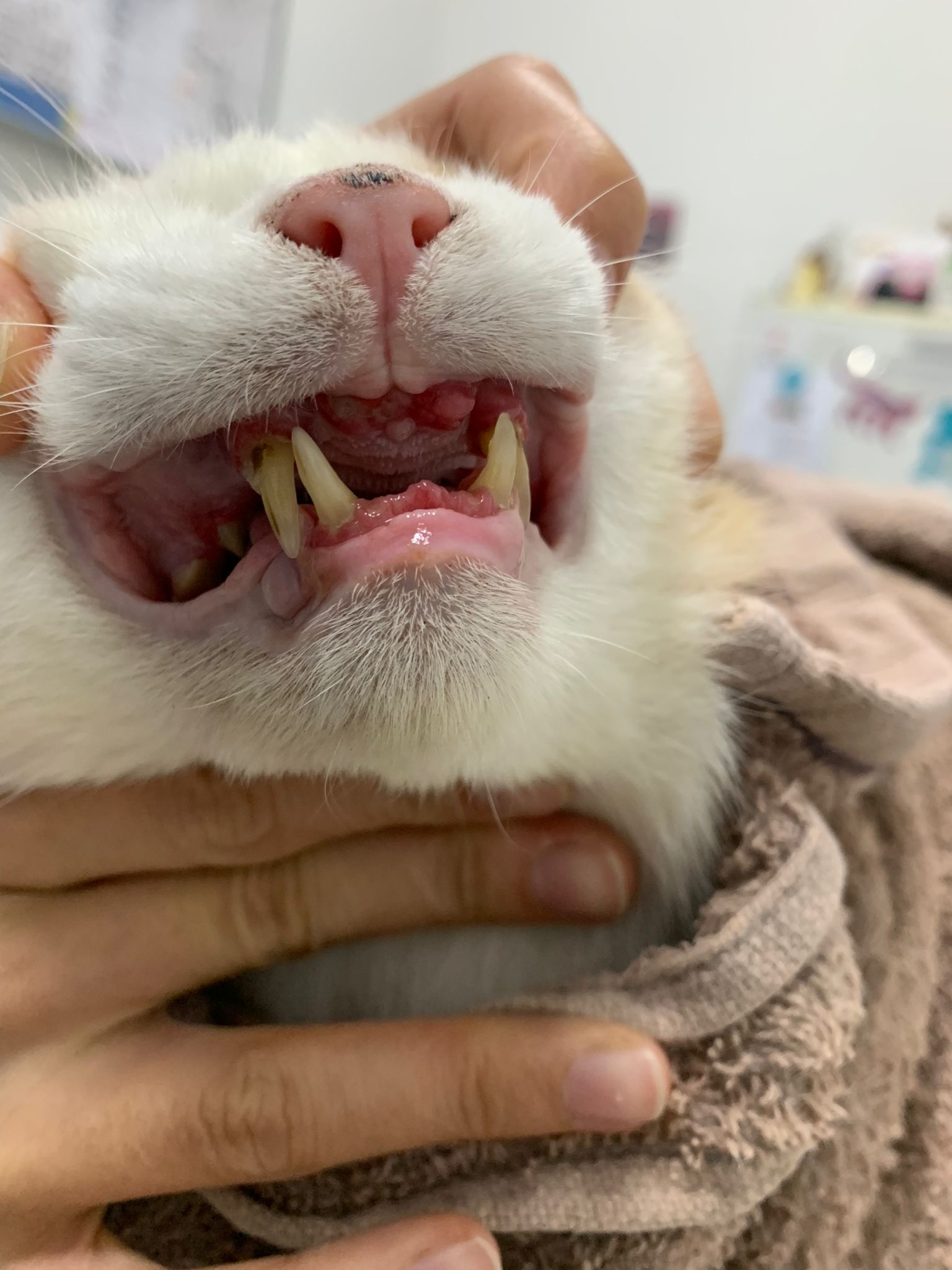 His Lower mouth left very bad – got pus. should need a dental – teeth really bad for both sides cos can easily see thick tar tar