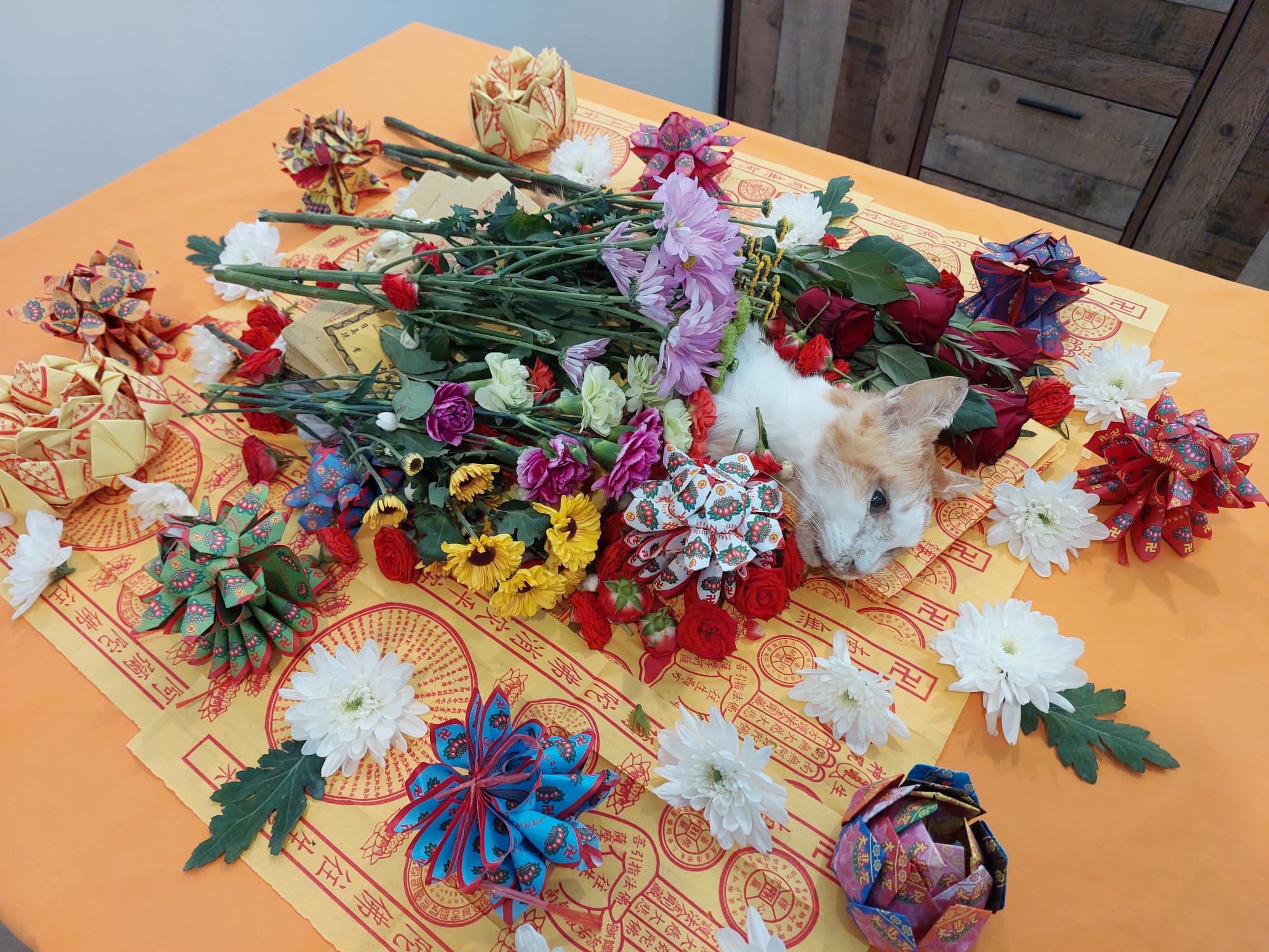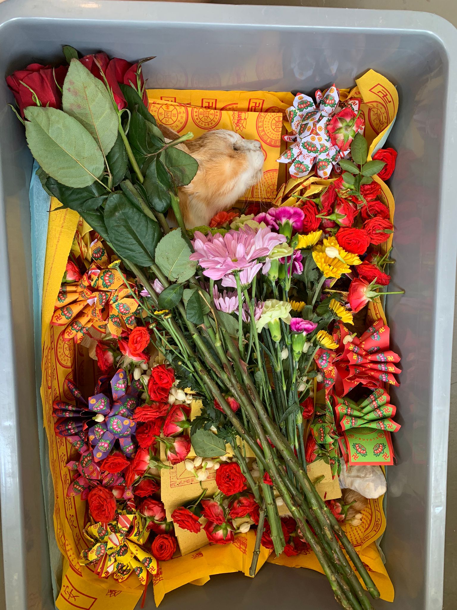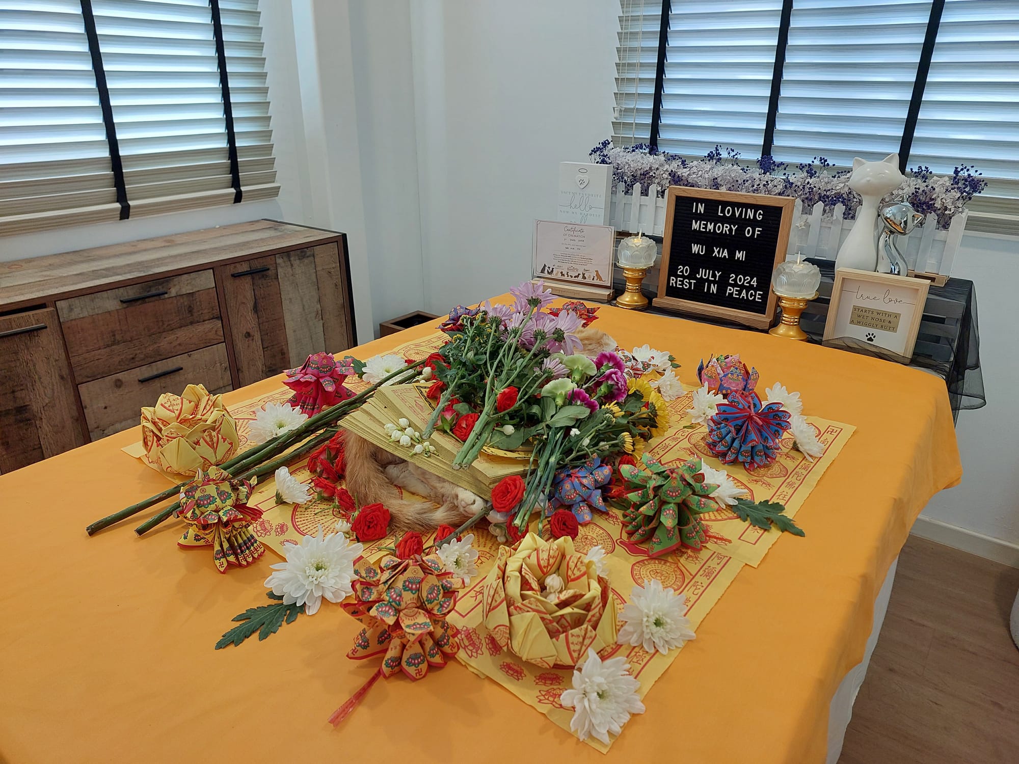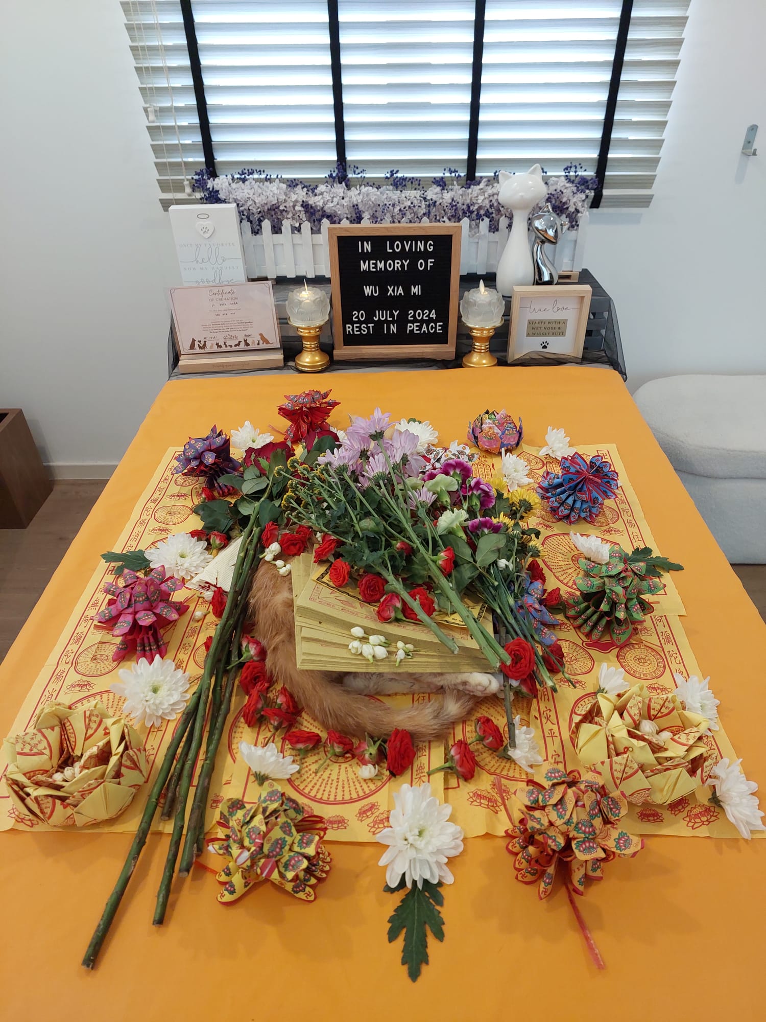Joanna n lee fang come for his funeral w flowers. Kerry ask for sayang while seeing Xiami for the last few time. Lf ask for his permission to cut off some of his fur – His tail a tiny bit only for keepsake.