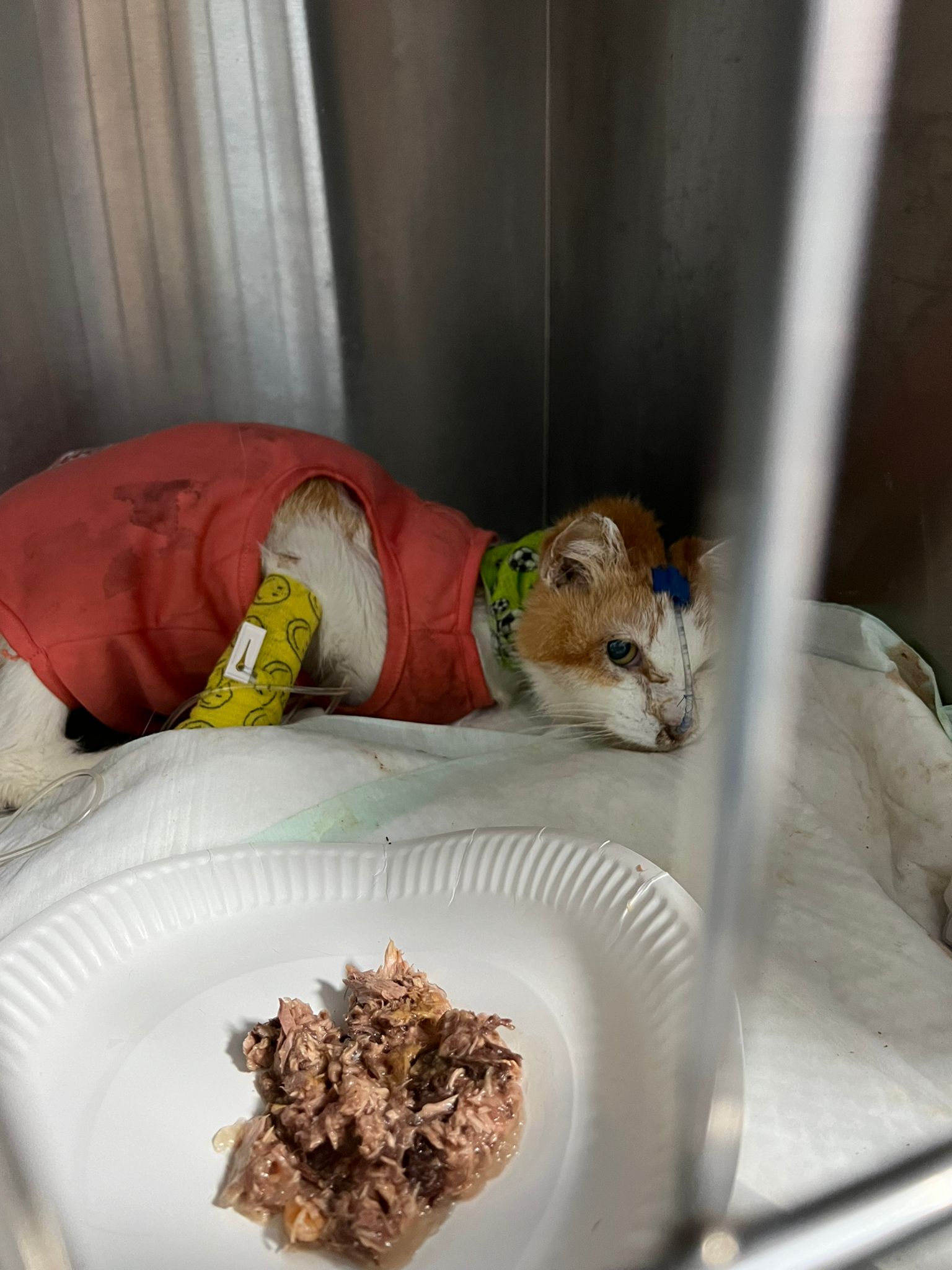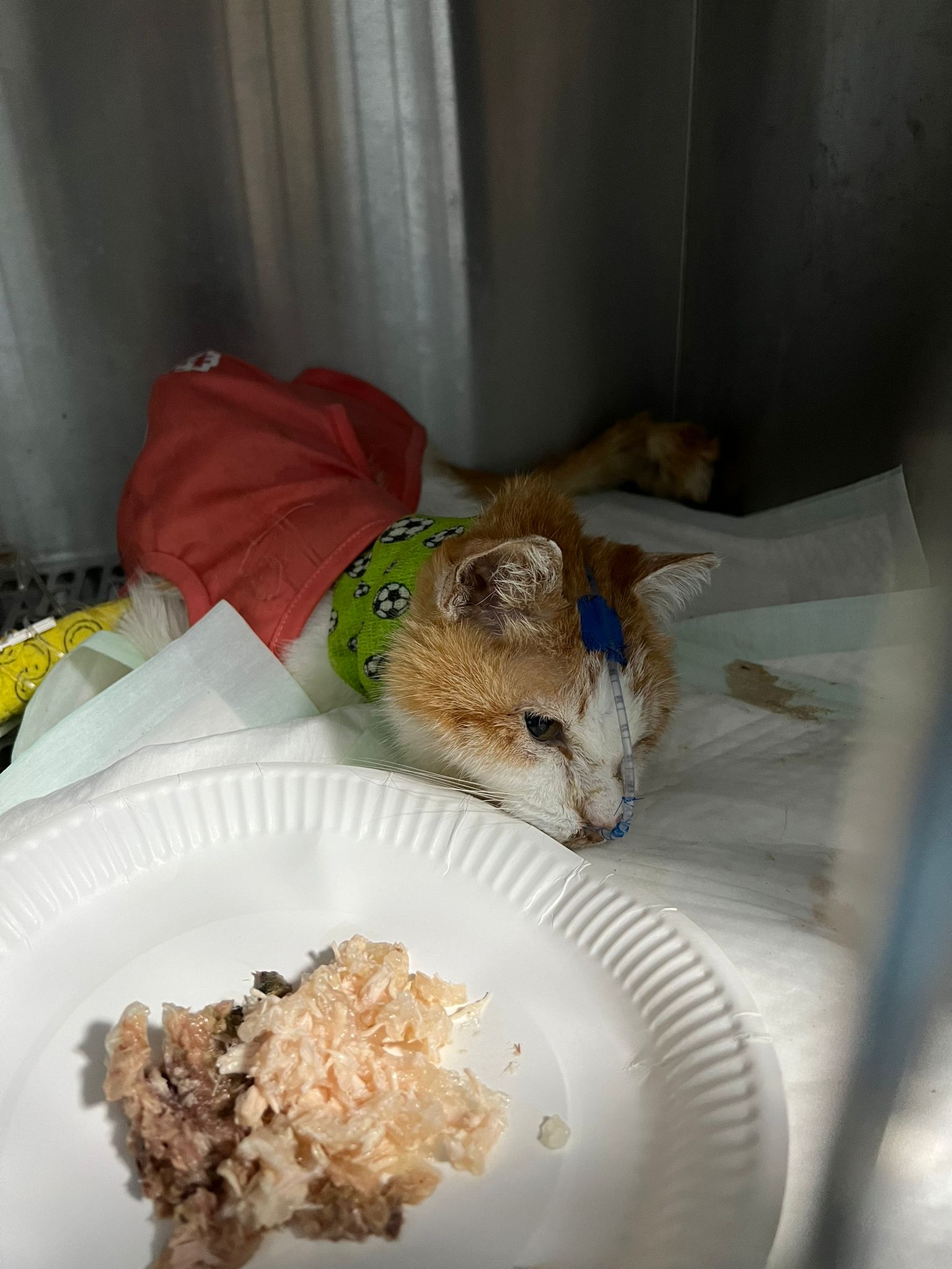 He is ok but weak and I give food he didn’t eat. Told him I go marathon vet and I come