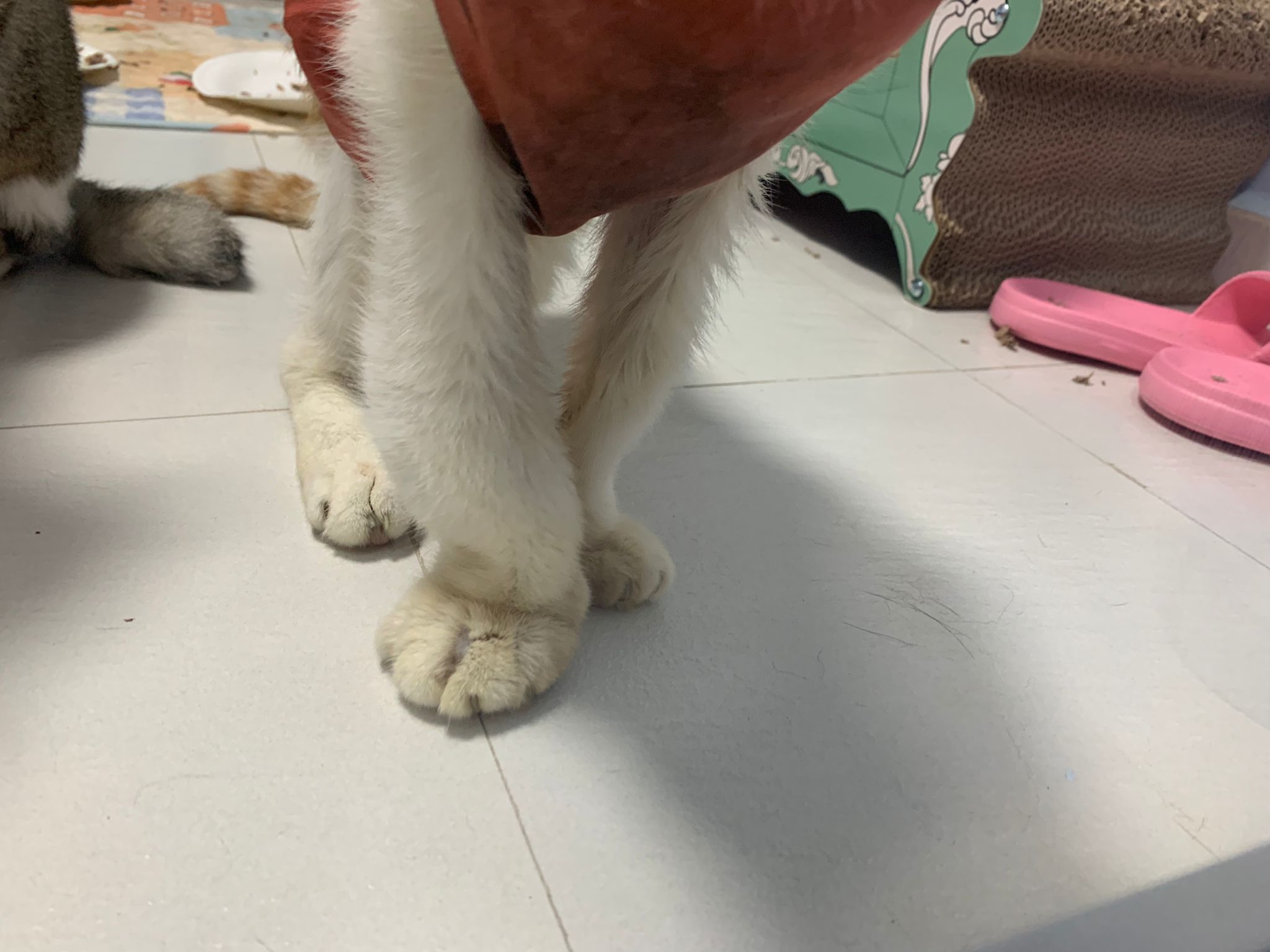 * morning; Xiami walk w a limp – jo think his right hip area maybe dislocated