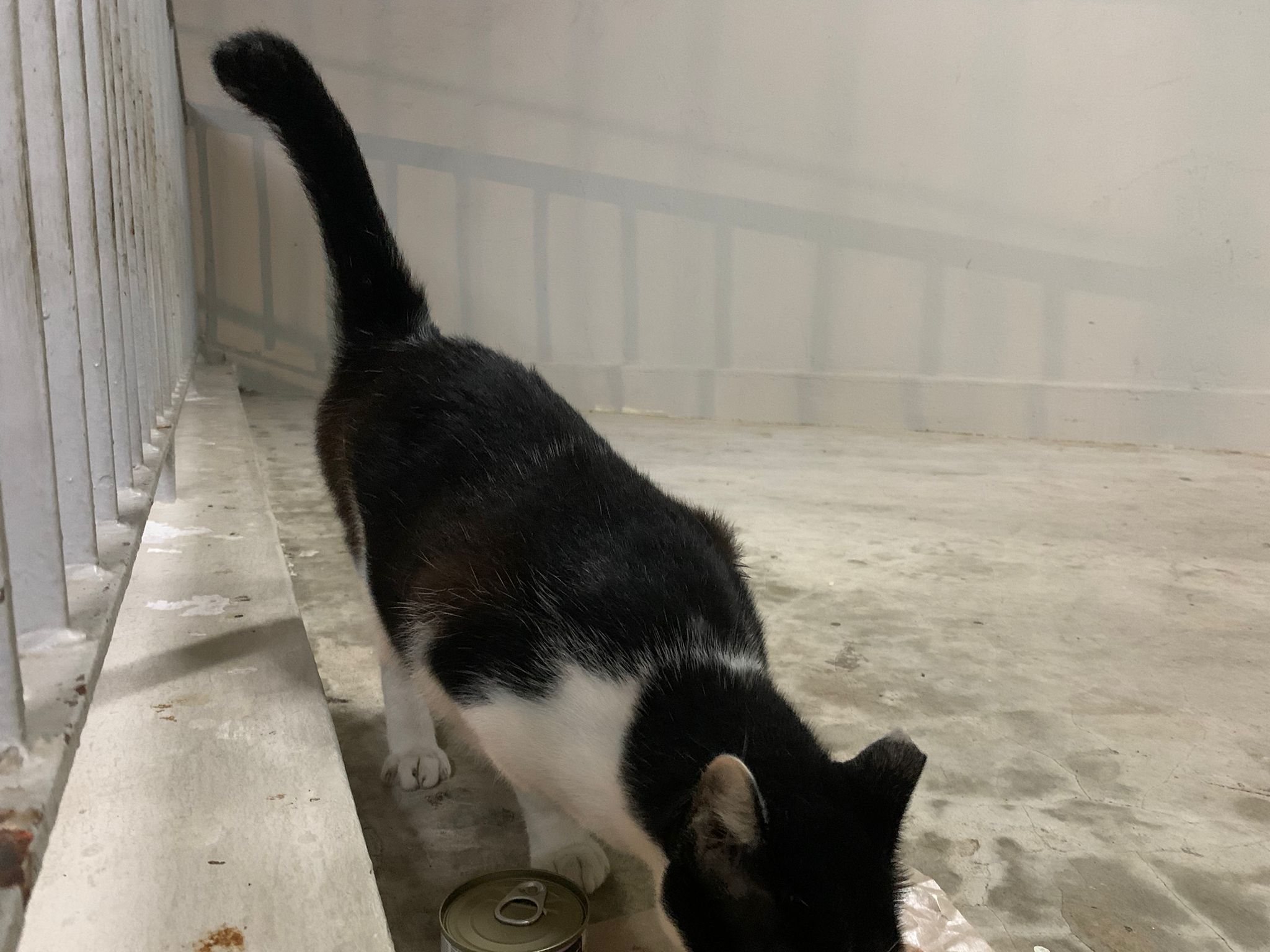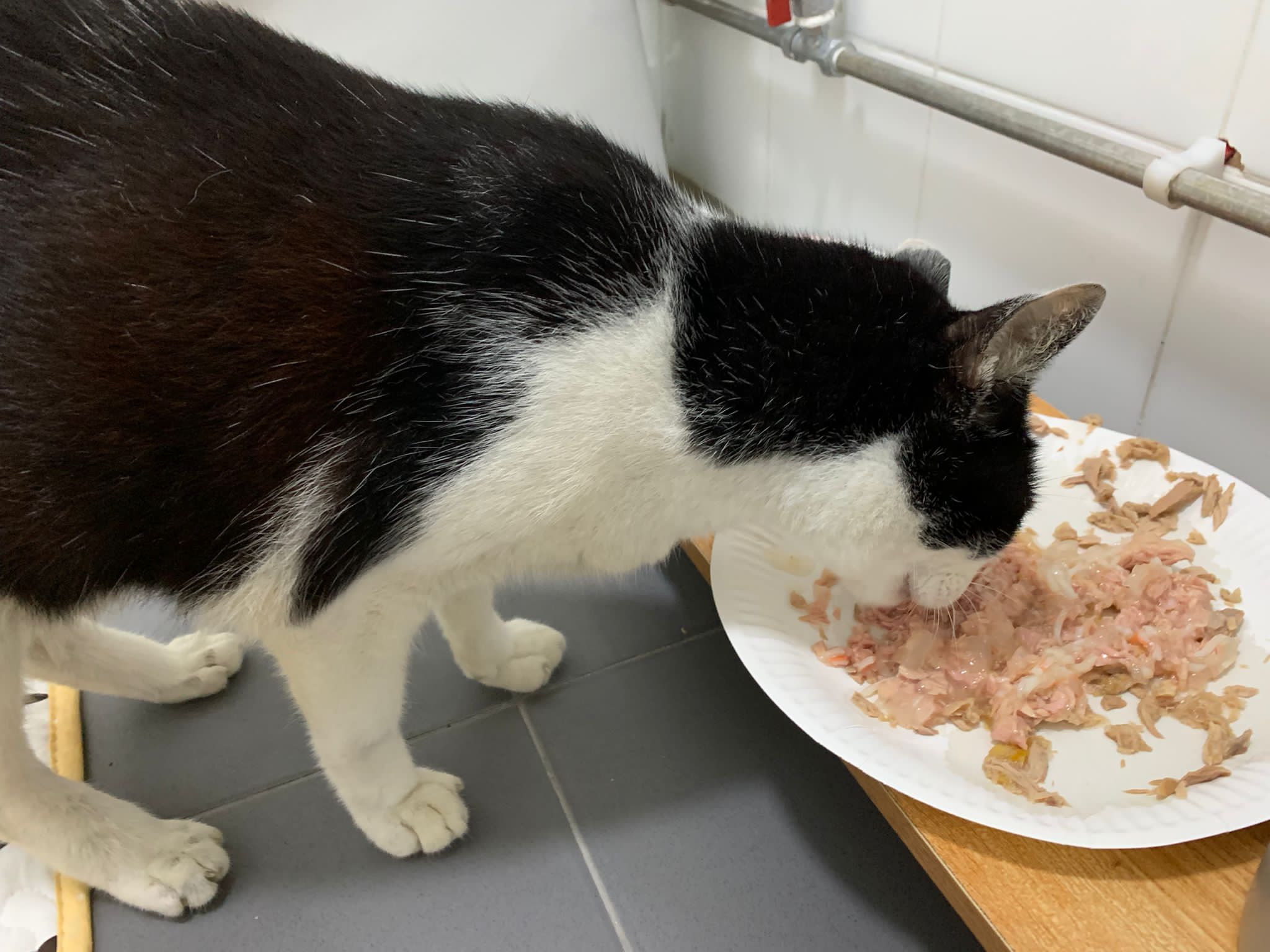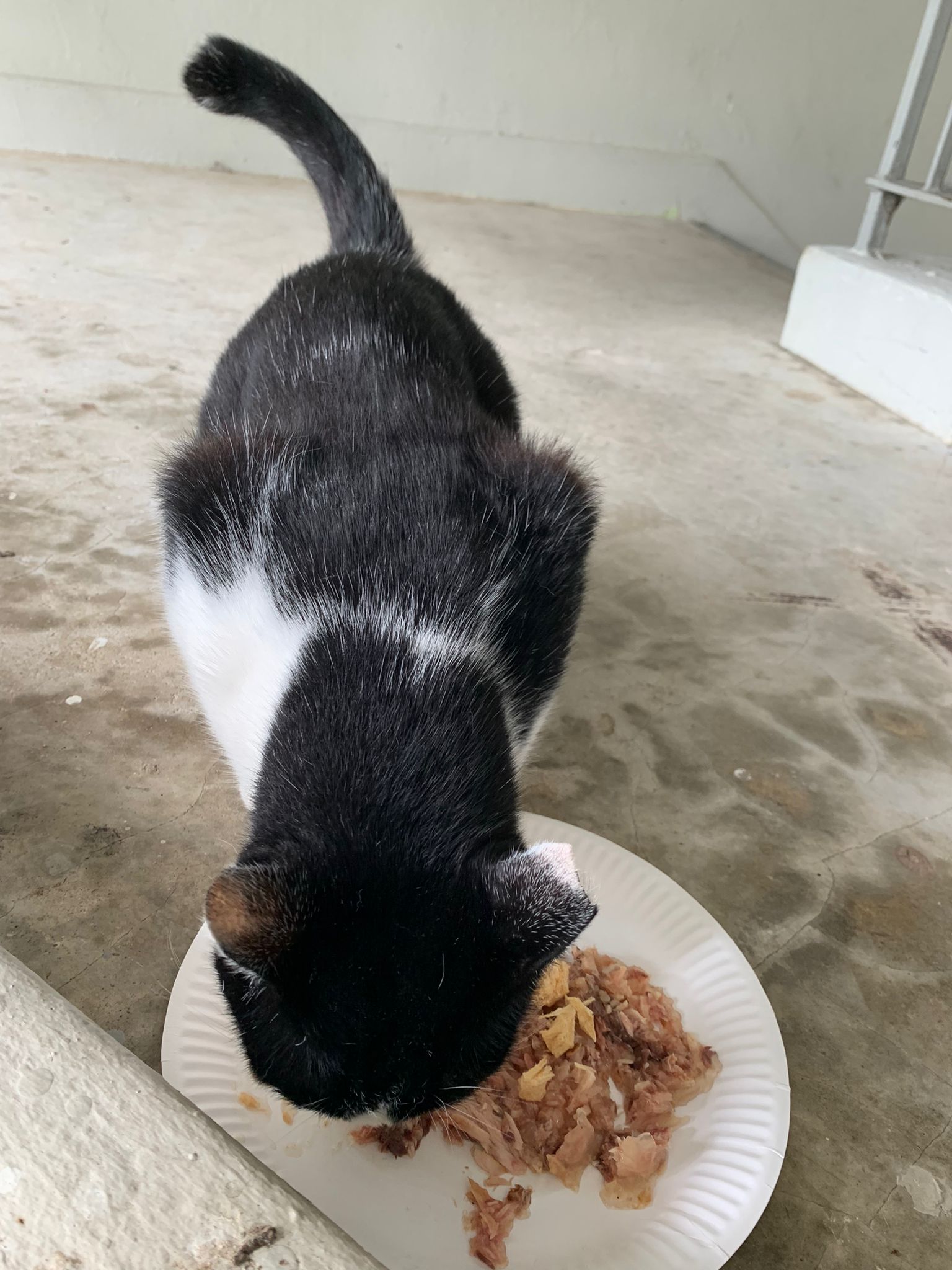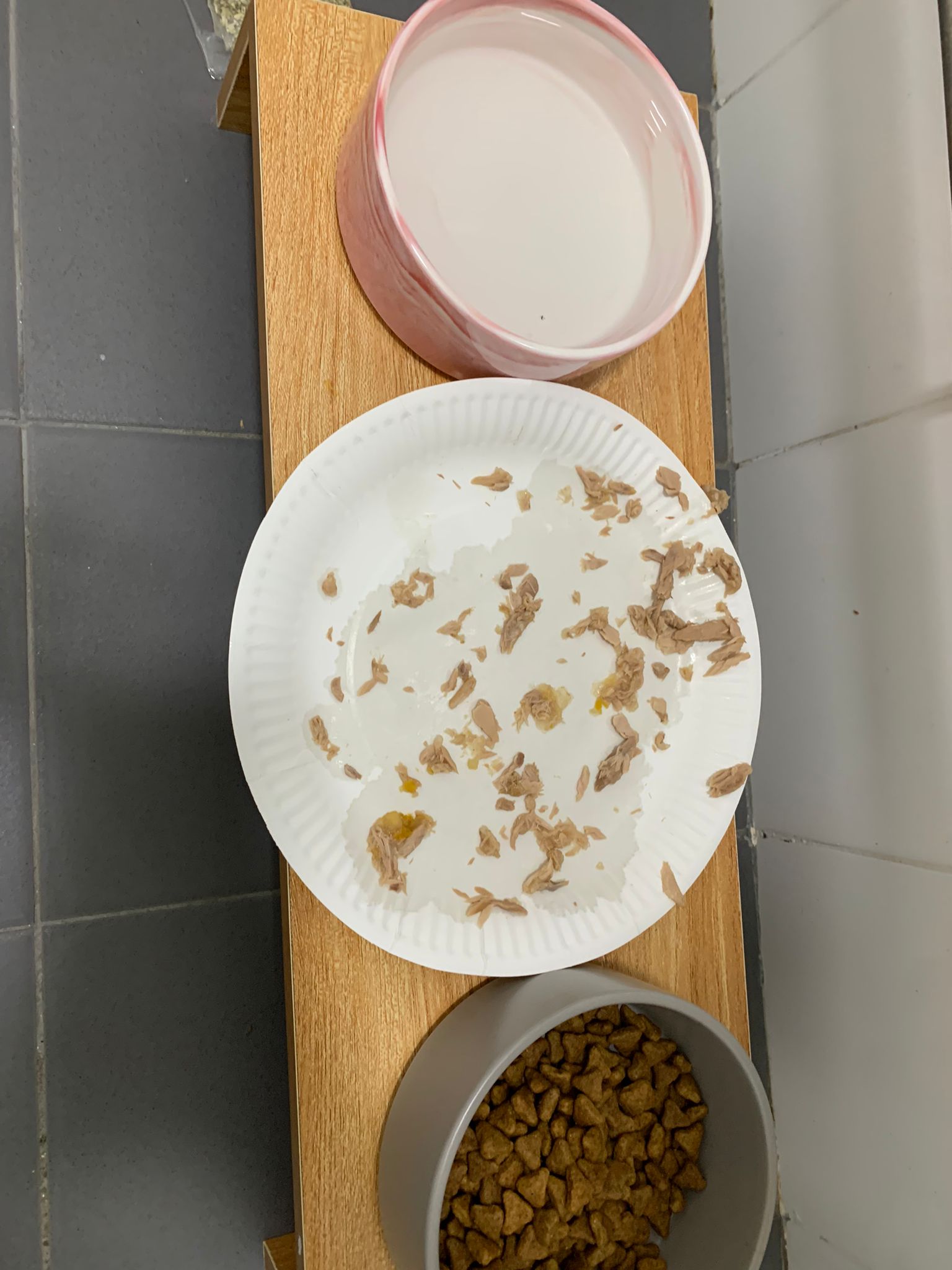 Noon: I packing house and xl wants me sayang. He quite close to me I serve him tuna w chicken ham and urinary kibble and left it at 1.5 floor for him to continue eating.