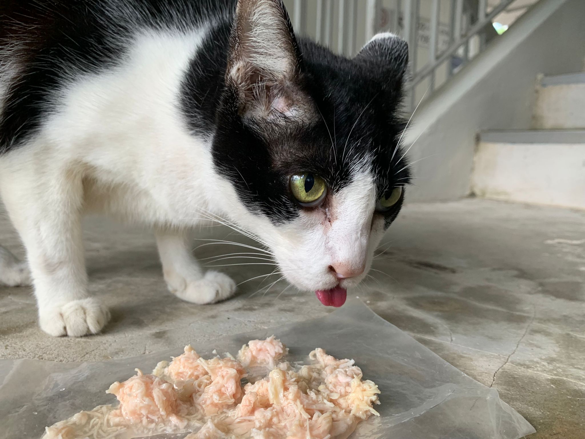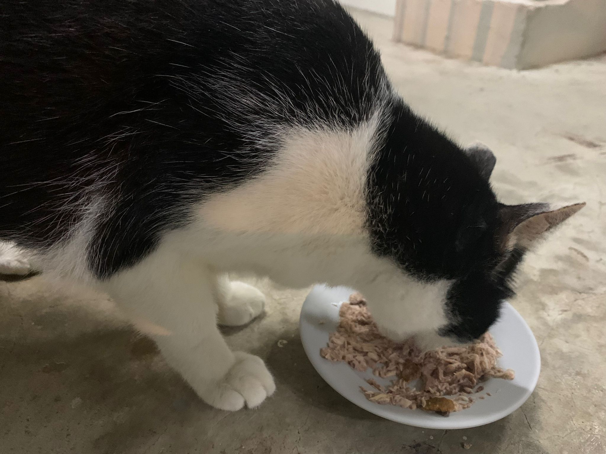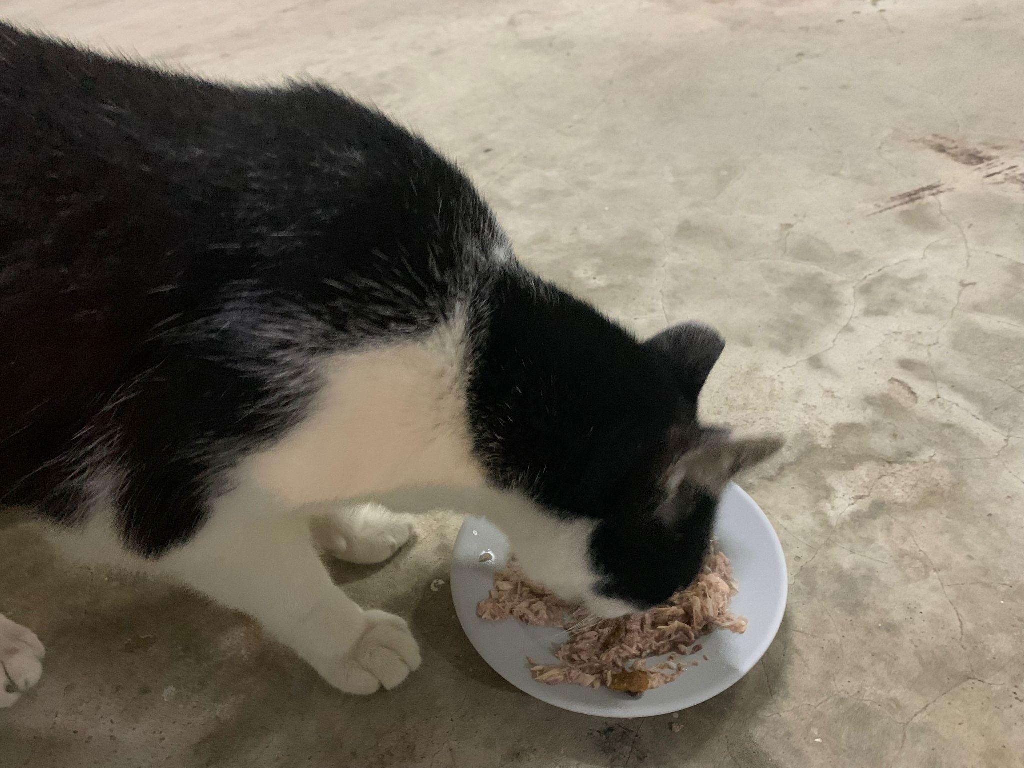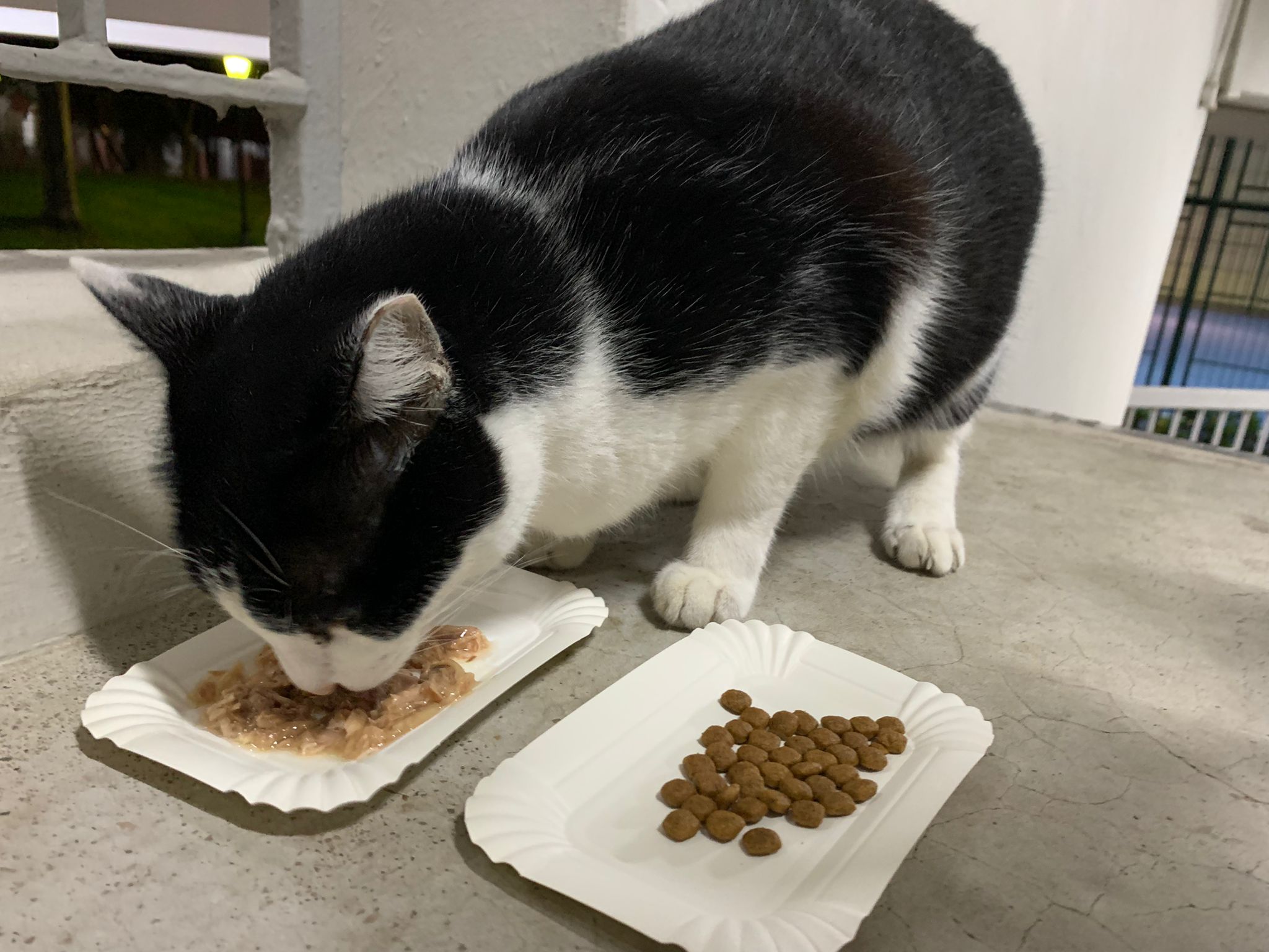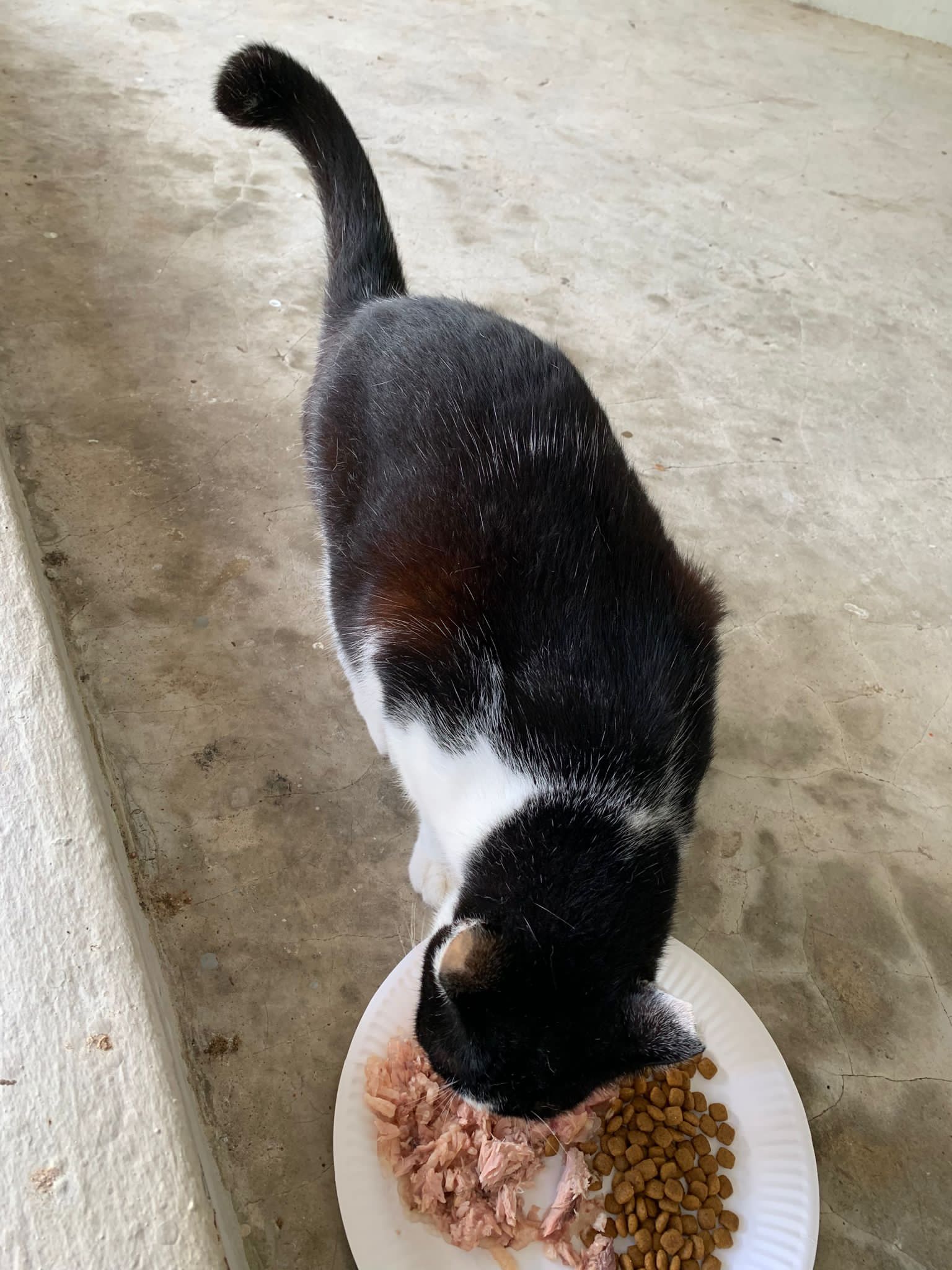 Noon: I packing house and xl wants me sayang. He quite close to me I serve him tuna w chicken ham and urinary kibble and left it at 1.5 floor for him to continue eating.