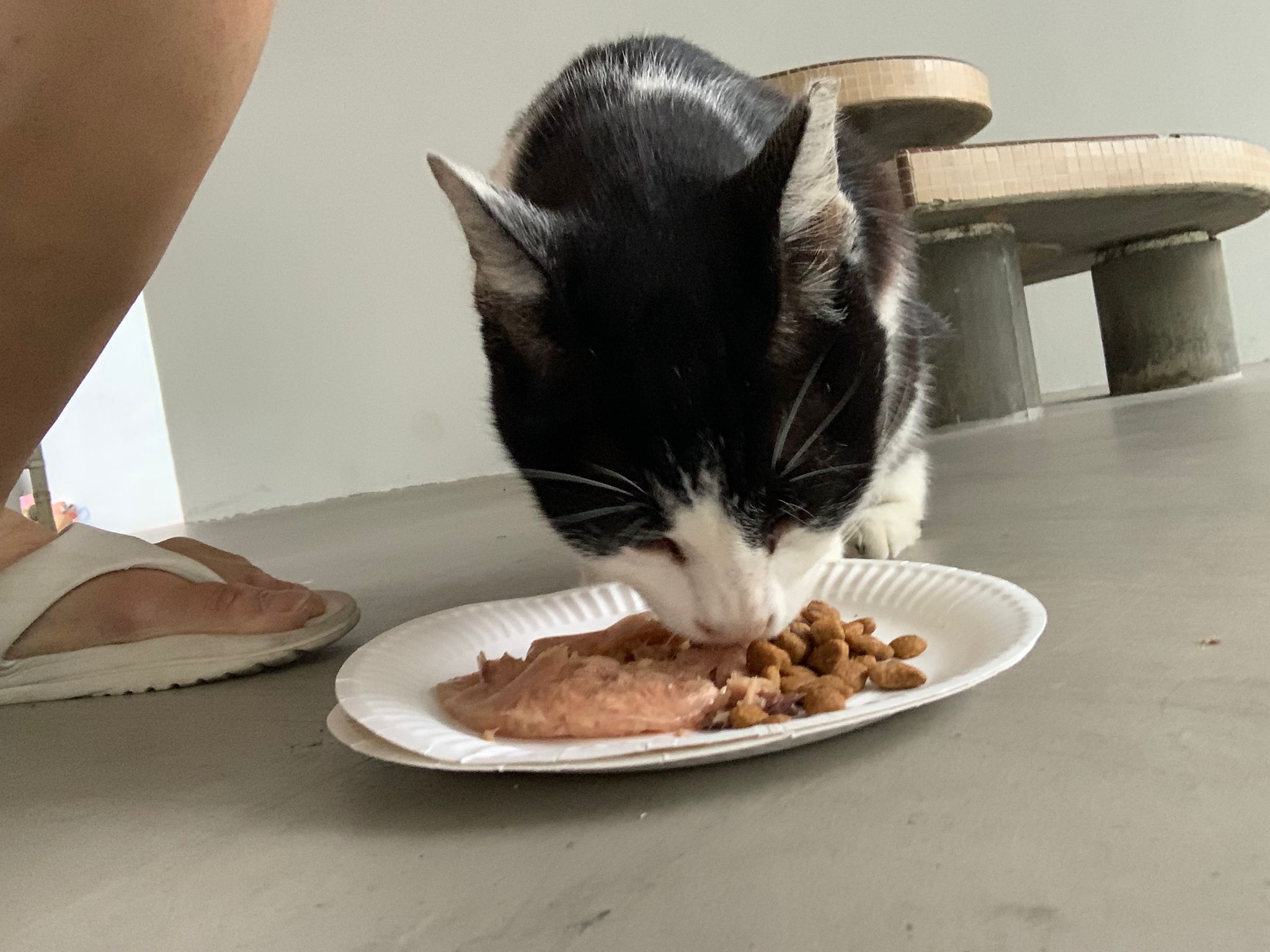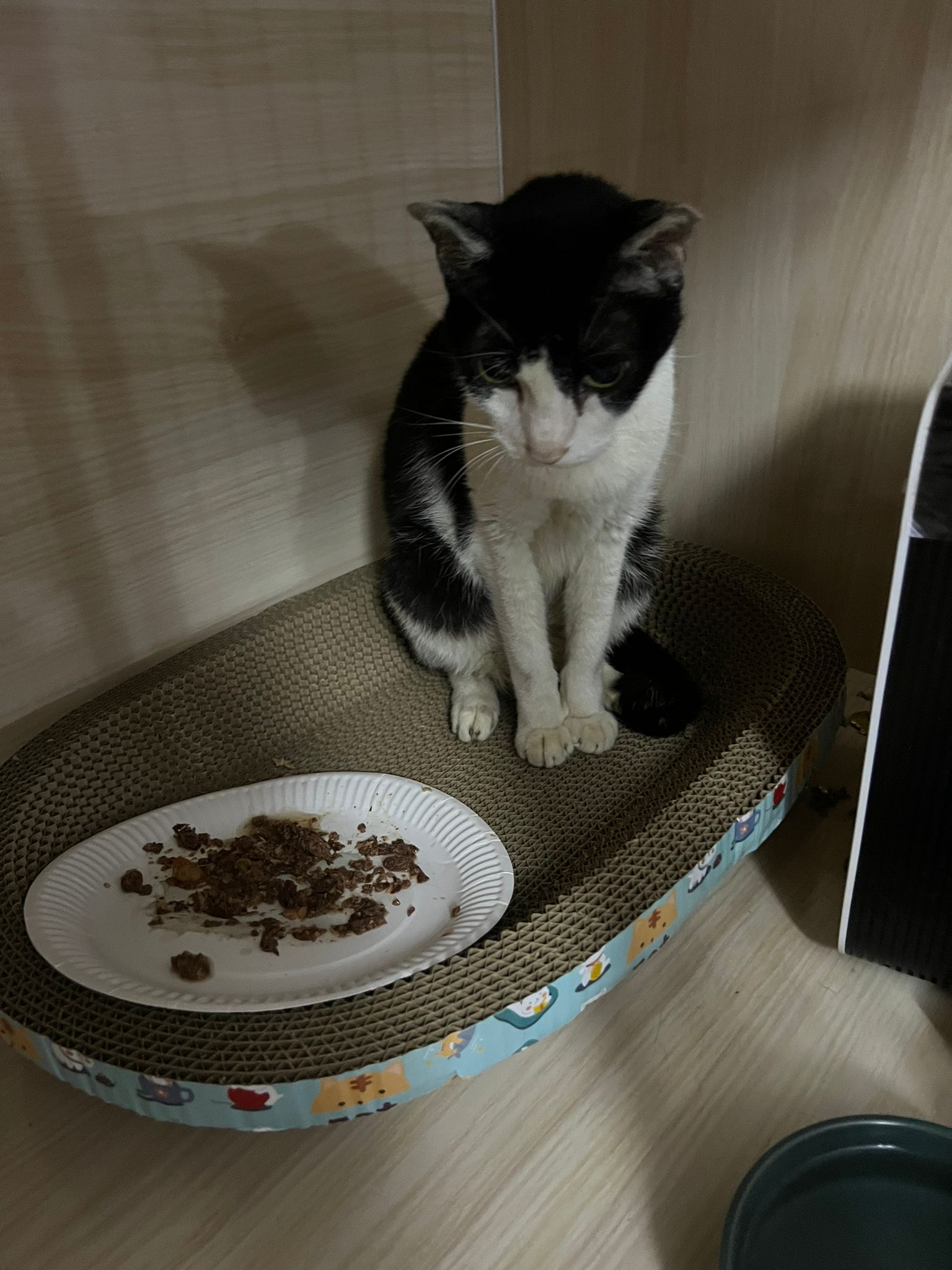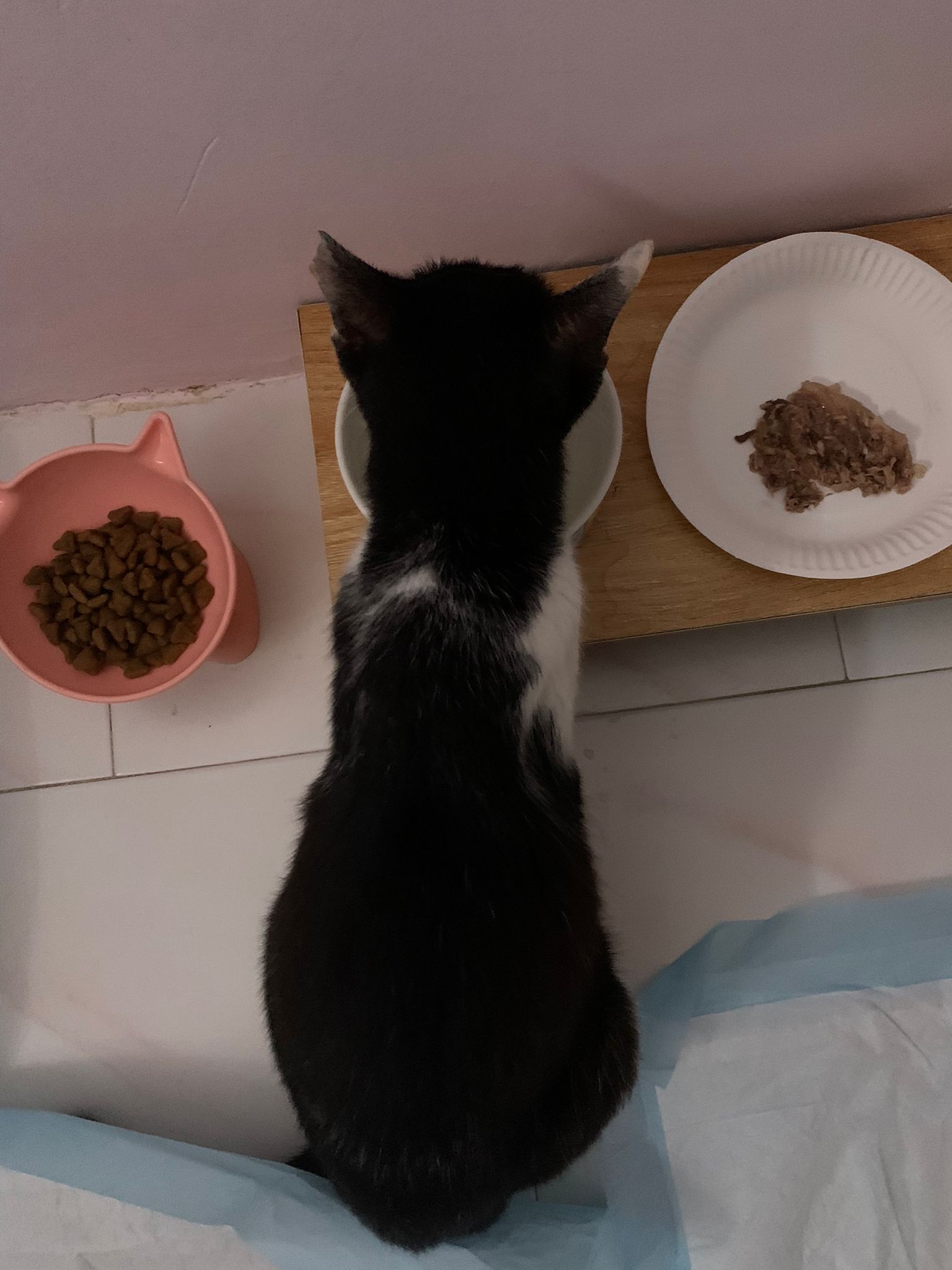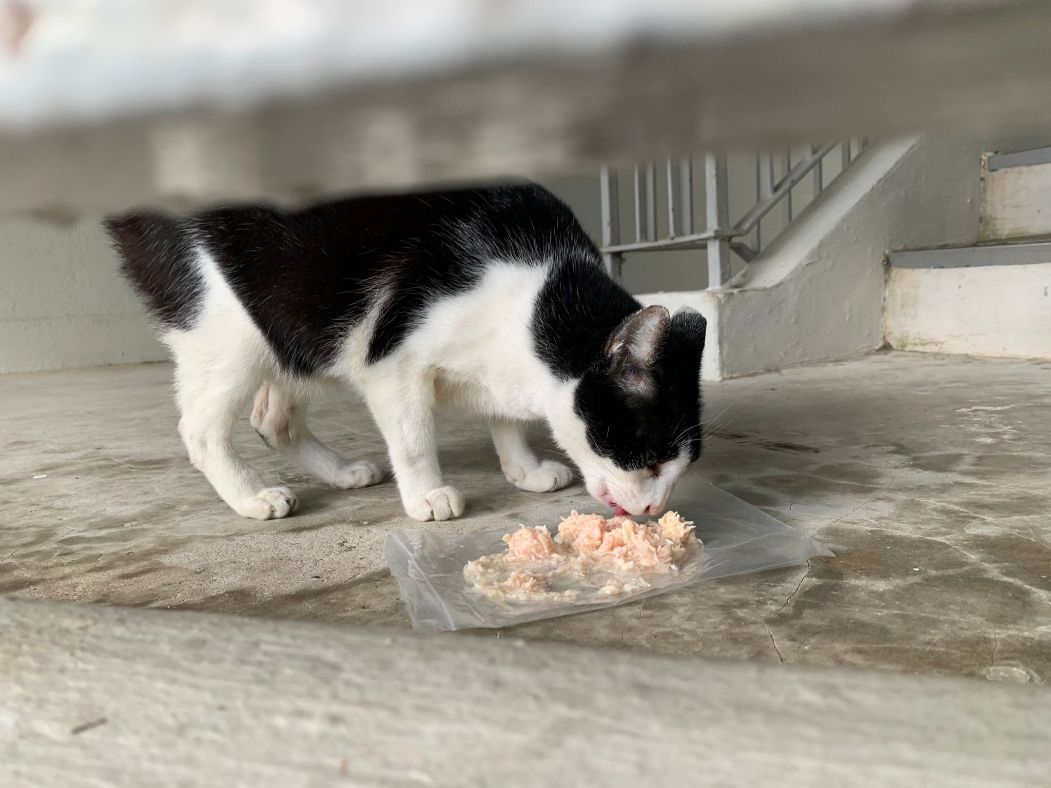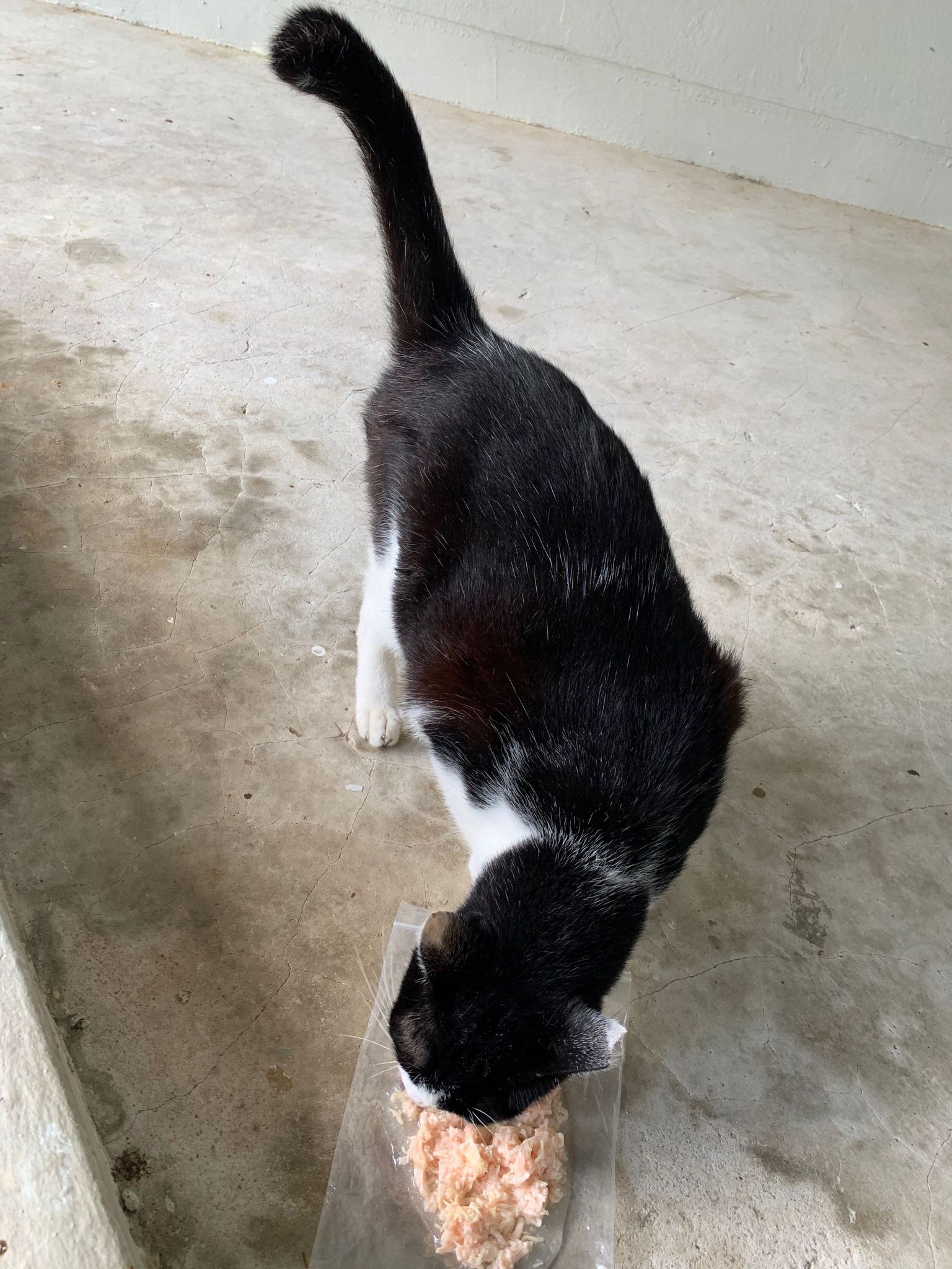 Noon: I packing house and xl wants me sayang. He quite close to me I serve him tuna w chicken ham and urinary kibble and left it at 1.5 floor for him to continue eating.