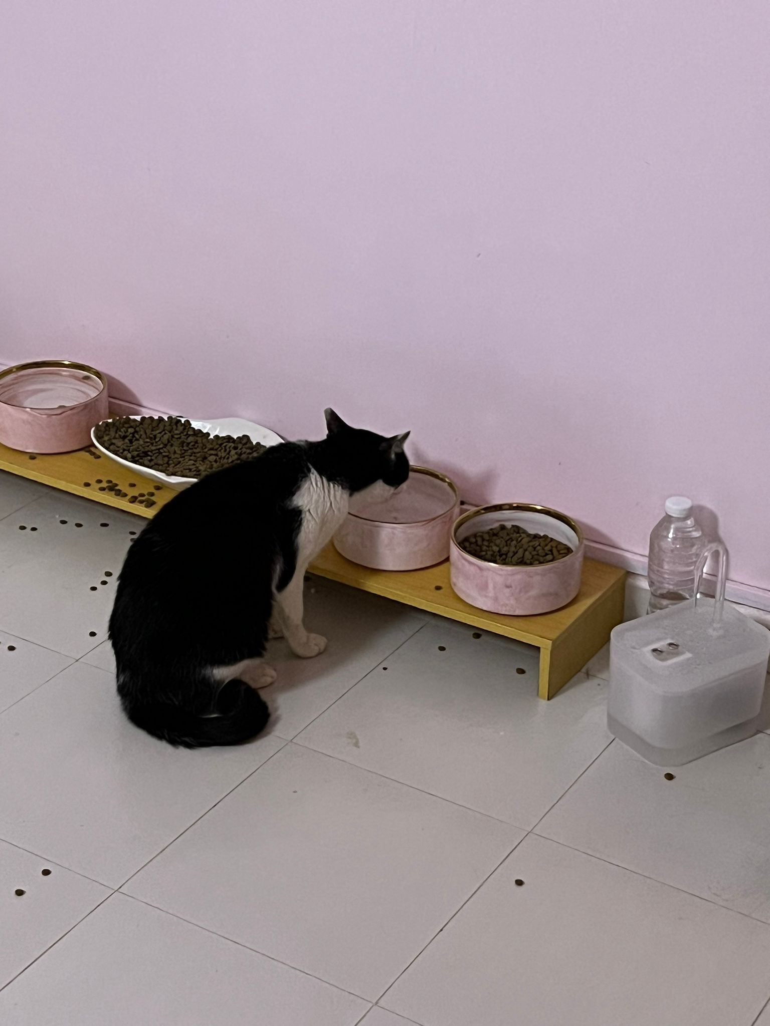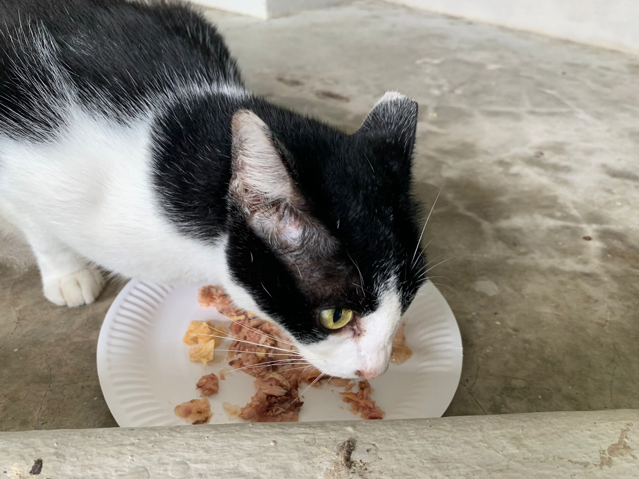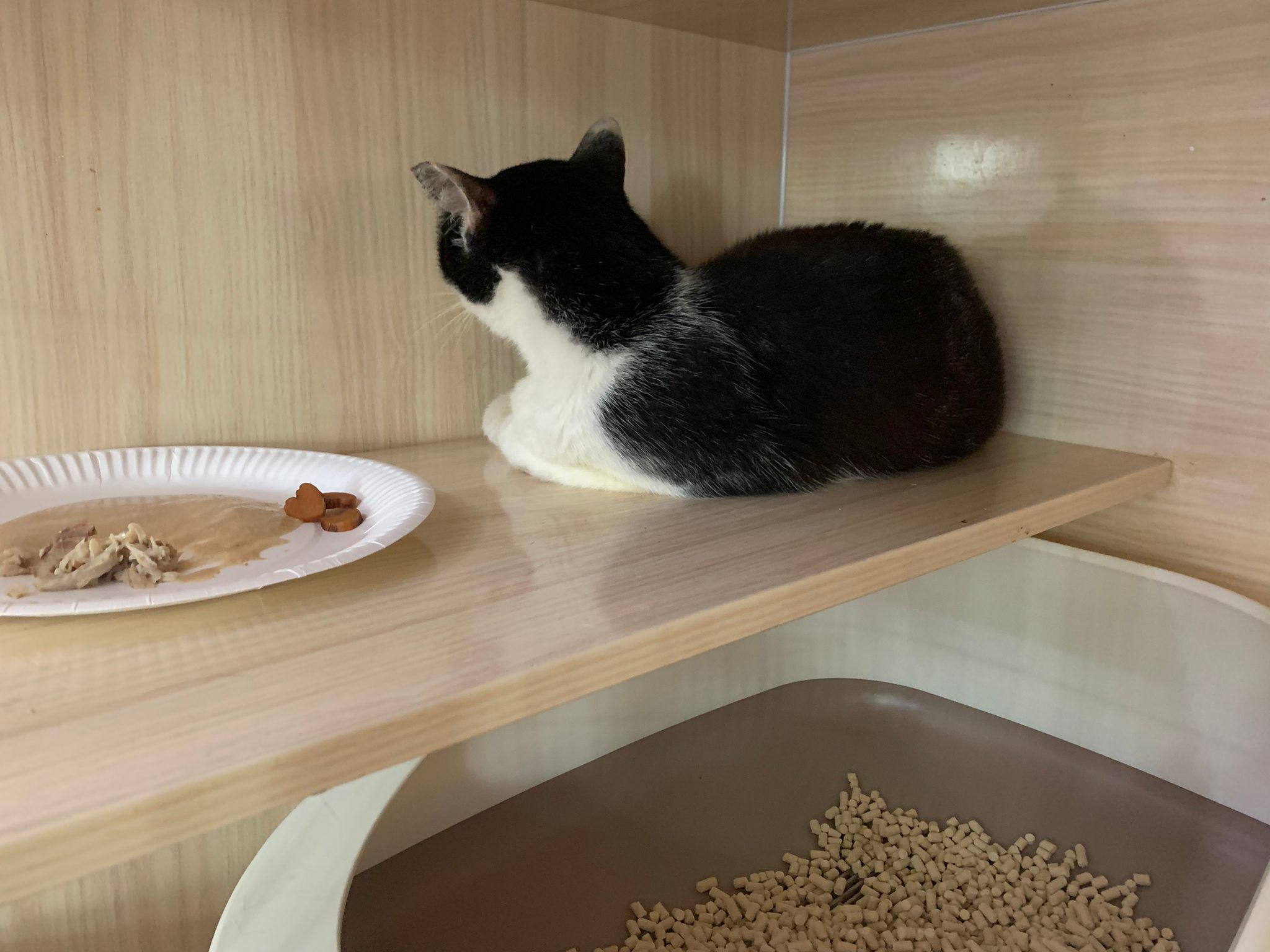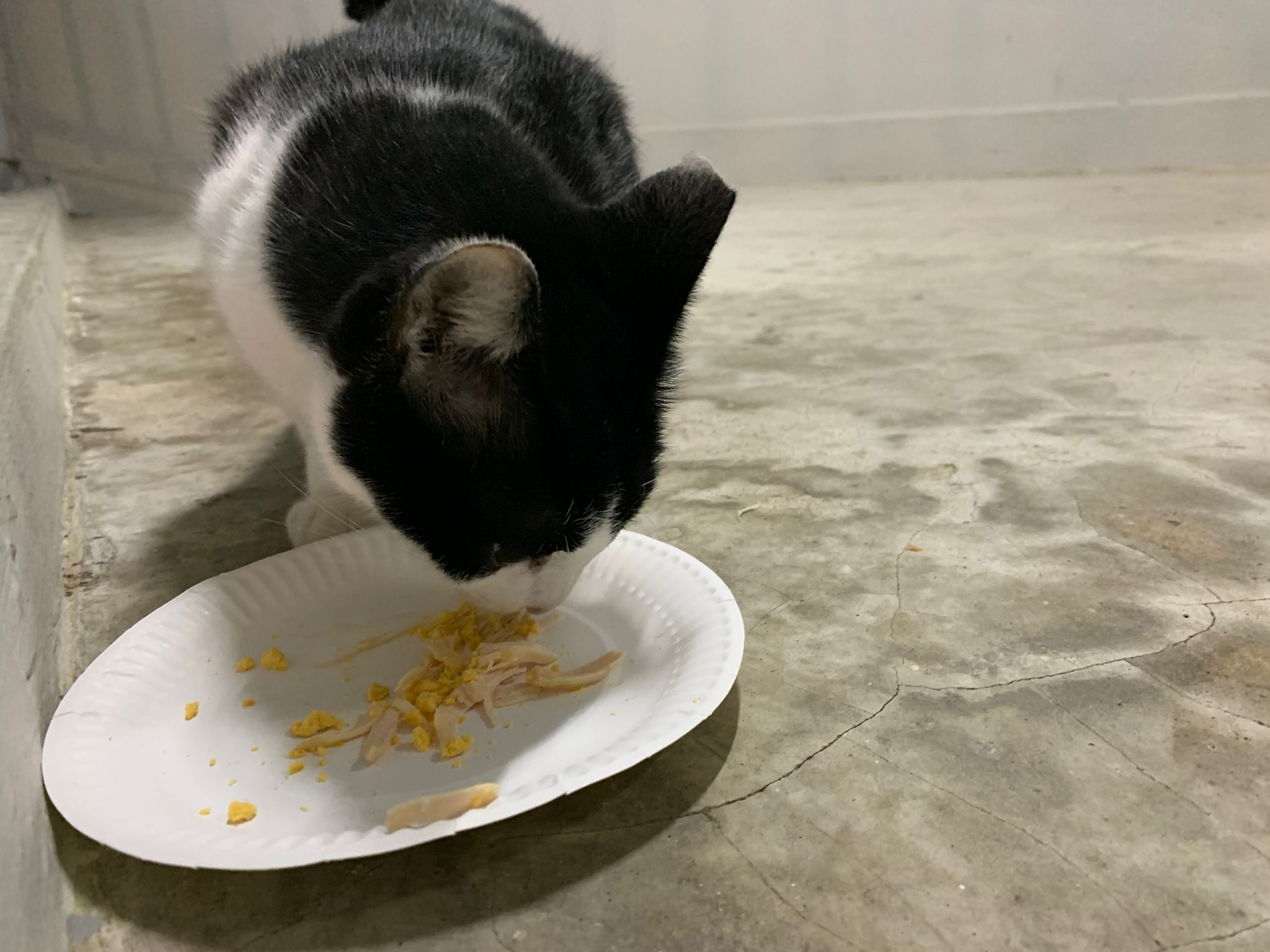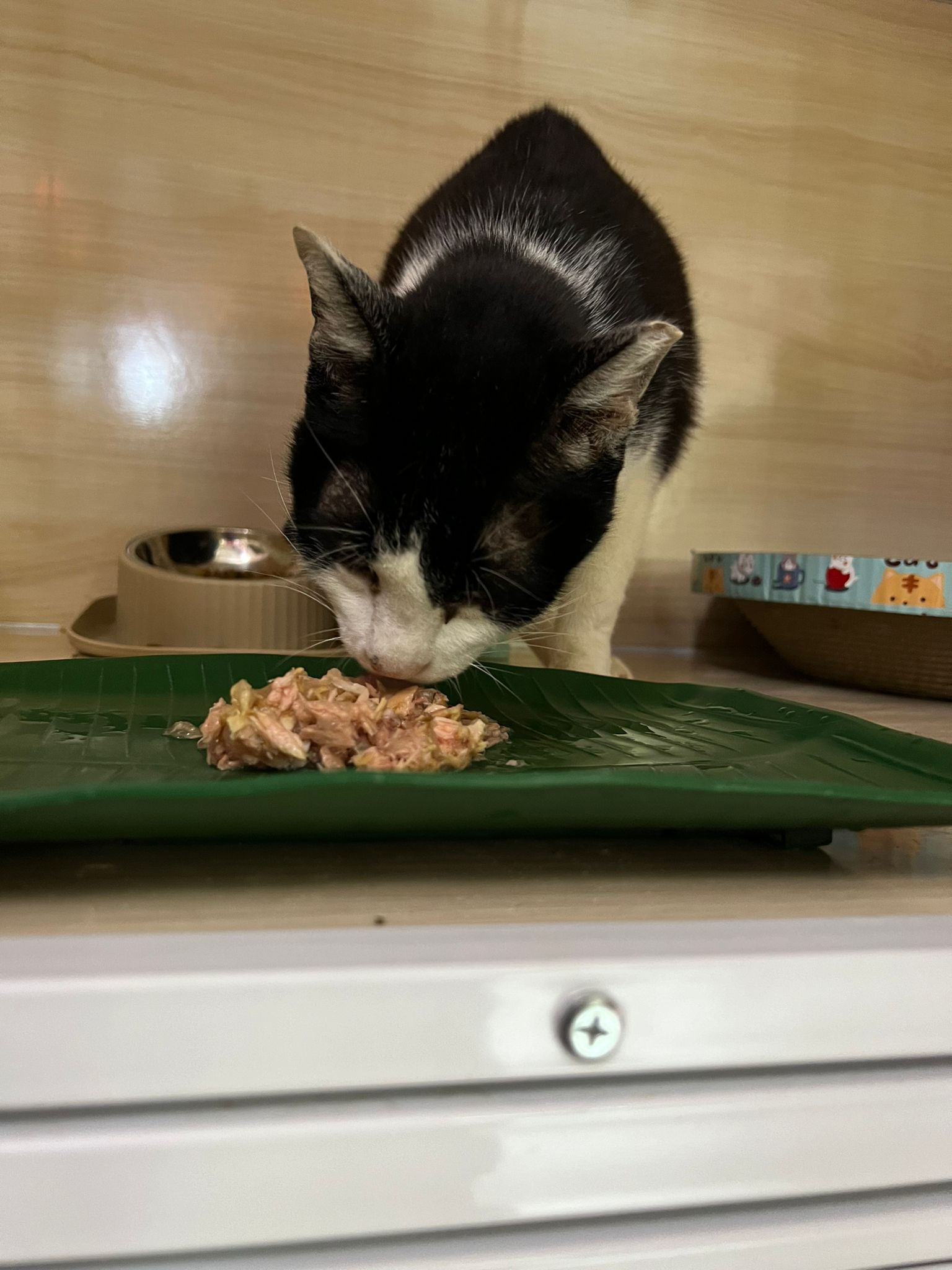 Noon: I packing house and xl wants me sayang. He quite close to me I serve him tuna w chicken ham and urinary kibble and left it at 1.5 floor for him to continue eating.