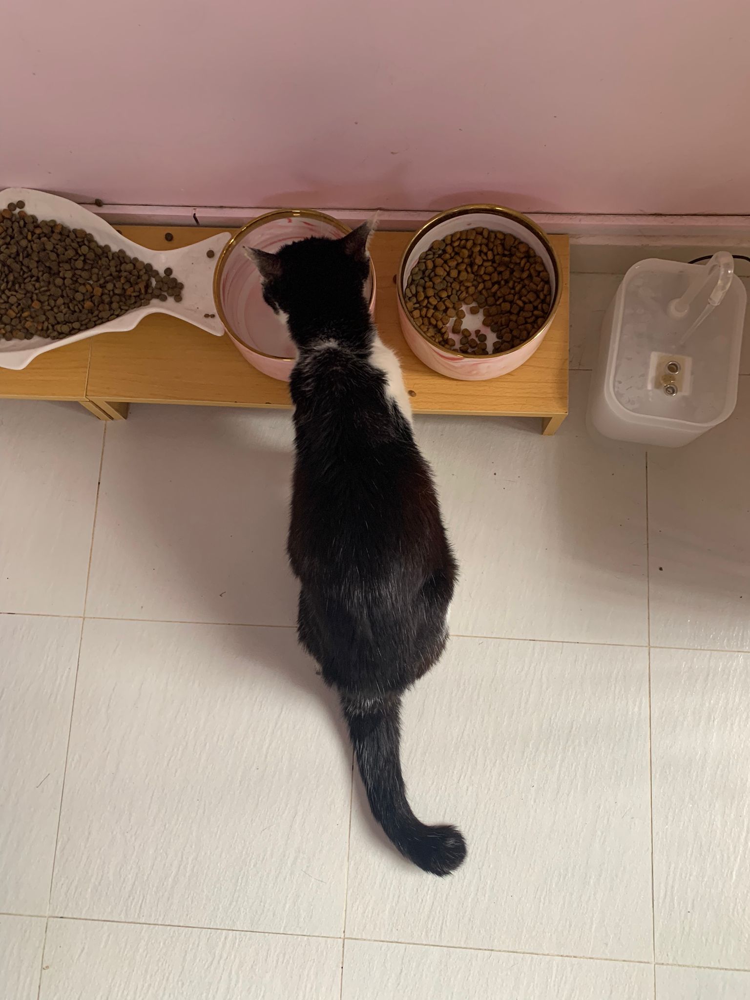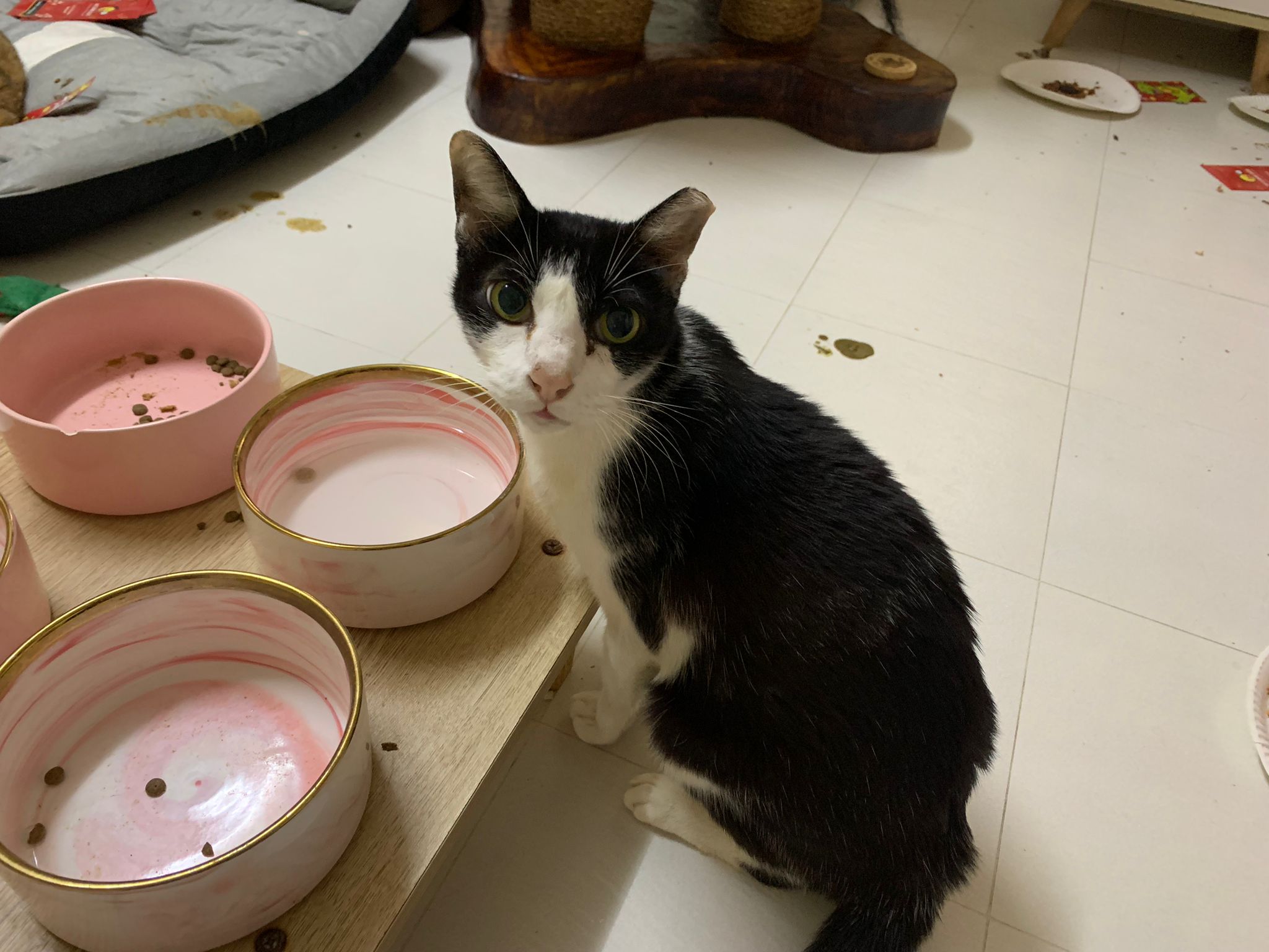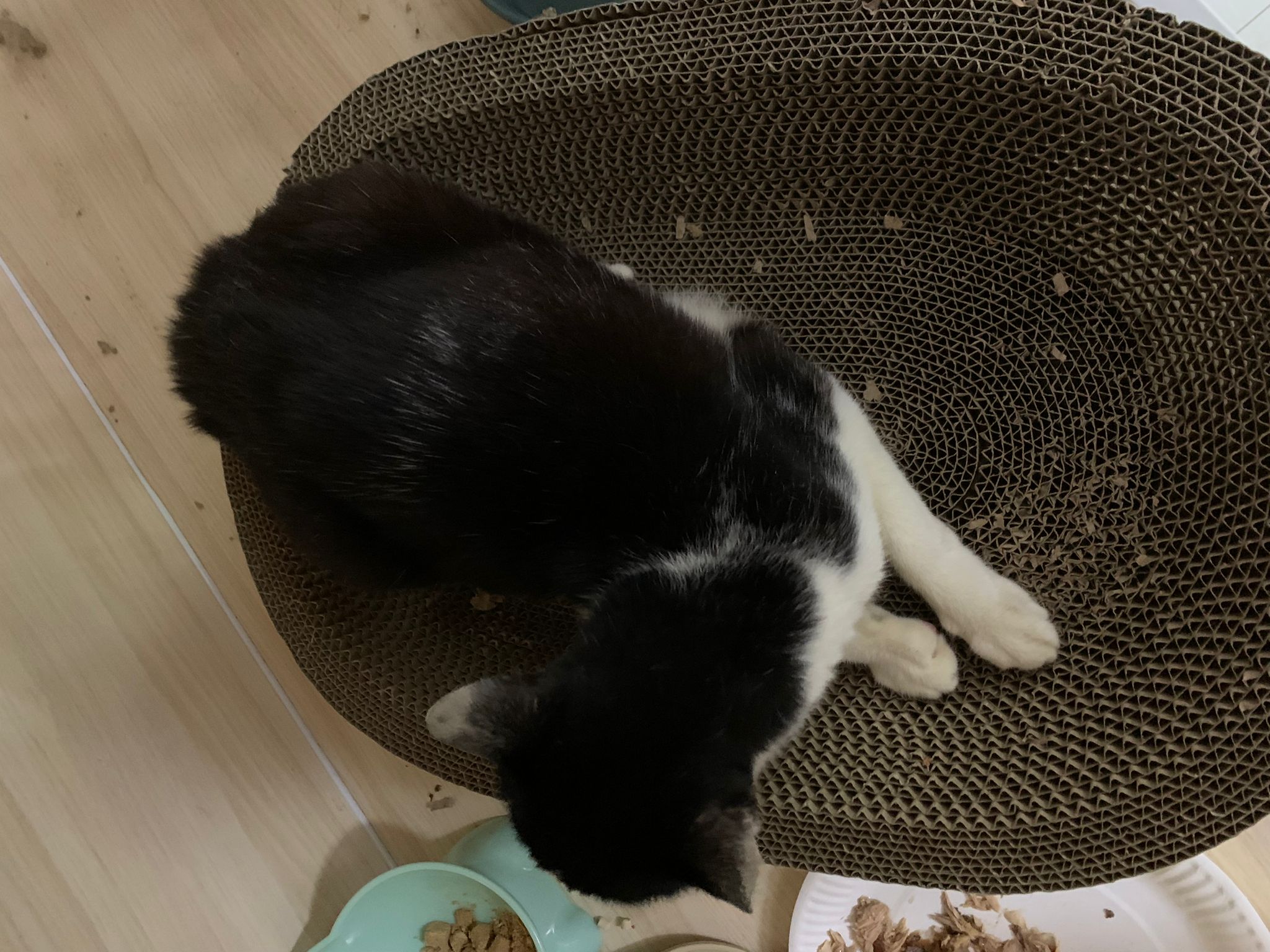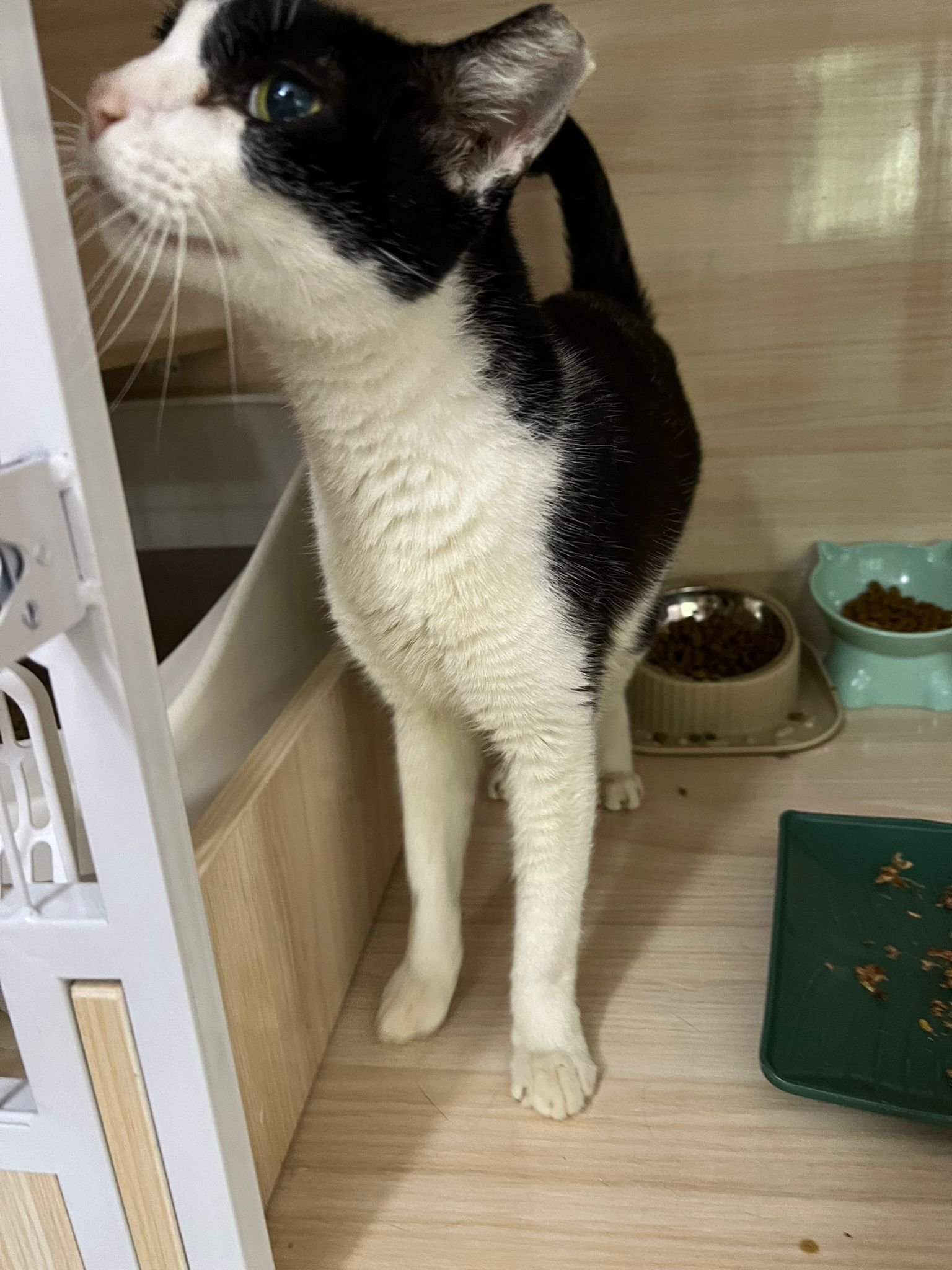 Noon: I packing house and xl wants me sayang. He quite close to me I serve him tuna w chicken ham and urinary kibble and left it at 1.5 floor for him to continue eating.