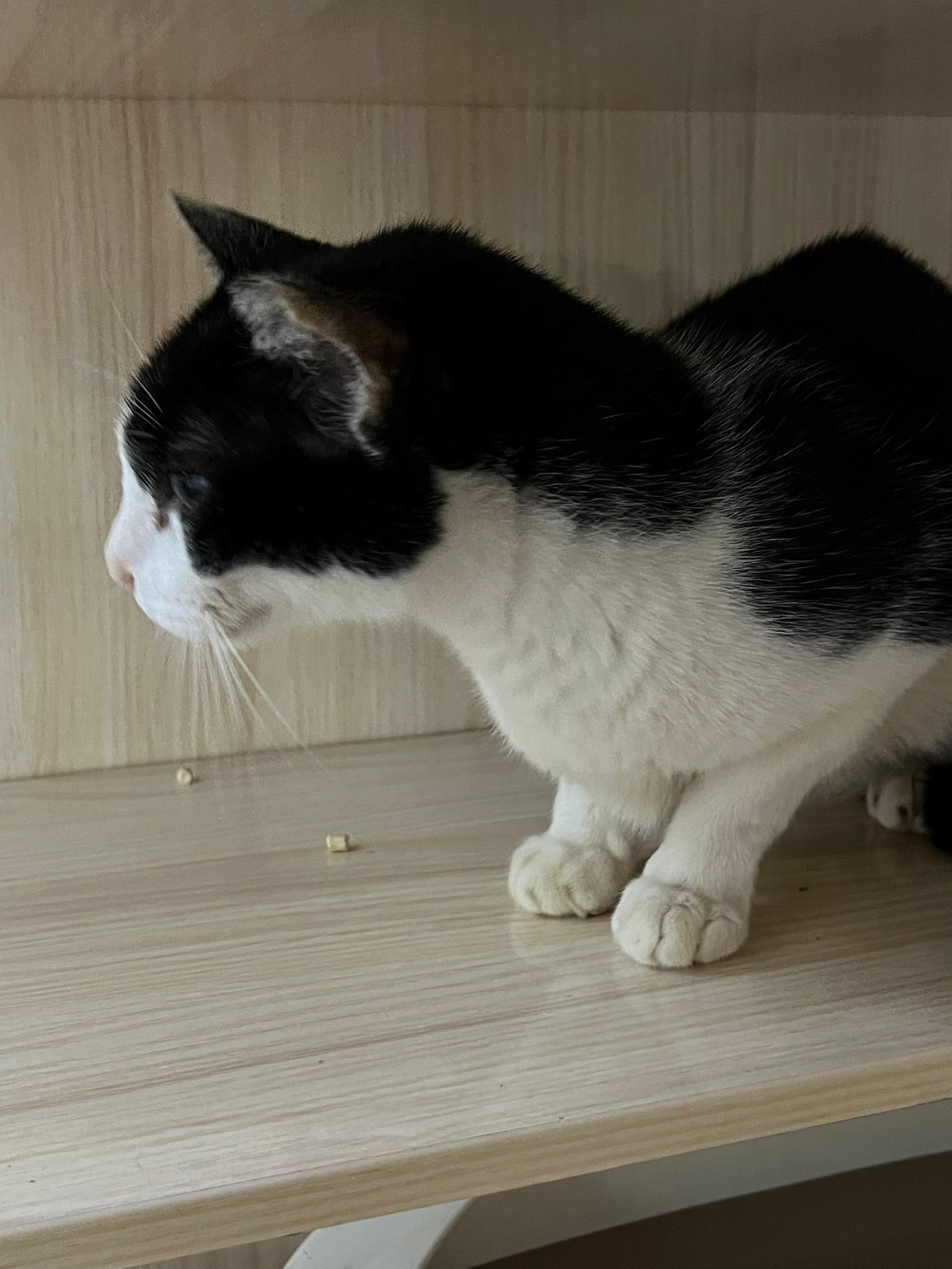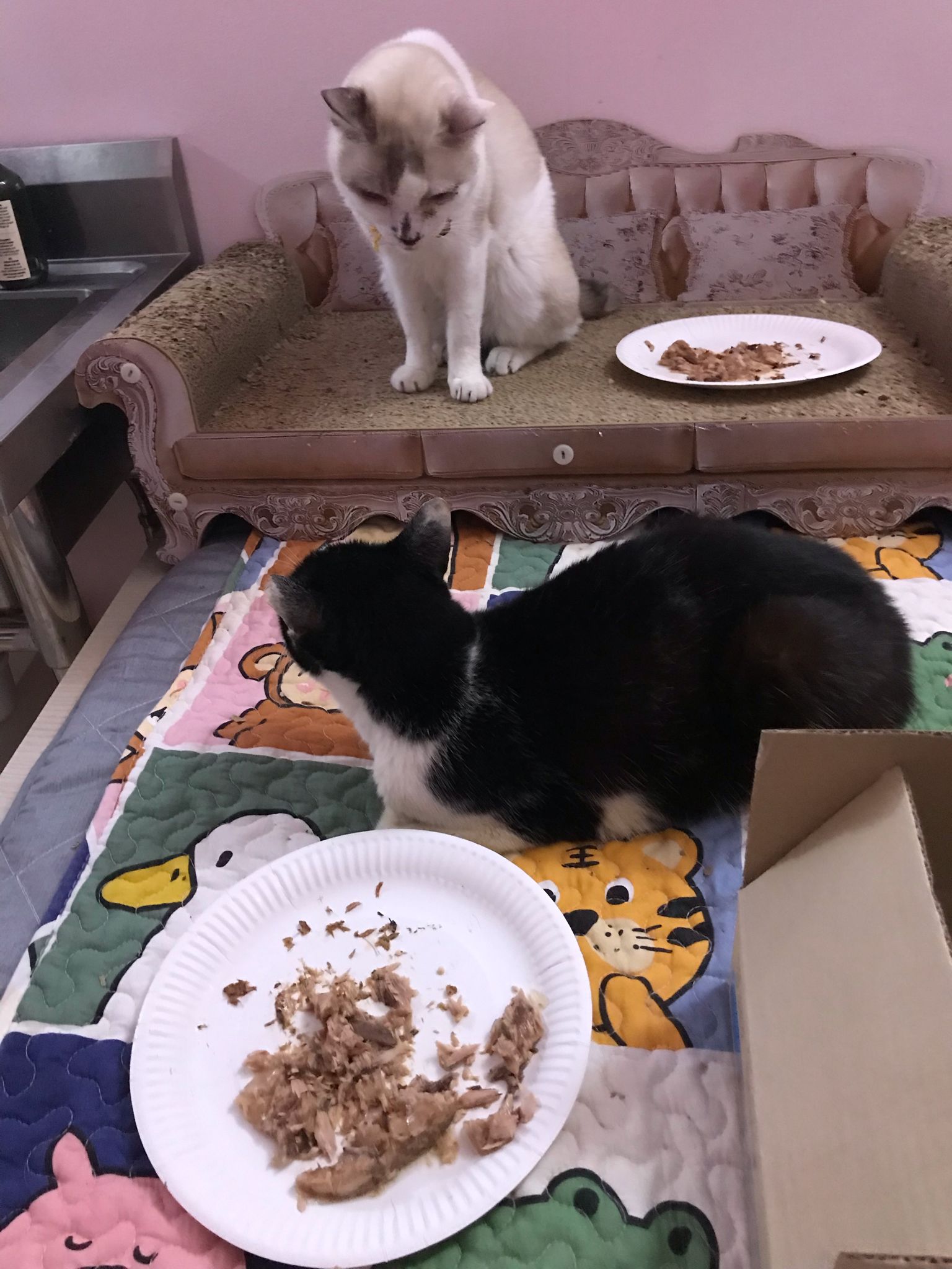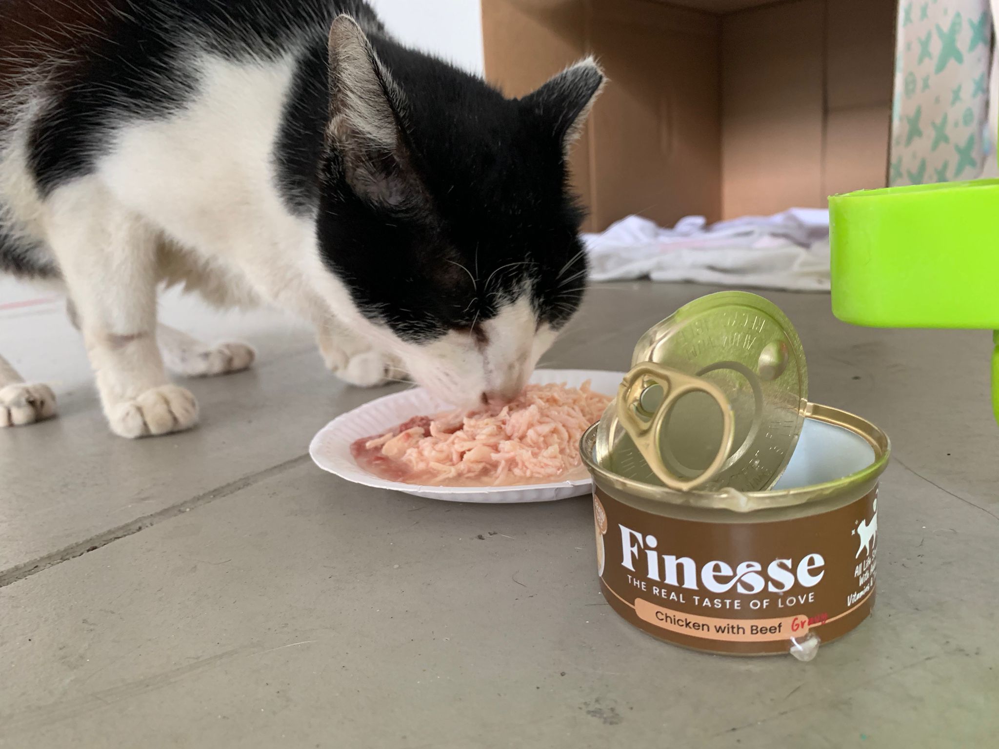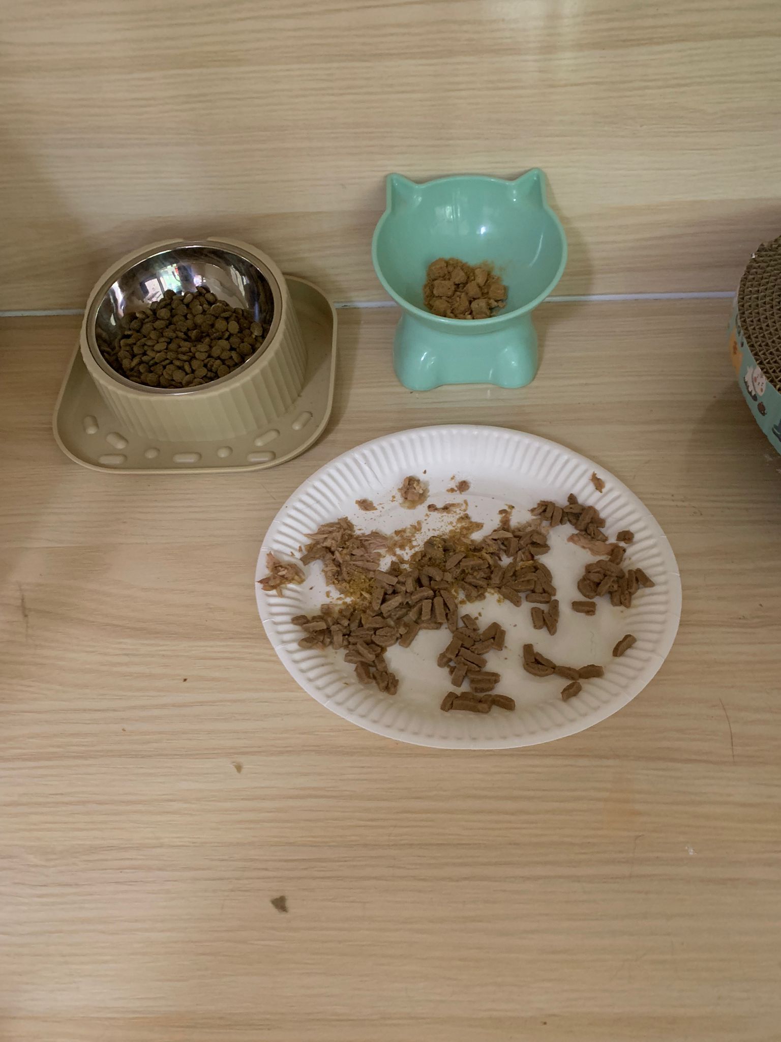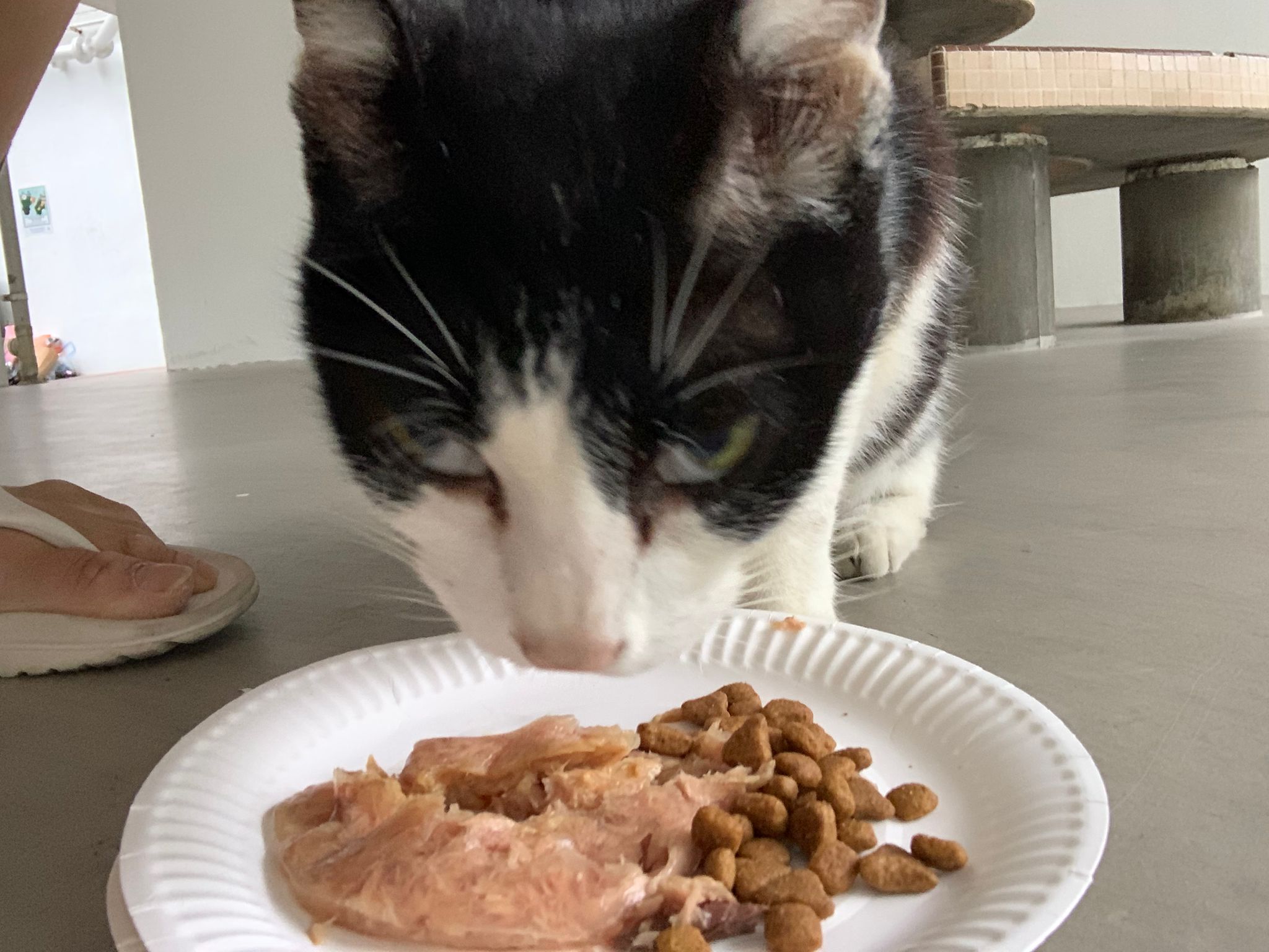 Noon: I packing house and xl wants me sayang. He quite close to me I serve him tuna w chicken ham and urinary kibble and left it at 1.5 floor for him to continue eating.