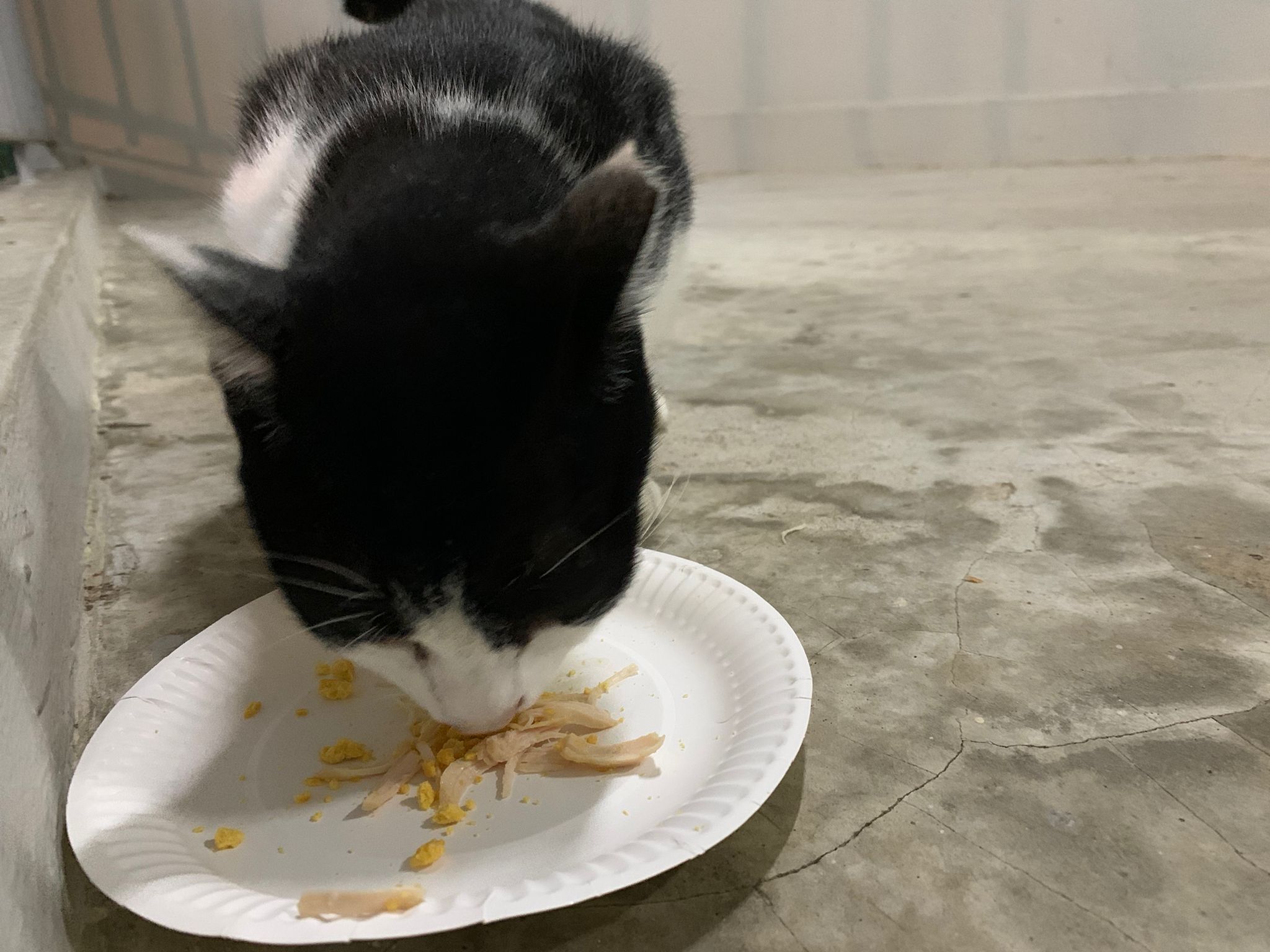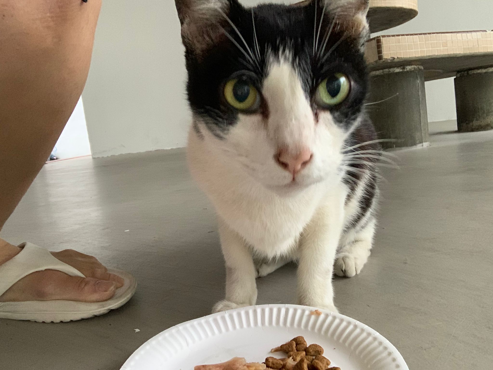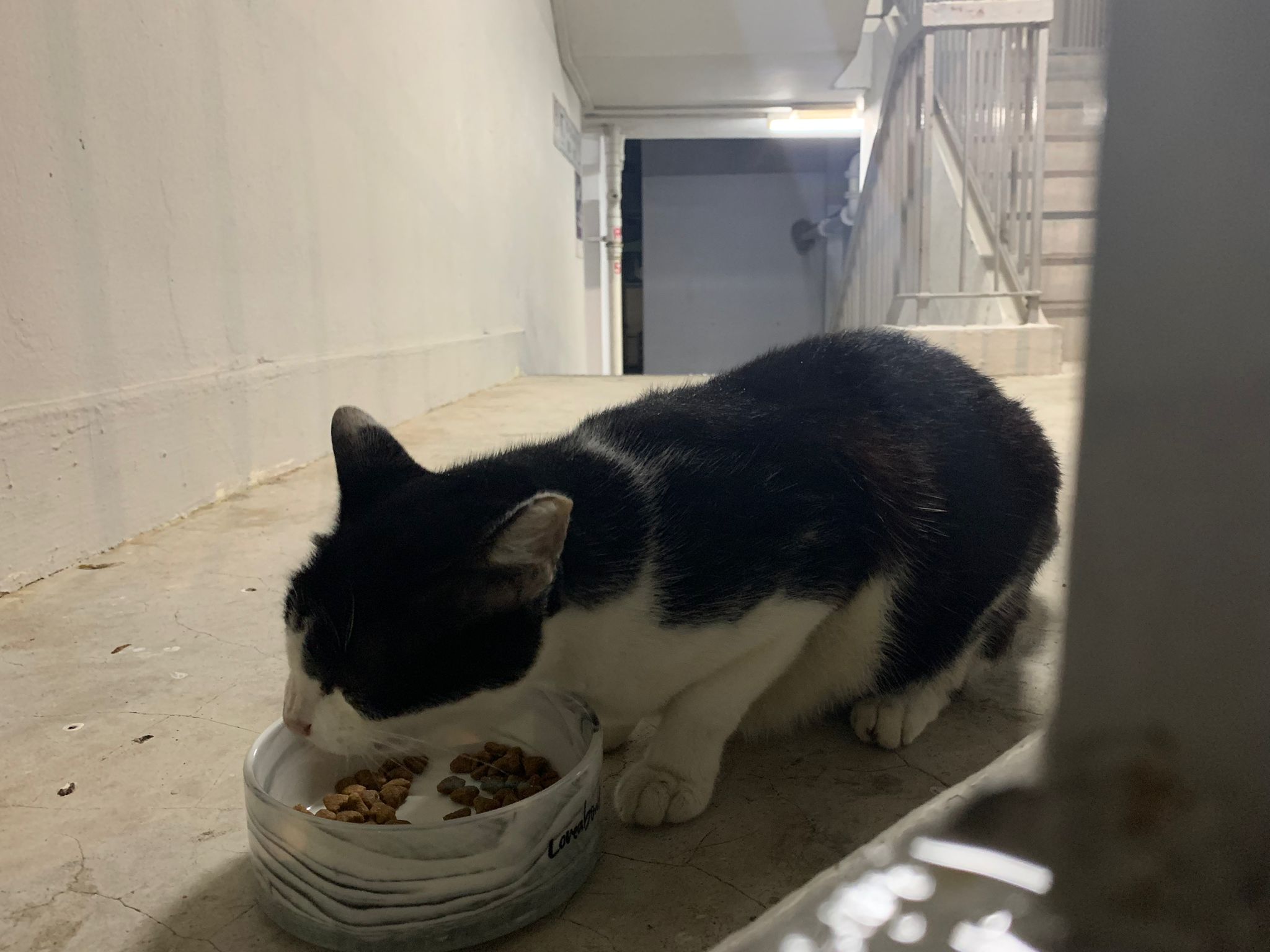 11pm: someone my floor sitting w him, he greeted me so i pat him a bit check he is eating indoor n I go home