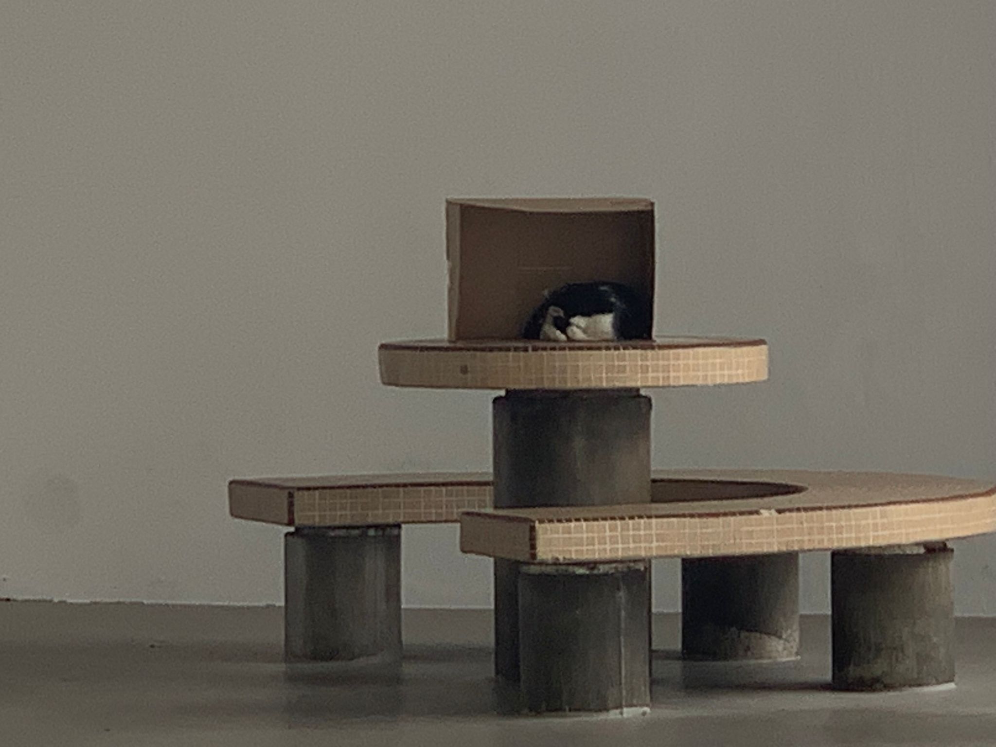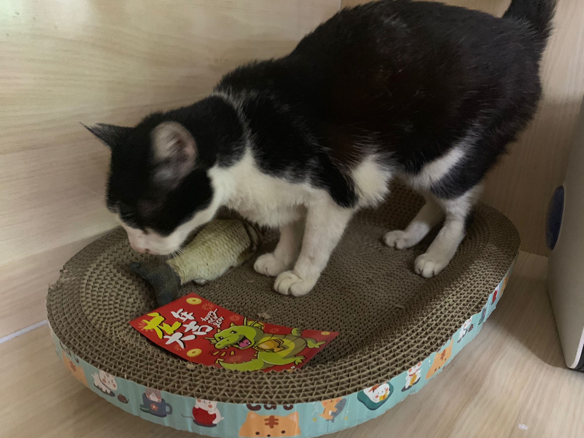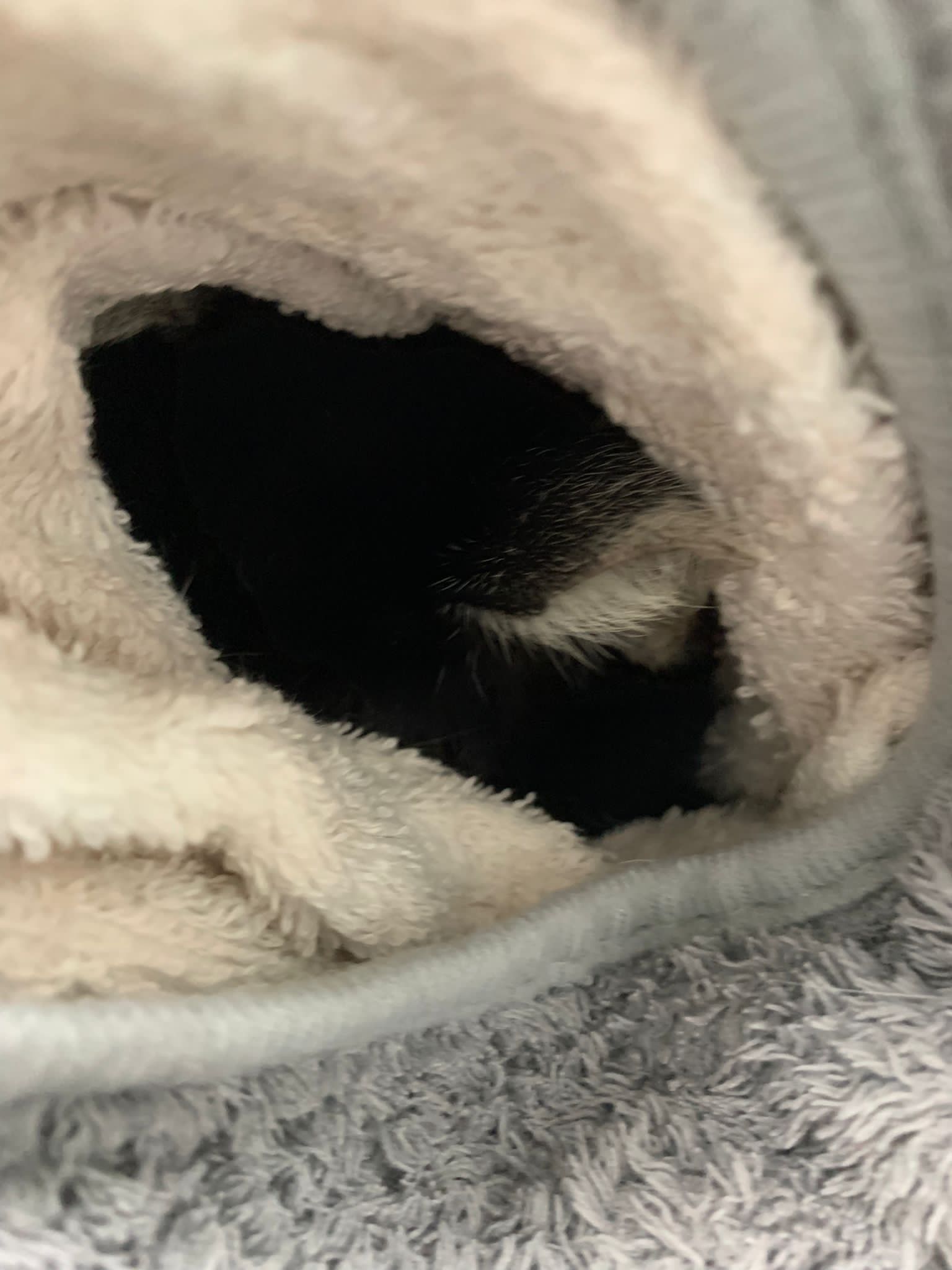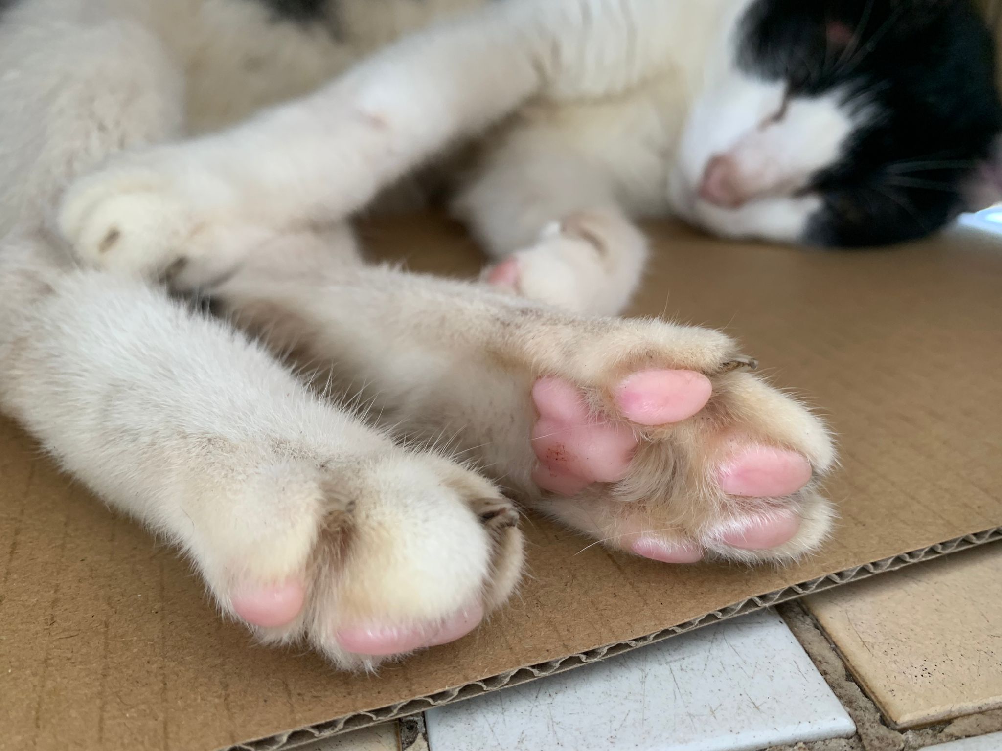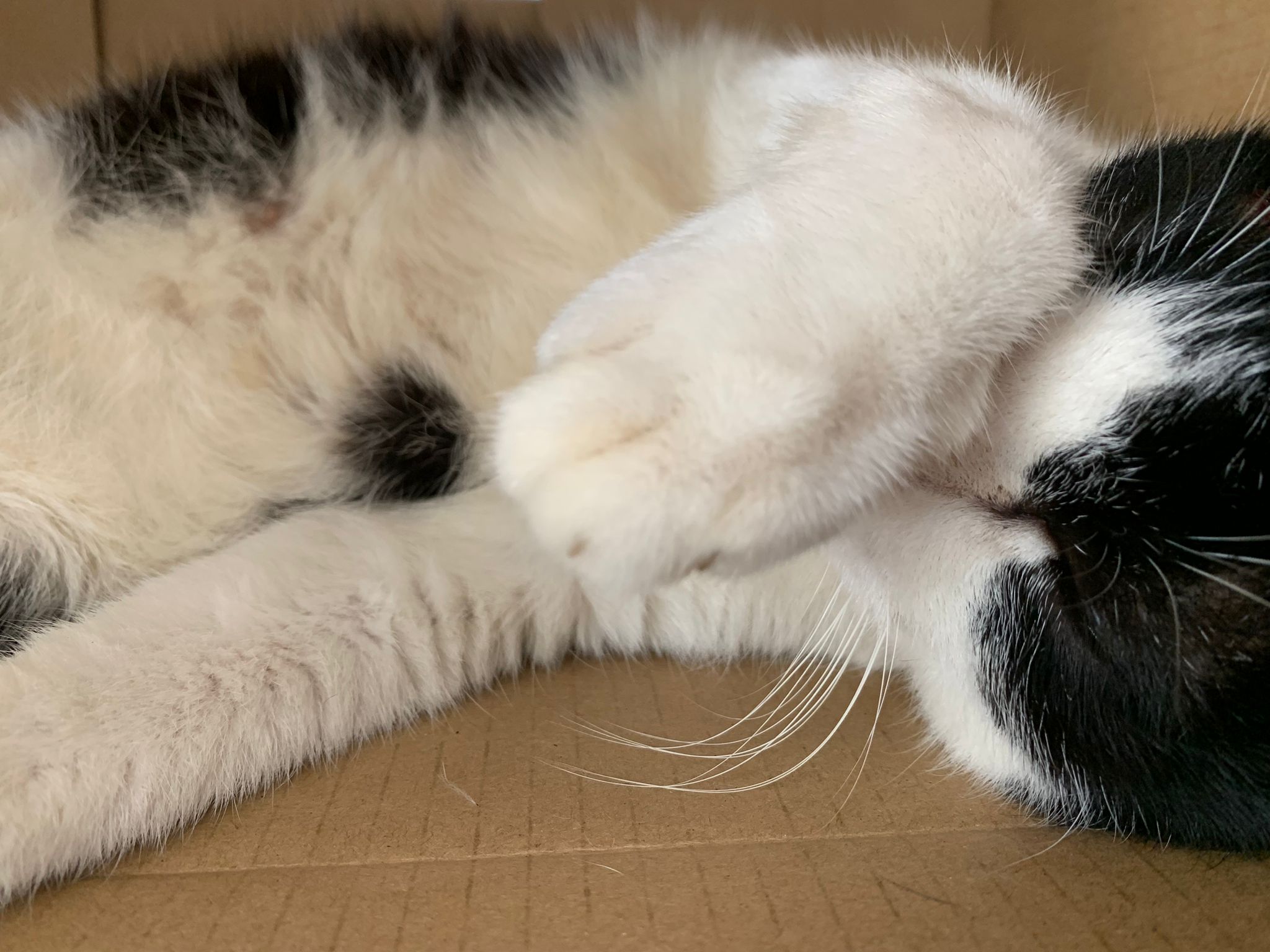 10pm+: super cute, xiao Lian like to hide and sleep in box too. Someone left a box for him to sleep in. My kibble bowl is back 🙂 I top up more kibble for him 🙂 sayang him a lot.