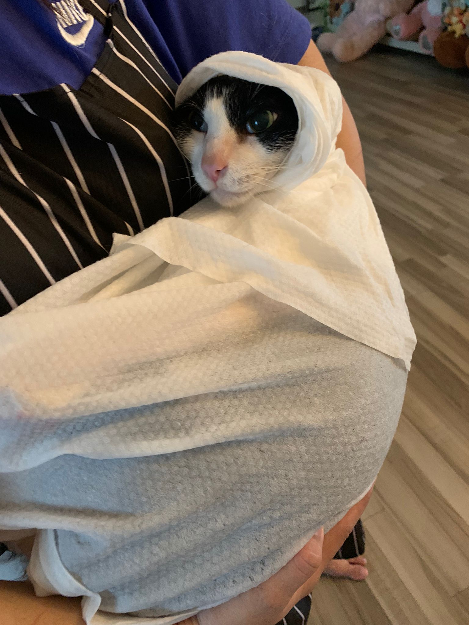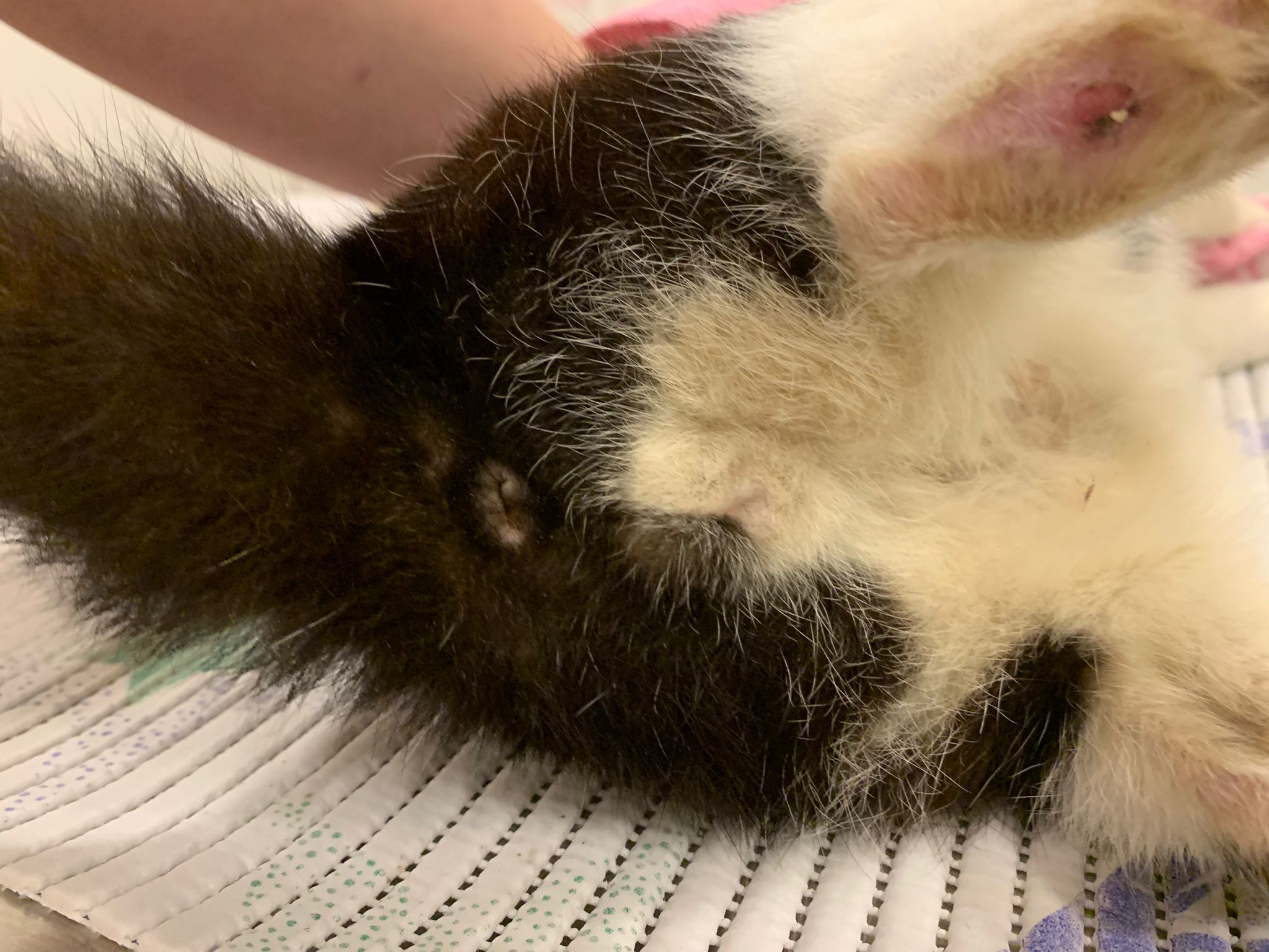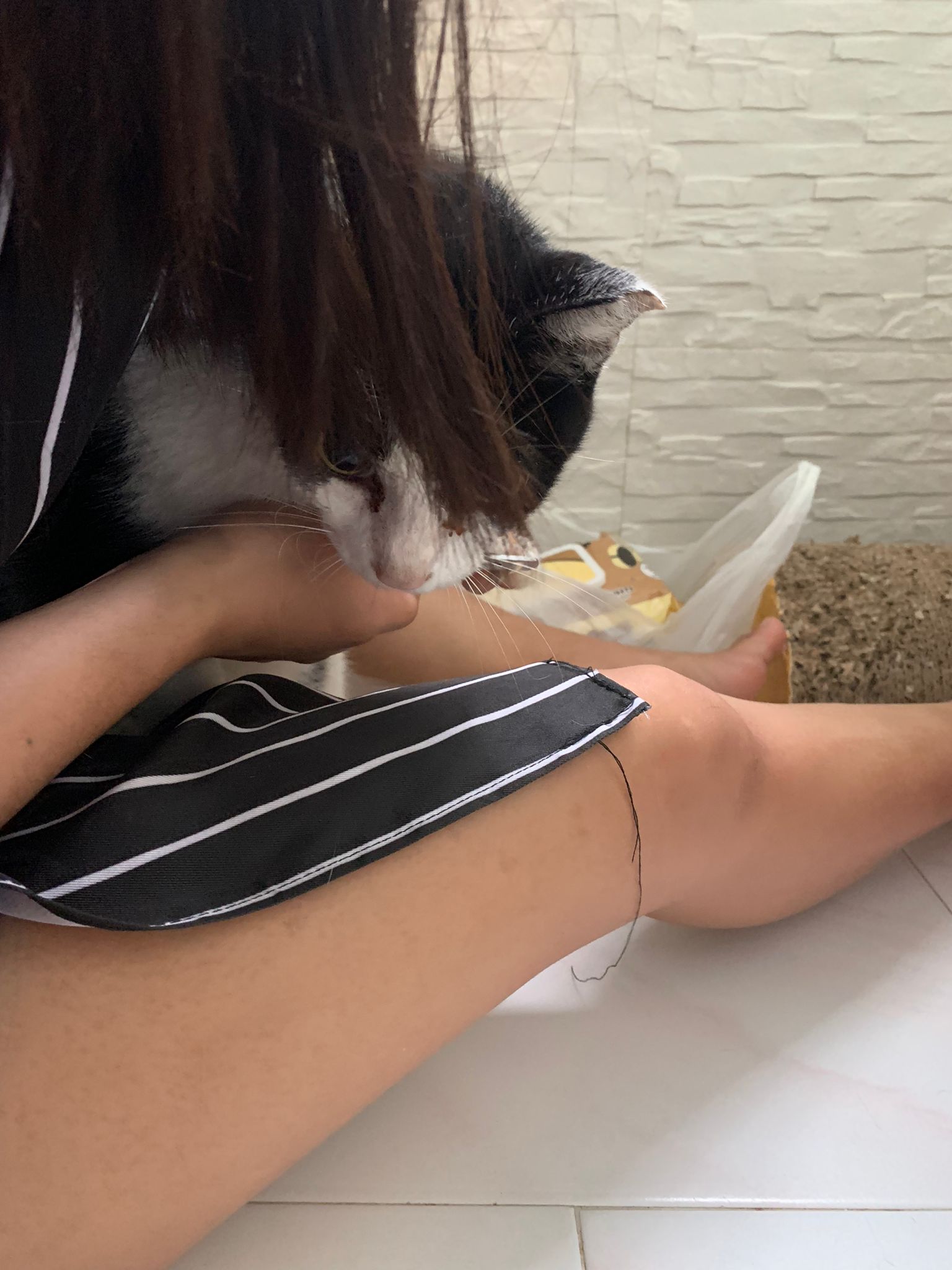 10pm: auntie say this morning xiao Lian had a plaster on her leg, Duno who paste. maybe she lick off thats y her fur sticky now cos of the tapes not glue.