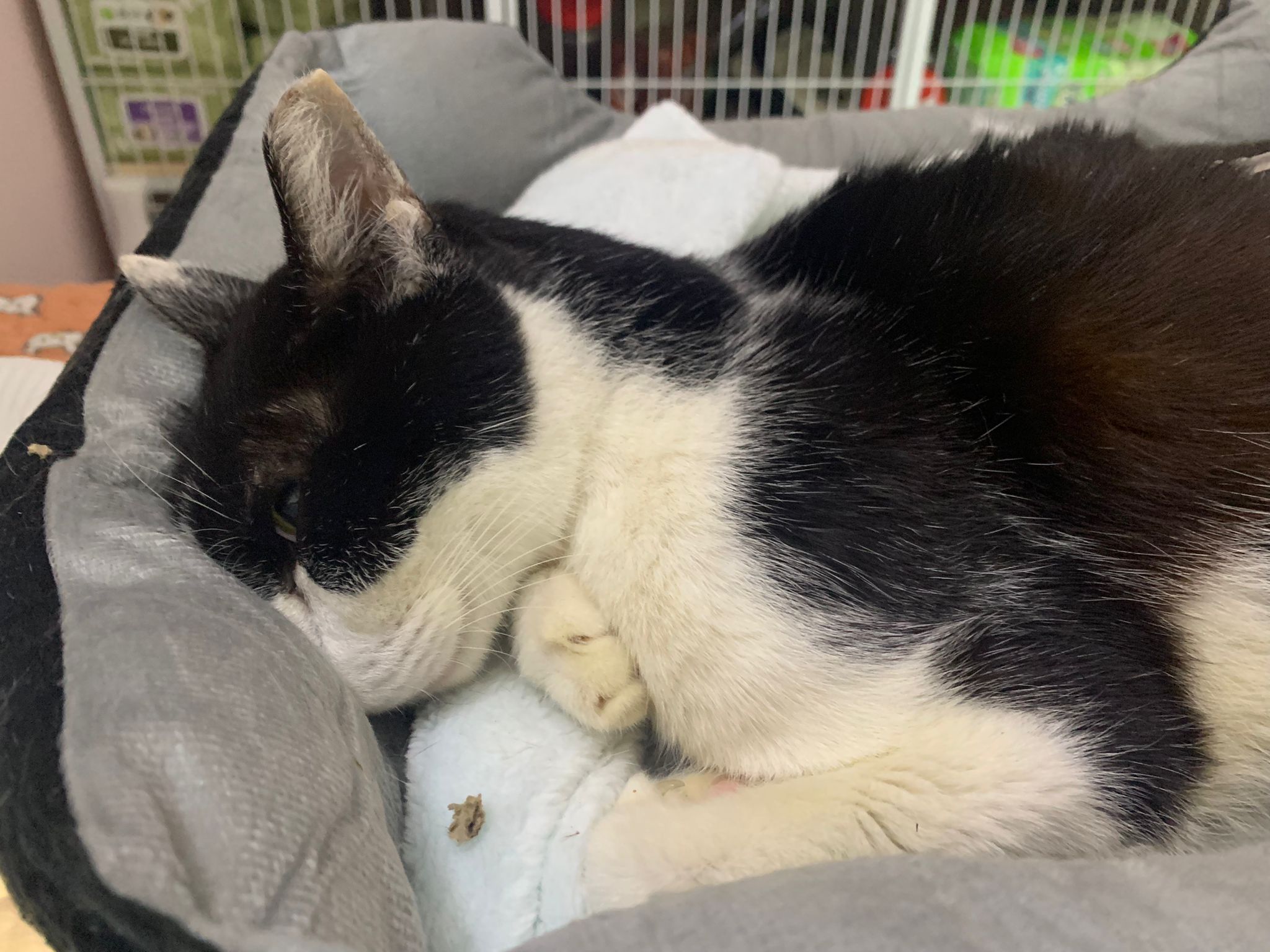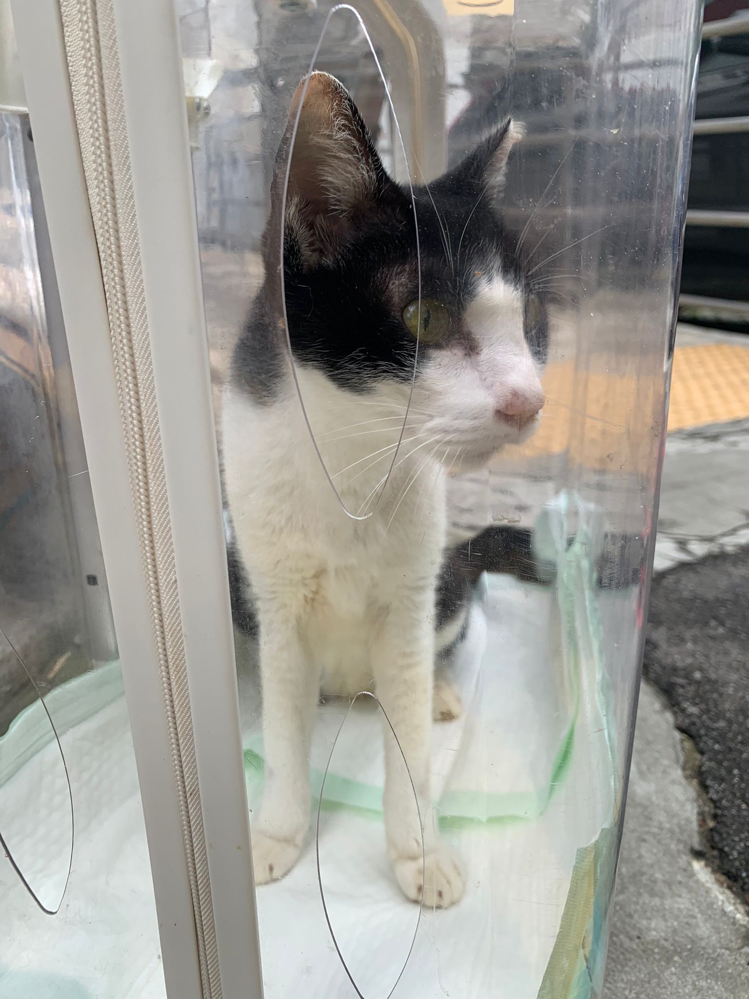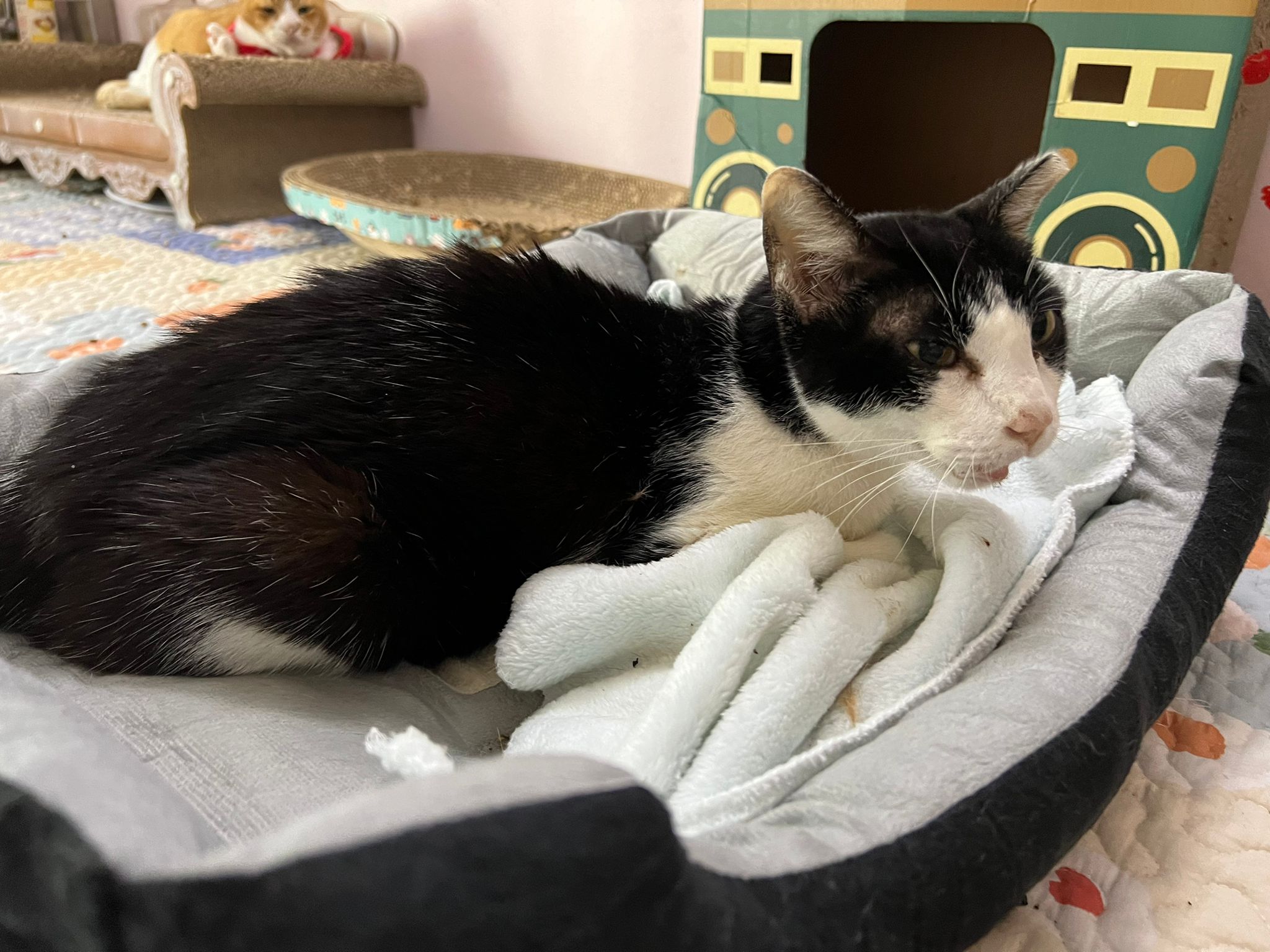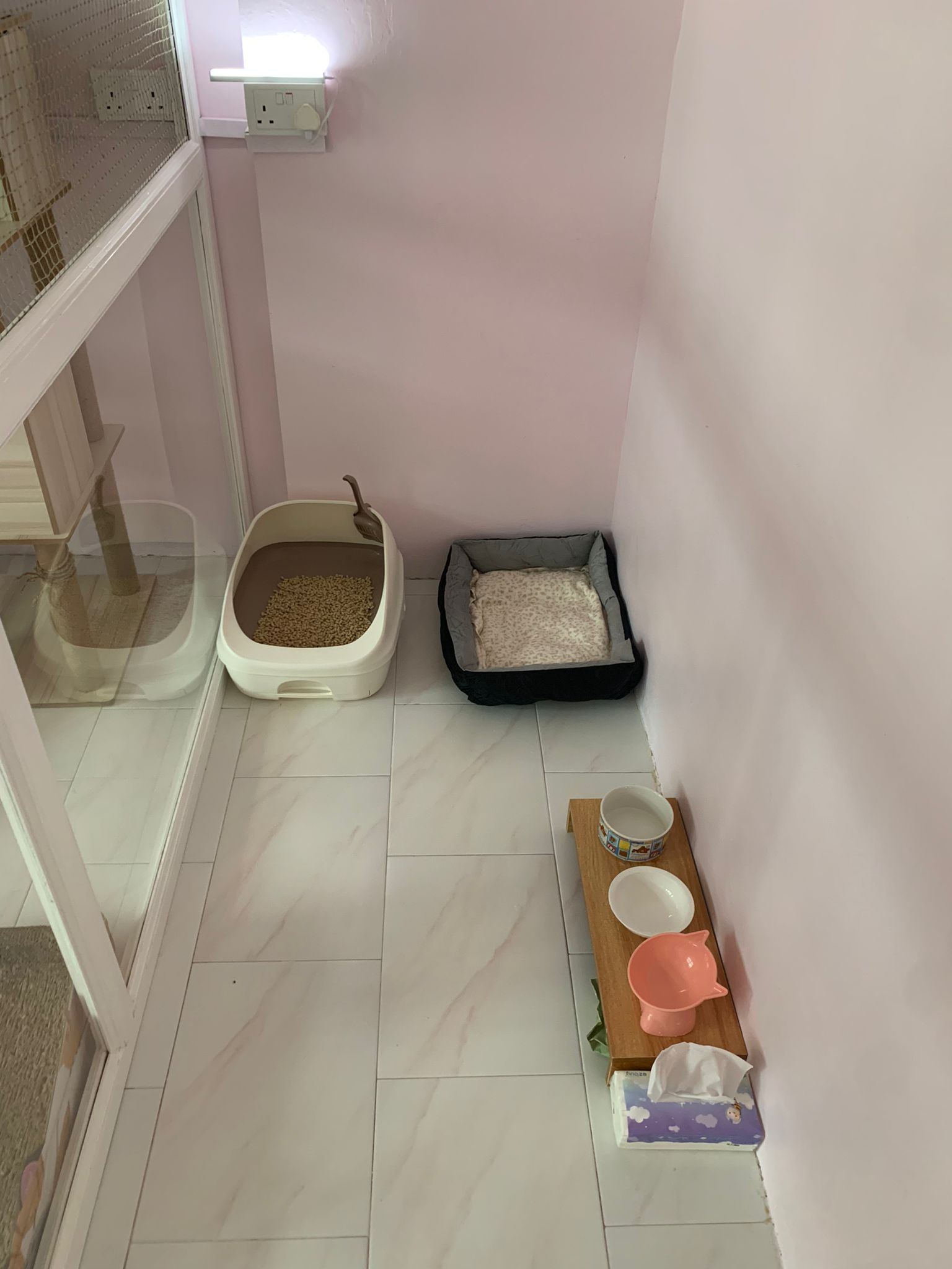 12.40pm: back to 猫房 4G, I open carrier box n I go prepare his bed in cage.