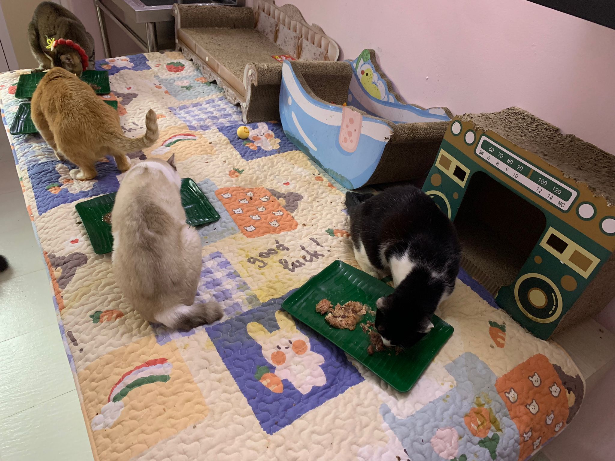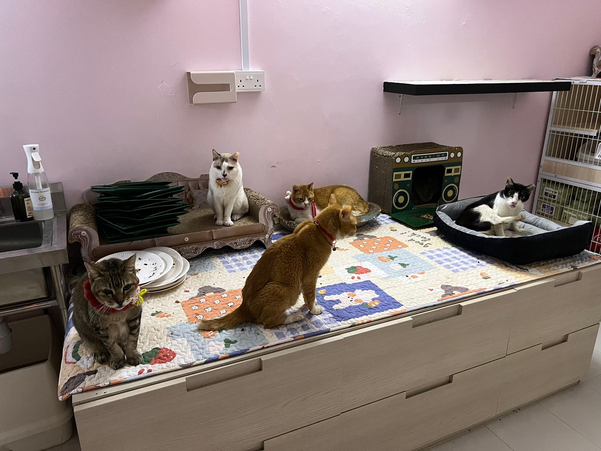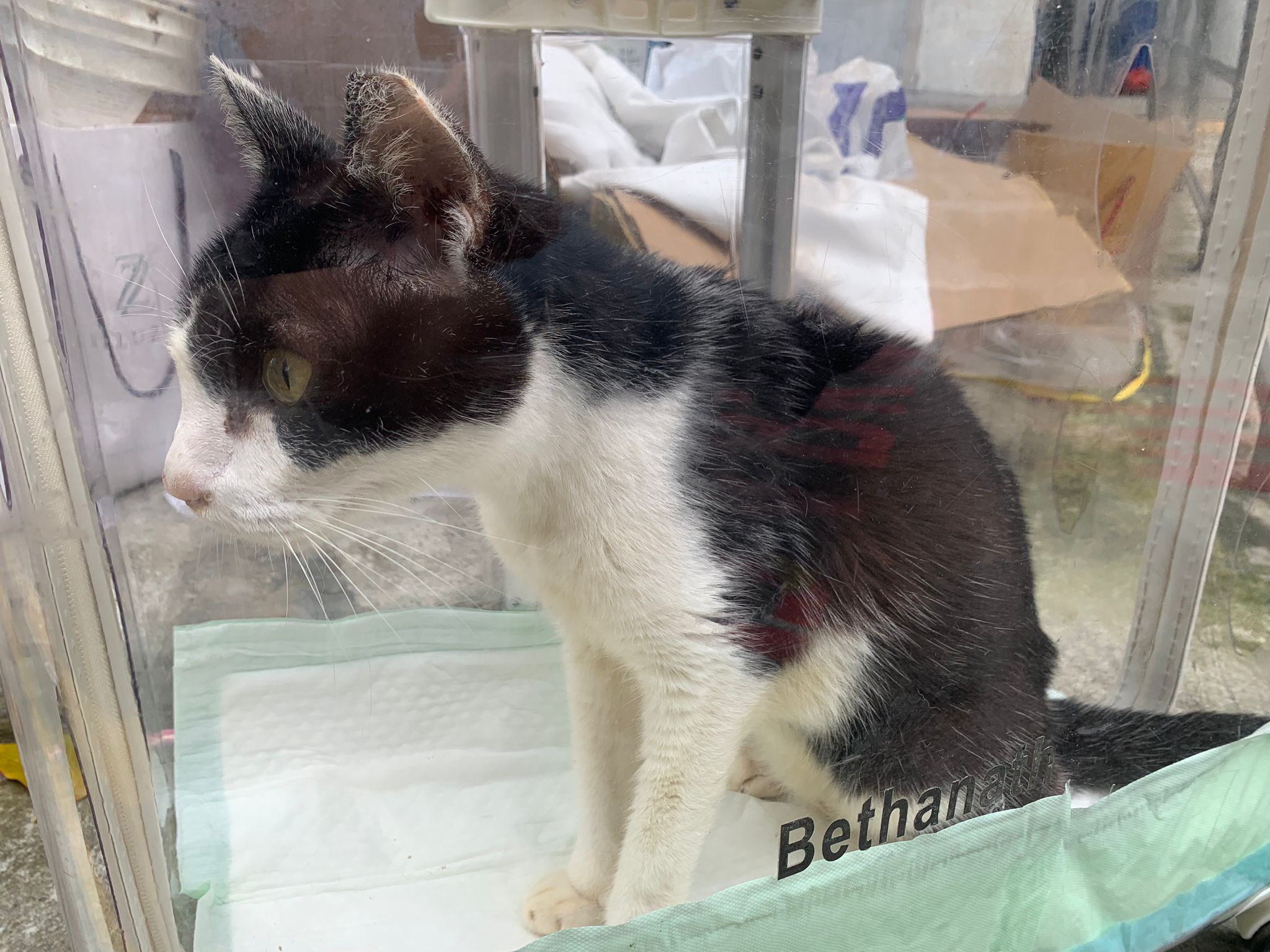12.40pm: back to 猫房 4G, I open carrier box n I go prepare his bed in cage.